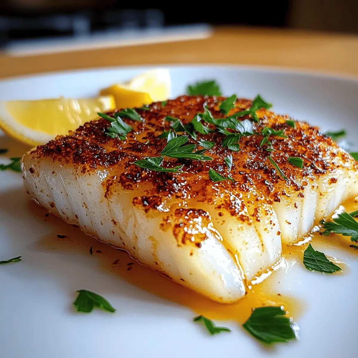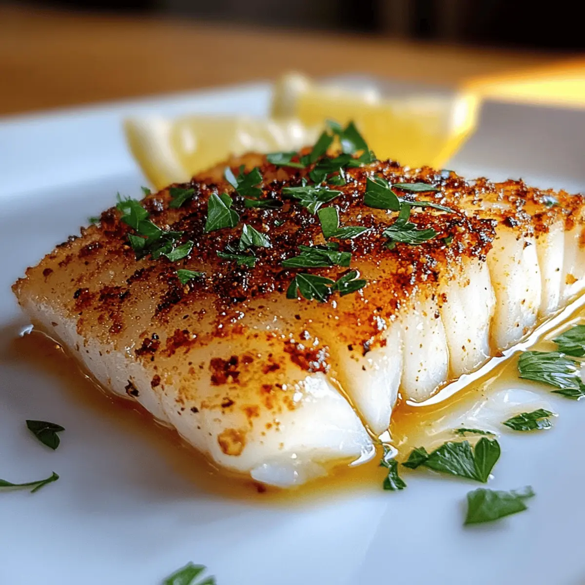 Jump to Recipe Print RecipeAs the timer ticks down, the tantalizing aroma of air fryer cod fills my kitchen, conjuring memories of sunny seaside dinners. It’s remarkable how this 15-minute air fryer cod fish recipe transforms simple ingredients into a meal that’s not only moist and flaky but also incredibly healthy. Say goodbye to the days when cooking fish felt daunting—this quick prep allows me to whip up a delicious weeknight dinner without the fear of overcooked, dry bites or offensive odors lingering in my home. With just a handful of ingredients, you can enjoy a delightful fish dish that pairs wonderfully with your favorite sides. Are you ready to make your dinner cooking routine a breeze? Let’s dive into this simple and flavorful recipe! Why is this air fryer cod fish a must-try? Quick Cooking: With just 15 minutes from start to finish, this recipe is perfect for busy weeknights or spontaneous dinner guests. Flaky Perfection: The air fryer locks in moisture, giving you juicy, flaky cod that’s hard to resist. Versatile Pairing: Serve alongside Air Fryer Zucchini or a light salad for a complete meal that everyone will love. Easy Cleanup: Forget about scrubbing greasy pans; the air fryer simplifies cooking and cleanup all in one go. Healthy and Delicious: Packed with protein and essential nutrients, this dish is a guilt-free indulgence that doesn’t skimp on flavor. Get ready to elevate your dinner game with this fuss-free and delightful Air Fryer Cod Fish! Air Fryer Cod Fish Ingredients • Perfect for a quick weeknight dinner. For the Cod Cod Fish – Choose 1-inch thick fillets to ensure even cooking and that delectable flaky texture. Olive Oil – Essential for moisture and helps the seasoning adhere, enhancing the flavor of the air fryer cod fish. Fresh Parsley – Adds a burst of freshness; if unavailable, dried parsley works fine—just use half the amount. Salt – A must-have for flavor enhancement; don’t skip this step! Pepper – Adds a touch of warmth and depth to your dish. Lemon – Brightens up the flavors beautifully; use fresh juice for the best taste or include wedges when serving. With these simple ingredients, you’re well on your way to creating a delightful dish that everyone will rave about! Step‑by‑Step Instructions for Air Fryer Cod Fish Step 1: Preheat Air Fryer Begin by preheating your air fryer to 400°F (200°C) for about 5 minutes. This crucial step ensures even cooking and helps to achieve that delightful crispiness on the outside of your air fryer cod fish. As the air fryer heats, gather your ingredients and prepare for the next steps. Step 2: Prepare Cod While the air fryer is preheating, take your cod fillets and pat them dry with a paper towel to remove any moisture. Drizzle a bit of olive oil over the fillets, then sprinkle with salt, pepper, and fresh parsley. Gently rub the seasonings into the fish to ensure every bite is flavorful and ready for cooking. Step 3: Arrange in Basket Once your cod is seasoned, lightly spray the air fryer basket with oil to prevent sticking. Carefully place the fillets in the basket, ensuring they are not overcrowded to promote proper air circulation. This arrangement helps your air fryer cod fish cook evenly, maintaining that beautiful flaky texture you desire. Step 4: Cooking Air fry the cod fish at 400°F (200°C) for 8-10 minutes. As it cooks, watch for the fillets to become opaque and flake easily with a fork. The air fryer will give them a lovely golden edge, indicating they are perfectly done and ready to be served as a healthy and delicious meal. Step 5: Serve Once cooked, remove the cod fish from the air fryer and transfer it to a serving plate. Serve immediately with lemon wedges for an extra zing of freshness. Pair your succulent air fryer cod fish with roasted vegetables or grains to create a delightful and satisfying weeknight dinner that your family will love. Expert Tips for Air Fryer Cod Fish Don’t Overcrowd: Place cod fillets with space in between to allow proper air circulation, preventing steaming and ensuring crispy edges. Preheat is Key: Always preheat your air fryer to 400°F; this step guarantees an even cook and that coveted flaky texture in your air fryer cod fish. Check for Doneness: Use a fork to see if the fish flakes easily. It should reach an internal temperature of 145°F to ensure safety and tenderness. Moisture Matters: Pat the cod fillets dry before seasoning; this helps the olive oil and seasonings stick better, resulting in tastier fish. Storage Tips: Store any leftovers in an airtight container for up to 2 days; reheat in the air fryer at 350°F for best results and to retain moisture. Air Fryer Cod Fish Variations Customize your air fryer cod fish to suit your taste buds and keep mealtime exciting! Haddock or Halibut: Swap cod for these white fish options for a different flavor twist. Each delivers a succulent bite that pairs perfectly with the same seasonings. Quinoa Base: Serve the cod atop lemon-herb quinoa for a hearty touch. It adds a delightful nutty flavor and fluffy texture, making for a filling meal. Spruced-Up Spices: Add a pinch of paprika or chili flakes to the seasoning for a flavorful kick. It transforms your dish into a more vibrant experience without overpowering the delicate fish. Mediterranean Flair: Mix in chopped olives and feta into your roasted veggies to create a Mediterranean-inspired plate. This combo adds a burst of flavors that mingles beautifully with the cod. Zesty Topping: Top the cooked cod with a homemade mango salsa for a refreshing, fruity contrast. The sweet and tangy flavors will elevate your meal to a tropical delight. Herb Variants: Fresh dill or cilantro can replace parsley for a fresh twist. Each herb ramps up the flavor profile, tailoring the dish to suit different culinary tastes. Crispy Veggies: Toss some sliced bell peppers or thin zucchini in with your cod in the air fryer. The result? Crispy, deliciously roasted veg