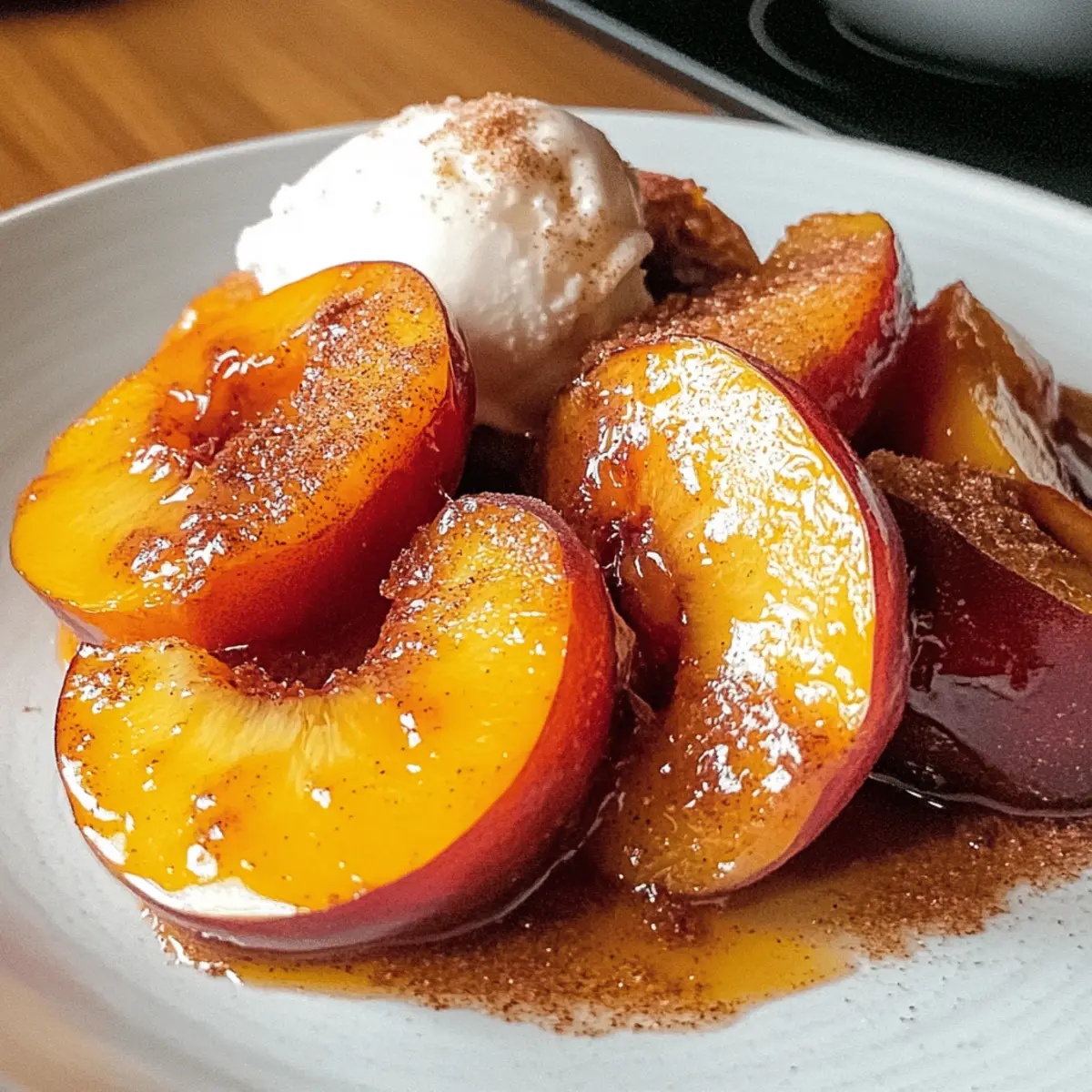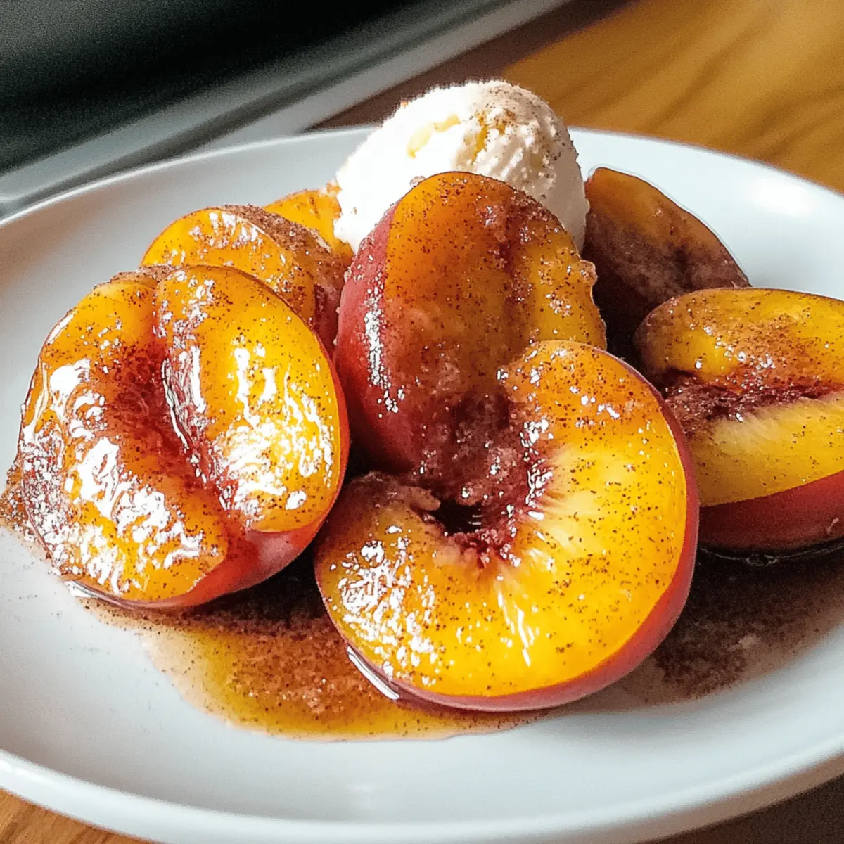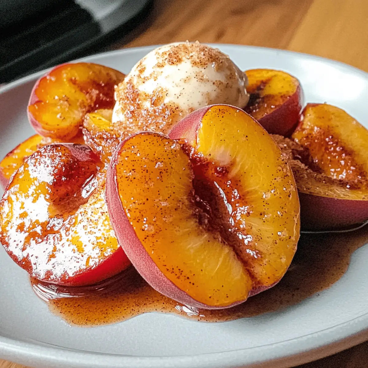 Jump to Recipe Print RecipeStepping into my kitchen, I’m often met with moments of pure joy, especially when I discover something as delightful as air fryer peaches. This simple dessert transforms ripe, juicy peaches into warm, caramelized delights in just 15 minutes. With the enchanting blend of cinnamon and sugar, these air fryer peaches become an effortless treat, perfect for a cozy evening or a quick indulgence after dinner. Not only is this recipe gluten-free Friendly, but it’s also quick to whip up, making it an appealing option for those of us ready to ditch fast food in favor of homemade sweetness. Whether you enjoy them warm on their own or topped with a scoop of vanilla ice cream, these peaches promise to bring smiles to the dinner table. Curious about how to make this mouthwatering dish? Let’s dive into the simple steps! Why Are Air Fryer Peaches a Must-Try? Quick and Easy: In just 15 minutes, you can create a flavor-packed dessert, making it a perfect choice for busy evenings. Irresistibly Sweet: The warm, caramelized peaches with a sprinkle of cinnamon sugar create a delightfully sweet experience. Gluten-Free Friendly: This dessert is naturally gluten-free, making it suitable for various dietary needs. Endless Customization: Customize your peaches! Try drizzling with honey or topping with your favorite nuts for added crunch. Crowd-Pleasing Appeal: Whether served on their own or paired with a scoop of ice cream, these peaches are sure to impress family and friends. Elevate your dessert game with these quick and delightful Air Fryer Churro bites or check out Air Fryer Caramelized Pineapple for another sweet treat! Air Fryer Peaches Ingredients • Get ready to create this delightful dessert! For the Peaches Fresh Peaches – Choose ripe, juicy peaches for the best flavor; nectarines can be a great substitute. Butter – Use unsalted butter to keep salt levels in check; coconut oil is a perfect dairy-free alternative. For the Sweet Topping Brown Sugar – This adds rich caramel notes; you can mix white sugar with molasses if needed. Cinnamon – A dash of cinnamon warms up the flavors; consider nutmeg or vanilla extract for a twist. For Serving Vanilla Ice Cream – This creamy treat pairs beautifully; feel free to try caramel or chocolate ice cream for a fun variation. Prepping these Air Fryer Peaches is straightforward, leading to a warmer, sweeter dessert that’s just as comforting as it is delightful! Step‑by‑Step Instructions for Air Fryer Peaches Step 1: Preheat the Air Fryer Begin by preheating your air fryer to 375°F (190°C). This step ensures even cooking and helps achieve that golden caramelization on your peaches. Allow the air fryer to run for about 5 minutes to reach the desired temperature before you start preparing the peaches. Step 2: Prepare the Cinnamon Sugar Mixture In a small bowl, blend together brown sugar, cinnamon, and a pinch of salt until well combined. This mixture will enhance the natural sweetness of your peaches. Set it aside as you move on to preparing the fruit, allowing the flavors to mingle for a moment. Step 3: Cut and Butter the Peaches Carefully halve the ripe peaches and remove the pits. Using a pastry brush, coat the cut sides lightly with melted unsalted butter. This step adds richness and helps the cinnamon sugar adhere better, ensuring your Air Fryer Peaches develop a lovely, crispy topping. Step 4: Sprinkle with Cinnamon Sugar Generously sprinkle the prepared cinnamon sugar mixture over the buttered cut sides of the peaches. Make sure to cover them evenly for the best flavor in every bite. The sugar blend will caramelize beautifully during the cooking process, turning your peaches into a deliciously sweet treat. Step 5: Air Fry the Peaches Place the peach halves in the air fryer basket, cut side up, ensuring they don’t overlap. This setup allows for optimal air circulation. Air fry the peaches for approximately 8-10 minutes. They are ready when they become tender and have a caramelized, golden-brown appearance. Step 6: Cool and Serve Warm After air frying, remove the peaches from the air fryer and let them cool for a couple of minutes. Serve the warm Air Fryer Peaches on their own or with a scoop of creamy vanilla ice cream for a delightful contrast of temperatures and textures. Enjoy this quick and easy dessert with friends and family! What to Serve with Quick and Easy Air Fryer Peaches? Elevate your dessert experience by pairing these warm, caramelized delights with complementary flavors and textures for a complete indulgence. Creamy Vanilla Ice Cream: A classic match, its cool creaminess contrasts beautifully with the warm peaches, adding an extra layer of indulgence. Lightly Sweetened Whipped Cream: Fluffy and airy, it balances the sweetness of the peaches, offering a delightful textural contrast with every bite. Savory Nuts: Chopped pecans or walnuts provide a crunchy element that harmonizes with the softness of the peaches and enhances flavor complexity. Homemade Cinnamon Granola: Sprinkle on top for a satisfying crunch and a delightful spice that complements the cinnamon sugar on the peaches. Mint-Infused Yogurt: A refreshing take, it cools down the dish while offering a tangy contrast, perfect for those who enjoy a bit of zing. Honey Drizzle: A touch of honey amplifies the natural sweetness while adding a beautiful glaze to the peaches. Fresh Berries: Blueberries or raspberries can brighten the dish with their acidity, creating a lovely counterpoint to the caramel notes. Herbal Tea: A cup of chamomile or mint tea can provide a soothing finish to your meal, enhancing its cozy ambiance. Expert Tips for Air Fryer Peaches Choose Ripe Peaches: The sweeter the peach, the better the dessert! Look for peaches that yield slightly to pressure, indicating they’re ripe. Avoid Overcrowding: Give each peach half space in the basket. Overlapping can lead to uneven cooking and less caramelization! Customize Your Topping: Feel 