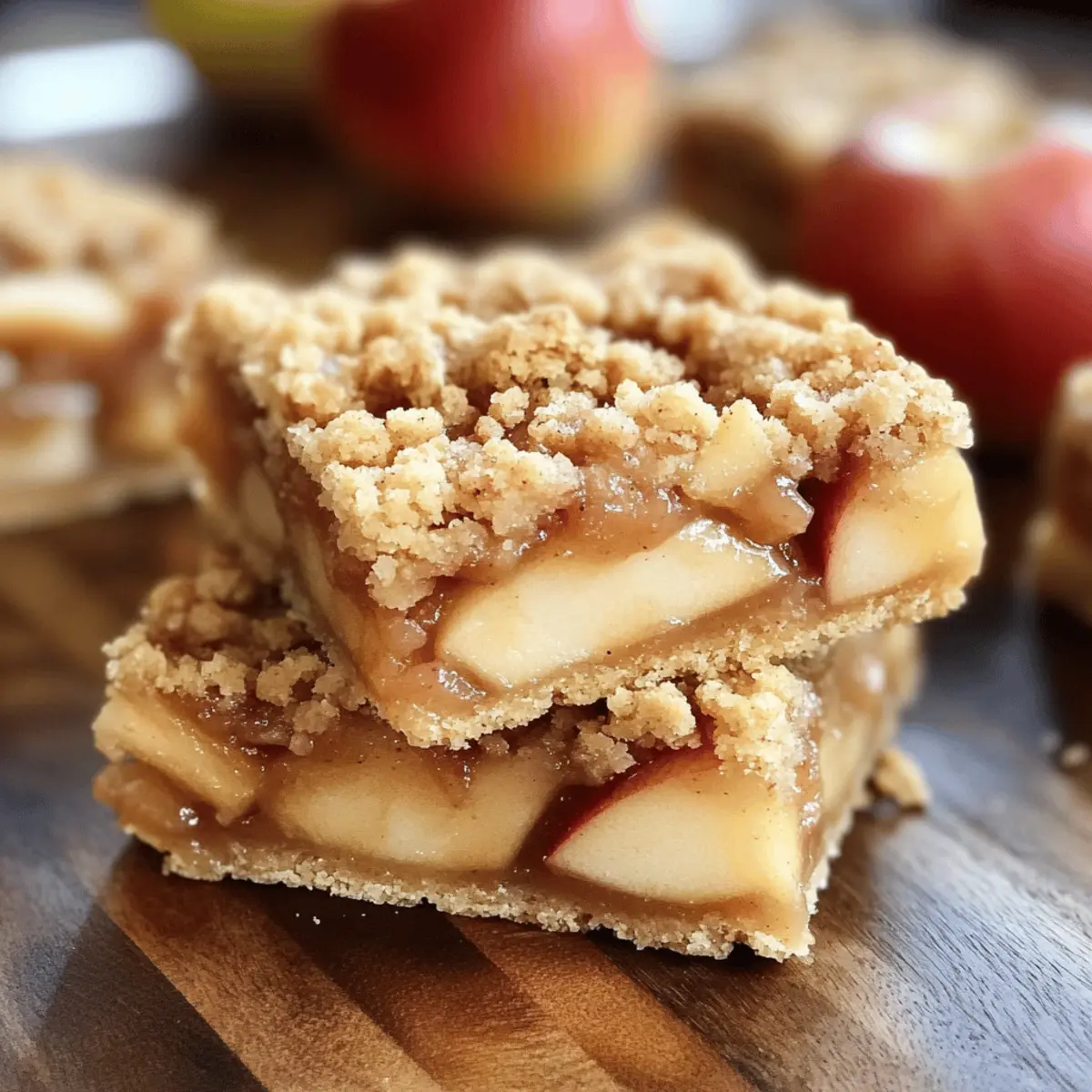 Jump to Recipe Print RecipeWhile rummaging through my kitchen one rainy afternoon, I stumbled upon a hidden treasure: the last of my Granny Smith apples begging for some love. With the comforting scent of cinnamon swirling in the air, I knew it was the perfect moment to whip up a batch of Easy Apple Crisp Shortbread Bars. This delightful recipe marries a buttery shortbread crust with a spiced apple filling and a crispy crumble topping, creating a handheld dessert that’s both nostalgic and satisfying. Best of all, it’s incredibly simple to make, becoming a fast favorite among bakers of all levels. These bars are not only a scrumptious treat for any occasion but also versatile enough to enjoy as a sweet snack or even a breakfast option. Ready to transform those apples into something extraordinary? Let’s dive into this easy and delicious recipe! Why Will You Love This Recipe? Simplicity at Its Best: This recipe is a breeze to follow, requiring minimal ingredients and just a few steps. Perfect for both novice and experienced bakers alike! Irresistible Flavor: The blend of tart Granny Smith apples and warm cinnamon creates a comforting harmony that will transport you back to cozy family gatherings. Versatile Delight: Enjoy these bars as an afternoon snack, a sophisticated dessert topped with vanilla ice cream, or even a delightful breakfast companion! Quick to Prepare: With a hands-on cooking time of only about 15 minutes, you can whip these Apple Crisp Shortbread Bars together in no time, leaving you to enjoy more moments with family. Crowd-Pleasing Treat: Whether you’re bringing dessert to a gathering or just treating yourself, these bars are sure to impress everyone, making you the star of any potluck! Discover more scrumptious ideas like Crispy Ranch Snack Wrap or indulge in some Crispy Air Fryer Zucchini for healthy nibbles! Apple Crisp Shortbread Bars Ingredients For the Shortbread Crust Unsalted Butter – For richness and the perfect buttery flavor. Granulated Sugar – Sweetens the crust, making it irresistibly yummy. All-Purpose Flour – Gives the crust its crumbly texture; for gluten-free, substitute with a gluten-free flour blend. Salt – A pinch balances the sweetness beautifully. For the Apple Filling Granny Smith Apples – Adds a tart kick that pairs perfectly with sweetness; they hold their shape during baking. Sugar – Enhances the apples’ natural sweetness; you can use coconut sugar for a healthier twist. Cinnamon – Brings warmth and enhances the apple flavor; feel free to adjust based on taste preferences. Pinch of Salt – Balances the overall sweetness of the filling. For the Topping Rolled Oats – Provides a delightful crunch and texture; swap for gluten-free oats if needed. Brown Sugar – Adds rich flavor and sweetness to the topping; light or dark both work well! Flour – Helps bind the topping; use gluten-free flour for a gluten-free version. Butter – For richness in the crumble; make sure it’s softened for easy mixing. Chopped Nuts (optional) – Pecans or walnuts add a nutty crunch and extra flavor! With these ingredients, you’ll create marvelous Apple Crisp Shortbread Bars that are bound to become a cherished favorite in your home. Enjoy the sweet journey of baking! Step‑by‑Step Instructions for Apple Crisp Shortbread Bars Step 1: Preheat the Oven Begin by preheating your oven to 350°F (175°C). Prepare an 8×8-inch baking pan by greasing it lightly with butter or lining it with parchment paper for easy removal later. This step is crucial to ensure that your Apple Crisp Shortbread Bars bake evenly and achieve that golden perfection we all love. Step 2: Make the Shortbread Crust In a medium bowl, combine softened unsalted butter, granulated sugar, all-purpose flour, and a pinch of salt. Use a fork or your fingers to blend the ingredients until they form a crumbly mixture. Once combined, press this mixture firmly into the bottom of your prepared baking pan, ensuring it is evenly distributed before placing it in the oven. Bake for about 15 minutes until lightly golden. Step 3: Prepare the Apple Filling While the crust bakes, peel, core, and slice your Granny Smith apples into thin wedges. In a separate bowl, mix the apples with sugar, cinnamon, and a pinch of salt. Toss everything together until the apples are well coated. This mixture will create a deliciously sweet and spiced filling that perfectly complements your Apple Crisp Shortbread Bars. Step 4: Assemble the Bars After the crust has baked, remove it from the oven and allow it to cool slightly. Spread the apple mixture evenly over the baked shortbread crust, making sure to cover the surface fully. This layering brings together the buttery crust and the spiced apple filling, setting the stage for the delightful crunch of the topping. Step 5: Make the Topping In a clean bowl, combine rolled oats, brown sugar, flour, softened butter, and chopped nuts if using. Mix until the ingredients form a crumbly texture; this will add a delicious crunch to your Apple Crisp Shortbread Bars. Sprinkle this topping generously over the apple layer, ensuring it distributes evenly for a perfect baked finish. Step 6: Bake Again Return the assembled bars to the preheated oven and bake for 30-35 minutes. Keep an eye on them, and look for the topping to turn a golden brown, while the apple filling bubbles beneath. This is when the magic happens, filling your kitchen with an irresistible aroma of warmth and sweetness. Step 7: Cool and Slice Once baked, take the Apple Crisp Shortbread Bars out of the oven and let them cool in the pan for at least 30 minutes. This cooling time allows the bars to set properly, making them easier to slice neatly. After cooling, cut them into squares or rectangles, ready to be enjoyed by family and friends. Storage Tips for Apple Crisp Shortbread Bars Room Temperature: Keep the bars in an airtight container for up to 3 days to maintain freshness and flavor. Fridge: For longer sto