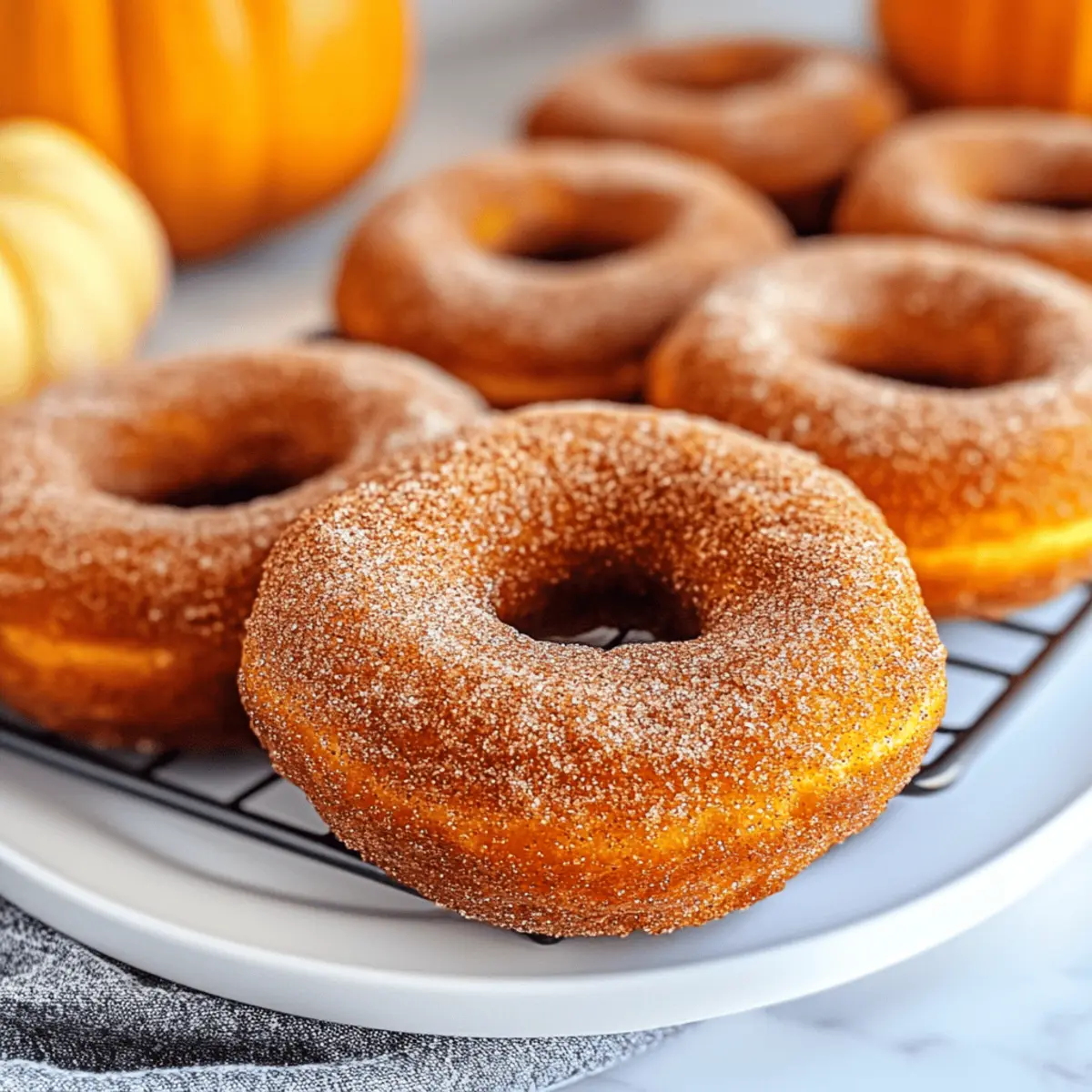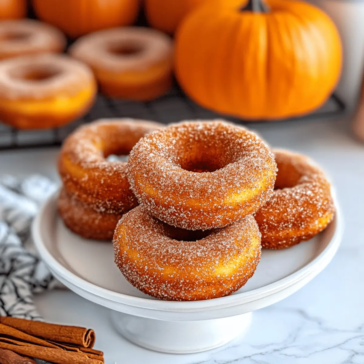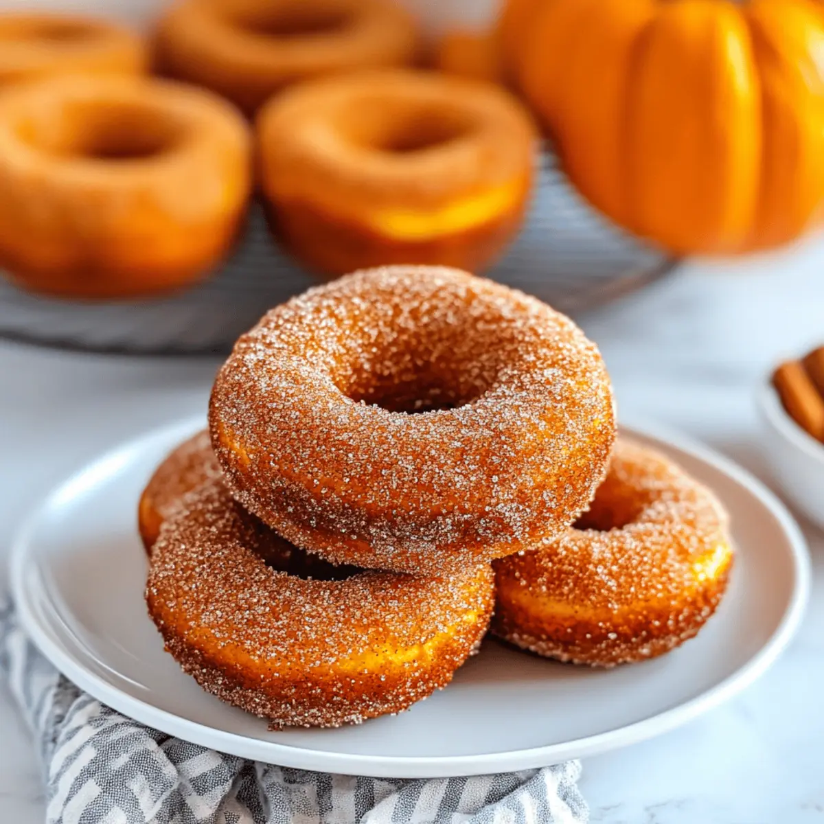 Jump to Recipe Print RecipeAs the chill of autumn settles in, I find myself gravitating towards the warm, comforting scents of pumpkin and spices wafting through my kitchen. That’s when I whip up a batch of Easy Baked Pumpkin Donuts, a recipe that truly captures the spirit of the season. Not only are these donuts quick to make, perfect for even the busiest home-chef, but they also offer a healthier alternative to traditional fried treats, allowing you to indulge without guilt. With each fluffy bite coated in sweet cinnamon sugar, it’s a delightful way to savor the cozy moments of fall. Ready to embark on a baking adventure that will fill your home with a sense of warmth and cheer? Let’s dive into the magic of these baked pumpkin donuts! Why Are Baked Pumpkin Donuts Irresistible? Warm, Cozy Flavor: With a delightful blend of pumpkin puree and aromatic spices, these donuts are the essence of autumn. Easy to Make: Combining simple ingredients and quick steps means you can whip these up in no time, perfect for even novice bakers! Health-Conscious Choice: Being baked rather than fried, they pack in flavor without the extra oil, making them a guilt-free indulgence. Versatile Variations: Get creative! Try adding chocolate chips or nuts for an extra twist, and make them your own. Perfect for Sharing: Whether it’s a cozy breakfast with coffee or a delightful afternoon snack, everyone will love these mouthwatering treats. Your adventure in baking starts here! If you enjoy more delightful pumpkin goodness, don’t forget to check out our incredible ideas for Baked Smashed Potatoes as a side for an autumn feast. Baked Pumpkin Donuts Ingredients Here’s everything you’ll need to create these delightful baked pumpkin donuts! For the Batter Pumpkin Puree – adds moisture and rich flavor; use canned or fresh for the best taste. Milk – provides the necessary liquid for batter consistency; almond or oat milk works for a dairy-free option. Vegetable Oil – ensures the donuts remain moist; consider substituting with melted coconut oil for a healthier choice. All-Purpose Flour – forms the structure of the donuts; for added fiber, whole wheat flour is a fantastic alternative. Brown Sugar – enhances sweetness and flavor richness; light brown sugar or coconut sugar can be used in its place. Pumpkin Pie Spice – brings out that signature pumpkin flavor; mix cinnamon, ginger, and nutmeg if you don’t have it on hand. Baking Powder – acts as a leavening agent, helping the donuts rise; make sure it’s fresh for optimal results. Cinnamon – adds an extra boost of warmth; adjust the amount according to your taste preference. Salt – balances the sweetness and enhances all the flavors; essential for baked goods. Nutmeg – perfectly complements the pumpkin mixture; if needed, substitute with a little more cinnamon. For the Coating Granulated Sugar – gives a sweet crunch on the outside; feel free to lessen the amount for a milder sweetness. Butter (melted) – creates a sticky surface for cinnamon sugar to adhere; you can substitute with oil for a dairy-free option. Step‑by‑Step Instructions for Baked Pumpkin Donuts Step 1: Preheat and Prepare Begin by preheating your oven to 350°F (175°C). While the oven warms up, take a donut pan and lightly coat it with non-stick spray to ensure an easy release of the baked pumpkin donuts. Set the pan aside, letting it be ready for a delicious batter that will soon fill it. Step 2: Mix Wet Ingredients In a medium mixing bowl, whisk together the pumpkin puree, brown sugar, vegetable oil, and milk until the mixture is smooth and well-combined. This should take about 1-2 minutes. Look for a creamy consistency free of lumps, as this will form the flavorful base of your pumpkin donuts. Step 3: Combine Dry Ingredients In another bowl, blend the all-purpose flour, baking powder, pumpkin pie spice, cinnamon, nutmeg, and salt. Mix these dry ingredients thoroughly for about a minute, ensuring even distribution. The aroma will start to awaken your senses, hinting at the cozy flavors that will soon come together in your baked pumpkin donuts. Step 4: Combine Wet and Dry Mixtures Gradually add the dry ingredients into the wet mixture, stirring gently until just combined. Be careful not to over-mix, as this could lead to dense donuts. You’ll want to see a few small lumps in the batter—this is a sign of tenderness. Step 5: Fill the Pan Using a piping bag or a ziplock bag with a corner snipped off, fill each cavity of the prepared donut pan evenly with the batter. Aim to fill them about 2/3 full to allow space for rising. Take a moment to admire the vibrant orange hue of your batter—it’s a joyful reminder of fall! Step 6: Bake the Donuts Place the filled donut pan in the preheated oven and bake for 15–16 minutes. Keep an eye on them; they should rise nicely and a toothpick inserted into the center should come out clean when done. Enjoy the delightful aroma that fills your kitchen as they bake! Step 7: Cool the Donuts Once baked, remove the donut pan from the oven and let it cool for about 10 minutes. Carefully transfer the donuts to a cooling rack to cool completely for another 10 minutes. This will help achieve the perfect texture—soft inside and slightly crisp outside, characteristic of delicious baked pumpkin donuts. Step 8: Prepare the Cinnamon Sugar Coating While the donuts are cooling, melt some butter in a small bowl. In another bowl, combine granulated sugar and cinnamon to create your cinnamon sugar coating. Mix well so that the cinnamon is perfectly incorporated, ready to embrace your donuts in sweetness. Step 9: Coat the Donuts Once your baked pumpkin donuts have cooled completely, brush or dip each one in the melted butter, ensuring they are fully coated. Then, roll them in the cinnamon sugar mixture until they’re evenly coated. This step will not only enhance their flavor but also give them an inviting sparkle! What to Serve with Easy Bake