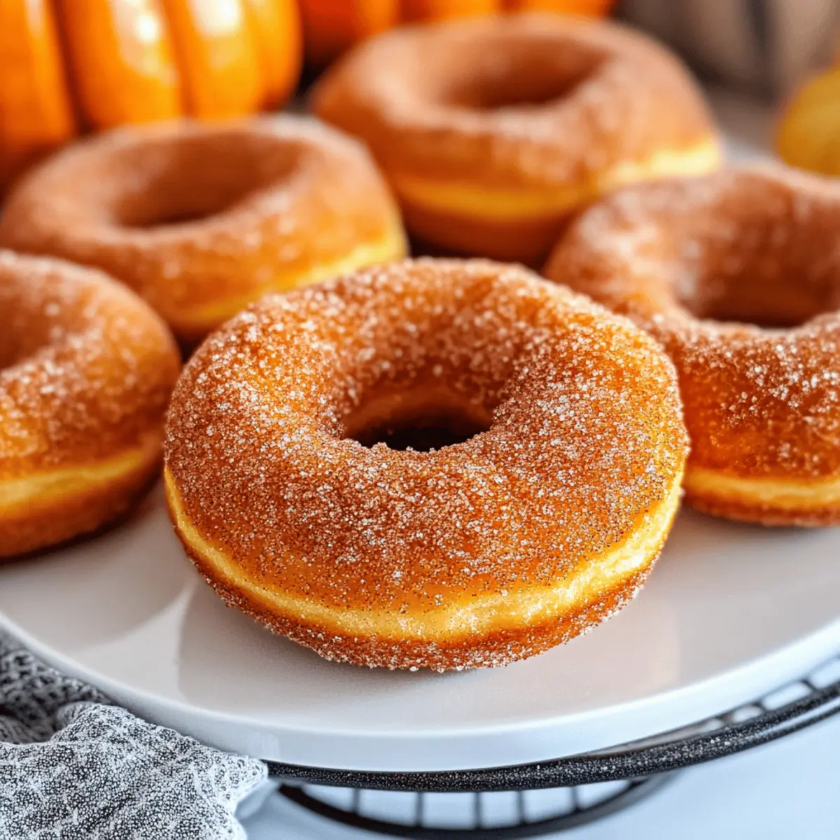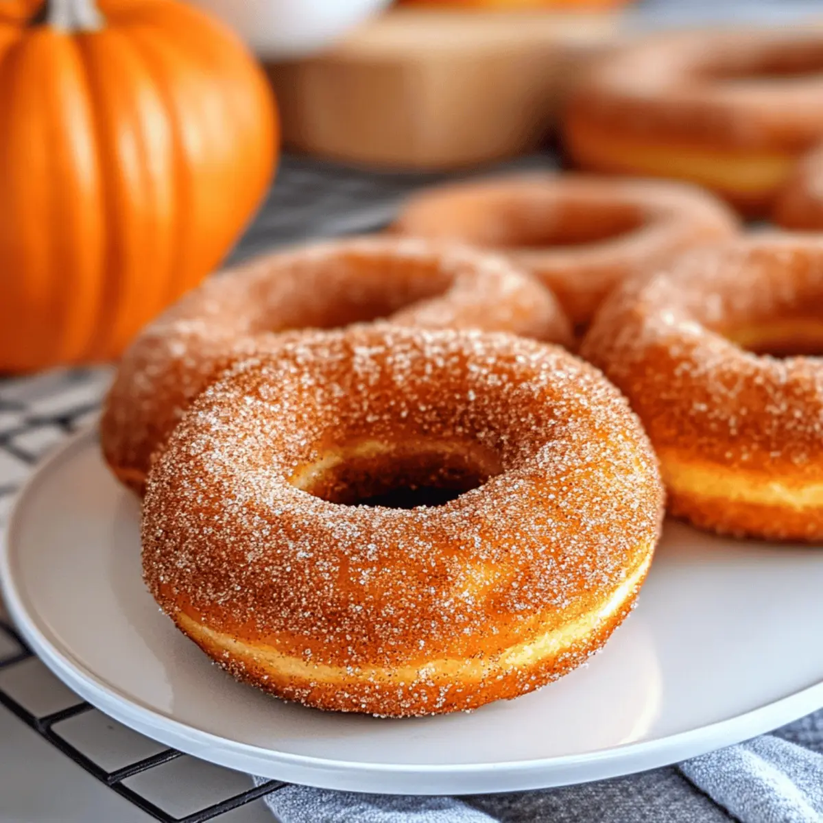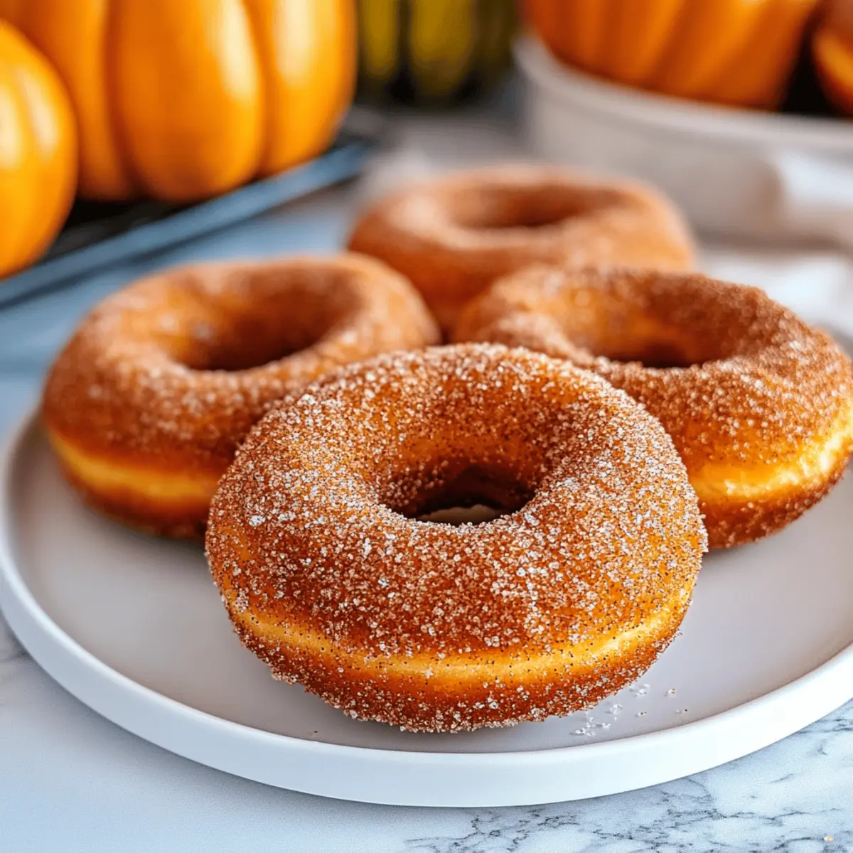 Jump to Recipe Print RecipeAs I pulled a tray of golden brown donuts from the oven, the warm aroma of pumpkin and cinnamon instantly transported me to an autumn afternoon spent at a cozy orchard. These Easy Baked Pumpkin Donuts not only capture the essence of fall but make for a healthier alternative to the typical fried treats we often crave. With their fluffy texture and a delightful cinnamon sugar coating, they’re a perfect indulgence for any time of day. Plus, this simple recipe is welcoming for bakers of all levels—those new to the kitchen or seasoned pros looking for a quick crowd-pleaser. Ready to savor the cozy flavors of fall with minimal fuss? Let’s dive into this deliciously easy pumpkin donut adventure! Why Are Baked Pumpkin Donuts So Irresistible? Irresistible Flavor: These donuts offer a delightful fusion of pumpkin and warm spices, creating a seasonal treat that captures the spirit of autumn in every bite. Easy to Make: The straightforward process ensures you can whip up a batch without any hassle, making them a perfect choice for bakers of all levels. Healthier Alternative: By being baked rather than fried, you enjoy a lighter version of classic donuts—great for guilt-free indulgence! Versatile Variations: Customize your donuts easily with various spices, or even chocolate chips, allowing for unique flavors that cater to everyone’s taste. Perfect for Sharing: These baked pumpkin donuts are a hit at gatherings, ideal for pairing with coffee or tea, and perfect for cozy mornings. Consider serving them alongside Baked Smashed Potatoes for a delightful autumn brunch! Baked Pumpkin Donuts Ingredients For the Donuts • Pumpkin Puree – adds moisture and rich flavor; feel free to use canned or homemade. • Milk – provides liquid and tenderness; any milk variety works, including dairy or non-dairy. • Vegetable Oil – keeps the donuts moist and light; can be swapped for melted coconut oil for unique taste. • All-Purpose Flour – the main structure for the donuts, ensuring a tender crumb; try gluten-free flour for an alternative. • Brown Sugar – sweetens and deepens flavor; white sugar is a decent substitute, but it may change the taste. • Pumpkin Pie Spice – infuses traditional warming spices; replace it with a mix of cinnamon, nutmeg, and ginger if needed. • Baking Powder – ensures the donuts rise; always check for freshness. • Cinnamon – enhances the flavor with warm spice notes. • Salt – balances sweetness and enhances overall flavor. • Nutmeg – deepens the taste; it can be omitted if needed. For the Cinnamon Sugar Coating • Granulated Sugar – used to coat the donuts, providing that sweet and textured finish. • Unsalted Butter – helps the cinnamon sugar adhere; replace it with coconut oil or a vegan alternative for a different option. Whether you’re indulging alone or sharing with loved ones, these Baked Pumpkin Donuts will surely warm your heart and satisfy your cravings! Step‑by‑Step Instructions for Easy Baked Pumpkin Donuts Step 1: Preheat the Oven Begin by preheating your oven to 350°F (175°C) and place a donut pan on your counter. To prevent the donuts from sticking, generously spray each cavity with non-stick cooking spray, ensuring it’s evenly coated to promote easy release once baked. Step 2: Mix Wet Ingredients In a medium bowl, combine 1 cup of pumpkin puree, ¾ cup of brown sugar, ⅓ cup of vegetable oil, and ⅓ cup of milk. Whisk these ingredients together until they form a smooth and cohesive mixture. This step should take about 2–3 minutes. You’ll know it’s ready when the mixture appears glossy and completely blended. Step 3: Prepare Dry Ingredients In a separate large bowl, whisk together 1 ½ cups of all-purpose flour, 2 teaspoons of baking powder, 1 teaspoon of pumpkin pie spice, 1 teaspoon of cinnamon, ½ teaspoon of nutmeg, and ½ teaspoon of salt. Mix these dry ingredients thoroughly for about 1 minute, ensuring that the spices are evenly distributed throughout the flour. Step 4: Combine Ingredients Gradually add the dry mixture to the wet ingredients, folding gently until just combined. Be careful not to over-mix; it should take about 1-2 minutes to achieve a thick, lumpy batter. A few small flour pockets are okay. This will ensure your Easy Baked Pumpkin Donuts remain fluffy and tender. Step 5: Fill the Donut Pan Transfer the donut batter into a piping bag or a zip-top bag with one corner snipped off. Carefully fill each donut cavity about ⅔ full, which will allow room for rising as they bake. Try to maintain even distribution for uniform baking, and this should take around 5 minutes. Step 6: Bake the Donuts Place the filled donut pan in the preheated oven and bake for 15–16 minutes. The donuts are done when they spring back slightly when touched, and a toothpick inserted into the center comes out clean. Once baked, set your timer to get those lovely golden donuts just right. Step 7: Cool in the Pan Once baked, remove the donut pan from the oven and let it cool for about 10 minutes. This brief cooling period allows the donuts to firm up just enough for easier handling. You’ll notice they’ll start pulling away from the sides of the pan as they cool. Step 8: Transfer to Cooling Rack Gently invert the donut pan to release the donuts onto a cooling rack. Allow them to cool for an additional 10 minutes, letting air circulate around them. This step ensures they set perfectly while avoiding sogginess from retained moisture. Step 9: Cinnamon Sugar Coating For the cinnamon sugar coating, melt ¼ cup of unsalted butter in a small bowl. In another shallow bowl, combine ½ cup of granulated sugar and 2 tablespoons of cinnamon. Brush each donut with melted butter or dip the tops lightly before rolling them in the cinnamon-sugar mixture for a sweet finish. How to Store and Freeze Baked Pumpkin Donuts Airtight Container: Store your baked pumpkin donuts in an airtight container at room tempera