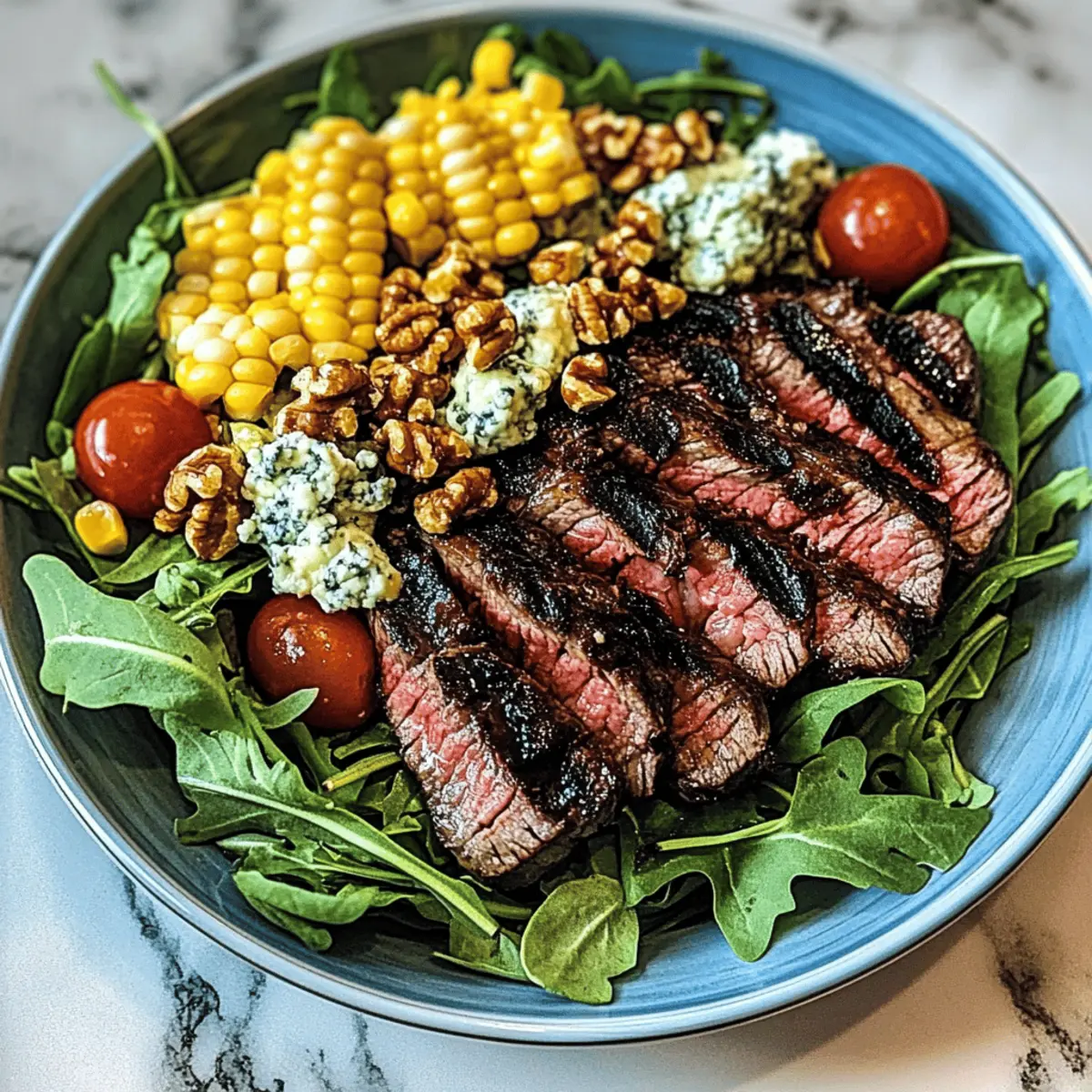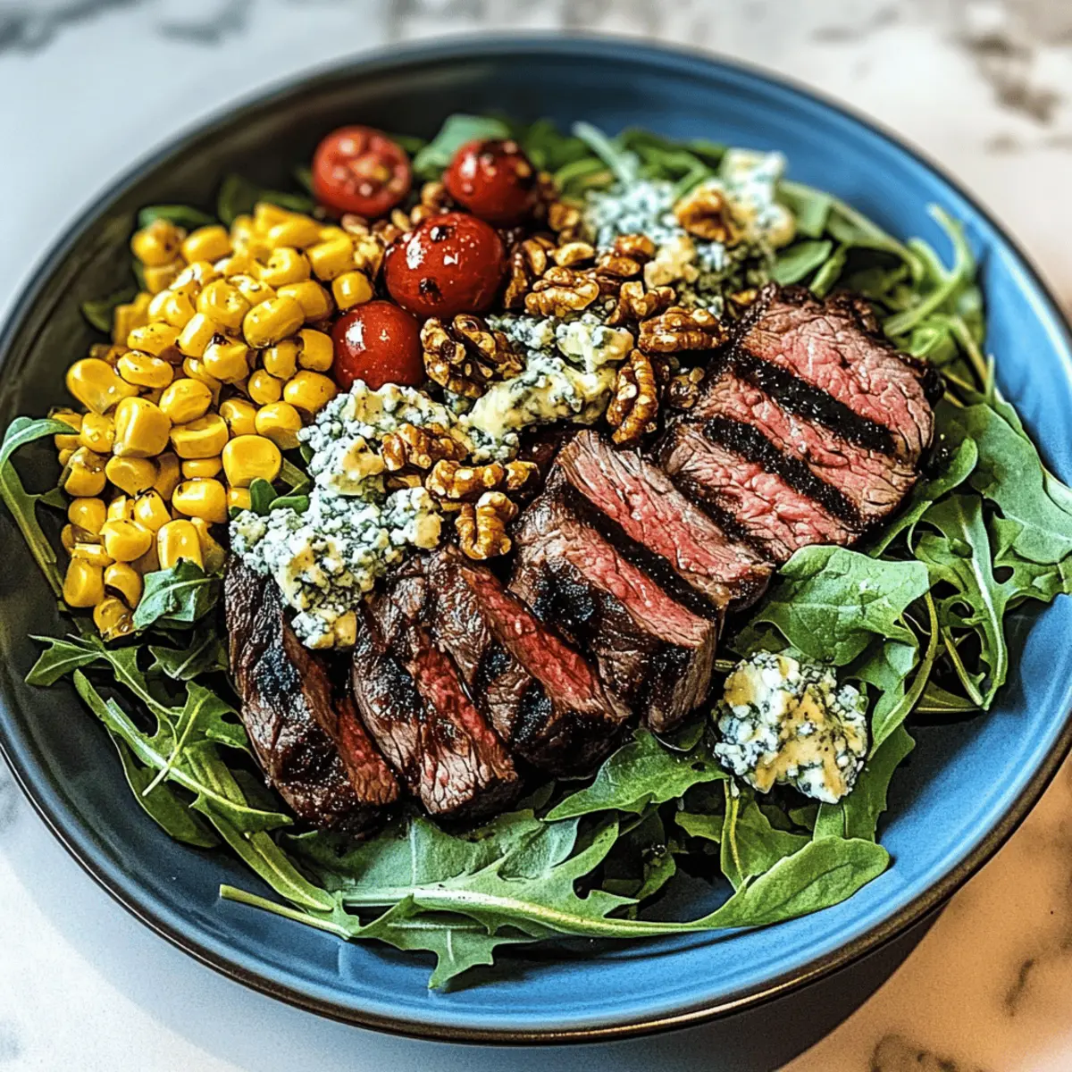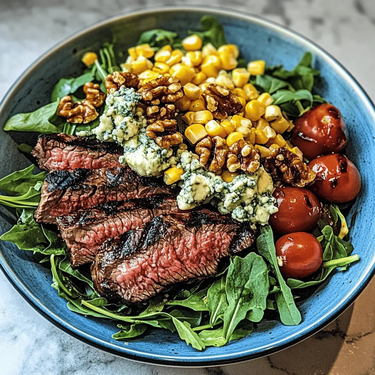 Bold flavors: The combination of grilled steak, Gorgonzola, and charred corn offers a tantalizing mix that elevates your salad game.