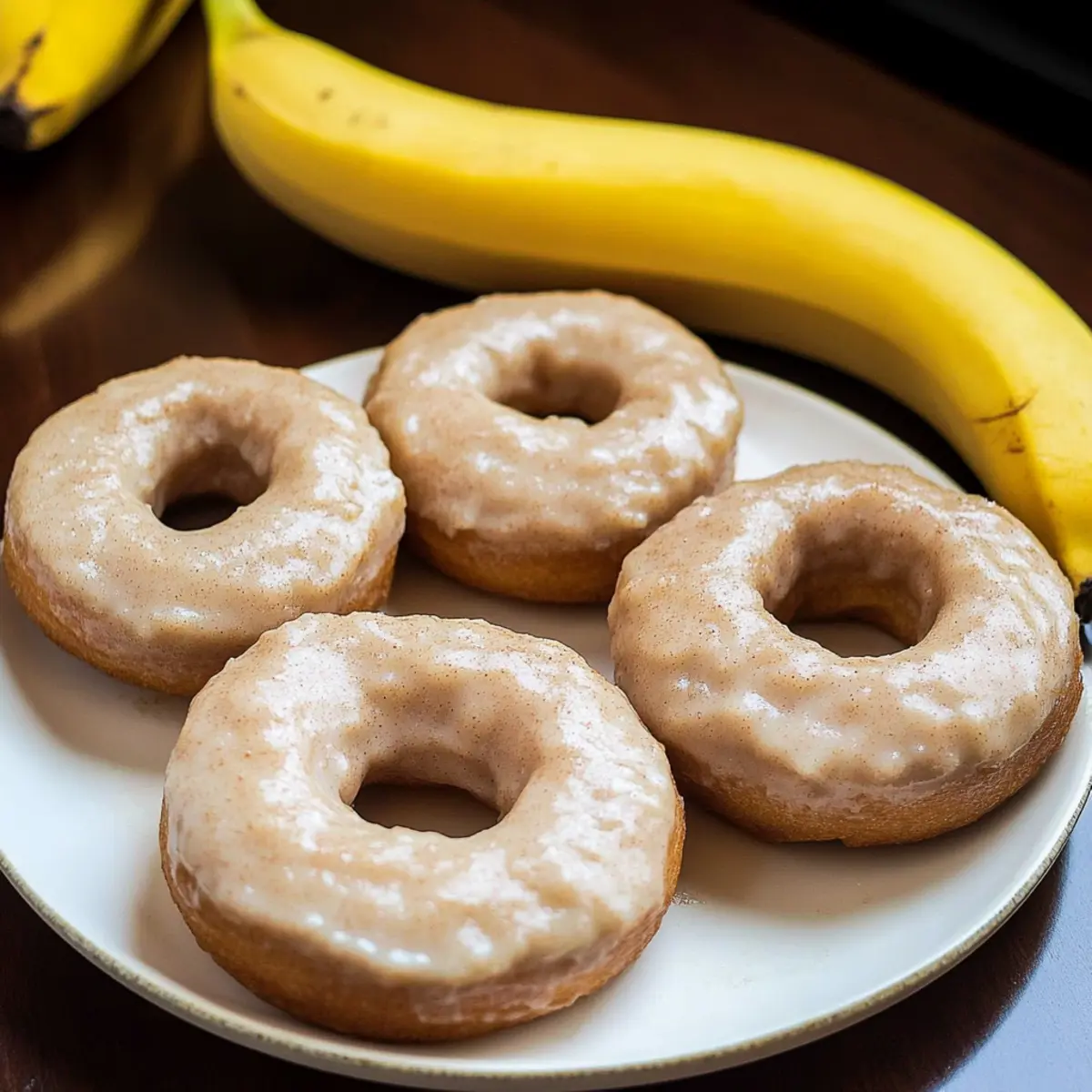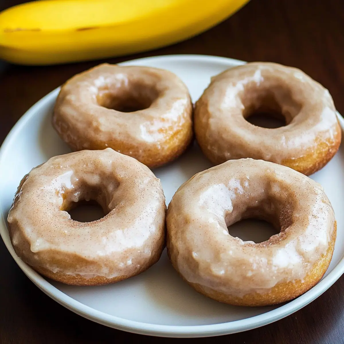 Jump to Recipe Print RecipeAs I stood in my kitchen, the sweet aroma of ripe bananas took me back to lazy Sunday mornings filled with baked goods—those mornings when time stood still, and the world outside faded away. Today, I’m excited to share my recipe for Fluffy Baked Banana Bread Donuts, a delightful twist on the classic treat we all adore. These banana bread donuts are not only quick to whip up, but they’re also perfect for those seeking a healthier breakfast option or a satisfying snack. Whether you’re gluten-free or looking for a vegan-friendly treat, this recipe is fully customizable to fit your needs. Are you ready to elevate your brunch game with these fluffy delights? Let’s dive in! Why are these donuts a must-try? Irresistible Texture: The fluffy, moist interior mimics traditional banana bread but in a fun donut shape. Healthy Indulgence: Enjoy the natural sweetness of ripe bananas with gluten-free and vegan-friendly options, making these donuts a guilt-free treat. Quick to Make: Baked in just 8 minutes, they’re perfect for busy mornings or spontaneous snack cravings. Customize Your Way: With versatile add-ins like nuts or chocolate chips, each batch can be uniquely yours! Perfect Pairing: These donuts go wonderfully with coffee or tea, making them an excellent choice for brunch. For delicious alternatives, don’t miss out on my Chunky Monkey Banana bites or Peanut Butter Banana treats! Banana Bread Donut Ingredients For the Batter • Mashed Banana – Provides natural sweetness and moisture; ensure bananas are ripe for maximum flavor. • Pure Maple Syrup or Honey – Adds sweetness; can be substituted with agave for a vegan option. • Oil or Water – Used to bind ingredients; substituting with water results in a lower-fat version. • Pure Vanilla Extract (optional) – Enhances flavor; can be omitted for a simpler taste. • Flour (white, spelt, oat, or gluten-free) – Offers structure; avoid almond or whole wheat flour for this recipe. • Baking Powder – Acts as a leavening agent for a fluffy texture. • Salt – Balances sweetness and enhances flavor. Optional Toppings • Cinnamon Sugar – A delightful sprinkle for a touch of sweetness and warmth. • Nuts (walnuts, pecans, etc.) – Adds crunch and richness; mix them in for added texture. • Chocolate Chips – For a sweet burst; perfect for chocolate lovers looking to indulge! • Cream Cheese Frosting – A rich, creamy topping for those special occasions. Feel free to create your own version of these delightful Banana Bread Donuts and enjoy every fluffy bite! Step‑by‑Step Instructions for Fluffy Baked Banana Bread Donuts Step 1: Preheat the Oven Begin by preheating your oven to 350°F (175°C). While it heats, prepare your donut pan by greasing it thoroughly with non-stick spray or oil to prevent the donuts from sticking later. This crucial step ensures a smooth release, making your fluffy baked banana bread donuts perfectly shaped and ready for indulgence. Step 2: Mix Wet Ingredients In a large mixing bowl, combine the mashed bananas, pure maple syrup (or honey), and oil (or water). If you’re using vanilla extract, add it here too. Whisk these ingredients together until well blended, creating a creamy and fragrant mixture. The natural sweetness of the bananas should sing through while ensuring a moist base for your batter. Step 3: Incorporate Dry Ingredients Next, sift in your chosen flour, baking powder, and salt into the wet mixture. Using a spatula or wooden spoon, gently fold the dry ingredients into the wet until just combined. Be careful not to over-mix; you want your batter to be lumpy and fluffy, which will give your banana bread donuts that delightful texture after baking. Step 4: Fill the Pan Spoon the batter into the prepared donut pan, filling each cavity about three-quarters full. This ensures there’s enough room for the muffins to rise beautifully without overflowing. Use a spatula to smooth the tops for an even baking surface. Imagine the warm, golden donuts to come—each one a delightful bite of banana goodness! Step 5: Bake the Donuts Place the filled donut pan in the preheated oven and bake for about 8 minutes. Keep an eye on them; they should turn golden brown and spring back when lightly pressed. To ensure they’re fully baked, insert a toothpick into the center—if it comes out clean, your fluffy baked banana bread donuts are ready to come out! Step 6: Cool and Remove Once baked, remove the donuts from the oven and let them cool in the pan for about 5 minutes. This step allows them to set, making them easier to handle. Then, gently flip the pan upside down over a cooling rack, tapping it to release the donuts. Let them cool completely before adding any toppings or serving. Banana Bread Donuts Variations & Substitutions Get ready to make these banana bread donuts uniquely yours with a few delightful twists! Gluten-Free: Substitute regular flour with gluten-free all-purpose flour for a delicious gluten-free version. Ensure your flour blend contains xanthan gum for added structure. Sweetener Swap: Use coconut sugar or a sugar substitute like Stevia to adjust the sweetness while keeping it healthy. This will give your donuts a caramel-like flavor! Nut-Free: Replace nut-based ingredients with seeds like sunflower seeds or pumpkin seeds to keep it allergen-friendly while adding a satisfying crunch. Dairy-Free: To make these donuts dairy-free, simply skip the cream cheese frosting or use a vegan frosting alternative. You can still enjoy rich flavors without dairy! Flavor Boost: Add a teaspoon of cinnamon or nutmeg to the batter for a spiced touch that beautifully complements the bananas. A hint of vanilla also works wonders! Fruity Twist: Mix in fresh berries or dried fruits like raisins before baking. They’ll add a sweet and juicy surprise in every bite. Mini Muffins: For bite-sized treats, pour the batter into a mini muffin pan instead of a donut pan. Adjust baki
