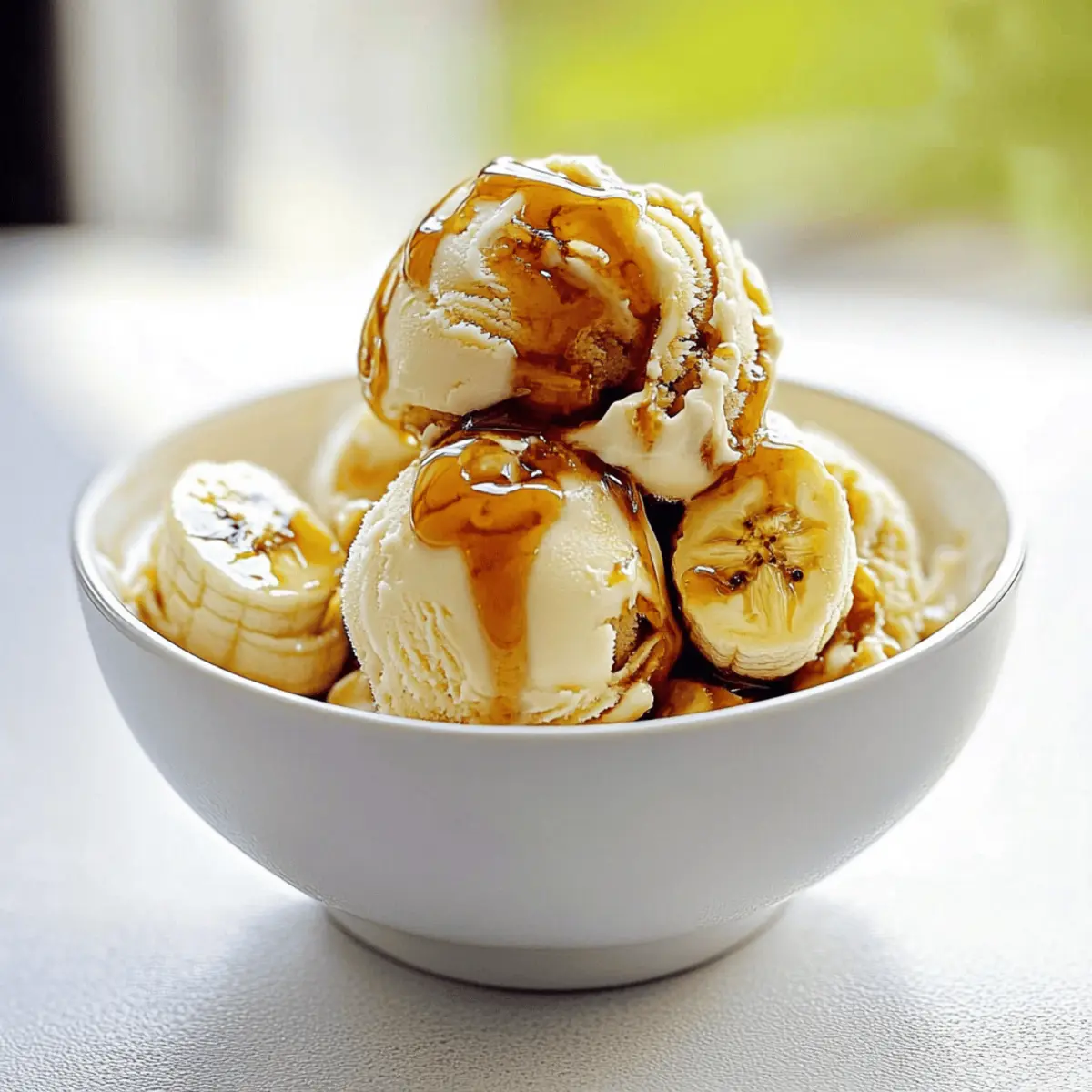 Jump to Recipe Print RecipeAs the sweet aroma of caramelized bananas wafts through my kitchen, I can almost hear the lively jazz of New Orleans playing in the background. This Easy Bananas Foster Ice Cream is my go-to recipe for a quick and indulgent dessert that never fails to impress. In just 10 minutes, you can whip up this delightful treat featuring warm, caramelized bananas drizzled over creamy vanilla ice cream, making it perfect for spontaneous gatherings or cozy family nights. Plus, with the option for a non-alcoholic twist using rum extract, everyone can join in the fun. Who wouldn’t want a scoop of this creamy, warm bliss on their dessert menu? Ready to bring a little bit of NOLA flavor into your home? Let’s dive in! Why is Bananas Foster Ice Cream a Must-Try? Indulgent, this dessert takes your taste buds on a delightful journey to New Orleans! Simplicity, with just a few ingredients, you can impress guests or indulge yourself in just 10 minutes. Versatile, it accommodates non-drinkers with a delectable rum extract substitute. Rich flavor comes from caramelized bananas and a hint of cinnamon, elevating your dessert game. Serve it warm over cool vanilla ice cream for the perfect contrast, and don’t forget to check out Fiery Chicken Ramen for a savory companion idea! Bananas Foster Ice Cream Ingredients For the Caramel Sauce • Butter – Adds richness and helps create the perfect caramel. Use vegan butter for a dairy-free version! • Brown Sugar – Brings sweetness and depth to the sauce; dark brown sugar yields a richer flavor. • Cinnamon – Enhances the warm flavor profile; nutmeg can be used as a substitute for a different spice kick. • Salt – Balances the sweetness to elevate the overall flavor; stick with fine salt for best results. For the Bananas • Bananas – The star ingredient that adds sweetness and texture; choose ripe but firm bananas for the best experience. • Rum – Traditionally adds depth and flavor; for a non-alcoholic option, use rum extract instead or simply omit it. For Serving • Vanilla Ice Cream – The creamy base that perfectly complements the warm bananas; alternatives like coconut cream can make it lactose-free. This Easy Bananas Foster Ice Cream is not only a delicious indulgence but also a quick and simple way to impress your loved ones! Step‑by‑Step Instructions for Bananas Foster Ice Cream Step 1: Melt the Butter In a large skillet, melt 4 tablespoons of butter over low heat. Stir gently until the butter is completely melted and starts to sizzle slightly, which should take about 1-2 minutes. This will create a rich base for your caramel sauce as it begins to warm and invite delicious aromas into your kitchen. Step 2: Create the Caramel Sauce Add ¾ cup of brown sugar, 1 teaspoon of cinnamon, and a pinch of salt to the melted butter. Whisk the mixture continuously for about 3-5 minutes, until it becomes smooth and bubbly. Look for a glossy caramel texture; this is the moment when the sweet scent of caramel will fill your kitchen, enticing everyone nearby! Step 3: Prepare the Bananas While the caramel is bubbling, peel and quarter 2 ripe bananas. Carefully fold the banana pieces into the bubbling caramel sauce and let them cook for about 2-3 minutes. You want the bananas to become tender yet maintain their shape, infusing the caramel with their wonderful sweetness while absorbing all those beautiful flavors. Step 4: Flambé with Style Remove the pan from heat and slowly add ¼ cup of rum (or 1 teaspoon of rum extract for a non-alcoholic option). Using a long lighter, ignite the rum carefully—stand back as the flames dance for about 30-60 seconds, burning off the alcohol. This exhilarating step enhances the flavors of your Bananas Foster Ice Cream, but take caution while flambéing to ensure safety. Step 5: Serve the Ice Cream Scoop creamy vanilla ice cream into serving bowls, creating a delightful base for your bananas. Pour the warm banana mixture generously over each scoop, allowing the rich caramel sauce to ooze down the sides. The combination of warm caramelized bananas and cold ice cream is simply heavenly—indulge while everything is still warm and melty for the best experience! Make Ahead Options These Easy Bananas Foster Ice Cream components are absolutely perfect for meal prep! You can prepare the caramel sauce up to 3 days in advance; simply store it in an airtight container in the refrigerator. To maintain the sauce’s smooth texture, gently reheat it on low when ready to serve. As for the bananas, slice them just before serving to prevent browning; however, if you prefer prepping in advance, toss the banana slices in a little lemon juice before storing them in an airtight container for up to 24 hours. When it’s time for dessert, simply warm the caramel sauce, flambé if desired, and serve it over scoops of creamy vanilla ice cream for a quick yet indulgent treat! Expert Tips for Bananas Foster Ice Cream Monitor Caramel: Keep a close eye on the caramel as it cooks; adjust the heat down if it starts to burn. Perfect caramel is key for your Bananas Foster Ice Cream. Add the Rum Safely: Always remove the pan from heat before igniting the rum to avoid flare-ups. A lid or fire extinguisher nearby can help ensure safety during flambéing. Select the Right Bananas: Use ripe but firm bananas to prevent them from becoming mushy. Tender bananas are ideal, but maintain their shape for great texture. Garnish Wisely: For added crunch and flavor, consider garnishing with toasted walnuts or pecans before serving your Bananas Foster Ice Cream—it’s a delightful touch! Serving Tip: Serve the warm banana mixture immediately over the ice cream to enjoy the incredible contrast of warm and cold textures. What to Serve with Easy Bananas Foster Ice Cream The perfect complement to your creamy dessert awaits, enhancing your culinary experience. Toasted Nuts: Adds a delightful crunch and nutty flavor that contrasts beautifully wi