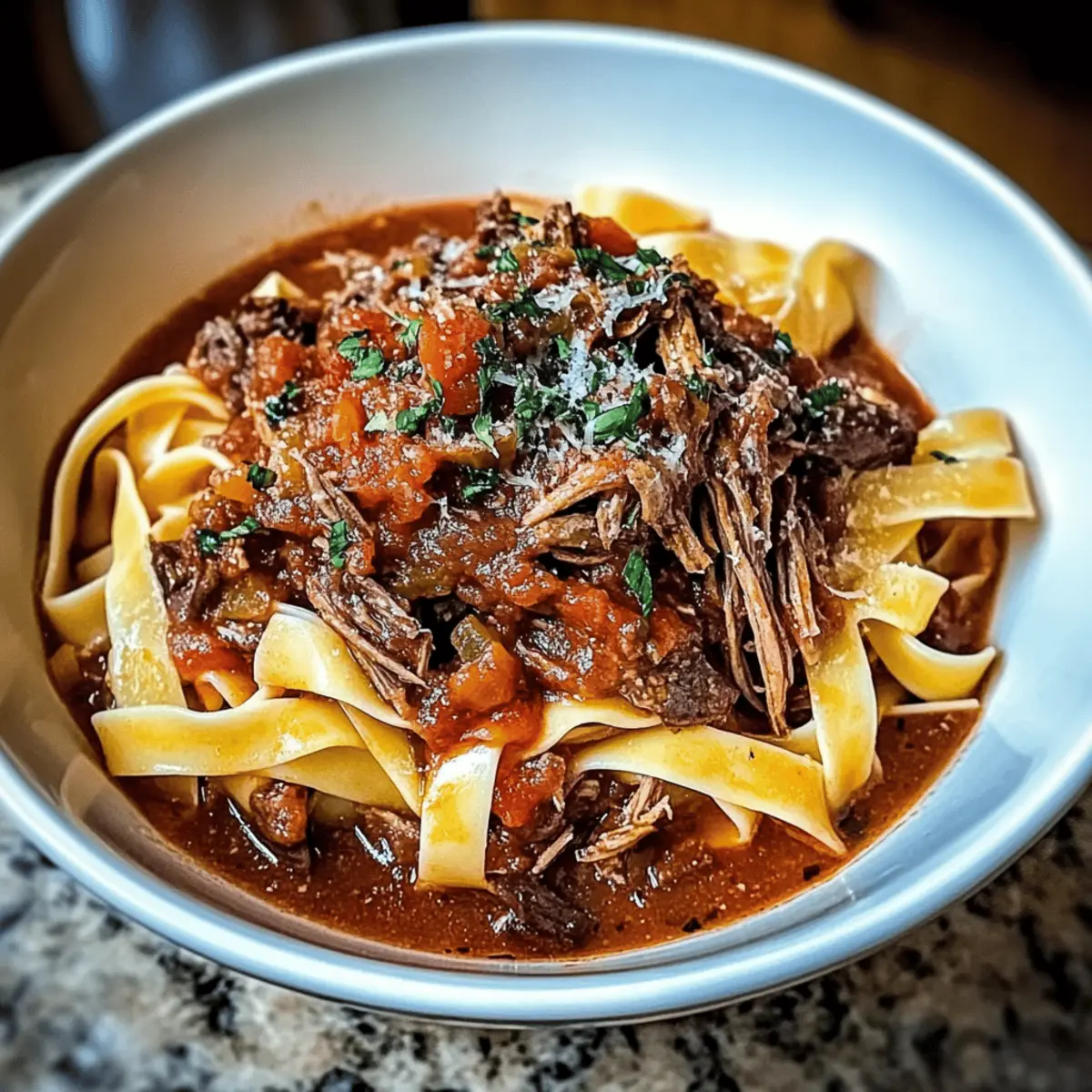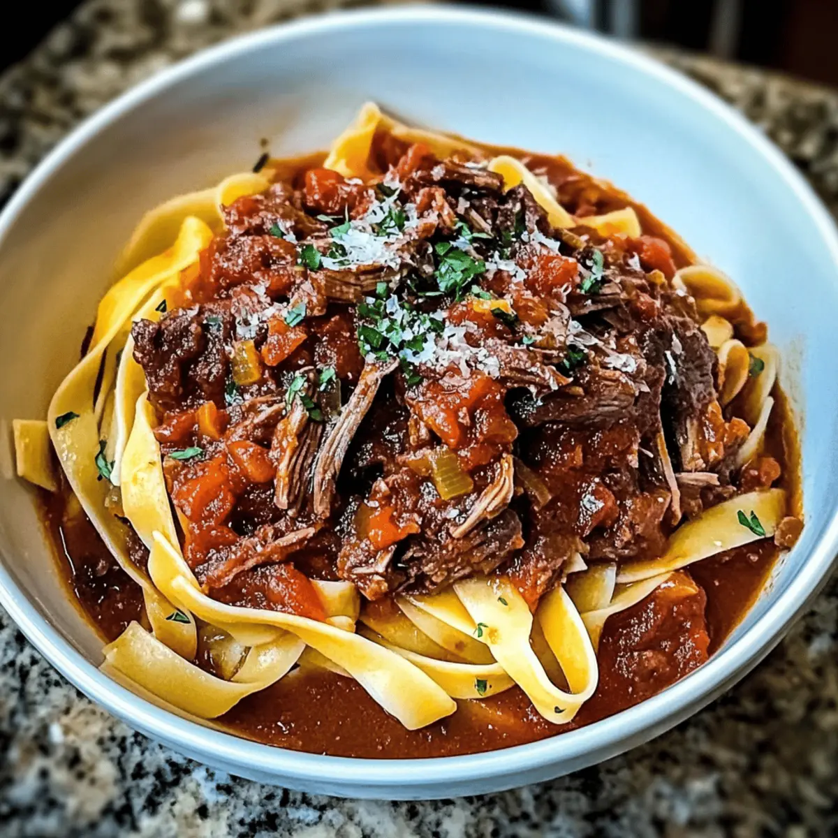 Jump to Recipe Print RecipeAs the sun rises on lazy Sundays, there’s nothing quite like the inviting aroma of a slowly simmering Beef Ragu wafting through the house. This recipe turns hands-on cooking into a cozy family affair, where the beef transforms into tender morsels that practically melt in your mouth. With its rich flavors and comforting essence, this Sunday Slow Cooker Beef Ragu is not only a time-saver—allowing you to set it and forget it—but also a meal that everyone will adore. It’s an effortless way to gather around the table, creating a warm atmosphere perfect for sharing stories and laughter. Are you ready to dive into this heartwarming feast that promises to elevate your family dinner? Why is Beef Ragu a Family Favorite? Comforting, this Beef Ragu transforms your Sundays into a heartwarming family gathering. Easy Preparation means less time in the kitchen and more time with loved ones—just set it and forget it! Flavorful Delight is guaranteed, as the tender beef simmers in a rich, aromatic sauce that envelops your pasta beautifully. It’s versatile; serve it with pappardelle, crusty bread, or even pair it with a fresh side salad for a complete meal. Want to explore other easy yet delicious options? Check out these Ricotta Beef Stuffed or Ground Beef Orzo recipes. Beef Ragu Ingredients • Discover the essential ingredients to create a mouthwatering Beef Ragu. For the Beef Boneless Beef Chuck Roast – The main protein choice; its marbling gives you that melt-in-your-mouth texture, perfect for slow cooking. For the Aromatics Onion – A flavor base that sweetens as it cooks; opt for shallots for a milder twist. Carrot – Adds a natural sweetness and depth; feel free to swap with parsnips for a unique flavor. Celery – Offers aromatic balance to the dish, but can be omitted if preferred. Garlic – Enhances overall flavor; fresh is best, but you can use powdered in a pinch. For the Sauce Red Wine – Infuses complexity into the sauce; replace it with beef broth mixed with balsamic vinegar for acidity. Beef Broth – Essential for cooking; choose homemade or low-sodium for a healthier option. Canned Tomatoes (crushed or diced) – This forms the base of your sauce, providing body and acidity; fresh tomatoes can substitute when in season. Bay Leaves – Use to enhance the aroma; remember to remove them before serving. For the Seasoning Dried Oregano – Adds depth; fresh substitutes can elevate the flavor profile if available. Dried Thyme – Another herb that enriches the dish with lovely flavors. Salt and Pepper – The essential seasoning duo; adjust them to suit your palate. Enjoy crafting this delightful Beef Ragu with these carefully chosen ingredients, sure to make your family gatherings memorable! Step‑by‑Step Instructions for Sunday Slow Cooker Beef Ragu Step 1: Prep Ingredients Begin by preparing your ingredients for the Sunday Slow Cooker Beef Ragu. Chop one onion, two carrots, and two stalks of celery into small pieces, and mince three cloves of garlic. Arrange them in a bowl for easy access. This initial step ensures everything is ready for your delicious and aromatic ragu. Step 2: Sear Beef In a large skillet, heat a tablespoon of oil over medium-high heat. Season a boneless beef chuck roast with salt and pepper, then brown it on all sides for about 4-5 minutes each side until a deep golden crust forms. This crucial step enhances the flavor of the beef ragu, providing a rich base for your sauce. Step 3: Combine in Slow Cooker Once the beef is seared, transfer it to your slow cooker. Add the chopped onion, carrot, celery, and minced garlic to the pot, followed by one cup of red wine, two cups of beef broth, and a can of crushed tomatoes. Toss in bay leaves, dried oregano, and thyme for seasoning. This creates a beautiful medley of flavors that will meld together as it cooks. Step 4: Cook Set your slow cooker to low and let the beef ragu simmer for 6 to 8 hours, or on high for 3 to 4 hours. A perfectly cooked ragu is characterized by fall-apart tender beef that can be easily shredded. The sauce should thicken and the aroma will fill your kitchen, creating a cozy atmosphere. Step 5: Shred Beef After the cooking time is complete, carefully remove the beef roast from the slow cooker and place it on a cutting board. Use two forks to shred the beef into bite-sized pieces, ensuring it disperses beautifully throughout the sauce. This step transforms the meat into tender morsels that soak up the rich flavors of your beef ragu. Step 6: Serve Return the shredded beef to the slow cooker, mixing it well with the sauce to fully incorporate the flavors. Serve the Sunday Slow Cooker Beef Ragu over pappardelle pasta or alongside crusty bread. This final step creates a heartwarming meal that is sure to bring your family together around the table. Beef Ragu Variations & Substitutions Feel free to customize your Beef Ragu to suit your tastes and dietary needs; it’s an extremely flexible dish that invites creativity! Dairy-Free: Swap out any cheese served alongside for non-dairy options or simply enjoy it without cheese. Pasta Alternatives: Use gluten-free pasta or zucchini noodles to accommodate dietary restrictions while still enjoying that delicious sauce. Veggie Boost: Stir in chopped mushrooms or bell peppers to add even more flavor and nutrition. These ingredients complement the ragu beautifully. Heat it Up: Add a pinch of red pepper flakes or diced jalapeños for a spicy twist that can give your ragu an exciting kick. Protein Swap: If you’re looking for a lighter option, use ground turkey or chicken instead of beef; it will still simmer to perfect tenderness. Herbal Twist: Experiment with fresh basil or parsley at the end for a burst of color and flavor. It adds a nice fresh touch to the ragu. Wine Options: If you prefer cooking without wine, feel free to add extra beef broth with a splash of vinegar for that depth without the alcohol. Richness Factor: For