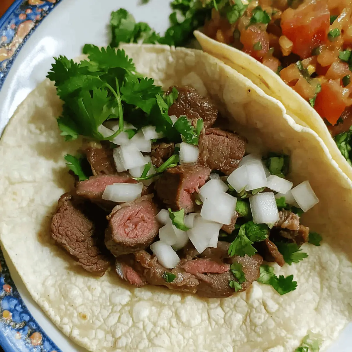 Jump to Recipe Print RecipeThe soft sizzle of fresh tortillas on the griddle brings back memories of vibrant street markets, where food is more than just a meal—it’s a celebration. In my travels through Mexico, I stumbled upon a gem: Beef Tongue Tacos, or Tacos de Lengua. This dish combines rich and tender beef tongue, harmoniously paired with bright cilantro and zesty lime, creating a truly comforting experience. What I love most about this recipe is its simplicity; it transforms a unique cut of meat into a delicious treat that not only tantalizes the taste buds but also provides a delightful twist to your usual taco night. Plus, it’s a fantastic way to impress guests without spending hours in the kitchen. Are you ready to explore this delicious adventure and add a new favorite to your repertoire? Why Are Beef Tongue Tacos So Special? Unique Texture: Experience the tender, melt-in-your-mouth feel that only beef tongue can provide. Simple Preparation: With just a few ingredients, this recipe transforms a unique cut into a delicious masterpiece. Flavorful Toppings: Fresh cilantro, zesty lime, and crunchy onions make every bite burst with flavor. Crowd-Pleaser: These tacos will surely impress friends and family, sparking joy at your next taco night! Versatile Options: Serve with a side of homemade refried beans or experiment with different toppings like avocado for a personalized twist. Explore more on how to elevate your taco game with recipes like Epic Beef Nachos! Beef Tongue Taco Ingredients • Dive into the heart of flavor with these essential ingredients! For the Taco Filling Beef Tongue – This is the star ingredient, delivering rich flavor and tender texture that makes these tacos unforgettable. Salt – Enhances the natural flavors of the beef tongue; adjust according to personal taste and health preferences. For the Toppings Cilantro – Adds a fresh, herbaceous note that perfectly complements the richness; if you prefer something milder, parsley is a great substitute. White Onions – Provides a crunchy texture and sharpness; yellow onions can be swapped out for a bit of sweetness. Lime Juice – Brightens the dish and adds a tangy kick; always opt for freshly squeezed juice for the best flavor. For Serving Tortillas – Warm corn or flour tortillas are perfect for wrapping the beef tongue and toppings, creating a delightful pocket of flavor. Step‑by‑Step Instructions for Beef Tongue Tacos Step 1: Preparation Begin by rinsing the beef tongue under cold water to remove any impurities. Place the tongue in a large pot and cover it completely with water. Add a generous pinch of salt for flavor enhancement. Bring the water to a vigorous boil over medium-high heat, then lower the heat to a gentle simmer. Step 2: Cooking Allow the beef tongue to simmer gently for about 2 hours. The meat should be fork-tender when done; check for doneness by piercing it with a fork. As it cooks, the outer layer will soften and begin to tighten, which is a good visual cue that it’s on the right track. Step 3: Cooling and Peeling Once the tongue is tender, carefully remove it from the pot using tongs. Place it on a cutting board and allow it to cool for 10-15 minutes. This will make it easier to handle. After cooling, use a sharp knife to gently peel away the outer skin, revealing the succulent meat underneath. Step 4: Chopping After peeling, cut the beef tongue into small, bite-sized pieces, about ½ inch in size, for your tacos. Aim for uniform pieces to ensure an even texture and delicious flavor in every bite. Set the chopped tongue aside while you prepare the fresh toppings for your Beef Tongue Tacos. Step 5: Toppings Prepare your toppings by finely chopping the cilantro and white onions. Combine them in a bowl, then drizzle with fresh lime juice to bring out the flavors. This pico de gallo-style topping will add a refreshing crunch that beautifully complements the rich beef tongue. Step 6: Assembly Warm your tortillas in a dry skillet over medium heat for about 30 seconds on each side until pliable. Once heated, lay the tortillas flat and fill them with a generous amount of the chopped beef tongue. Top each taco with the cilantro-onion mixture, ensuring each bite is packed with flavor. Step 7: Serving Serve the assembled Beef Tongue Tacos immediately with lime wedges on the side for extra zest. Feel free to add any additional toppings you desire, such as slices of avocado or a dash of hot sauce. Enjoy the vibrant tastes of your freshly made tacos! Storage Tips for Beef Tongue Tacos Refrigerator: Store any leftover beef tongue tacos in an airtight container in the fridge for up to 3 days. This helps maintain freshness while preventing odors from other foods. Freezer: If you want to keep the beef tongue for a longer period, wrap the cooked tongue tightly in plastic wrap and aluminum foil, then freeze for up to 3 months. Thaw in the fridge before reheating. Reheating: To reheat, warm the tacos gently in a skillet over low heat until heated through, or microwave for 30 seconds, ensuring they stay moist. Toppings Storage: Keep chopped toppings separate when storing leftovers, as fresh cilantro and onions will lose their crunch if stored with the tacos. What to Serve with Tender Beef Tongue Tacos? A culinary adventure awaits when you pair these delicious tacos with side dishes and drinks that enhance their rich flavors. Crispy Corn Salsa: A vibrant medley of sweet corn, lime, and peppers gives a refreshing crunch that’s a perfect contrast to tender meat. Cool Cucumber Salad: Light and crisp, a cucumber salad dressed with vinegar and herbs balances the richness of the beef tongue beautifully. Chunky Guacamole: Creamy avocado mixed with lime and cilantro provides a luscious complement, making each bite a taste experience. Fresh Radish Slices: Crunchy and peppery, radishes add a nice zing that brightens the flavors of the tacos without overwhelming them. Spicy Pickled Vegetables: Their tangy 