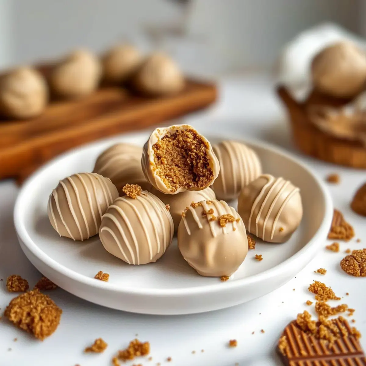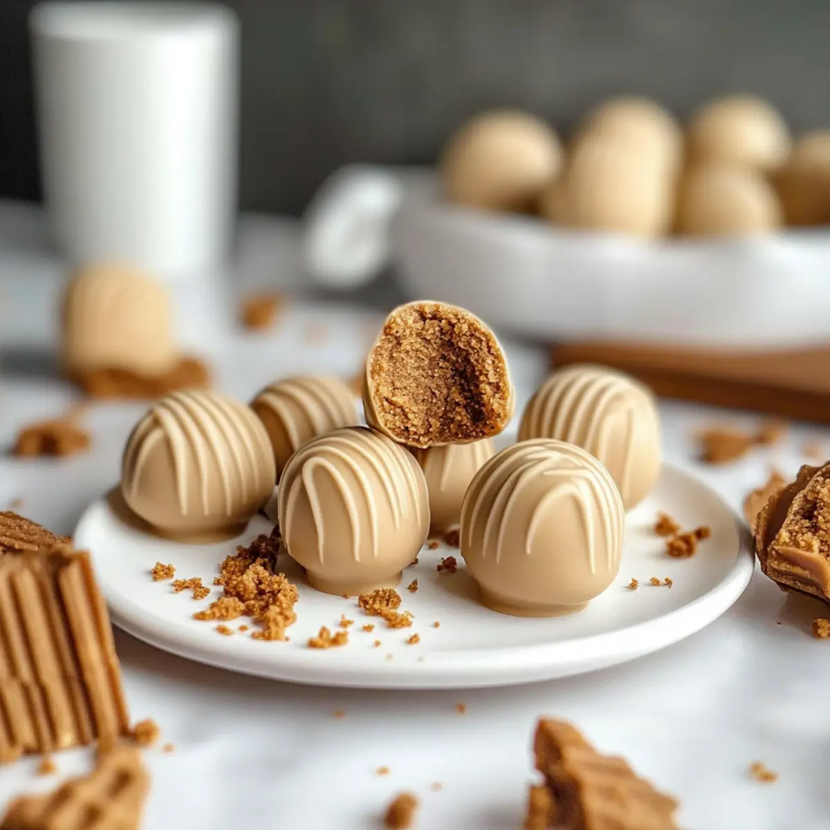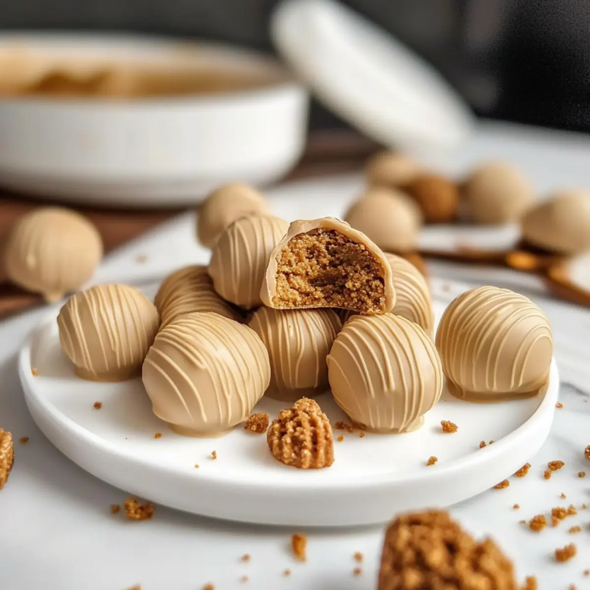 Jump to Recipe Print RecipeLet’s take a moment to appreciate the sweet little luxuries life has to offer. These 4-Ingredient No Bake Biscoff Truffles are not just a treat; they’re a magical creation that transforms a few simple pantry staples into a moment of indulgence. With only four ingredients, this easy recipe brings the delightful flavors of Speculoos cookies to life, making it an absolute must-try for anyone who loves homemade sweets. The best part? They require zero baking—ideal for when you’re short on time or simply want to skip the oven! Whether you’re treating yourself or looking for the perfect gift that will impress friends and family, these truffles deliver a creamy, dreamy finish. Curious about how to whip up this simple yet sensational dessert? Let’s dive in! Why are Biscoff Truffles so irresistible? Simplicity at its finest: Just four ingredients come together effortlessly, making these no-bake Biscoff truffles a breeze to create. Creamy, Dreamy Texture: The combination of cookie butter and cream cheese results in a rich, creamy center that melts in your mouth. Versatile Delight: Feel free to customize! Swap cookie butters for different flavors or roll them in nuts to make them your own. Quick and Easy: With no baking required, you can whip these up anytime you’re craving something sweet or unexpected, like alongside a cup of coffee or hot chocolate. Crowd-Pleaser: These decadent truffles are perfect for gatherings, holidays, or as heartfelt gifts that are sure to impress. Don’t forget to check out my Tiramisu Truffles Decadent for more delightful ideas! Biscoff Truffles Ingredients For the Truffle Base • Biscoff Cookie Crumbs – Finely ground to provide the essential flavor and texture for the truffles; you can use store-bought or pulse Biscoff cookies until crumbly. • Cookie Butter (Biscoff Spread) – Adds a luscious creaminess; feel free to substitute with other cookie butters for variety. • Cream Cheese – Acts as the binding agent for a creamy mixture; using room temperature makes it easier to blend seamlessly. • Ground Cinnamon – An optional addition for a touch of warmth; swap with nutmeg if you’re looking for a different spice kick. For the Coating • White Chocolate – This sweet chocolate creates a smooth outer layer; dark chocolate can be used for a richer taste. • Extra Cookie Butter – Used for melting with white chocolate to achieve the perfect consistency for the coating. Now that we have everything we need, let’s transform these simple ingredients into tempting Biscoff truffles that are bound to delight! Step‑by‑Step Instructions for Biscoff Truffles Step 1: Prepare Cookie Crumbs Start by pulsing Biscoff cookies in a food processor until they are finely ground, resembling sand. This will create the flavorful base for your Biscoff truffles. Aim for about a cup of crumbs, which will blend beautifully with the other ingredients. Set the cookie crumbs aside in a mixing bowl as you move on to the next step. Step 2: Combine Mixture In a large mixing bowl, combine room-temperature cream cheese and cookie butter. Using an electric mixer, beat them together on medium speed until the mixture is smooth and creamy, which should take about 2-3 minutes. This creamy base will be the heart of your truffles, giving them that irresistible texture. Step 3: Mix in Dry Ingredients Now, gradually add the prepared cookie crumbs and optional ground cinnamon to the creamy mixture. Stir well using a spatula or the mixer on low speed for about 1-2 minutes until everything is fully combined. The mixture should feel slightly crumbly but hold together when squeezed in your hand, creating the ideal truffle consistency. Step 4: Form Truffles Scoop out portions of the mixture using a 1-inch cookie scoop and place them on a parchment-lined baking sheet. With your hands, gently roll each scoop into a smooth ball. The goal here is to make your Biscoff truffles uniform in size, so each bite is consistently delicious and delightful. Step 5: Chill Dough Once all the truffles are formed, place the baking sheet in the freezer for about 15-30 minutes, allowing them to firm up. This chilling step is crucial for working with the truffles; they’ll be easier to coat and less likely to melt in your hands during the next steps. Step 6: Melt Coating While your truffles are chilling, prepare the coating by melting white chocolate along with the extra cookie butter in a microwave-safe bowl. Heat them in 30-second intervals at medium power, stirring in between, until the mixture is completely smooth and shiny, which usually takes about 1-2 minutes. Step 7: Coat Truffles Take the chilled Biscoff truffles from the freezer and dip each one into the melted chocolate mixture. Coat them completely, allowing any excess chocolate to drip off. Place the coated truffles back onto the parchment-lined baking sheet, making sure they have some space in between for a clean finish. Step 8: Decorate For a finishing touch, you can drizzle additional melted chocolate over the coated truffles and sprinkle them with extra cookie crumbs. This not only adds visual appeal but also enhances the Biscoff flavor. Get creative with your designs as you personalize your Biscoff truffles! Step 9: Set Coating Finally, transfer the decorated truffles to the refrigerator and let them chill for about 30 minutes, or until the chocolate coating is firm. This ensures each truffle has a lovely, sturdy shell. Once set, they’re ready to be enjoyed or gifted—your delightful Biscoff truffles await! Make Ahead Options These No Bake Biscoff Truffles are a fantastic option for meal prep and can save you valuable time on busy days! You can prepare the truffle mixture up to 24 hours in advance—just form the balls and chill them as directed, then cover the baking sheet tightly with plastic wrap. For the best texture, coat the truffles in melted chocolate just before you’re ready to serve them; this ensu