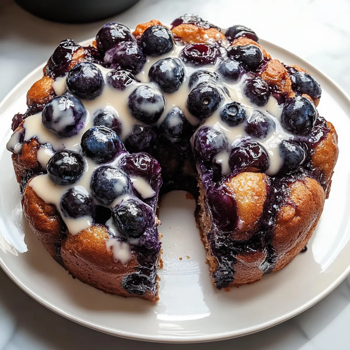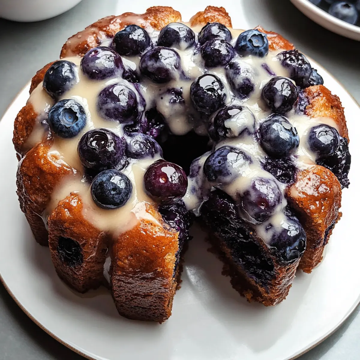 Jump to Recipe Print RecipeAs I sift through memories of lazy Sunday mornings, I can’t help but think about the irresistible aroma of freshly baked goods wafting through the house. This is where my love for Blueberry Monkey Bread began—a delightful twist on traditional recipes that combines soft, buttery dough with luscious, juicy blueberries. Ideal for gatherings or even a cozy brunch for two, this recipe is a champion for both novice bakers and experienced chefs alike. Not only does it come together quickly (hello, no-mess cleanup), but each warm, pull-apart piece is guaranteed to be a crowd-pleaser that fills hearts and bellies. Curious about how to create your own moment of nostalgia in the kitchen? Let’s get started! Why Is Blueberry Monkey Bread a Must-Try? Easy to Make: This recipe requires just a few basic ingredients and simple steps, making it perfect for everyone—from novices to seasoned bakers. Perfectly Sweet: The combination of fresh blueberries and caramelized sugar creates a delectable sweetness that you won’t be able to resist. Versatile Enjoyment: Serve this Blueberry Monkey Bread warm at brunch, or make it a delicious dessert to wow your guests, just like our beloved Blueberry Crumble Cheesecake! Time-Saver: With minimal prep and bake time, you can enjoy this delightful treat in under two hours—ideal for those spontaneous baking moments. Crowd-Pleasing Appeal: Whether it’s a family gathering or a cozy brunch for two, this monkey bread is sure to become a favorite, filling your home with a comforting aroma that invites everyone to the table! Blueberry Monkey Bread Ingredients Get ready to whip up a delightful treat with these essential ingredients! For the Dough All-purpose Flour – a key ingredient providing structure for your soft, pillowy dough. Sugar – sweetens the dough and aids in that perfect caramelization. Yeast – the magic leavener that makes your bread fluffy and airy. Salt – enhances flavor and keeps the yeast in check for optimal rising. Butter – adds richness and tenderness to every gooey bite. Milk – brings moisture and activates the yeast for a perfect rise. Eggs – enrich the dough and help bind everything together. For the Blueberry Filling Fresh Blueberries – bursting with flavor; you can also use frozen blueberries for convenience. Optional Flavor Enhancer Vanilla Extract – adds a lovely depth of flavor; feel free to leave it out if you prefer a simpler taste. These wholesome ingredients come together to create a Blueberry Monkey Bread that is not just a feast for the eyes, but a delicious, sweet escape for your taste buds. Happy baking! Step‑by‑Step Instructions for Blueberry Monkey Bread Step 1: Prepare the Dough In a large mixing bowl, whisk together 4 cups of all-purpose flour, ½ cup of sugar, 1 teaspoon of salt, and 2 teaspoons of yeast. With a mixing spoon, blend in ½ cup of melted butter, 1 cup of warm milk (between 100-110°F), and 2 large eggs. Stir until the mixture forms a shaggy dough, then knead on a floured surface for about 8-10 minutes until smooth and elastic. Step 2: First Rise Place the kneaded dough in a greased bowl, covering it with a damp cloth. Let it rise in a warm spot for approximately 1 hour, or until it doubles in size. You’ll know it’s ready when it feels puffy and has risen visibly above the edges of the bowl, creating a cozy atmosphere of anticipation for your delightful Blueberry Monkey Bread. Step 3: Prepare Blueberries Once the dough has risen, gently punch it down to release the air. Carefully fold in 1 ½ cups of fresh blueberries, ensuring they are evenly distributed throughout the dough without breaking too many of them. The burst of fruity flavor that your Blueberry Monkey Bread will offer is worth this gentle approach to keep those blueberries intact. Step 4: Shape Loaves Divide the dough into 20-24 equal pieces and roll each piece into a small ball. Layer the dough balls in a greased bundt pan, stacking them on top of each other for that coveted pull-apart effect. This layering not only creates a beautiful display but also encourages the flavors of the blueberries and dough to meld while baking. Step 5: Second Rise Cover the bundt pan with plastic wrap. Allow the dough balls to rise for another 30 minutes at room temperature until nearly doubled in size, puffing up and almost touching the top of the pan. This step is key in achieving that soft, fluffy texture that makes this Blueberry Monkey Bread so irresistible. Step 6: Bake Preheat your oven to 350°F (175°C). Once preheated, bake the assembled Blueberry Monkey Bread for 30-35 minutes, or until the top is golden brown and a toothpick inserted into the center comes out clean. As the bread bakes, enjoy the heavenly aroma that will fill your kitchen, signaling a delightful treat is on the way! Step 7: Cool & Serve After baking, let your Blueberry Monkey Bread cool in the pan for about 10 minutes. Then, carefully invert it onto a serving platter. Allow it to cool slightly before pulling apart and serving warm. You’ll want to savor those gooey, sweet bites filled with fresh blueberries that are sure to charm family and friends alike. Make Ahead Options These Blueberry Monkey Bread bites are perfect for meal prep enthusiasts! You can prepare the dough up to 24 hours in advance by mixing and allowing it to rise in the refrigerator. To do this, simply follow the steps to prepare the dough, then cover it tightly with plastic wrap and place it in the fridge instead of letting it rise at room temperature. By refrigerating, you’ll slow down the yeast activity, keeping the dough fresh and flavorful. When ready to bake, allow the dough to come to room temperature before gently folding in the blueberries and proceeding with the second rise and bake. Not only does this save time on busy mornings, but it ensures that each piece of your Blueberry Monkey Bread will be just as delicious and fluffy as if you made it fresh! Storage T