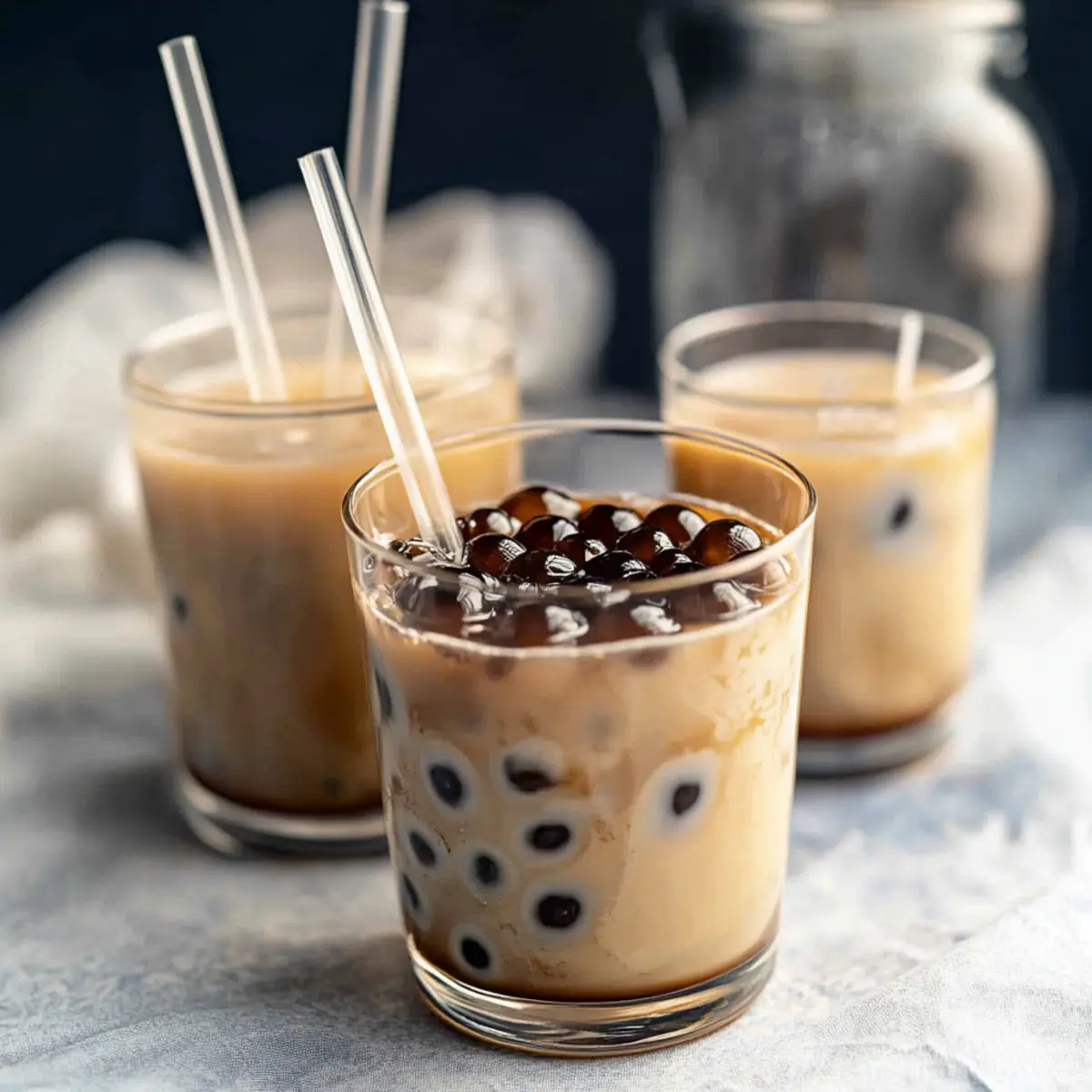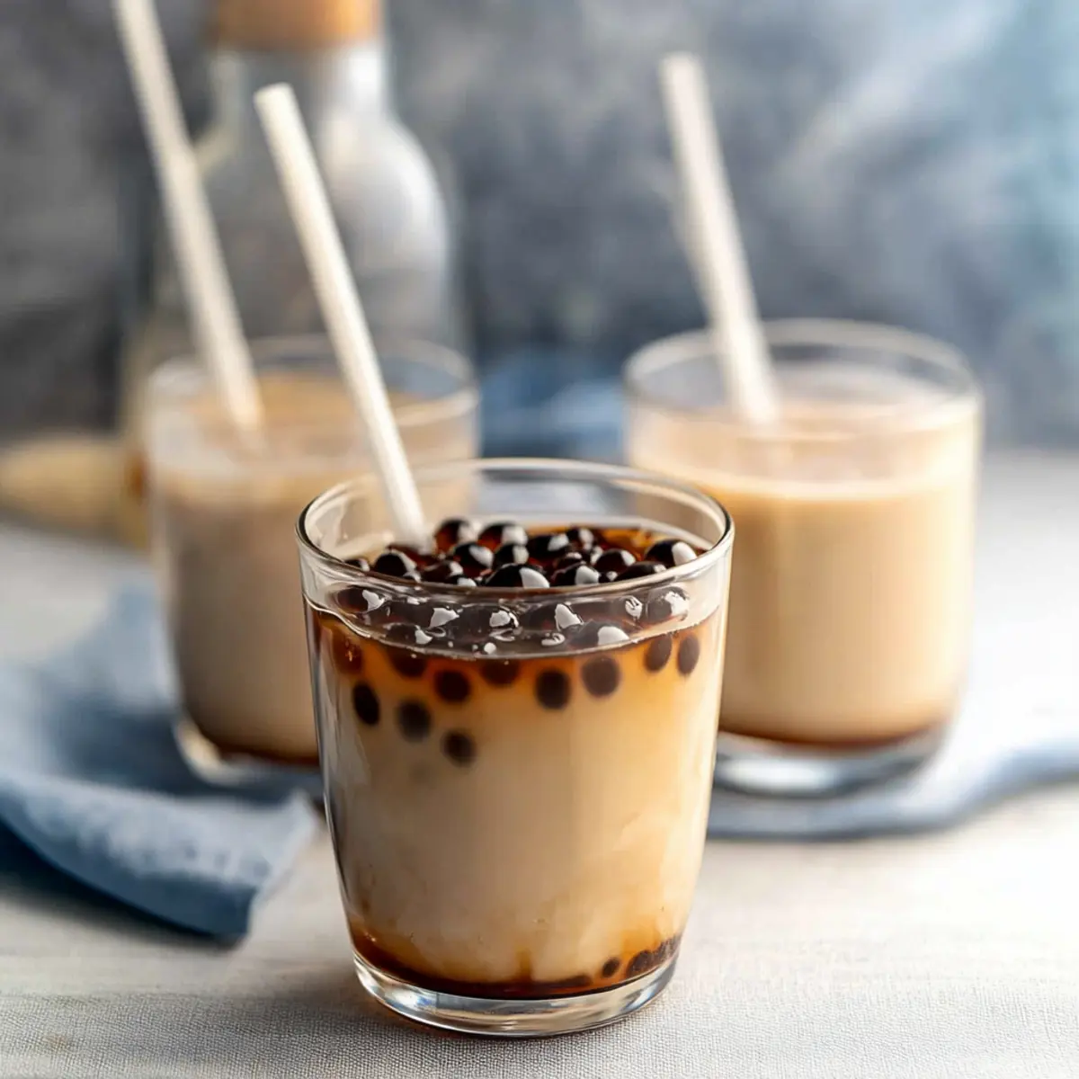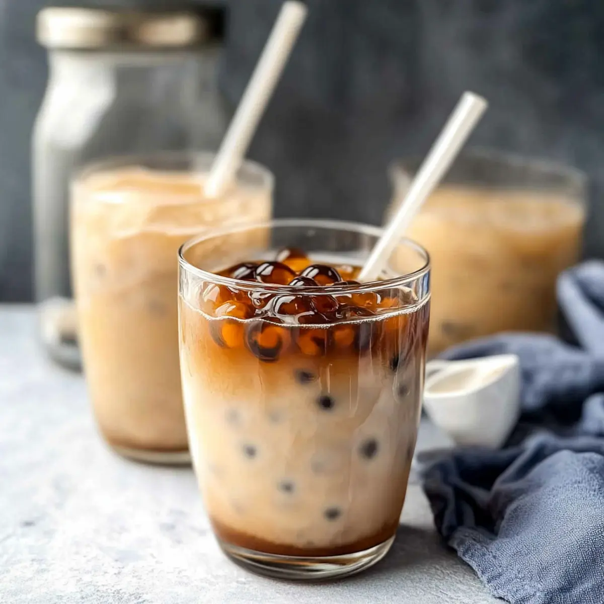 Jump to Recipe Print RecipeWhile waiting for my bubble tea to arrive from my favorite café, I found myself daydreaming about the chewy, delightful boba pearls swirling in creamy milk tea. That’s when it hit me—why not recreate these little delights at home? Making homemade boba pearls is far easier than you might think, and it’s an inspiring project for anyone looking to enjoy fresh bubble tea on their own terms. Not only do these boba pearls offer a healthier and gluten-free alternative to store-bought versions, but they also allow you to experiment with flavors like matcha or rich brown sugar. Whether you’re a novice or a seasoned home chef, this simple recipe will have you crafting delectable boba in no time. Ready to dive into this delicious adventure and add a personal touch to your favorite drink? Let’s get started! Why Make Boba Pearls at Home? Crafting your own boba pearls opens the door to endless customization; experiment with flavors like matcha or cocoa to suit your taste. Cost-effective and healthy, homemade boba saves you from overpriced café drinks while being gluten-free! Ideal for everyone, this recipe is accessible to both beginners and culinary experts. Impressive crowd-pleaser, serve these chewy delights in milk tea or smoothies to wow friends and family. Why wait? Start your boba journey now and enjoy the delightful satisfaction of homemade treats! Boba Pearls Ingredients • These ingredients will set you on the path to making your own delightful boba pearls! For the Dough Dark Brown Sugar – Adds sweetness and a rich flavor; coconut sugar can be a delightful substitute. Water – Hydrates the tapioca starch; opt for filtered water to enhance taste. Tapioca Starch – The key ingredient for forming pearls; cassava flour can also work in a pinch. For Black Boba Pearls (Optional) Cocoa Powder – Enhances color and flavor; skip it if you’re aiming for the traditional flavor. For Green Boba Pearls (Optional) Matcha Powder – Provides a unique flavor and beautiful color; butterfly pea powder can create a stunning blue version. Craft your own boba pearls for bubble tea and enjoy the chewy bliss that comes from your kitchen! Step‑by‑Step Instructions for Homemade Boba Pearls for Bubble Tea Step 1: Prepare Dough In a medium saucepan, combine ½ cup of dark brown sugar with ½ cup of water over medium heat. Stir until the sugar fully dissolves, then bring the mixture to a gentle boil. This should take about 3–5 minutes. You’ll see bubbles forming; that’s your cue to prepare for the next step. Step 2: Mix Starch Gradually add 1 cup of tapioca starch to the boiling sugar water mixture, whisking continuously to prevent lumps. The consistency will thicken into a paste-like dough; this serves as your starter dough for the boba pearls. This process takes about 2–3 minutes. Make sure there are no dry bits left! Step 3: Knead Dough Remove the saucepan from heat and sprinkle in an additional ½ cup of tapioca starch while the dough is still warm. Use a spatula to fold the mixture until it cools enough to handle. Then, knead the dough with your hands for about 5–7 minutes until it feels smooth and pliable. The dough should not stick to your hands; adjust with more starch if necessary. Step 4: Shape Pearls Start rolling the kneaded dough into small balls, about the size of a marble. Each ball should be roughly ¼ inch in diameter. As you form the boba pearls, lightly coat them with tapioca starch to prevent sticking. Continue until all the dough has been shaped. Step 5: Dry Pearls (Optional) If you’re not cooking the pearls right away, spread them in a single layer on a parchment-lined tray and allow them to dry for about 4 hours. This step is essential if you plan to store them for later use; otherwise, you can skip to cooking them immediately for a fresh batch of boba pearls. Step 6: Cook Pearls Bring a large pot of water to a rolling boil over high heat. Carefully add the boba pearls into the boiling water, giving them a gentle stir. Cook the pearls for 30–40 minutes, or until they float to the top and become translucent. This indicates they are ready to take on their chewy texture. Step 7: Cool Pearls Once cooked, use a slotted spoon to transfer the boba pearls into a bowl of cold water. Let them sit in the cold water for a few minutes to stop the cooking process and prevent any stickiness. Your homemade boba pearls are now ready to be enjoyed in your favorite bubble tea! Expert Tips for Boba Pearls Dough Consistency: Ensure your dough isn’t too wet or dry; adjust with extra water or starch if needed for perfect boba pearls. Kneading Technique: Knead the dough while it’s warm for the best chewy texture. Cold dough can be challenging to work with. Storage Savvy: Store uncooked boba pearls wrapped in plastic to prevent drying. If they’re too soft, reduce water next time. Cooking Time: Keep an eye on cooking time. Overcooking can lead to mushy boba pearls; they should float and be translucent when done. Flavor Enhancements: Experiment with flavorings like matcha or cocoa for unique boba pearls that elevate your bubble tea experience! What to Serve with Homemade Boba Pearls for Bubble Tea? Elevate your bubble tea experience with perfect pairings that complement the delightful burst of homemade boba pearls. Creamy Milk Tea: Rich and smooth, it provides a comforting base that harmonizes perfectly with the chewy pearls. Icy Fruit Smoothies: The refreshing fruit mingles beautifully with boba, creating a tropical vibe that excites the taste buds. Sweetened Condensed Milk Drizzle: A touch of sweetness enhances the boba pearls, transforming your drink into a decadent treat. For a unique twist, consider a peach or mango smoothie topped with homemade boba. The creamy blend of fruit adds just the right contrast to the textural delight of the chewy pearls. Matcha Latte: The earthy flavors of matcha pair beautifully with the sweetness of boba, offering a sa