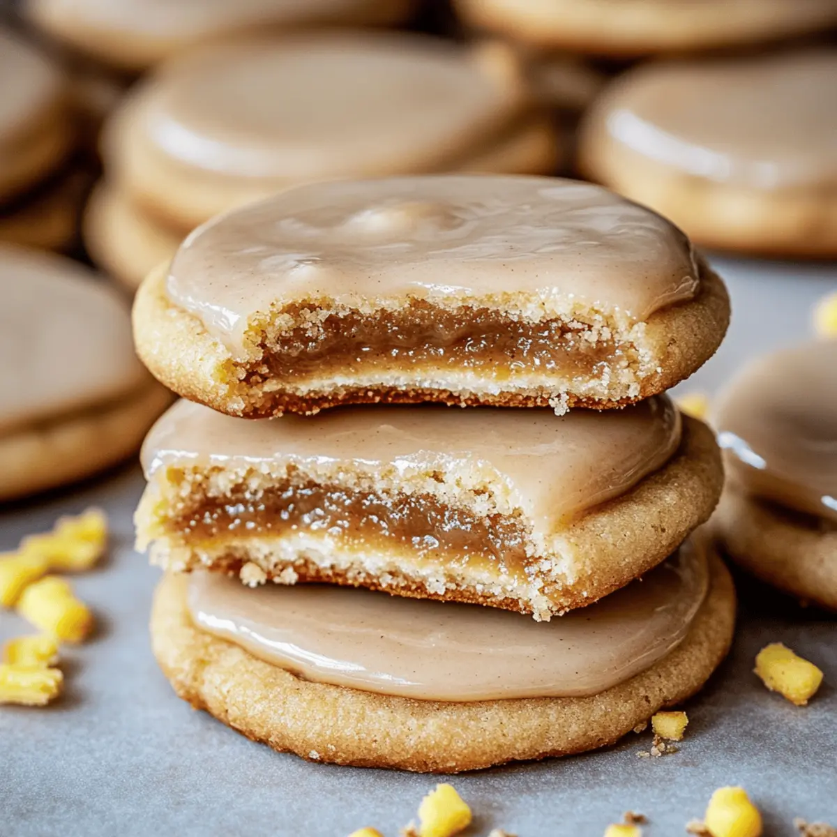 Jump to Recipe Print RecipeThe moment I pulled these Brown Sugar Pop Tart Cookies from the oven, the sweet aroma of cinnamon wrapped around me like a warm hug, instantly transporting me back to carefree childhood days. Memories flooded in—sitting at the breakfast table with a crispy, gooey Pop-Tart in hand, the sugary glaze glistening in the morning sun. This recipe is my beloved twist on that nostalgic treat, bringing a soft, cake-like texture and an irresistible cinnamon-brown sugar filling right to your kitchen. Not only are these cookies a delightful way to satisfy your sweet tooth, but they also make for the perfect quick-bake treat to impress your friends and family. So, are you ready to indulge in a homemade experience that marries the comfort of nostalgia with modern baking? Let’s dive in! Why Are These Cookies So Irresistible? Nostalgic Comfort: Every bite of these Brown Sugar Pop Tart Cookies brings back childhood memories of sweet, crispy treats, now enhanced with a gooey center that melts in your mouth. Quick and Easy: Simplistic and straightforward, this recipe is perfect for bakers of all skill levels, allowing you to whip up a batch in no time. Flavorful Fusion: Rich brown sugar and cinnamon meld beautifully, delivering a flavor explosion that’s impossible to resist, especially with that delightful glaze on top! Versatile Indulgence: Perfectly suited for any occasion, from weekend treats to elegant gatherings, these cookies are sure to impress anyone who takes a bite. Make-Ahead Magic: Prep the dough in advance for last-minute cravings, ensuring that you always have a warm batch of joy ready to share! For more indulgent treats, check out these Cosmic Brownie Cookies or these delightful Velvet Cheesecake Brownies. Brown Sugar Pop Tart Cookies Ingredients • Get ready to indulge in a delightful treat that fuses nostalgia with homemade goodness. For the Cookie Dough Butter – Provides richness and moisture; use unsalted for better control over sweetness. Brown Sugar – Adds sweetness and depth; feel free to substitute with light brown sugar for a milder flavor. Granulated Sugar – Contributes to the cookie structure and overall sweetness. Eggs – Bind ingredients together and add moisture; ensure they are at room temperature to mix in easily. Vanilla Extract – Enhances the overall flavor; opt for pure vanilla for the best taste. Cake Flour – Gives a tender texture; you can substitute with all-purpose flour mixed with cornstarch for an equally soft result. Cinnamon – Infuses the classic Pop-Tart flavor; adjust the quantity based on your personal taste. For the Filling Softened Butter – Blends smoothly with the sugar and cinnamon to create a gooey center. Brown Sugar – Essential for that rich, sweet filling; use a mix of dark and light brown sugars for a deeper taste. Cinnamon – Enhances the filling and gives a warm, comforting flavor; feel free to add a pinch more if you love cinnamon. For the Glaze Powdered Sugar – Forms the basis of the glaze, providing smoothness and sweetness. Milk – Activates the glaze for perfect drizzle consistency; any milk or dairy-free alternative works well. Now that you have all the ingredients ready, let’s get baking those delightful Brown Sugar Pop Tart Cookies and take a trip down memory lane! Step‑by‑Step Instructions for Brown Sugar Pop Tart Cookies Step 1: Cookie Dough Preparation Start by creaming ½ cup of unsalted butter with ½ cup granulated sugar and 1 cup brown sugar in a large mixing bowl until light and fluffy, about 2-3 minutes. Next, beat in 2 large eggs and 1 teaspoon of pure vanilla extract until well incorporated. Gradually mix in 2 cups of cake flour and 1 tablespoon of cinnamon until just combined. Chill the cookie dough in the refrigerator for at least 1 hour to firm up. Step 2: Filling Preparation While your dough chills, prepare the filling by mixing together ¼ cup softened butter, ¾ cup brown sugar, and 1 tablespoon of cinnamon in a medium bowl. Stir in 2 tablespoons of flour until a thick, smooth mixture forms. Use about 2 teaspoons of the filling to roll into small balls, which will give your cookies that gooey center once baked. Set these filling balls aside as you prepare for assembly. Step 3: Assemble Cookies Once the dough is chilled, divide ¼ cup portions of it in half. Lightly flour your surface, then press one half into a disc about ¼ inch thick. Place a filling ball in the center, then cover with the other half of the dough, gently sealing the edges together. Roll the filled dough ball in your hands to ensure it’s smooth and well-formed. Repeat with the remaining dough and filling balls. Step 4: Baking Preheat your oven to 350°F (175°C) and line a baking sheet with parchment paper. Space the assembled Brown Sugar Pop Tart Cookies on the baking sheet, leaving room for spreading. Bake for 11-13 minutes or until the edges are set and lightly golden. After baking, allow the cookies to cool on the baking sheet for about 5 minutes before transferring them to a wire rack to cool completely. Step 5: Glaze Application To create the sweet cinnamon glaze, whisk together 1 cup powdered sugar with 2-3 tablespoons of milk until smooth. The glaze should be thick yet pourable. Once the cookies have cooled, drizzle the glaze generously over the top of each cookie using a spoon or a piping bag for precision. Allow the glaze to set for about 15 minutes before serving these delightful Brown Sugar Pop Tart Cookies. Expert Tips for Brown Sugar Pop Tart Cookies Chill the Dough: Chilling your dough is crucial for achieving soft and gooey Brown Sugar Pop Tart Cookies. It helps to firm up the texture and prevents spreading while baking. Use Cake Flour: For a tender bite, stick with cake flour in your recipe. If using all-purpose flour, remember to mix in some cornstarch to replicate that lovely softness. Perfect Filling Balls: Ensure your filling balls are about 2 teaspoons each—too large, and th