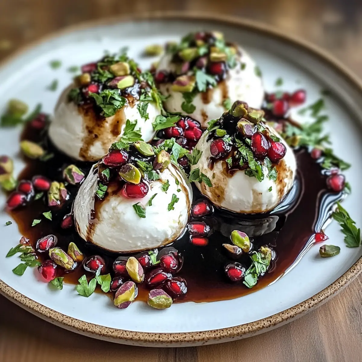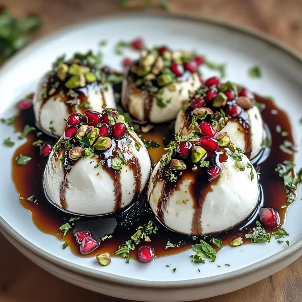 Jump to Recipe Print RecipeAs I stood in my kitchen, preparing for the holiday festivities, an idea struck me that felt both elegant and effortlessly charming. Enter Burrata Balls—an indulgent appetizer that brings a touch of luxury to any gathering while being undeniably simple to make. With its creamy and rich interior, paired perfectly with vibrant pomegranate seeds and crunchy pistachios, this dish shines brightly on any table. Not only do Burrata Balls take just 10 minutes to assemble, but they also serve as a delightful vegetarian option that pleases even the pickiest of eaters. Imagine the delighted expressions on your guests’ faces as they dig into this colorful and festive creation! Ready to impress and elevate your holiday spread? Let’s dive into these irresistible Burrata Balls! Why Choose Burrata Balls for Your Appetizer? Simplicity, this delightful dish comes together in just 10 minutes, allowing you to focus on enjoying the festivities with your loved ones. Elegant presentation, the striking colors of pomegranate and pistachios create a stunning platter that your guests won’t be able to resist. Unique flavor profile, the creaminess of burrata, combined with the crunch of nuts and tartness of fruit, offers a culinary experience unlike any other. Versatile options make it easy to customize; swap the toppings based on the season or your preferences. Plus, if you love unique appetizers, you might want to try Cheesy Mashed Potato Balls for another crowd-pleaser! Burrata Balls Ingredients • Prepare to create the perfect Burrata Balls with these simple, yet essential ingredients: For the Burrata Balls Burrata Cheese – Creamy base of the dish; can be substituted with fresh mozzarella if unavailable. Pomegranate Seeds – Adds tartness and a pop of color; fresh seeds are preferred for the best flavor. Pistachios – Provides crunch and nuttiness; can be swapped with walnuts or almonds for a different flavor. For the Drizzle Balsamic Glaze – Adds sweetness and tanginess to the dish; honey can substitute if desired. Olive Oil – Enhances flavor and richness; use high-quality extra virgin olive oil for the best results. For the Garnish Fresh Mint Leaves – Offers a refreshing herbal note; optional, but highly recommended for a lively touch. Flaky Sea Salt – Enhances overall flavor; use judiciously to avoid overpowering the dish. Prepare these ingredients, and you’ll be just moments away from presenting your stunning Burrata Balls at your holiday gathering! Step‑by‑Step Instructions for Burrata Balls Step 1: Arrange the Burrata Begin by placing the burrata balls on a bright, festive platter, leaving ample space for the toppings. Make sure they are centered and slightly apart to create a stunning visual presentation. This arrangement will not only enhance the allure of your Burrata Balls but also set the stage for the vibrant ingredients to come. Step 2: Add Toppings Generously sprinkle pomegranate seeds and chopped pistachios over the burrata. Make sure the toppings are evenly distributed, creating an inviting burst of color and texture. The juicy red of the pomegranate and the earthy green of the pistachios will contrast beautifully against the creamy white of the burrata, embodying the holiday spirit in every bite. Step 3: Drizzle Using a spoon, drizzle high-quality balsamic glaze and a touch of olive oil over the cheese and toppings. Aim for an even coating, allowing the glaze to cascade beautifully over the burrata while adding a glossy finish. This step not only enhances the flavor of your Burrata Balls but also adds a deliciously sweet and tangy element that ties all the ingredients together. Step 4: Garnish To elevate your Burrata Balls further, finish with a scattering of fresh mint leaves and a light sprinkle of flaky sea salt. The mint will add a refreshing note, balancing the richness of the cheese, while the sea salt enhances the overall flavor profile. This final touch makes your elegant appetizer truly shine, perfect for impressing your guests. Step 5: Serve Immediately Serve your beautiful Burrata Balls immediately, accompanied by warm slices of crusty bread or crispy crackers for dipping. Encourage your guests to dig in while the cheese is at its creamiest. The delightful combination of flavors and textures will surely make this appetizer the highlight of your holiday gathering. How to Store and Freeze Burrata Balls Fridge: Store any leftover Burrata Balls in an airtight container in the refrigerator for up to 1 day to maintain freshness and creaminess. Room Temperature: If serving at a gathering, keep the burrata at room temperature for no longer than 2 hours to ensure food safety and the best texture. Freezer: It’s not recommended to freeze Burrata Balls, as the creaminess and texture of the burrata will change, resulting in a less enjoyable experience when thawed. Reheating: If assembled in advance and refrigerated, avoid reheating; instead, let them sit at room temperature for 15-20 minutes before serving for a fresher taste. Expert Tips for Burrata Balls Use Fresh Ingredients: Fresh burrata and vibrant pomegranate seeds elevate the dish’s overall taste and presentation; always opt for the best quality. Timing is Key: Assemble your Burrata Balls just before serving. Waiting too long can cause the cheese to lose its creaminess, impacting texture and flavor. Don’t Overdo the Salt: While flaky sea salt enhances flavor, too much can overpower the delicate taste of the burrata; sprinkle lightly and adjust to preference. Make Ahead: Prep toppings in advance to save time; store them separately until you’re ready to assemble, ensuring freshness and a stunning final presentation. Explore Variations: Feel free to get creative! Substitute nuts and fruits based on what’s in season or what you have on hand, which keeps your Burrata Balls exciting. Burrata Balls Variations & Substitutions Feel free to let your creativity shine by customizing these