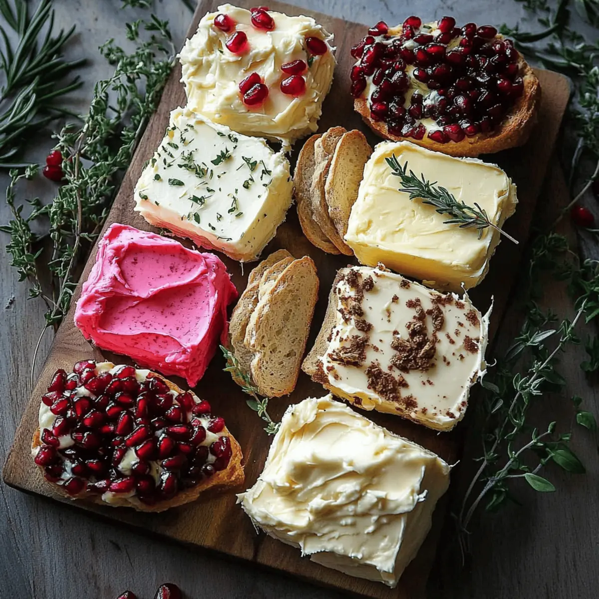 Jump to Recipe Print RecipeAs I gathered my favorite seasonal ingredients, I felt a wave of excitement at the thought of creating something irresistibly simple yet stunning. Butter boarding has become a delightful trend—transforming our beloved butter into an array of vibrant, mouthwatering spreads. In this post, I’m sharing five flavor-packed compound butter recipes that will elevate any gathering and bring a charming twist to your appetizer repertoire. These versatile butter boards not only offer a beautiful presentation, making them perfect for entertaining, but they also allow for quick prep, meaning you can impress guests without the fuss. Whether you’re going for sweet and fruity like Pomegranate and Blackberry, or savory with Garlic and Chive, each spread is designed to melt in your mouth and leave everyone wanting more. Curious about crafting your butter masterpiece? Let’s dive into these delicious concoctions! Why Try Butter Boarding Today? Flavorful Variety: Each spread showcases a unique angle—think sweet Pomegranate and tangy Blackberry counterbalanced by rich Garlic and fresh Chive. Visual Appeal: These butter boards are stunning, making them a sensational centerpiece at your gatherings. Quick Preparation: With minimal effort, you can whip up these impressive appetizers in no time, perfect for last-minute entertaining! Budget-Friendly: Using seasonal ingredients, these delicious spreads are affordable, ensuring you can indulge without breaking the bank. Crowd-Pleasing: Everyone loves butter; with these compound variations, you’ll satisfy even the pickiest eaters! Serve them with fresh bread or crackers alongside Garlic Butter Shrimp for an irresistible feast! Butter Boarding Ingredients Elevate your appetizer experience with these flavorful elements! For the Base Softened Butter – The creamy foundation for all variations; make sure it’s at room temperature for smooth mixing. Honey – Adds natural sweetness; consider using maple syrup for a distinct flavor twist. For the Pomegranate Spread Pomegranate Seeds – These add bursts of sweetness and beautiful color; feel free to swap with other seasonal fruits. Chopped Almonds – Provide a crunchy texture; you can substitute with pecans or walnuts if desired. For the Cinnamon Delight Brown Sugar – Offers a hint of molasses sweetness; white sugar can be a simple substitute. Cinnamon – This warm spice elevates the sweetness; use allspice for a unique spin. Blackberries – The sweet-tart component; swap for raspberries or strawberries for variety. Chopped Pecans – Adds depth and crunch; walnuts work in case of nut substitutions. For the Savory Chive & Garlic Blend Chopped Chives – Fresh, onion-like flavor in every bite; green onions can be a suitable alternative. Roasted Garlic – Rich and savory; raw garlic can be used but sparingly for a milder taste. Red Pepper Flakes – Optional for a spicy kick; omit if you prefer a milder spread. For Custom Herbs Herbs (Oregano, Rosemary, Thyme, Basil) – Infuse herbal notes to elevate any butter; personalize with your favorites. Enjoy crafting these delightful butter boards that are as versatile as they are affordable! Step‑by‑Step Instructions for Butter Boarding Step 1: Preparation Begin by taking the softened butter out of the refrigerator and letting it sit at room temperature for about 30 minutes. This makes it easier to mix and ensures a creamy texture for your butter boarding. While waiting, gather all your flavor ingredients—fresh fruits, herbs, nuts, or spices—to streamline the process. Step 2: Mixing the Base Butter Using a stand mixer or hand beaters, cream the softened butter on medium speed for about 2-3 minutes until it’s light and fluffy. The butter should become pale in color and easily spreadable. This is your foundation for all five flavors of butter boarding, so take your time to achieve the perfect consistency. Step 3: Incorporating Flavors For each butter variation, add the specific flavor ingredients to the creamed butter, mixing on low speed until fully combined. For the Pomegranate and Blackberry spreads, gently fold in the fruits after the base is mixed until evenly distributed. Ensure each compound butter has a consistent flavor throughout, paying attention to the textures added by nuts and fruits. Step 4: Transferring the Butter Once all flavors are thoroughly mixed, scoop the compound butter into a serving vessel or onto a wooden board. If spreading, use a spatula to create a smooth surface. If serving in ramekins, spoon each flavored butter evenly into smaller containers. Make sure to create visual appeal with each spread, as butter boarding is as much about presentation as it is about flavor. Step 5: Final Touches Garnish your butter boards with complementary toppings like additional fruit, chopped nuts, or fresh herbs. For instance, sprinkle a handful of pomegranate seeds over the Pomegranate Butter or a dash of red pepper flakes on the Garlic butter. These extra touches enhance not only the visual appeal but also the flavor. Step 6: Serving Present your beautiful butter boarding ensemble with an assortment of crusty bread, crackers, or fresh vegetable sticks. Arrange them creatively around the board to encourage guests to mix and match their favorite flavors. This vibrant display will surely impress and delight everyone at your gathering, ensuring a memorable appetizer experience! Expert Tips for Butter Boarding Room Temperature Butter: Always ensure your butter is at room temperature for the best mixing results, creating a beautifully smooth consistency for your butter boarding. Flavor Layering: When mixing flavors, start with the base butter and then gradually incorporate additional ingredients to avoid overpowering the core flavor. Visual Appeal: Pay attention to presentation! Garnishing with fresh herbs or colorful fruits not only enhances flavor but also makes your butter boards irresistibly attractive. Don’t Rush: 