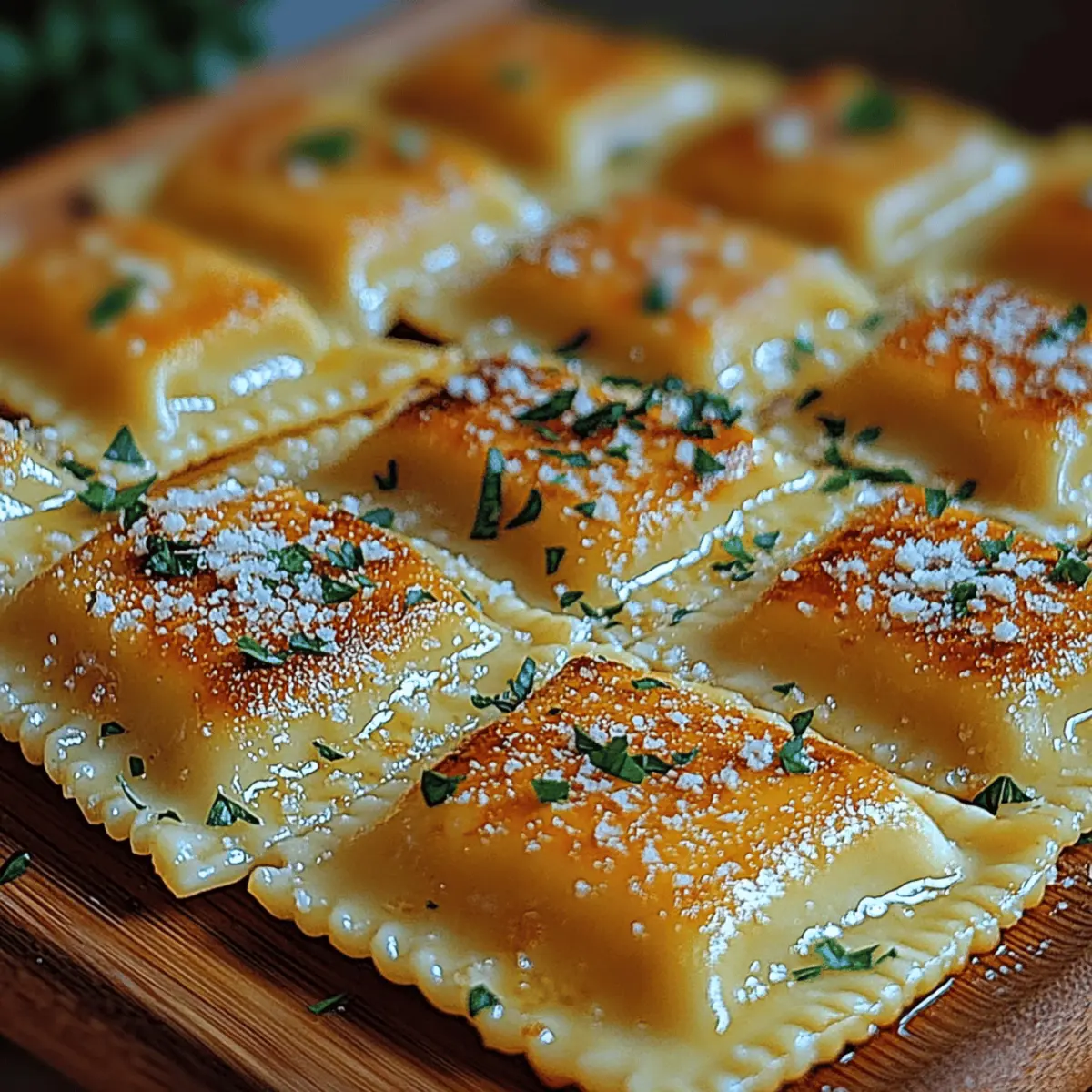 Jump to Recipe Print RecipeCrispy, golden ravioli sizzling in a buttery pan is one of those kitchen moments that feels like a little victory. As the fragrance of garlic swirls through the air, you know you’re in for a treat with my Butter-Toasted Ravioli recipe. This dish brilliantly combines the satisfying crunch of toasted pasta with a comforting, cheesy filling for a quick meal that delights both family dinners and cozy date nights. Not only is it easy to whip up, but it’s also incredibly versatile—perfect for customizing with your favorite herbs, cheeses, or seasonal veggies. Who wouldn’t want a comforting hug in the form of delicious pasta? Curious about how to elevate this classic into your new go-to comfort food? Let’s get cooking! Why is Butter-Toasted Ravioli a Must-Try? Simplicity: This recipe requires minimal cooking skills, making it accessible for everyone, from beginners to seasoned chefs. Flavor Explosion: The combination of melted butter, garlic, and freshly grated Parmesan creates an irresistible aroma and rich taste that will have your guests asking for seconds. Versatile Options: Customize your ravioli with different types of cheese or add vibrant seasonal vegetables for an exciting twist. You can even explore variations like baking for a lighter take! Quick and Easy: Perfect for busy weeknights, this dish comes together in under 30 minutes, ensuring you enjoy a gourmet meal without spending hours in the kitchen. Crowd-Pleaser: Whether it’s a family gathering or a casual dinner party, Butter-Toasted Ravioli is guaranteed to impress, making it your new go-to comfort food. Butter-Toasted Ravioli Ingredients For the Ravioli • Fresh or Frozen Cheese Ravioli – This is the main component; frozen is convenient while fresh offers a delicate texture. For the Butter Sauce • Unsalted Butter – Provides richness and flavor; using unsalted allows you to control seasoning. • Olive Oil – Adds depth to the flavor; can be substituted with vegetable oil for a lighter touch. • Minced Garlic – Enhances aroma and flavor; always use fresh for the best effect, although pre-minced can work in a pinch. • Italian Seasoning – A blend of herbs that complements the dish beautifully; you can substitute with individual dried herbs like oregano or thyme if needed. For the Topping • Parmesan Cheese – Adds a nutty richness; always use freshly grated for the best melting quality. • Fresh Parsley – Serves as a colorful garnish for freshness; feel free to swap for other herbs like basil or chives. • Red Pepper Flakes – Optional for a bit of heat; you can omit them for a milder version of Butter-Toasted Ravioli. Step‑by‑Step Instructions for Butter-Toasted Ravioli Step 1: Boil Water Start by filling a large pot with salted water and place it over high heat. Bring the water to a rolling boil, which usually takes about 10 minutes. You’ll want to see steady bubbles and steam coming from the pot before adding the ravioli. This step is crucial to ensure the pasta cooks evenly and retains its shape. Step 2: Cook Ravioli Once the water is boiling, carefully add the fresh or frozen cheese ravioli. If you’re using frozen ravioli, there’s no need to thaw them beforehand. Cook fresh ravioli for 3-5 minutes or frozen for 6-8 minutes, until they float and are tender but still firm (al dente). You’ll know they’re done when they’re puffy and have changed color slightly. Step 3: Drain Ravioli After cooking, use a slotted spoon or colander to drain the ravioli. Be gentle to avoid breaking them. Consider reserving a cup of the pasta water for later, as it can be useful for adjusting the sauce’s consistency. Place the drained ravioli aside for the next step while they wait to be transformed into Butter-Toasted Ravioli. Step 4: Heat Pan In a large skillet, combine unsalted butter and olive oil over medium heat. Allow the butter to melt and foam, which should take about 1-2 minutes. You’ll know it’s ready when the foam subsides and the butter has a light golden hue, resulting in a lovely base for your Butter-Toasted Ravioli. Step 5: Sauté Garlic Add minced garlic to the skillet, stirring quickly to sauté it. Cook for about 30 seconds until fragrant but not browned, as burnt garlic can add bitterness to the dish. The warmth of the butter will beautifully infuse the garlic flavor into the oil, enhancing the overall taste of your Butter-Toasted Ravioli. Step 6: Add Seasoning Next, stir in the Italian seasoning and lower the heat slightly. Mix well to combine with the garlic and butter, letting the herbs bloom for about 30 seconds. This creates a flavorful foundation for tossing the ravioli, ensuring every bite is infused with those aromatic herbs that make this dish irresistible. Step 7: Toast Ravioli Gently add the drained ravioli into the skillet, tossing them in the butter mixture to coat. Increase the heat to medium-high and toast the ravioli for about 2-3 minutes on each side, until they become golden and crispy. Keep an eye on them to prevent burning, as the goal is to achieve a delightful crunch on the outside. Step 8: Add Parmesan Sprinkle freshly grated Parmesan cheese over the toasted ravioli, tossing them gently to allow the cheese to melt and cling to each piece. This step should take about 1-2 minutes. The combination of butter and melted cheese creates rich flavors that enhance the deliciousness of your Butter-Toasted Ravioli. Step 9: Garnish and Serve Finally, remove the skillet from the heat and transfer the Butter-Toasted Ravioli to a serving platter. Garnish with freshly chopped parsley and a sprinkle of red pepper flakes for a hint of spice, if desired. Your dish should shimmer with the buttery sauce, ready to be enjoyed as a comforting meal perfect for any occasion. Make Ahead Options Butter-Toasted Ravioli are fantastic for meal prep, making it easy to enjoy a delicious dish even on the busiest of nights! You can cook the ravioli and almost co