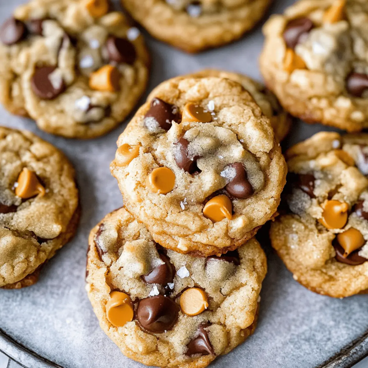 Delicious Butterscotch Chocolate Chip Cookies with a salty twist, perfect for any occasion.