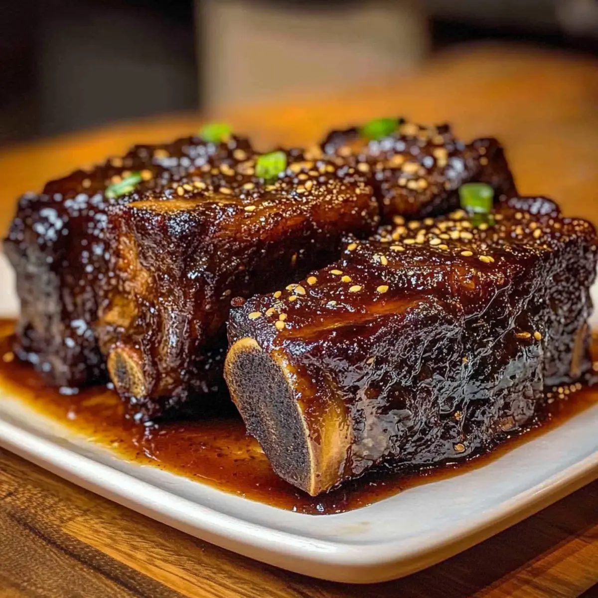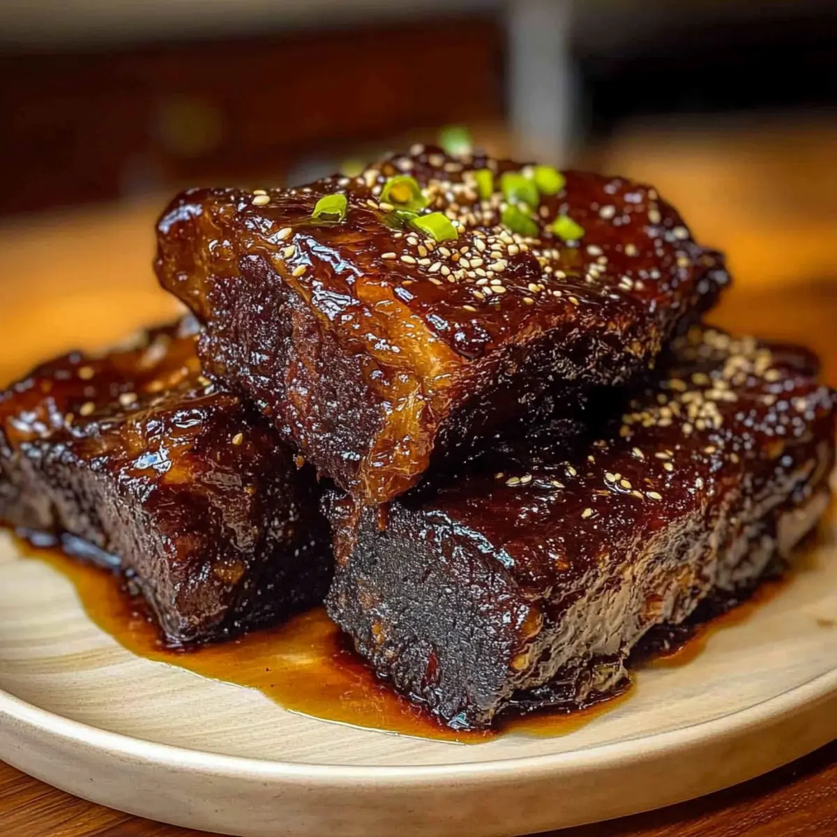 Jump to Recipe Print RecipeAs I stood in my kitchen, the enticing aroma of Asian-inspired caramelized beef short ribs filled the air, transforming an ordinary evening into a delightful experience. By slow-roasting these ribs, not only am I rewarded with melt-in-your-mouth tenderness, but each bite offers a savory umami-rich flavor that’s both sweet and tangy. This recipe will quickly become a go-to for intimate dinners or cozy family gatherings, ensuring everyone leaves the table satisfied. Plus, it requires minimal hands-on effort, giving you more time to enjoy the delightful company of your loved ones. So, are you ready to create a culinary masterpiece that’s sure to impress? Let’s dive in! Why are these short ribs a must-try? Melt-in-your-mouth tenderness awaits you! Slow-roasting the beef ensures a texture that feels luxurious and comforting. Umami-rich flavors shine through the harmonious blend of soy sauce, hoisin, and spices, creating a glaze that’ll have everyone reaching for seconds. Whether you’re enjoying a cozy family dinner or hosting friends, these ribs will impress. Plus, they’re adaptable! Try using pork short ribs or make this dish gluten-free with tamari substitutes. Enjoy them with fragrant jasmine rice or perhaps some roasted vegetables for a complete meal! Caramelized Slow Roast Asian Beef Ingredients For the Ribs Bone-in beef short ribs – Essential for maximum flavor and richness; boneless ribs can be used in a pinch. Soy sauce – Adds salty umami depth; substitute with tamari for a gluten-free option. Hoisin sauce – Provides sweet and tangy richness to the glaze. Mirin – Introduces subtle sweetness and acidity for balance. Brown sugar – Enhances caramelization; coconut sugar or maple syrup can be used as alternatives. Garlic cloves (minced) – Adds aromatic warmth to the dish. Fresh ginger (grated) – Deepens the flavor profile perfectly. Chili flakes or Sriracha (optional) – Kicks up the heat without overpowering other flavors. Small onion (sliced) – Infuses the dish with savory notes during cooking. Green onions (cut into 2-inch pieces) – Adds freshness and beautiful color. Cornstarch (mixed with water) – Optional thickener for the glaze if you like it a little glossy. For Serving Steamed rice, noodles, or roasted vegetables – Perfect complements to the rich flavor of the ribs; garnish with green onions, sesame seeds, or fresh cilantro for even more delight! Step‑by‑Step Instructions for Caramelized Slow Roast Asian Beef Step 1: Prep the Ribs Start by trimming any excess fat from the bone-in beef short ribs, then pat them dry with paper towels. Season the ribs generously with salt and pepper, allowing the flavors to penetrate the meat. This initial step sets the stage for deliciousness in your caramelized slow roast Asian beef. Step 2: Sear the Ribs Heat a heavy skillet over medium-high heat and add a splash of oil. Once the skillet is hot, carefully place the seasoned ribs in, browning them on all sides for about 3–5 minutes until they’re beautifully golden. This caramelization deepens the flavors and establishes a rich crust on your beef short ribs. Step 3: Prepare the Marinade In a mixing bowl, whisk together soy sauce, hoisin sauce, mirin, brown sugar, minced garlic, grated ginger, and optional chili flakes to create a delectable marinade. Ensure all ingredients are well combined, allowing the sweet and savory profiles to meld, consistently enhancing your caramelized slow roast Asian beef. Step 4: Roast the Ribs Transfer the seared ribs into a Dutch oven or deep roasting pan, layering them with the marinade and sliced onion. Cover tightly with a lid or foil and place in a preheated oven at 275°F (135°C). Slow roast for 3–4 hours, basting them occasionally with the juices, until they’re tender and succulent. Step 5: Reduce the Glaze Once the beef is done roasting, remove the ribs and set them aside. Pour the remaining braising liquid into a skillet and bring it to a gentle simmer over medium heat. Let it reduce for about 10–15 minutes until thickened and glossy; add a cornstarch slurry if you desire an even richer glaze for your Asian beef. Step 6: Optional Broil For extra caramelization, place the ribs under a preheated broiler for 2–3 minutes. Keep a close watch as they broil, ensuring they don’t burn but gain that enticing crispy edge, elevating your caramelized slow roast Asian beef to restaurant-quality perfection. Step 7: Serve and Garnish To serve, place the tender ribs over a bed of steamed rice, noodles, or roasted vegetables. Drizzle with the reduced glaze for a mouthwatering finish and garnish with fresh green onions, sesame seeds, or cilantro for a touch of color and added flavor excitement. Expert Tips for Caramelized Slow Roast Asian Beef Marinate for Flavor: Allow the beef short ribs to marinate for at least 2-12 hours. This step enhances the umami-rich flavor, ensuring every bite is delectable. Use Bone-in Ribs: For maximum richness and depth of flavor, always opt for bone-in beef short ribs. Boneless can work, but won’t provide the same level of taste. Searing Matters: Don’t skip the searing step! Browning the ribs creates a beautifully caramelized exterior that adds essential depth to your slow-roasted dish. Low and Slow Roasting: Maintain a low cooking temperature (275°F) to achieve that tender, melt-in-your-mouth texture. Rushing this process can result in tough, chewy meat. Watch the Broil: If broiling, keep a close eye on the ribs as they caramelize; this can happen quickly and you want to avoid burning, enhancing the dish’s overall appeal. Thicken Wisely: For a glossy glaze, add a cornstarch slurry to the braising liquid as it simmers; this will elevate your caramelized slow roast Asian beef into a show-stopping main dish! How to Store and Freeze Caramelized Slow Roast Asian Beef Fridge: Store leftover caramelized slow roast Asian beef in an airtight container for up to 3 days t