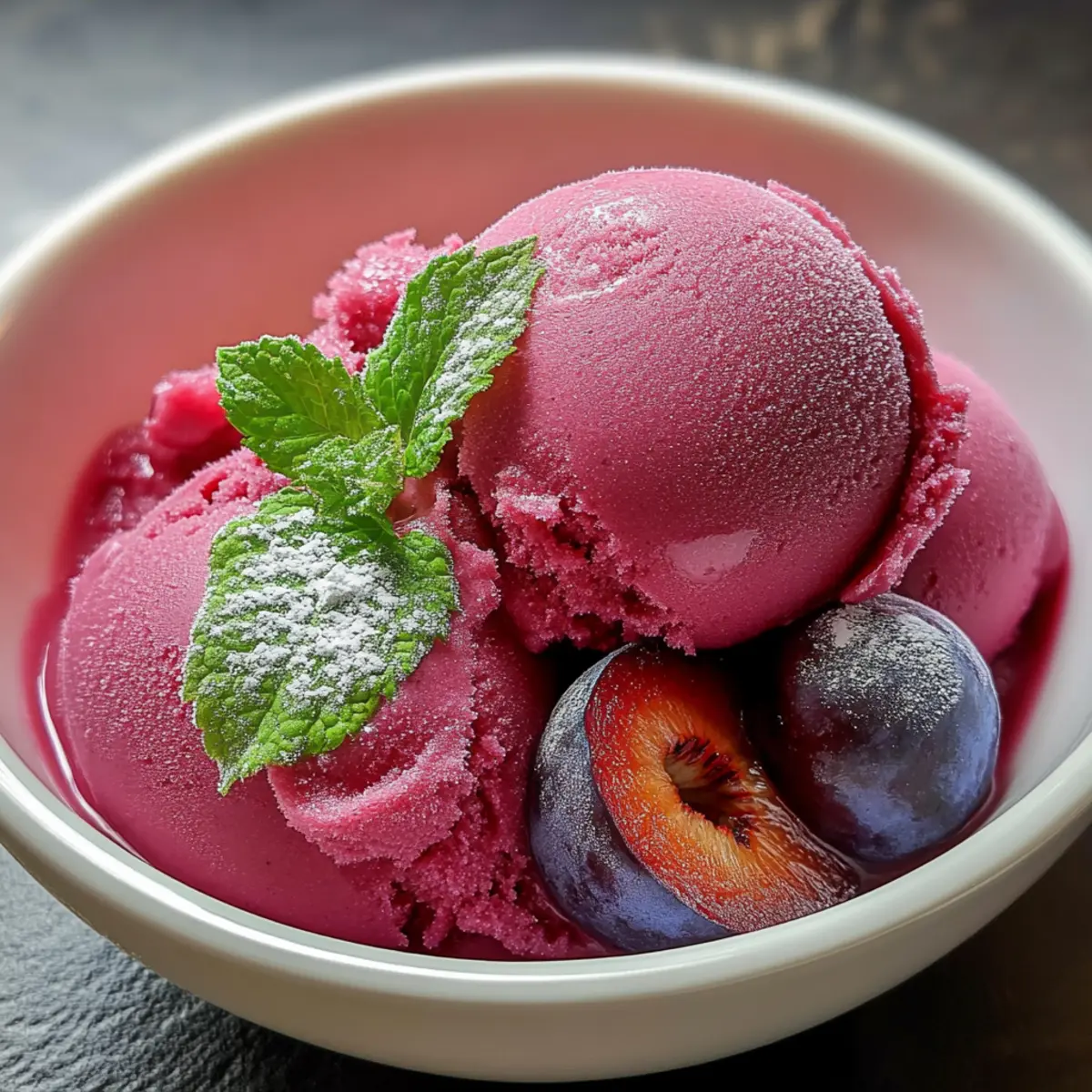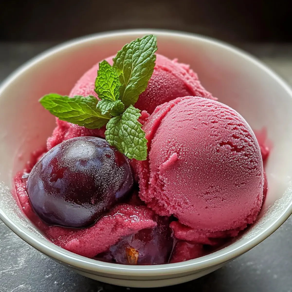 Jump to Recipe Print RecipeAs the summer sun peeks through the curtains, I find myself craving a cool treat that dances on my palate. Enter the enchanting Cardamom Plum Sorbet, a harmonious blend of juicy plums and the warm allure of cardamom. This delightful dessert not only brightens hot days but is incredibly easy to make—taking just 15 minutes of hands-on prep before a simple chilling process. With approximately 150 calories per decadent scoop, it perfectly balances indulgence with guilt-free enjoyment. Whether you serve it as a light summer treat or an elegant palate cleanser at your next gathering, this sorbet promises to impress. Ready to transform your summer dessert game? Let’s dive into the world of homemade sorbet adventures! Why is Cardamom Plum Sorbet a Must-Try? Unique Flavor Combination: The sweetness of ripe plums pairs beautifully with the exotic warmth of cardamom, creating a sorbet that tantalizes your taste buds. Beginner-Friendly: With just 10-15 minutes of prep time, even novice chefs can master this simple recipe. Low-Calorie Delight: At only 150 calories per serving, this sorbet is a guilt-free indulgence everyone can enjoy. Customizable Options: Experiment with different spices or substitute fruits like peaches or nectarines for a personalized twist on this classic treat. Impressive Presentation: Serve it in chilled glasses garnished with mint for a stunning dessert that impresses guests at any gathering. Transform your dessert table with this delightful Cardamom Plum Sorbet—perfect for hot summer days or as a refreshing ending to any meal! Cardamom Plum Sorbet Ingredients For the Sorbet • Ripe Plums – Sweetness and flavor; use soft plums like Santa Rosa for the best taste. • Granulated Sugar – Sweetness to balance tartness; consider honey or agave as alternatives if desired. • Water – Dissolves sugar and aids in syrup creation; no substitutions needed. • Fresh Lemon Juice – Brightens flavor; omit for less tang or substitute with lime for a twist. • Ground Cardamom – Adds exotic warmth and aroma; explore adding different spices for enhanced flavor. • Pinch of Salt – Enhances overall flavors; essential for balancing sweetness. Step‑by‑Step Instructions for Cardamom Plum Sorbet Step 1: Prepare the Plums Start by washing and quartering the ripe plums, ensuring they are free from dirt. Place the prepared plums in a medium saucepan over your stove. They should glisten and smell sweet, signaling their ripeness. This foundational step sets the stage for a vibrant Cardamom Plum Sorbet. Step 2: Combine Ingredients In the saucepan, add granulated sugar, water, ground cardamom, and a pinch of salt. Stir gently to combine as you sprinkle in the sugar, allowing it to begin dissolving. The mix will take on a lovely color as the plums start to release their juices, creating a sweet aroma that fills your kitchen. Step 3: Simmer the Mixture Heat the saucepan over medium heat, bringing the mixture to a gentle simmer. Allow it to cook for 10-15 minutes. You’ll know it’s ready when the plums have softened, and the sugar fully dissolves into a syrupy mixture, becoming fragrant with the warming scent of cardamom. Step 4: Cool the Mixture Once the plums are tender and the syrup has formed, remove the saucepan from heat. Let the mixture cool slightly for about 10 minutes. This step is crucial to prevent any hot splashes while blending, ensuring a safe and smooth transition to the next step in making your Cardamom Plum Sorbet. Step 5: Blend Until Smooth Transfer the cooled mixture into a blender or food processor. Blend on high until the mixture becomes completely smooth, with no plum chunks remaining. You’re aiming for a silky texture that reflects the vibrant deep purplish-pink color characteristic of your finished sorbet, providing a feast for the eyes as well. Step 6: Strain the Puree Using a fine-mesh sieve, strain the blended puree into a clean bowl. This step helps eliminate any remaining solids, resulting in a silky-smooth texture. You can press down gently with a spatula to extract as much liquid as possible, ensuring every bit of flavor from the Cardamom Plum Sorbet is captured. Step 7: Add Lemon Juice Stir in fresh lemon juice to the strained puree, enhancing the flavor profile with brightness and tanginess. The addition of lemon juice is vital for achieving a balanced sorbet that isn’t overly sweet. Give it a gentle stir until well combined; your sorbet base is shaping up beautifully. Step 8: Chill the Mixture Cover the bowl with plastic wrap or a lid and place it in the refrigerator. Allow it to chill for at least 2 hours. This critical chilling time ensures that your sorbet turns out refreshing and delightful, creating an inviting temperature for your palate when served. Step 9: Churn the Sorbet Once chilled, pour the mixture into your ice cream maker. Churn according to the manufacturer’s instructions, typically for about 20-25 minutes. Watch as the mixture thickens and turns creamy, transforming into a fluffy Cardamom Plum Sorbet filled with luscious flavor and beautiful color. Step 10: Freeze for Firmness If you prefer a firmer texture, transfer the churned sorbet to an airtight container and freeze for an additional 2-3 hours. This step solidifies the sorbet, making it scoopable and refreshing. The extra chilling develops the flavors while giving you the perfect serving consistency. Step 11: Serve and Enjoy Finally, scoop the delightful Cardamom Plum Sorbet into chilled bowls or dessert glasses. The vibrant color and silky texture promise to impress your guests or family. Garnish with fresh mint leaves for an elegant touch, creating an inviting visual appeal as you serve this refreshing homemade treat. Cardamom Plum Sorbet Variations Feel free to let your creativity shine and customize this delightful sorbet to suit your taste buds! Spice Swap: Replace cardamom with ginger for a zingy kick. This adds a warm spice profile and a