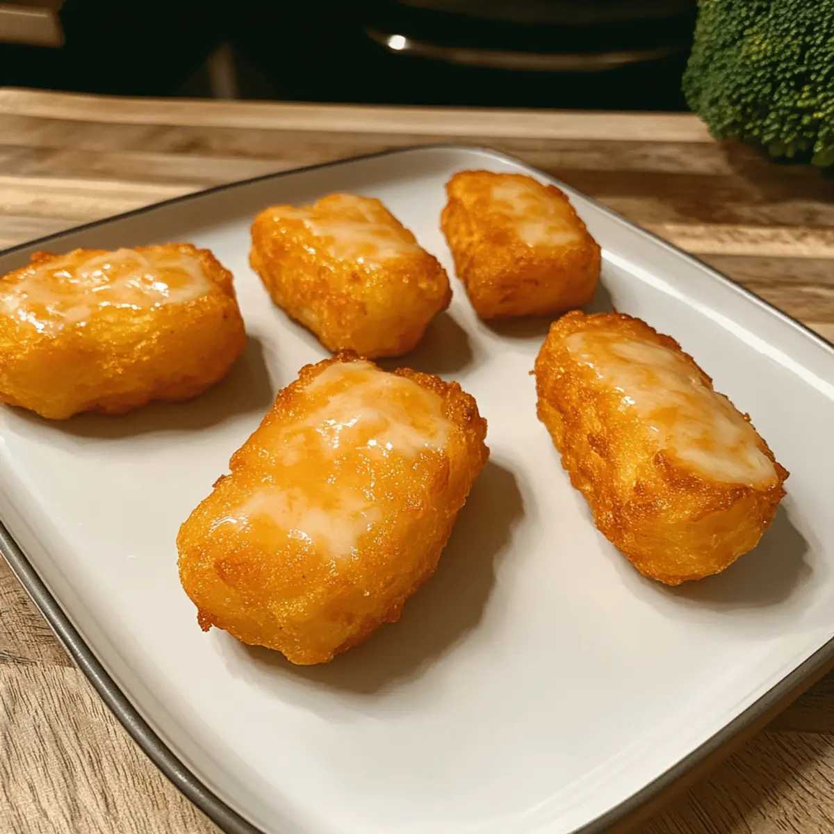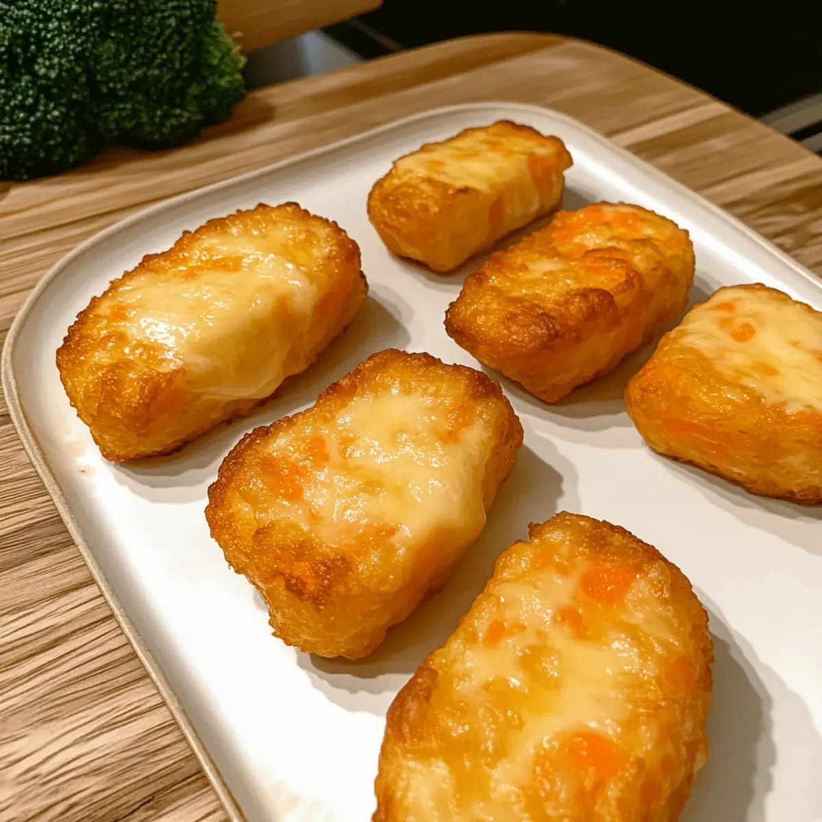 Jump to Recipe Print RecipeAs I lifted the lid from my steamer and watched the vibrant orange and white clouds of steam swirl up, I felt a rush of excitement for lunch. These Cheesy Carrot Potato Tots are not just appealing to the eye; they’re a real game-changer in the kitchen. Combining the natural sweetness of carrots with the comforting creaminess of cheese, this recipe is your answer to feeding even the pickiest little eaters. Not only are these carrot potato tots easy to whip up, but they’re also packed with nutrients—making them a guilt-free addition to any family meal. Whether you serve them as a snack, a side dish, or part of a delightful lunch, these nuggets of goodness will have everyone asking for seconds. Ready to find out just how simple it is to create these tasty bites? Let’s dive in! Why Are Carrot Potato Tots a Must-Try? Healthy Fusion: These carrot potato tots blend wholesome ingredients, ensuring your family enjoys a nutritious treat that’s also delicious. Kid-Friendly Appeal: Their fun shape and cheesy flavor make them irresistible to kids, turning even the pickiest eaters into fans. Quick Prep Time: In just 30 minutes, you can have a tasty dish ready, making it perfect for busy weeknights. Versatile Pairing: Serve with dips like yogurt or alongside fruits for a balanced meal. You can even pair them with Garlic Parmesan Potato Wedges for an extra side option! Easy Storage: These tots can be stored and reheated, making them a fantastic meal-prepping choice for busy families. Elevate your lunch game with these tantalizing tots! Carrot Potato Tots Ingredients • Discover the simple ingredients needed to create these healthy, homemade bites! For the Tots Medium Potato (200g) – Provides the base structure and starchy texture. Substitute with sweet potato for a sweeter taste. Medium Carrots (150-200g) – Adds natural sweetness and color. Can replace with zucchini or butternut squash for a different twist. Shredded Cheese (½ cup) – Acts as a binder and adds creaminess. Use mild cheddar or mozzarella, or substitute with dairy-free cheese for a lactose-free option. For Cooking Olive Oil – Lightly brush on tots before baking for extra crispiness. Salt and Pepper – Seasoning to taste; enhances the overall flavor of your carrot potato tots. Now you have everything you need to create these delightful carrot potato tots! Happy cooking! Step‑by‑Step Instructions for Carrot Potato Tots Step 1: Prepare Vegetables Begin by peeling and chopping the medium potato and carrots into small, even pieces, ensuring they cook uniformly. This preparation step is key to achieving perfectly tender Carrot Potato Tots. Aim for cubes roughly 1 inch in size, as they will steam faster and evenly, making the next steps easier. Step 2: Cook Vegetables In a steamer basket over boiling water, place the chopped potato and carrots for about 10-15 minutes. Ensure they are soft and easily pierced with a fork, which indicates they are ready for mashing. Alternatively, you can boil them directly in water, but be sure to drain them thoroughly to prevent excess moisture in the mixture. Step 3: Mash Vegetables Transfer the steamed vegetables to a large mixing bowl while still warm. Mash them using a potato masher or fork, leaving some lumps for added texture that will make your Carrot Potato Tots delightful. This step should take just a few minutes, and the warmth will help the cheese melt better later on. Step 4: Incorporate Cheese Once mashed, sprinkle the shredded cheese evenly over the mixture while it’s still warm. Stir gently to combine thoroughly, allowing the heat to melt the cheese slightly, which will help bind the mixture together for your Carrot Potato Tots. Aim for an even distribution of cheese throughout; this will enhance the cheesy flavor in every bite. Step 5: Shape Tots Allow the mixture to cool for a few minutes until manageable. With lightly oiled hands, scoop about 1 tablespoon of the mixture and form small cylindrical or ball shapes. This process should feel fun, as you shape the Carrot Potato Tots into delightful bites. Avoid overworking them to maintain a tender texture. Step 6: Cook Tots Preheat your oven to 180°C (350°F). Place the shaped tots on a parchment-lined baking sheet and bake for 15-20 minutes until golden brown, flipping them halfway through for even cooking. If you prefer a crispy exterior, you could also pan-fry them in olive oil for about 2-3 minutes on each side until beautifully browned. Step 7: Serve Once cooked, let the Carrot Potato Tots cool briefly before serving. This waiting time ensures they are safe for toddlers and enhances their flavor. Pair them with your favorite dipping sauce or enjoy alone as a nutritious snack, side dish, or fun lunch addition for the entire family. Expert Tips for Carrot Potato Tots Cooking Consistency: Ensure vegetables are well-cooked to avoid a lumpy texture; undercooked potatoes won’t mash properly, affecting the binding of your carrot potato tots. Warm Mashing: Mash the vegetables while they’re warm to help the cheese melt and blend smoothly; this creates a creamier texture in your tots. Gentle Shaping: When forming the tots, handle the mixture gently to prevent overworking, which keeps them light and tender for the best bite. Boost Crispiness: For a golden, crispy finish, brush the tots lightly with olive oil before baking or arrange them with enough space when pan-frying. Flavor Variations: Feel free to experiment with different cheeses or toss in finely chopped herbs for a unique twist on your carrot potato tots! What to Serve with Cheesy Carrot Potato Tots These crispy, golden bites are a delightful addition to any meal, offering a burst of flavor and nutrition that can transform your family dinner. Creamy Yogurt Dip: A tangy yogurt dip complements the sweetness of the tots, adding a refreshing twist that kids will love. Crispy Green Salad: A light salad of mixed greens and citrus vinaigrette provi