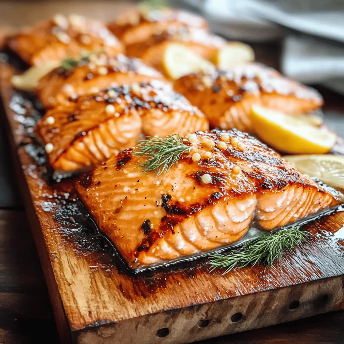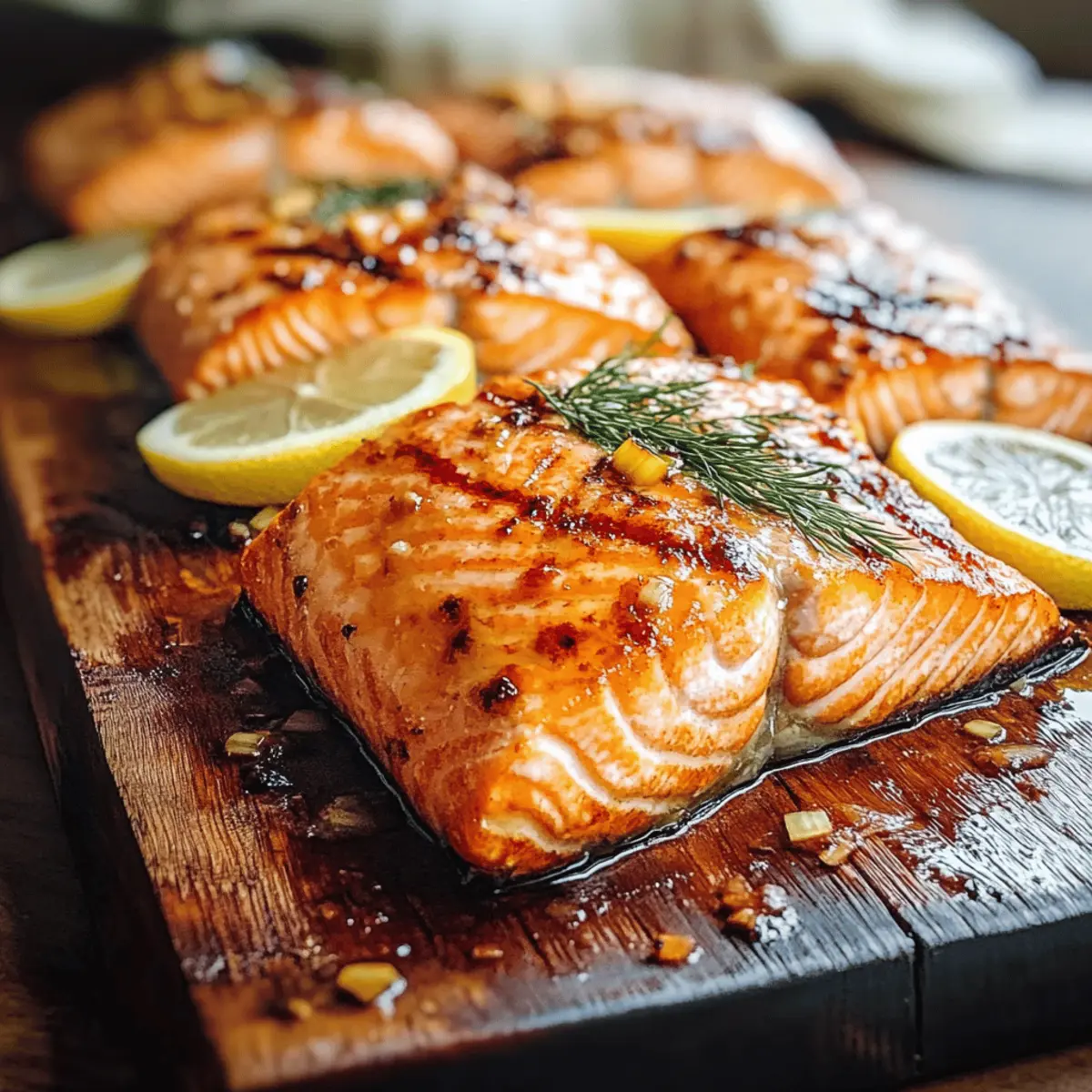 Jump to Recipe Print RecipeThe moment the cedar plank hits the grill, it releases a fragrant cloud that whispers of summer evenings and outdoor gatherings. I can picture the glistening salmon nestled atop, infusing the air with a perfect blend of sweet, savory, and smoky notes. My Cedar Plank Grilled Salmon recipe is not just a dish; it’s a truly elegant experience that transforms your regular weekday dinner into a memorable affair. With a quick prep time and a delightful honey ginger marinade, this meal is designed to impress without all the fuss. Whether you’re hosting friends or simply treating yourself to a gourmet night in, this recipe beautifully bridges the gap between effortless cooking and elegant dining. Curious about how to elevate your grilling game while keeping it healthy? Let’s dive in! Why Choose Cedar Plank Grilled Salmon? Elegant Dining: Transform any meal into a gourmet experience with the sophisticated flavor of cedar smoke. Quick Prep: With minimal hands-on time, prep your marinade and let it work its magic—perfect for busy weeknights or last-minute gatherings! Flavor Explosion: The honey ginger marinade is a perfect harmony of sweet and savory that pleases everyone’s palate. Versatile Pairings: Serve alongside grilled vegetables, chilled cucumber salad, or even create salmon bowls for a delightful twist. If you’re craving something different, check out our Grilled Chicken Burrito for another grilling favorite! Healthy Alternative: Enjoy a gluten-free meal by opting for coconut aminos in the marinade—savor deliciousness with every bite! Cedar Plank Grilled Salmon Ingredients • For those looking to create a truly memorable dish, knowing the right ingredients for Cedar Plank Grilled Salmon is essential! For the Marinade Soy Sauce (or Coconut Aminos) – Adds umami flavor; coconut aminos can be used for a gluten-free option. Rice Vinegar – Provides a tangy brightness to balance the sweetness. Olive Oil – Moisturizes the salmon, but you can substitute with avocado oil for a different taste. Balsamic Vinegar – Contributes a hint of sweetness and depth to the marinade. Lime Juice – Brightens the flavor profile and complements the richness of the salmon. Garlic, minced – Delivers warmth and a robust sharpness that enhances the marinade. Fresh Ginger, grated – Infuses the dish with an aromatic and spicy kick. Sesame Oil – Enhances the depth with a nutty essence. Fish Sauce – Intensifies umami flavor, though it’s optional. Honey – Adds sweetness and aids in creating a beautifully caramelized glaze; adjust according to your taste. Salt – Balances all the flavors in the marinade. For the Main Dish Salmon fillets (4oz each) – The star protein of the dish; skin on or off is your choice. Cedar Planks – Essential for that unique aroma and to prevent the salmon from sticking; don’t forget to soak them in water before grilling! For Garnishing (optional) Fresh dill – Adds a fresh herbal note. Lemon slices – Perfect touch for added flavor and stunning presentation. Step‑by‑Step Instructions for Cedar Plank Grilled Salmon Step 1: Soak Cedar Planks Begin by soaking your cedar planks in water for at least 30 minutes and up to 2 hours. This step is crucial as it prevents the planks from burning on the grill and infuses the salmon with a delicious cedar aroma during cooking. Ensure the planks are fully submerged and use a weight if necessary. Step 2: Prepare Marinade In a medium bowl, combine soy sauce (or coconut aminos for a gluten-free option), rice vinegar, olive oil, balsamic vinegar, lime juice, minced garlic, grated ginger, sesame oil, and honey. Whisk the mixture until well blended and smooth, ensuring the flavors meld together beautifully. This honey ginger marinade will keep your Cedar Plank Grilled Salmon moist and flavorful. Step 3: Marinate Salmon Place your salmon fillets in a zip-top bag and pour the freshly prepared marinade over them. Seal the bag and gently massage to coat the salmon evenly. Refrigerate for 30 minutes, allowing the fish to absorb the marinade’s rich flavors. This step is crucial for achieving a delightful balance of sweet and savory in your grilled salmon. Step 4: Preheat Grill While the salmon marinates, preheat your grill to medium-high heat (around 375°F). Cleaning the grates with a brush will ensure a great grilling surface and help prevent sticking. Once preheated, be ready to place the cedar plank on the grill for an aromatic cooking experience with your Cedar Plank Grilled Salmon. Step 5: Prep Cedar Plank After soaking, remove the cedar planks from the water and pat them dry with a clean towel. Place the marinated salmon fillets skin-side down on the plank, making sure they fit comfortably without overlapping. The cedar plank will impart a wonderful flavor while keeping the fish from sticking to the grill. Step 6: Grill Salmon Carefully place the prepared cedar plank with salmon directly on the hot grill. Close the lid and grill for about 10 to 15 minutes, or until the salmon flakes easily with a fork and reaches an internal temperature of 145°F. Maintain that medium-high heat to maximize the smoky flavor from the cedar wood. Step 7: Serve Once done, carefully remove the cedar plank from the grill and let the salmon rest for a few minutes. Optionally, garnish your Cedar Plank Grilled Salmon with fresh dill and lemon slices for an elegant touch before serving. The finish is a beautifully charred salmon that’s bursting with smoky flavor, ready to wow your family and friends! Cedar Plank Grilled Salmon Variations Feel free to personalize your Cedar Plank Grilled Salmon with these unique twists that will delight your senses! Add Heat: Incorporate chili paste or sriracha in the marinade for a spicy kick. If you love a bit of heat, this will enhance the dish’s flavor profile beautifully! Citrus Swap: Use orange or grapefruit juice instead of lime for a refreshing citrus twist. This makes the salm