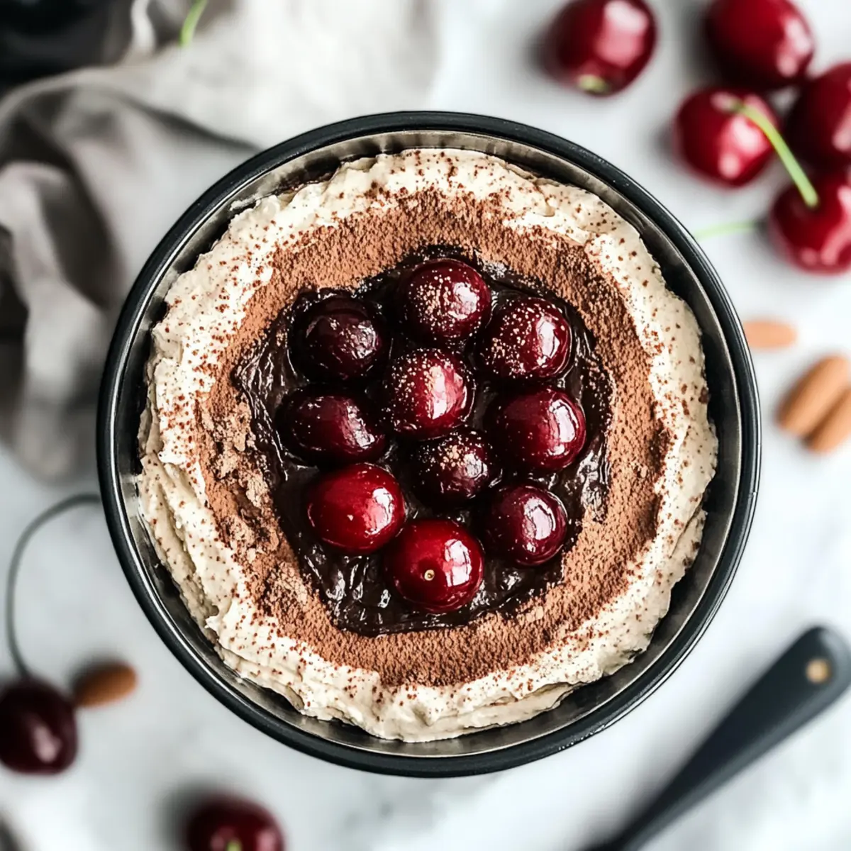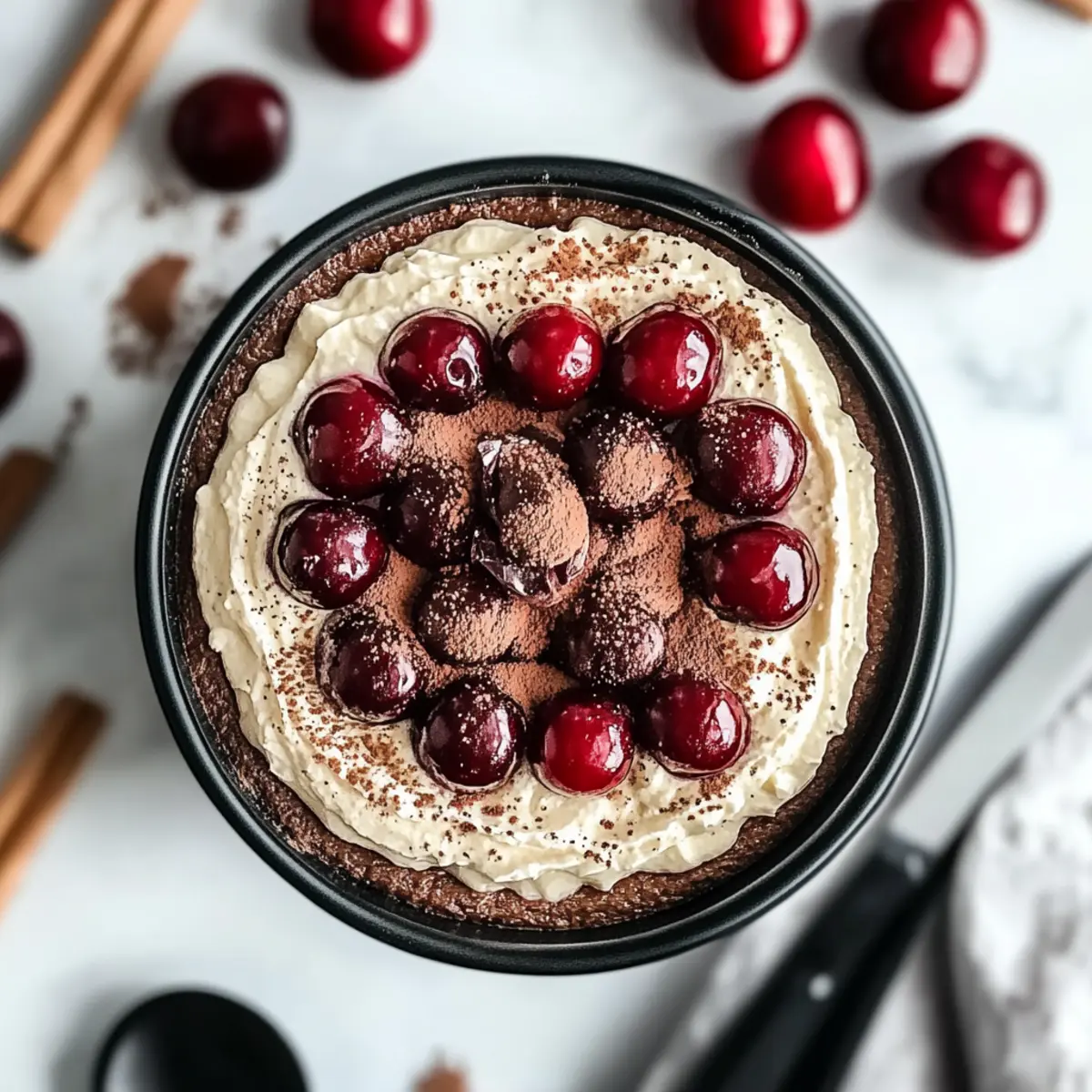 Jump to Recipe Print RecipeI stumbled upon a delightful twist on a classic dessert the other day—Cherry Amaretto Tiramisu. With its luxurious layers of creamy mascarpone mingled with sweet cherries soaked in amaretto, this dessert is a true crowd-pleaser. Not only is it effortlessly fancy enough to impress your guests, but it’s also simple to whip up when you’re craving something special at home. Plus, with the ability to easily switch out the amaretto for almond extract, this recipe can cater to everyone, including those who prefer a non-alcoholic option. Imagine serving this mouthwatering creation at your next gathering or simply savoring it during a cozy night in. Are you ready to dive into the world of luscious Italian desserts? Let’s get started! Why Try Cherry Amaretto Tiramisu? Indulgent Flavor: Every bite showcases a rich blend of sweet cherries and creamy mascarpone, leaving you craving more. Versatile Joy: Easily transform this recipe into a non-alcoholic treat by swapping amaretto with almond extract. Effortless Elegance: Impress your guests with minimal effort; this dessert looks as stunning as it tastes! Perfect for Any Occasion: Whether it’s a celebration or a cozy evening, this tiramisu suits it all. Quick Preparation: With just a few simple steps, you can have this delightful dessert ready to chill! For more tempting ideas, check out my Tiramisu Truffles Decadent. Let’s savor the sweetness together! Cherry Amaretto Tiramisu Ingredients For the Cream Layer Mascarpone Cheese – Provides a rich and creamy texture that makes this Cherry Amaretto Tiramisu truly luxurious. Heavy Cream – Adds lightness and fluffiness; don’t skip on this for the perfect filling. Amaretto Liqueur – Infuses a sweet, nutty flavor; for a non-alcoholic variation, substitute with almond extract mixed with water. Cherry Juice – Gives sweetness and a slight tartness to the mix; opt for pure cherry juice for a more intense taste. Fresh Cherries (pitted and chopped) – These add delightful fruity bursts; frozen cherries work too, just ensure they’re thawed and drained. Granulated Sugar – Sweetens the mascarpone mixture; adjust according to the sweetness of your cherries. Cherry Preserves – Enhances the cherry flavor and adds body; it blends beautifully into the cream. Vanilla Extract – Adds depth to the flavor; pure vanilla is best for that extra richness. For the Ladyfinger Layer Ladyfingers – Serve as the sponge layer; ensure you dip them quickly to maintain their structure. For the Topping Cocoa Powder – Dust on top for that classic tiramisu finish, balancing sweetness with a hint of bitterness. Dark Chocolate (shaved or grated) – Provides a rich garnish and adds textural contrast that elevates your dessert. Now that you have everything you need, it’s time to bring this stunning Cherry Amaretto Tiramisu to life! Enjoy this boozy yet fruity indulgence that’s bound to impress at any gathering. Step‑by‑Step Instructions for Cherry Amaretto Tiramisu Step 1: Prepare the Mascarpone Mixture In a large mixing bowl, beat together the mascarpone cheese and heavy cream using an electric mixer on medium speed for about 2-3 minutes, or until the mixture is smooth and fluffy. The consistency should be thick yet creamy, perfect for layering. This will form the luxurious base for your Cherry Amaretto Tiramisu. Step 2: Add the Flavors Mix in the amaretto liqueur, cherry juice, and vanilla extract, continuing to beat for another 1-2 minutes until everything is well combined. The aroma will fill your kitchen as you create a luscious mixture. This flavor blend sets the sweet and nutty foundation for your Cherry Amaretto Tiramisu. Step 3: Incorporate the Sweeteners In a separate bowl, stir together the granulated sugar and cherry preserves until they are fully combined and smooth. Gently fold this sweet mixture into the mascarpone blend using a spatula until evenly distributed. This step elevates the dessert’s flavor profile, merging sweetness with the creamy base. Step 4: Add the Cherries Fold in the chopped fresh cherries to the mascarpone mixture until they are evenly incorporated. The vibrant colors and juicy texture of the cherries will add a wonderful fruity burst to your Cherry Amaretto Tiramisu, making each bite a delightful experience. Step 5: Prepare the Dipping Mixture In a shallow dish, combine equal parts of amaretto liqueur and cherry juice. This fragrant mixture will be used to dip the ladyfingers. Make sure it’s shallow enough for easy dipping but wide enough to comfortably fit the ladyfingers. Step 6: Dip the Ladyfingers Quickly dip each ladyfinger into the amaretto-cherry mixture, ensuring they soak just enough to absorb the flavor without becoming soggy—about 1-2 seconds. Arrange the dipped ladyfingers in a single layer at the bottom of a 9×13-inch dish, creating a solid base for your Cherry Amaretto Tiramisu. Step 7: First Layer of Cream Spread half of the mascarpone mixture evenly over the layer of ladyfingers using a spatula. Make sure to cover them completely, as this creamy layer is essential for the depth of flavor in your dessert. The combination of soaked ladyfingers and mascarpone will create a delightful contrast. Step 8: Add Another Layer of Ladyfingers Repeat the process: dip and layer the remaining ladyfingers over the mascarpone mixture. Then, top with the remaining mascarpone mixture, smoothing it out evenly. This double layer will give the Cherry Amaretto Tiramisu its signature elegance and balance of flavors. Step 9: Chill the Tiramisu Cover the dish tightly with plastic wrap and refrigerate for at least 4 hours, but ideally overnight. This chilling time allows the flavors to meld beautifully, resulting in the creamy, indulgent texture that defines your Cherry Amaretto Tiramisu. Step 10: Final Touches Before serving, remove your tiramisu from the fridge and dust the top generously with cocoa powder. Sprinkle grated dark chocolate on top f