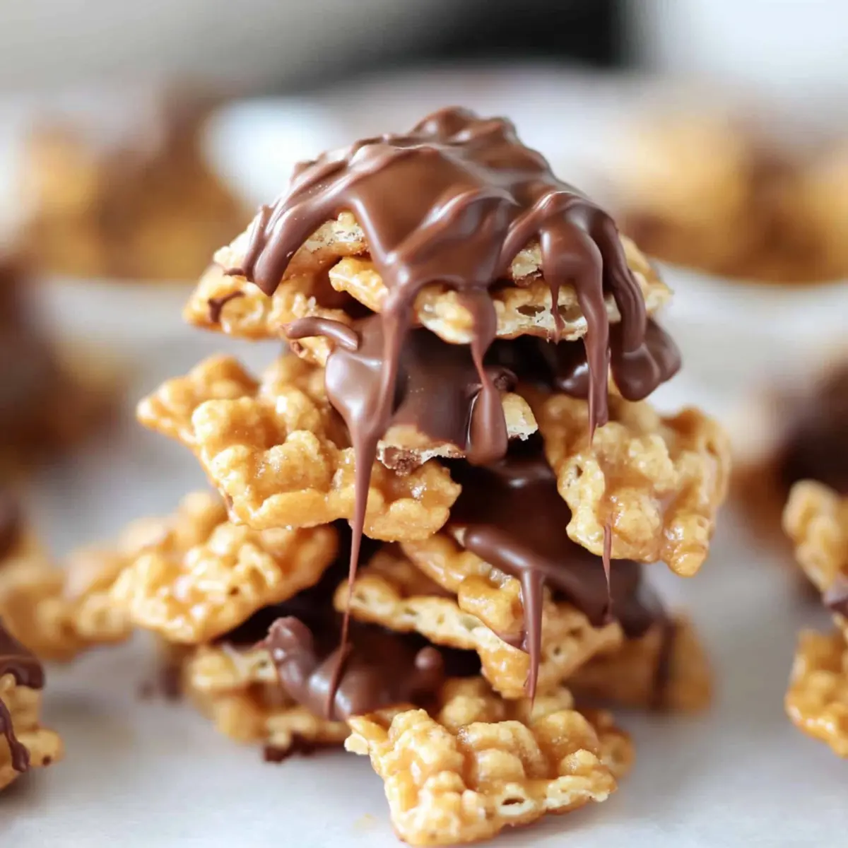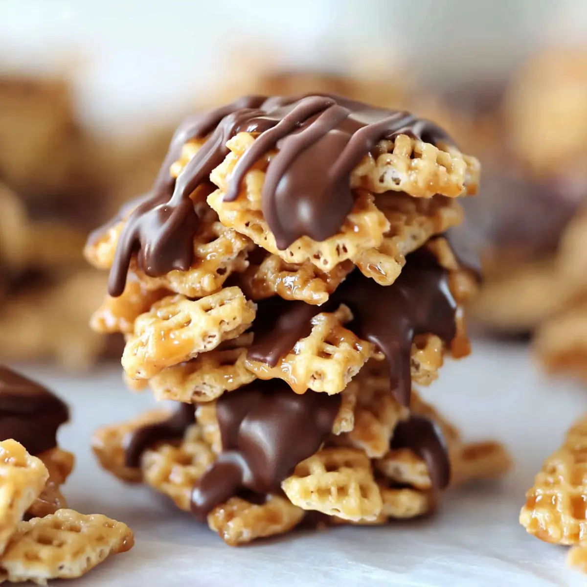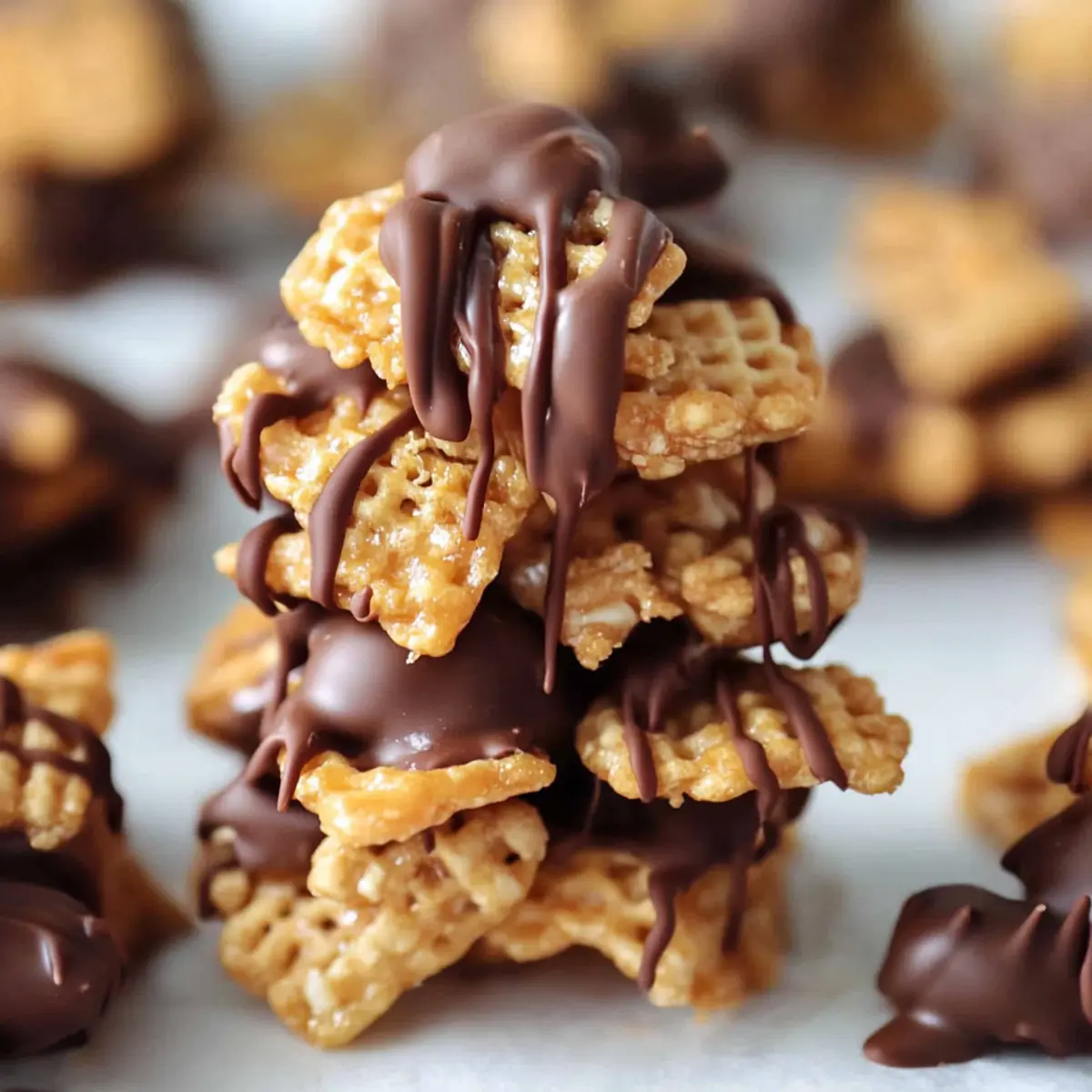 Jump to Recipe Print RecipeThe aroma of melted chocolate and peanut butter fills the air as I prepare to make Chex Scotcheroos Clusters, a delightful twist on the classic treat. Swapping out Rice Krispies for Chex cereal not only adds a fun crunch but also makes for a quick and easy no-bake dessert that everyone loves. Perfect for holiday gatherings or simply as a sweet snack, these clusters are as versatile as they are delicious—you can easily tailor them to fit any palate. With just a handful of simple ingredients, they come together in a snap, allowing you to create something satisfying without spending hours in the kitchen. Who wouldn’t want a recipe that’s this simple and scrumptious? Ready to whip up a batch of these irresistible goodies? Let’s dive in! Why Are Chex Scotcheroos Clusters Irresistible? Quick and Easy: With no baking required, these treats come together in no time, making them perfect for last-minute dessert cravings. Delightful Crunch: The swap to Chex cereal provides a unique texture that enhances the classic flavor profile of Scotcheroos. Versatile Ingredients: Feel free to customize with your favorite nut butters or cereals—there’s no limit to how you can make them your own! Sweet Indulgence: The combination of creamy peanut butter, rich chocolate, and butterscotch creates a decadent treat that pleases everyone, from kids to adults. Perfect for Any Occasion: Whether it’s a holiday gathering, birthday party, or a cozy night in, these clusters hit the spot. Serve them alongside hot cocoa for an ultimate comfort treat! For more delicious ideas, check out our guide on easy no-bake desserts. Chex Scotcheroos Clusters Ingredients Ready to create the magical Chex Scotcheroos Clusters? Gather these simple ingredients and let’s begin! For the Sweet Base • Corn Syrup – Adds sweetness and helps bind the ingredients; honey can be a delightful substitute for a different flavor. • Peanut Butter – Provides creamy texture and rich flavor; you can use creamy or crunchy, or substitute with almond butter for nut allergies. • White Sugar – Sweetens the mix, and you can reduce the amount for a less sweet treat. For the Crunchy Clusters • Corn Chex – Delivers the crispy texture that defines these treats; feel free to use any Chex variety, but Corn Chex is recommended for the best taste! For the Decadent Coating • Semisweet Chocolate Chips – Offers indulgent chocolate flavor; dark chocolate can be a great substitute, or you can omit it for a less sweet option. • Butterscotch Chips – Adds a buttery sweetness; replace with more chocolate chips or leave them out if you prefer. Now that you’ve got all your ingredients ready, you’re just steps away from whipping up your yummy Chex Scotcheroos Clusters! Step‑by‑Step Instructions for Chex Scotcheroos Clusters Step 1: Prepare the Sweet Mixture In a medium saucepan, combine 1 cup of corn syrup, 1 cup of peanut butter, and 1 cup of white sugar. Heat over medium heat, stirring constantly until melted and smooth, about 3-5 minutes. Avoid boiling; you want a silky mixture that’s well combined. Remove from heat once everything is homogeneous and fully blended. Step 2: Combine with Chex Cereal In a large bowl, measure 6 cups of Corn Chex cereal and pour the warm peanut butter mixture over it. Gently stir with a spatula, ensuring each piece of cereal is evenly coated. You should have a thick and sticky mixture, resembling a luscious paste clinging to the cereal. This should take about 2-3 minutes. Step 3: Form the Clusters Using a medium cookie scoop (approximately 2 tablespoons), scoop the mixture and drop it onto a baking sheet lined with parchment or wax paper. Shape into clusters, ensuring they hold together. Leave some space between each cluster and let them cool at room temperature for about 30 minutes until they firm up nicely. Step 4: Melt the Chocolate Coating In a microwave-safe bowl, combine 1 cup of semisweet chocolate chips and 1 cup of butterscotch chips. Microwave in 30-second intervals, stirring in between, until completely melted and smooth. This should take about 1-2 minutes. Be careful not to overheat; you want a velvety finish for your chocolate layer. Step 5: Coat the Clusters Once your chocolate-butterscotch mixture is smooth, spoon it generously over each of the cooled clusters, ensuring they’re well coated. Allow any excess to drizzle down the sides, enhancing the visual allure. Let the clusters rest for an additional 30 minutes at room temperature to set the chocolate. Step 6: Serve and Enjoy Once the chocolate has fully hardened, your Chex Scotcheroos Clusters are ready to be enjoyed! Carefully lift them off the parchment and transfer to a serving plate. These delightful treats are perfect for any gathering, ready to be savored with family and friends, or to satisfy your own sweet cravings! Make Ahead Options These Chex Scotcheroos Clusters are a fantastic option for meal prep! You can prepare the sweet peanut butter mixture and coat the Chex up to 24 hours in advance, allowing you to focus on finishing touches later. Simply combine 1 cup of corn syrup, 1 cup of peanut butter, and 1 cup of sugar, then mix this with 6 cups of Chex cereal. Store this mixture in an airtight container at room temperature until you’re ready to proceed. When you’re ready to serve, melt the chocolate and butterscotch chips, spoon them over the clusters, and let them set. Enjoy the convenience of these delicious clusters that remain just as tasty, making your busy weeknights a little sweeter! What to Serve with Chex Scotcheroos Clusters Imagine sitting with family and friends, indulging in sweet treats while laughter fills the air—these clusters will be the star of the table! Creamy Vanilla Ice Cream: The coolness of ice cream provides a delightful contrast to the chewy texture of the clusters, elevating your dessert experience. Hot Cocoa: A warm cup of cocoa complements the rich peanut butter 