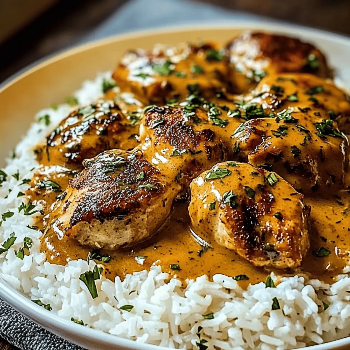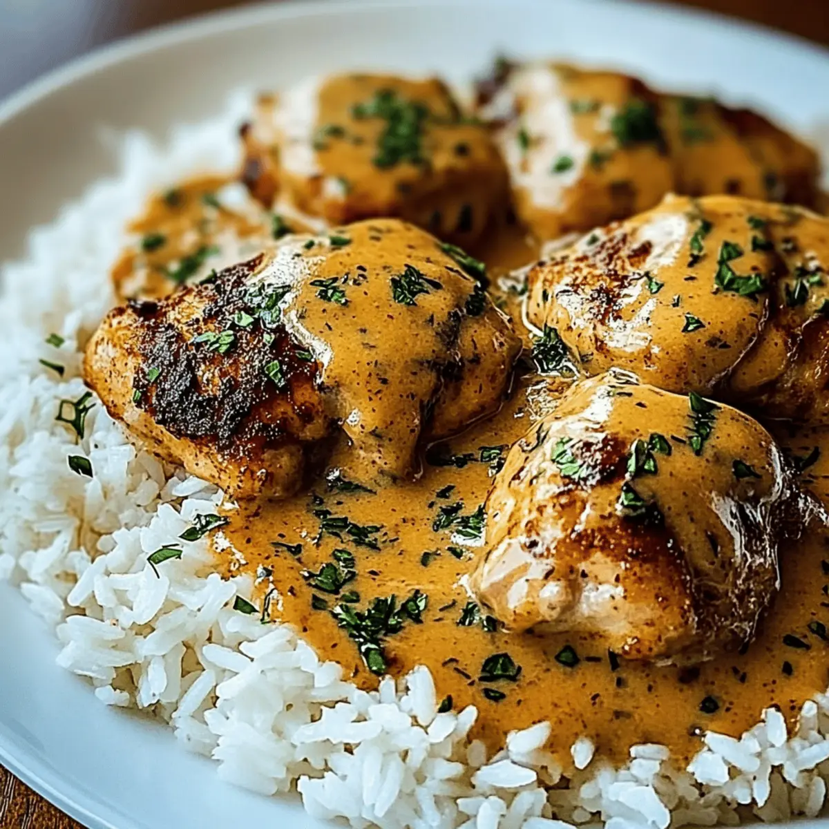 Jump to Recipe Print RecipeThere’s nothing quite like the warmth of a home-cooked meal, especially when it’s as inviting as Best Smothered Chicken and Rice. This Southern-style comfort food brings together tender, seared chicken thighs bathed in a luscious, creamy gravy, served over delicate fluffy rice. It’s the ultimate one-pan meal that’s not only quick to prepare, but also perfect for those chilly evenings when you’re in need of a hearty hug from your dinner. Each bite is a reminder of the rich culinary traditions that aim to nourish both body and soul. Ready to elevate your mealtime experience? Let’s dive into this delicious recipe that’s sure to become a family favorite! Why is Chicken and Rice a Family Favorite? Heartwarming Comfort: This dish is the ultimate comfort food, perfect for chilly evenings when you need a cozy meal that feels like home. One-Pan Wonder: With minimal cleanup and quick prep, this recipe is a busy cook’s dream—spend more time at the table and less time in the kitchen! Flavor Explosion: The combination of tender chicken, rich gravy, and fluffy rice creates a mouthwatering experience that’ll satisfy even the pickiest eaters. Customizable Options: You can easily swap chicken for boneless cuts or toss in your favorite veggies for added nutrition. Try adding peas or carrots for a delightful twist! Crowd-Pleasing Appeal: Whether it’s a weeknight dinner or a family gathering, this smothered chicken and rice is sure to impress guests and loved ones alike. Check out our Garlic Parmesan Chicken for another tasty family option! Chicken and Rice Ingredients • For your irresistible smothered experience! For the Chicken Chicken Thighs – Opt for bone-in, skin-on for maximum richness and flavor; boneless thighs will work but lack the depth. Flour – This is your thickening agent for the gravy; substitute with cornstarch if you’re going gluten-free. For the Gravy Butter – Enhances flavor while searing the chicken; olive oil is a lighter alternative if desired. Onions – Yellow onions add necessary sweetness to the gravy; shallots can be a nice substitute. Garlic – Fresh garlic provides that aromatic flavor boost; avoid powdered garlic for best results. Chicken Broth – Serves as the gravy’s base; low-sodium is recommended for better control over salt levels. Heavy Cream – Brings creaminess to the gravy; half-and-half can lighten it up a tad without sacrificing taste. For Serving Rice – Long-grain white rice is ideal as it absorbs the gravy beautifully, providing the perfect base to soak up all the delicious flavors. With these Chicken and Rice ingredients on hand, you’re set to create a dish that’s not only scrumptious but cherished by all at the table! Step‑by‑Step Instructions for Best Smothered Chicken and Rice Step 1: Prepare the Chicken Start by patting the chicken thighs dry with paper towels, which helps achieve a beautiful sear. Season both sides generously with salt, black pepper, paprika, and garlic powder. Lightly dredge the seasoned chicken in flour for a crispy crust. Set aside while you heat up the skillet. Step 2: Sear the Chicken In a large skillet, melt 2 tablespoons of butter over medium heat, ensuring it’s hot but not smoking. Carefully add the chicken thighs, skin-side down, and sear for 4-5 minutes until the skin is golden brown and crispy. Flip the chicken and sear the other side for another 3-4 minutes. Remove the chicken and set it aside on a plate. Step 3: Sauté the Onions In the same skillet, add the chopped onions, stirring occasionally, and sauté for about 5 minutes until they become translucent and fragrant. Next, add 3 minced garlic cloves and cook for an additional 30 seconds, allowing the garlic’s aroma to infuse the dish. This step adds depth to your smothered chicken and rice. Step 4: Create the Roux Sprinkle 2 tablespoons of flour over the onion and garlic mixture, stirring consistently to form a roux. Gradually whisk in 2 cups of chicken broth until the mixture is smooth and thickened, about 2-3 minutes. Keep an eye on it, as you want it to bubble gently. Once thickened, lower the heat to a simmer. Step 5: Simmer with Cream Pour in 1 cup of heavy cream, stirring to combine with the gravy. Nestle the seared chicken thighs back into the skillet, ensuring they are coated in the creamy mixture. Cover the skillet and let it simmer for 25-30 minutes, until the chicken is fork-tender and reaches an internal temperature of 175°F. Step 6: Cook the Rice While the chicken simmers, prepare your rice according to the package instructions. Use long-grain white rice for a fluffy texture that will soak up all the delicious gravy. Once ready, keep it warm while finalizing the chicken and gravy. Step 7: Serve the Dish To plate, scoop a generous portion of rice onto each plate, followed by a chicken thigh. Ladle the creamy gravy over the chicken and rice, allowing the flavors to meld beautifully. Garnish with freshly chopped parsley for a pop of color and flavor that completes your best smothered chicken and rice experience. What to Serve with Best Smothered Chicken and Rice Embrace the warmth of family meals by adding delightful sides that enhance your dining experience. Creamy Mashed Potatoes: These buttery, smooth potatoes complement the velvety gravy beautifully, allowing you to soak up every last drop. Collard Greens: A classic Southern side, their slightly bitter taste and tender texture provide a wonderful balance to the rich chicken and rice. Cornbread: Enjoy sweet or savory cornbread for a crunchy contrast. It’s perfect for mopping up the delicious gravy, making each bite satisfying. Fresh Garden Salad: Crisp greens and vibrant vegetables tossed with a light vinaigrette add a refreshing crunch that lightens the richness of the main dish. Sautéed Green Beans: Bright and tender, they provide a fresh note and nice contrast in texture—it’s a simple way to elevate your plate. Sweet Tea: No S