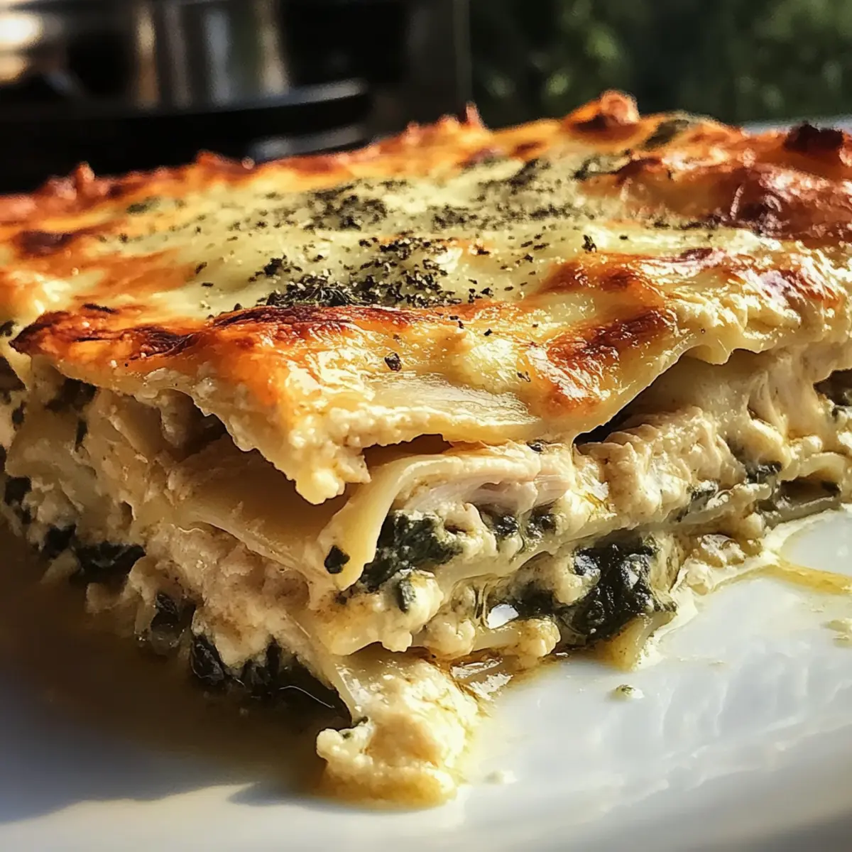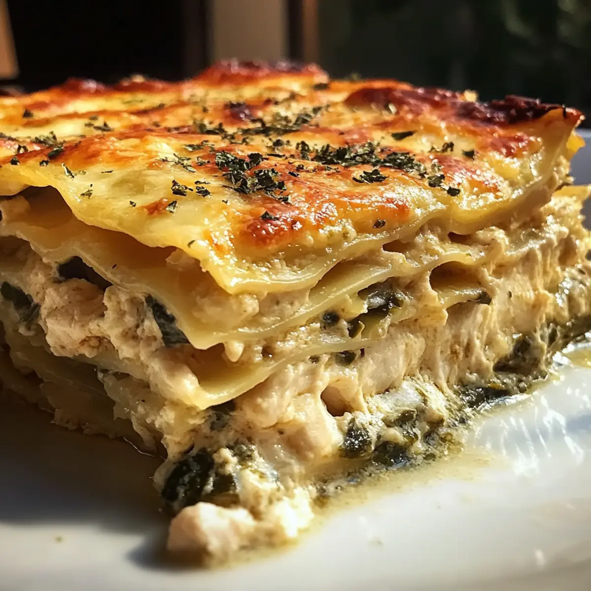 Jump to Recipe Print RecipeAs I stood in my kitchen, the aroma of sautéed garlic mingled with simmering chicken, transporting me to cozy family dinners of my childhood. This is the magic of Chicken Lasagna—a dish that wraps you in warmth and comfort, transforming any ordinary evening into a delightful culinary celebration. Quick to prepare and customizable to suit various tastes, this creamy, layered masterpiece is perfect for feeding a hungry family or impressing dinner guests. Each layer is an embrace of tender chicken, aromatic herbs, and bubbling cheeses, promising a satisfying meal that everyone will love. Are you ready to dive into a slice of this heavenly comfort food? Why is Chicken Lasagna So Irresistible? Comforting, this Chicken Lasagna is designed to evoke warm, nostalgic feelings with every bite. Customizable, feel free to swap in your favorite veggies or cheese options to make it your own. Family-Friendly, it’s a guaranteed crowd-pleaser that will have everyone coming back for seconds. Quick to Prepare, pace through the assembly and oven time, making it perfect for busy weeknights. And let’s not forget the Creamy Layers of Flavor, where hearty chicken meets delicious cheeses, enveloped in a savory embrace. Serve it with a side of garlic bread for a truly satisfying meal, just like you would with my Garlic Parmesan Chicken. Chicken Lasagna Ingredients • Dive into making the most delicious Chicken Lasagna with these essential ingredients for that crowd-pleasing comfort food experience. For the Noodles Lasagna Noodles – Essential for building the layers; gluten-free alternatives are available if desired. For the Filling Olive Oil – Ideal for sautéing vegetables; can be swapped with butter or avocado oil. Diced Onion – Brings sweetness and depth; shallots can be used for a milder flavor. Minced Garlic – Elevates the dish with flavor; opt for fresh garlic for the best aroma. Cooked Chicken – The star protein; rotisserie chicken offers an easy shortcut. Spinach – Adds color and nutrition; feel free to substitute with kale or zucchini. For the Cheese Mixture Cottage Cheese/Ricotta Cheese – Creates creaminess; vegan options include cashew cream if needed. Egg – Binds the cheese mixture together; for a vegan alternative, try a flax egg. Heavy Cream – Imparts richness; coconut cream serves as a dairy-free option. For Seasoning Dried Parsley – Infuses flavor; fresh herbs can take your lasagna to the next level. Salt and Pepper – Essential for seasoning to taste, ensuring the flavors shout. For the Topping Mozzarella Cheese – The gooey topping; consider gouda or provolone for a different twist. Parmesan Cheese – Adds that umami kick; nutritional yeast makes a great vegan substitute. For Moisture Chicken Stock – Keeps the lasagna moist; vegetable stock can be an alternative for vegetarians. Step‑by‑Step Instructions for Chicken Lasagna Step 1: Preheat the Oven Begin by preheating your oven to 375°F (190°C). This step ensures that your Chicken Lasagna bakes evenly and thoroughly. Prepare your baking dish by lightly greasing it with olive oil or cooking spray to prevent sticking. Step 2: Cook the Lasagna Noodles In a large pot of boiling salted water, cook the lasagna noodles according to package instructions, usually around 8-10 minutes until al dente. Stir occasionally to prevent them from sticking together, then drain and set the noodles aside on a clean kitchen towel to cool. Step 3: Sauté the Aromatics In a spacious saucepan, heat two tablespoons of olive oil over medium heat. Add the diced onion and sauté for about 5 minutes until translucent and fragrant. Stir in the minced garlic and cook for an additional minute until aromatic, being careful not to let it burn. Step 4: Prepare the Chicken Mixture In a large mixing bowl, combine the cooked chicken, sautéed onions, spinach, salt, pepper, and your choice of seasonings. Mix well to ensure the flavors are evenly distributed. This savory filling will be the heart of your Chicken Lasagna, adding both richness and nutrition. Step 5: Make the Cheese Mixture In another bowl, blend together the cottage cheese (or ricotta), egg, heavy cream, dried parsley, and half of the mozzarella cheese. Stir this mixture until it is uniformly combined; it will add a creamy texture to your Chicken Lasagna that balances the heartiness of the chicken. Step 6: Assemble the Lasagna Start assembling your Chicken Lasagna by spreading a thin layer of chicken stock at the bottom of your greased baking dish. Layer noodles, followed by half of the chicken mixture, then half of the cheese mixture. Repeat this process, finishing with a final layer of noodles topped with the remaining mozzarella and parmesan cheese. Step 7: Bake with Care Cover the assembled Chicken Lasagna with aluminum foil, ensuring it is tightly sealed. Bake in the preheated oven for 30 minutes. When the time is up, carefully remove the foil and continue baking for another 35 minutes, or until the top is golden brown and bubbling. Step 8: Cool and Garnish After baking, let your Chicken Lasagna rest for 15 minutes on the counter. This cooling period allows the layers to set, making it easier to slice. Finally, garnish with fresh parsley and serve, inviting your family to dive into this comforting dish! Chicken Lasagna Variations & Substitutions Feel free to get creative and make this Chicken Lasagna your own—explore these delightful twists to heighten the flavors and texture! Vegetable Boost: Add sautéed zucchini, bell peppers, or mushrooms for extra nutrition and a delightful twist. Each bite bursts with fresh flavor! Turkey Delight: Swap out chicken for ground turkey for a lighter, equally scrumptious alternative. This version is perfect if you’re looking for a lean protein kick. Cheesy Swaps: Experiment with cheeses like gouda or provolone instead of mozzarella for unique flavor layers. Each choice brings its special touch to this classic dish.