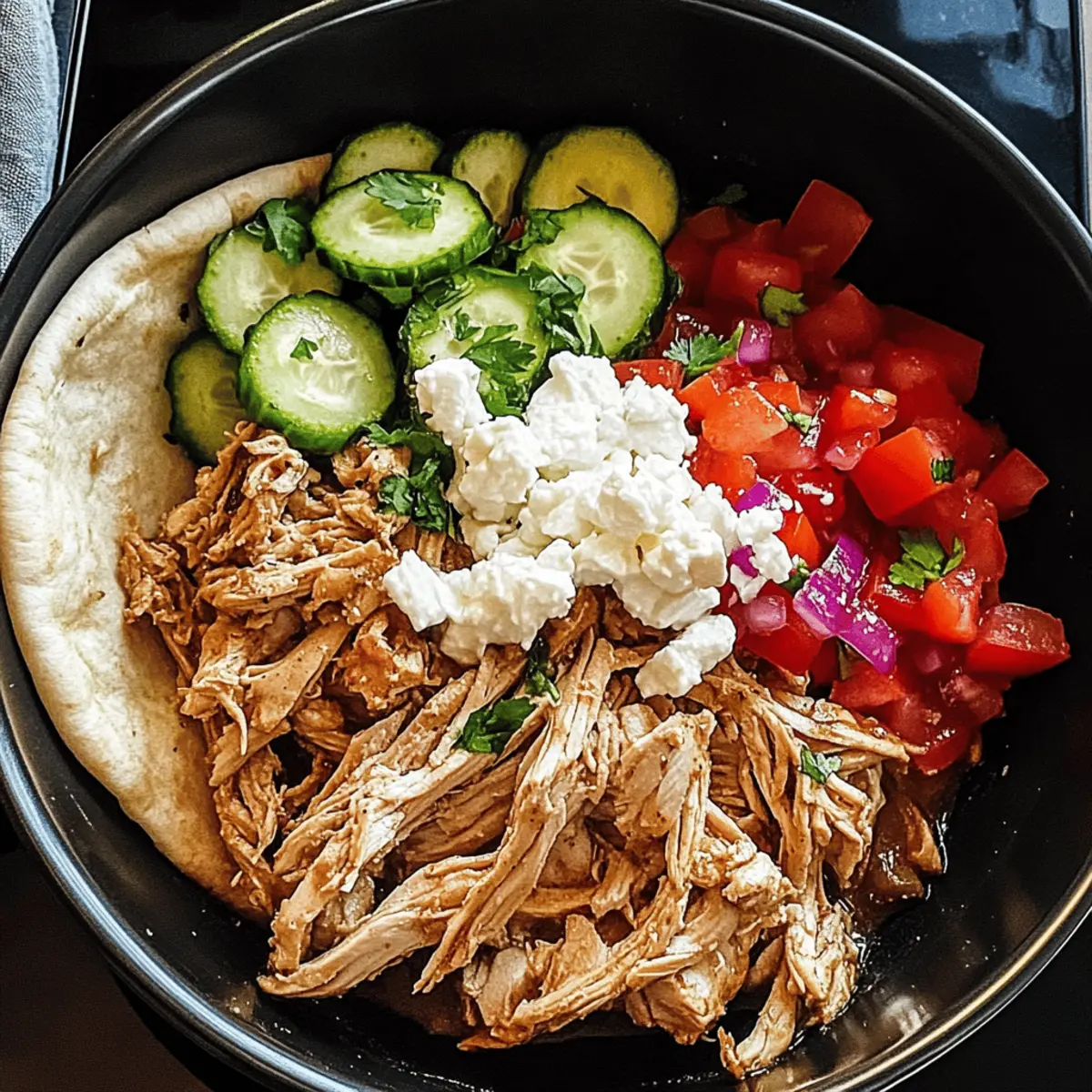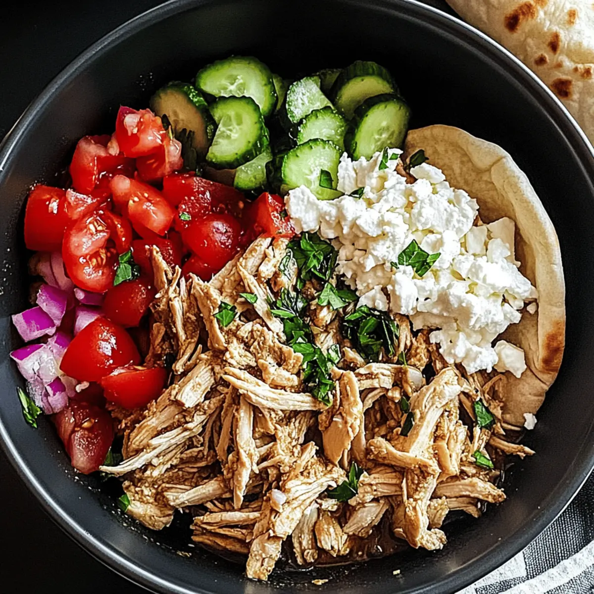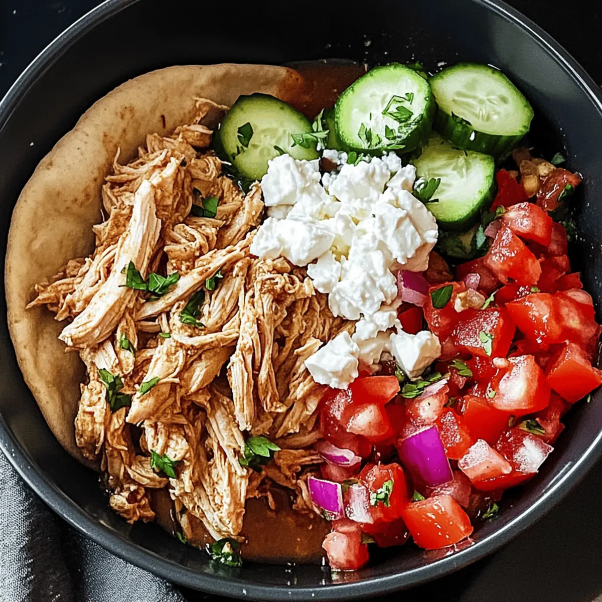 Jump to Recipe Print RecipeAs I stood in my kitchen, the unmistakable scent of spices wafted through the air, transporting me to a bustling marketplace in the heart of the Middle East. That’s the magic of Slow Cooker Chicken Shawarma—it turns everyday ingredients into something extraordinary. This dish not only promises a quick prep and flavorful experience but also gives you the chance to impress loved ones with minimal effort. The beauty of slow cooking ensures that the chicken thighs come out tender and juicy, making it a comforting meal you can easily whip up during a busy weeknight. Imagine wrapping your perfectly spiced chicken in warm pita bread, adding fresh veggies, and savoring each bite. Are you ready to elevate your dinner routine with this irresistible dish? Why is Chicken Shawarma a Must-Try? Flavorsome and vibrant, this Slow Cooker Chicken Shawarma delivers a taste of the Middle East right in your home. Effortless preparation means you can enjoy a delicious dinner with just a few minutes of upfront work. Versatile by nature, it’s easily adaptable—try chicken thighs or breasts depending on your preference! Plus, crowd-pleaser appeal ensures it’ll be a hit with family and friends. For a side that complements this dish beautifully, serve it alongside hummus or a refreshing tabbouleh. Get ready for a flavorful adventure that will keep everyone coming back for more! Chicken Shawarma Ingredients • Discover the secrets of Chicken Shawarma! For the Marinade Boneless Skinless Chicken Thighs – The star of the dish, offering unparalleled tenderness and rich flavor; chicken breasts can be used as a lower-fat alternative but may dry out. Garlic – Infuses the dish with savoriness and aroma; fresh garlic is best, but garlic powder can substitute (1/8 teaspoon equals 1 clove). Cumin – Adds warm, earthy notes essential for flavor; ground cumin is key, and there’s no adequate substitute. Paprika – Provides color and a hint of sweetness; consider smoked paprika for a lovely twist. Turmeric – Gives a golden hue; while it can be omitted, it contributes to the overall taste. Coriander – Imparts a bright, citrusy flavor; fennel seeds can be used if you’re in a pinch. Cinnamon – Brings warmth and complexity, and should not be substituted as it enhances the shawarma’s unique flavor profile. Cayenne Pepper – Adds just the right amount of heat; adjust to your spice preference or omit if desired. Salt & Black Pepper – Vital for flavor enhancement, with sea salt being a great substitute for table salt. For the Cooking Olive Oil – Contributes richness to the dish; can replace with canola, vegetable oil, or coconut oil for a unique touch. Plain Yogurt – Tenderizes the meat and adds creaminess; Greek yogurt can serve as a thicker alternative, while dairy-free yogurt works for non-dairy needs. Lemon Juice – Brightens up the flavors; vinegar or lime juice can also be effective substitutes. Apple Cider Vinegar – Enhances the dish’s tang; any mild vinegar can work in its place. Dive into this delightful Chicken Shawarma recipe and enjoy the burst of flavors it brings to your dinner table! Step‑by‑Step Instructions for Slow Cooker Chicken Shawarma Step 1: Prepare Marinade In a mixing bowl, combine minced garlic, cumin, paprika, turmeric, coriander, cinnamon, cayenne pepper, salt, and black pepper. Pour in olive oil, plain yogurt, apple cider vinegar, and lemon juice, then whisk until the marinade is smooth and well-blended. This aromatic mixture is vital for infusing your Slow Cooker Chicken Shawarma with deep flavors, so make sure it’s well mixed. Step 2: Marinate Chicken Place the boneless skinless chicken thighs into the slow cooker and pour the prepared marinade over them. Using your hands or a spoon, ensure each thigh is thoroughly coated with the marinade. This step not only adds flavor but also helps tenderize the meat, setting the stage for irresistibly juicy chicken once cooked. Step 3: Cooking Cover the slow cooker and set it to cook on low for 6-8 hours or on high for 3-4 hours. The low and slow method allows the chicken to absorb all the delicious spices while remaining super tender. When finished, the chicken should be fork-tender and practically falling apart, indicating it’s perfect for shredding. Step 4: Shred Chicken Once the cooking time is complete, carefully uncover the slow cooker. Using two forks, gently shred the chicken while it’s still in the pot, mixing it with the flavorful juices. This step allows the spices and marinade to fully integrate into the meat, creating a succulent base for your Slow Cooker Chicken Shawarma. Step 5: Serve Warm some pita bread as you prepare to serve. Scoop portions of the shredded chicken into the pita, then top with fresh vegetables like cucumbers and tomatoes. Sprinkle with feta cheese or add pickled onions for an extra zing, finishing with fresh parsley as a garnish. Your cozy, flavorful dinner of Chicken Shawarma is now ready to delight! Storage Tips for Chicken Shawarma Fridge: Store leftover Chicken Shawarma in an airtight container for up to 3 days. Make sure to let it cool to room temperature before sealing for freshness. Freezer: Freeze Chicken Shawarma in individual portions in freezer-safe bags for up to 3 months. Remove as much air as possible to prevent freezer burn. Reheating: To reheat, thaw overnight in the fridge if frozen, then warm in a skillet with a splash of water over medium heat, stirring until heated through. Marinade Storage: If you have extra marinade, store it in the fridge in a sealed container for up to a week. It can be great for marinating additional chicken or vegetables! Chicken Shawarma Variations & Substitutions Feel free to take your Chicken Shawarma to the next level—let your culinary creativity shine with these delightful twists! Breast Swap: Substitute chicken thighs with boneless skinless breasts, adjusting the cooking time to avoid dryness. Breasts can be j