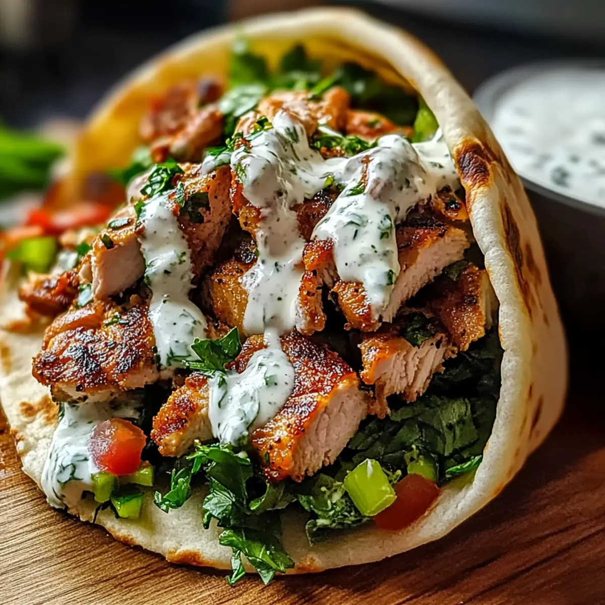 Jump to Recipe Print RecipeAs I stood in the kitchen, the enticing aroma of spices began to swirl around me, instantly transporting me to a bustling Lebanese market. This is the magic of making Chicken Shawarma with Garlic Sauce—a dish that transforms simple ingredients into an unforgettable experience. The harmonious blend of marinated, grilled chicken enveloped in a creamy garlic sauce not only brings a taste of Middle Eastern street food to your home but is also astonishingly make-ahead-friendly. Whether you’re planning a casual family dinner or a festive gathering, this recipe promises to impress without keeping you tethered to the stove. Ready to dive into a culinary adventure that’s both comforting and packed with flavor? Let’s get cooking! Why is this Chicken Shawarma special? Exquisite Flavor Fusion: The marriage of warm spices and creamy garlic sauce creates a taste sensation that transports you straight to the streets of Lebanon. Make-Ahead Magic: Perfect for meal prep! Marinate your chicken overnight for a flavor-packed experience that saves you time. Crowd-Pleasing Dish: Ideal for gatherings, this recipe is guaranteed to impress friends and family alike. Serve it with fresh salads or fluffy rice pilaf for a complete meal. Versatile Enjoyment: Swap out chicken for lamb or grilled vegetables for a delightful twist, expanding your culinary repertoire. Easy Cooking Method: Sear to perfection in just minutes! Whether you’re a beginner or seasoned chef, you’ll find this dish approachable and rewarding. Chicken Shawarma Garlic Sauce Ingredients For the Marinade Greek Yogurt – A rich base for the marinade; opt for full-fat for maximum tenderness and flavor. Olive Oil – Helps emulsify the marinade, adding moisture to the chicken. Lemon Juice – Provides acidity that enhances flavor and aids in tenderizing the chicken. Minced Garlic – Essential for the garlic sauce, delivering deep flavor complexity. For the Spice Blend Cumin – Offers warm, earthy notes that are characteristic of shawarma. Coriander – Adds citrusy overtones to the spice mix for a refreshing touch. Cardamom – Infuses the dish with its aromatic, piney flavor for depth. Smoked Paprika – Contributes a subtle smokiness that elevates the dish’s character. Turmeric – Provides a beautiful color and a hint of earthiness. Cinnamon – Adds a touch of warmth to balance the spices. Cayenne Pepper – Adjust to your spice level preference for the perfect kick. Salt & Black Pepper – Essential for seasoning and enhancing the overall flavor profile. For the Garlic Sauce Garlic – Fresh garlic adds a punch; don’t forget to remove any green sprouts for a milder taste. Lemon Juice – Used to balance the richness of the oil in the sauce. Olive Oil – Gradually incorporated for a fluffy emulsion that’s easy to spread. Explore the enticing aroma of this Chicken Shawarma Garlic Sauce that brings a Middle Eastern flair to your kitchen! Step‑by‑Step Instructions for Chicken Shawarma Garlic Sauce Step 1: Prepare Marinade In a medium bowl, whisk together 1 cup of Greek yogurt, 2 tablespoons of olive oil, and the juice from 1 lemon until smooth and emulsified. This creamy base becomes your marinade, enhancing the chicken’s tenderness and flavor. Ensure everything is well combined, creating a luscious mixture that will coat the chicken perfectly. Step 2: Add Spices Next, stir in 4 cloves of minced garlic, along with 2 teaspoons of cumin, 2 teaspoons of coriander, 1 teaspoon of cardamom, 1 teaspoon of smoked paprika, 1 teaspoon of turmeric, ½ teaspoon of cinnamon, and a pinch of cayenne pepper. Mix until the spices are fully incorporated into the marinade, giving it an aromatic, flavorful punch characteristic of Chicken Shawarma. Step 3: Prepare Chicken Take about 1.5 pounds of chicken thighs and pat them dry with paper towels. If desired, cut the thighs into strips for quicker cooking and easier wrapping. Coat the chicken thoroughly with the prepared marinade, ensuring every piece is well covered. For the best flavor, let it marinate in the refrigerator for at least 3 hours, or ideally, overnight. Step 4: Make Garlic Sauce For the garlic sauce, start by processing 4 cloves of peeled garlic with a pinch of salt in a food processor until finely minced. Gradually add in ½ cup of olive oil, slowly drizzling it in while the processor runs to create a fluffy emulsion. Once blended, add 1 tablespoon of lemon juice for brightness and pulse it to combine, achieving a rich, spreadable texture. Step 5: Cook Chicken Heat a cast iron skillet over high heat until it starts to shimmer. Once hot, add the marinated chicken in a single layer, avoiding overcrowding. Sear the chicken for about 5-6 minutes without moving it to allow a charred, caramelized crust to form. Carefully flip the pieces and cook for an additional 5-6 minutes or until the internal temperature reaches 165°F. Step 6: Assemble To serve, take warm pita bread and layer your perfectly cooked Chicken Shawarma onto it. Generously spread the homemade garlic sauce over the chicken, followed by your choice of fresh vegetables like lettuce, tomatoes, or cucumbers. Wrap the pita tightly and enjoy a delicious, homemade meal that showcases the delightful flavor of Chicken Shawarma Garlic Sauce. Make Ahead Options These Chicken Shawarma Garlic Sauce components are perfect for busy home cooks looking to save time! You can marinate the chicken thighs up to 24 hours in advance; simply coat them with the yogurt and spice mixture and refrigerate. The garlic sauce can also be prepared a day ahead, allowing the flavors to meld; store it in an airtight container in the fridge for up to 3 days. To ensure freshness, keep the cooked chicken and garlic sauce separate until ready to serve. When it’s time to enjoy your meal, simply heat the marinated chicken in a skillet, cook until perfectly charred, and layer it in warm pita with your creamy sauce for a delightful, resta