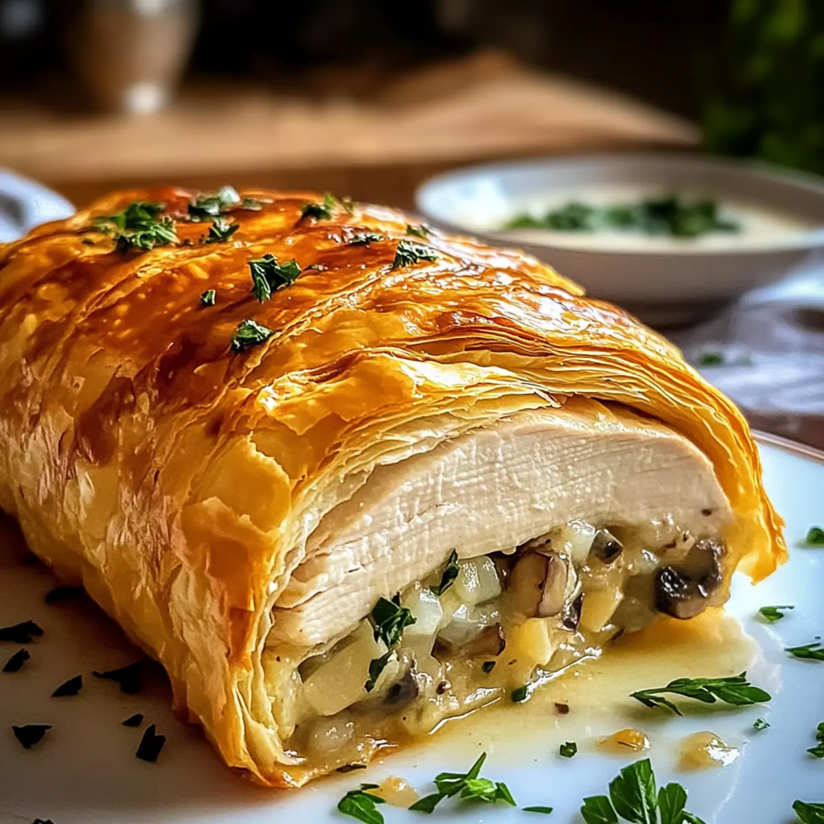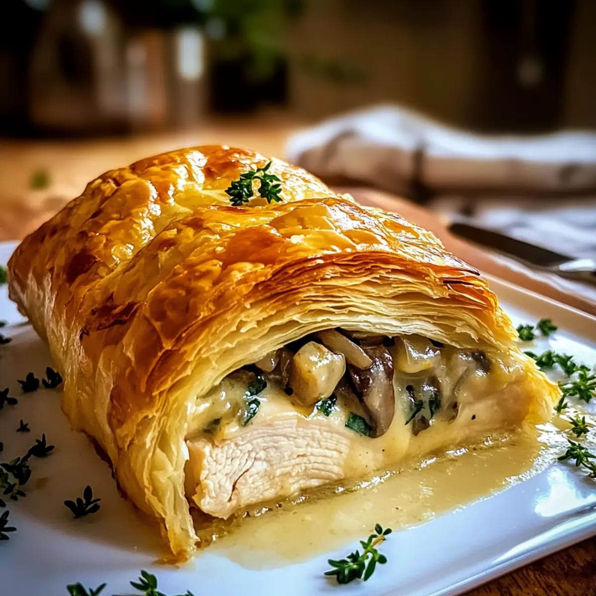 Deliciously Elegant: Chicken Wellington transforms a simple dinner into a festive occasion, wrapping juicy chicken in flaky pastry for an experience that’s both cozy and upscale.