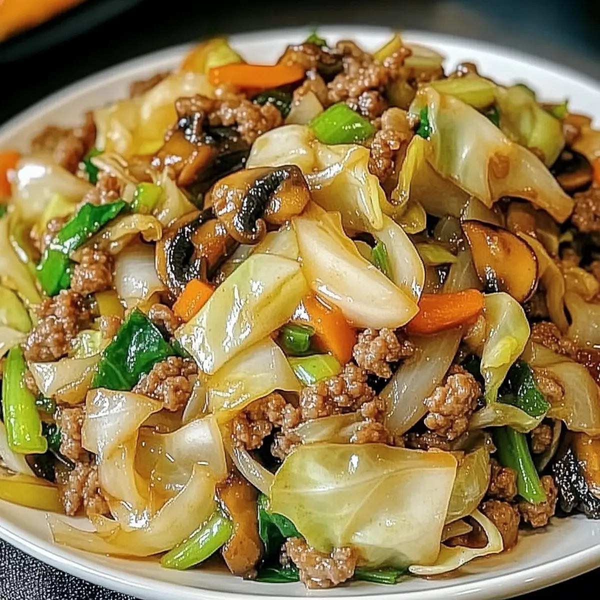 Jump to Recipe Print RecipeAs the sizzle of beef meets the aromatic whispers of garlic and ginger, my kitchen transforms into a bustling fusion of flavors reminiscent of a cozy Chinese restaurant. This Quick & Flavorful Chinese Ground Beef and Cabbage Stir Fry is not just a meal; it’s a delightful escape into heartwarming comfort food that comes together in just 25 minutes. Perfect for those of us juggling busy lives yet longing for homemade goodness, this dish is both low-carb and impressively budget-friendly. With tender ground beef and crisp cabbage mingling in a savory soy and sesame embrace, you’ll find it adaptable enough to suit any palate—swap in vegetables you love or proteins you have on hand. Are you ready to add this quick weeknight wonder to your meal rotation? Why Is This Stir Fry a Must-Try? Quick and Easy: You’ll whip up this dish in just 25 minutes, making it a perfect solution for hectic weeknights. Flavor Explosion: With savory soy sauce and aromatic sesame oil, your taste buds will be delighted by each bite! Versatile: Swap proteins or vegetables based on what you have available—it’s a recipe ready to accommodate your culinary preferences. Low-Carb & Budget-Friendly: This dish keeps your wallet happy while providing a nutritious meal loaded with protein and fiber. Crowd-Pleasing: Whether you’re entertaining guests or feeding the family, this stir fry guarantees smiles all around! For even more exciting meals, try out my Ground Beef Orzo or Zucchini Ground Beef recipes to keep your dinner table lively! Chinese Ground Beef and Cabbage Stir Fry Ingredients For the Stir Fry • Ground Beef – A great source of protein that creates a rich, savory base; feel free to substitute with lean ground turkey or chicken for a lighter option. • Cabbage – Adds a satisfying crunch and fiber; can be switched out for kale or bok choy if desired. • Shiitake Mushrooms – These bring a deep umami flavor to the dish; if unavailable, button mushrooms work just as well. • Green Onions – Provide freshness; you can use regular onions in a pinch, but green onions do add a lovely color. For the Sauce • Soy Sauce – Infuses the dish with savory depth; tamari is a fabulous gluten-free alternative. • Sesame Oil – Enhances flavor with its nutty undertones; for allergy concerns, vegetable oil is a suitable substitute. Aromatics • Garlic – Offers delightful aromatic depth to the stir fry; while fresh garlic is preferred, garlic powder can be used if you’re short on time. • Ginger – Adds warm, spicy notes to the dish; ground ginger can stand in for fresh if needed. This Chinese Ground Beef and Cabbage Stir Fry is not only easy to make, but it’s also designed to help you explore flavor without breaking the bank! Enjoy! Step‑by‑Step Instructions for Chinese Ground Beef and Cabbage Stir Fry Step 1: Prep Ingredients Start by washing and chopping all your fresh ingredients. Slice the cabbage into thin strips, chop the shiitake mushrooms, and finely mince the garlic and ginger. Also, slice green onions, keeping the green and white parts separate. Prepare all these ingredients within 10 minutes to have a smooth cooking process as you make your Chinese Ground Beef and Cabbage Stir Fry. Step 2: Cook Beef In a large pan or wok, heat 2 tablespoons of sesame oil over medium-high heat for about 1 minute until fragrant. Add the ground beef to the hot oil and cook it, breaking it apart with a spatula. Sauté until it’s browned and no longer pink, which should take about 5-7 minutes. This step creates a rich, savory base for your stir fry. Step 3: Add Aromatics Once the beef is nicely browned, reduce the heat to medium and stir in the minced garlic and ginger. Cook these aromatics for another 1-2 minutes, stirring frequently, until they become fragrant and golden. This will infuse your Chinese Ground Beef and Cabbage Stir Fry with wonderful depth and warmth. Step 4: Incorporate Vegetables Now, add the chopped shiitake mushrooms and cabbage to the pan. Stir-fry everything together for about 3-5 minutes, allowing the vegetables to soften slightly while maintaining a tender-crisp texture. This step is crucial to ensure you capture the vibrant flavors of each ingredient in your stir fry. Step 5: Finish the Dish Pour in ¼ cup of soy sauce, ensuring even coverage over the mixture. Stir well to incorporate all flavors, and cook for an additional minute until everything is heated through and combined. Once done, remove from heat and let it sit for a moment to allow the flavors to meld beautifully in your Chinese Ground Beef and Cabbage Stir Fry. Serve immediately over steamed rice or enjoy it alone for a lighter meal. What to Serve with Quick & Flavorful Chinese Ground Beef and Cabbage Stir Fry Indulging in a delightful mix of vibrant flavors, this dish can be easily complemented by a variety of sides and beverages that will elevate your meal to a whole new level. Jasmine Rice: Fluffy and aromatic, jasmine rice absorbs the savory sauce beautifully, providing a comforting base for your stir fry. Cauliflower Rice: For a low-carb option, cauliflower rice offers a light, grain-free alternative that pairs well with the rich flavors of the stir fry. Steamed Broccoli: Crisp and bright, steamed broccoli adds a fresh crunch and a touch of color to your dinner plate. Garlic Butter Noodles: Tender noodles tossed in garlic butter balance the savory elements of the stir fry, making for a satisfying combination. Pickled Vegetables: A side of pickled carrots or daikon provides a tangy contrast that brightens up the hearty flavors of the beef and cabbage. Fresh and zesty, pickled vegetables can awaken your taste buds and cleanse your palate between bites. Asian Cucumber Salad: A refreshing salad with sesame dressing cools the palate and adds a delightful crunch, enhancing the overall dining experience. Chilled Green Tea: A perfect beverage to complement the flavors, chilled green tea’s mild