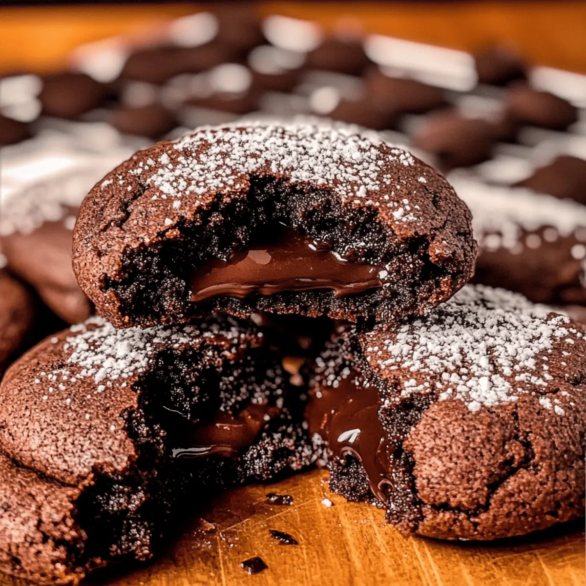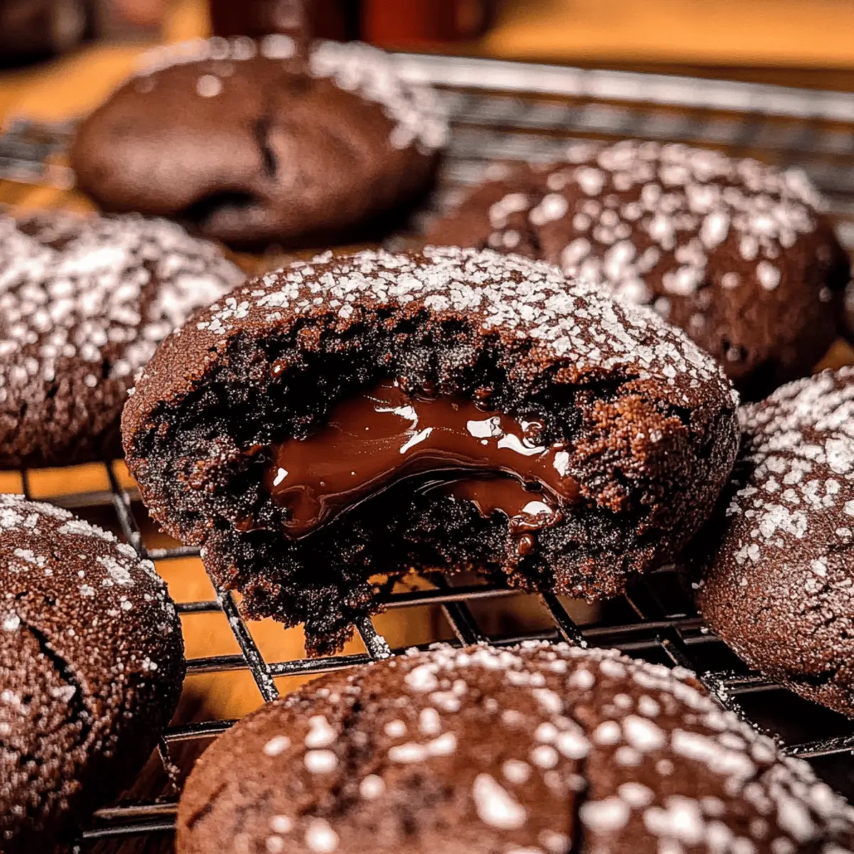 Jump to Recipe Print RecipeAs I pulled a tray of these Chocolate Lava Cookies from the oven, the intoxicating aroma of melting chocolate enveloped my kitchen, promising something truly delightful. These chewy cookies are not just any treat; they feature a luscious molten ganache center that flows out with every bite, satisfying any chocolate lover’s cravings. What I adore about this recipe is how quickly it comes together—ideal for those spontaneous dessert moments. Plus, they strike that perfect balance between indulgence and simplicity, making them a crowd-pleaser at any gathering. Are you ready to embrace the magic of these cookies and create a sweet masterpiece that will leave everyone asking for more? Why Are Chocolate Lava Cookies Irresistible? Chewy, dreamy texture: The outside is wonderfully chewy, while the molten ganache center delivers a warm, gooey surprise that chocolate lovers crave. Quick and easy: You can whip these up in no time, perfect for impromptu gatherings or late-night cravings. Gourmet experience: Impress your friends and family with a dessert that tastes like it came straight from a fancy bakery. Customizable: Add a twist by experimenting with ingredients—think nuts or even a hint of espresso for a mocha delight! Serve warm: These cookies are best enjoyed fresh from the oven, preferably with a scoop of ice cream, turning your dessert into an unforgettable treat. Don’t miss out on exploring similar delights like Chocolate Chip Cookie Bars or Cosmic Brownie Cookies for even more indulgence! Chocolate Lava Cookies Ingredients These ingredients come together to create an indulgent treat that pairs perfectly with your favorite ice cream. For the Ganache • Semi-Sweet Chocolate Chips – Provides rich chocolate flavor; substitute with dark chocolate for a more intense taste. • Heavy Whipping Cream – Creates the ganache filling’s creamy texture; can use coconut cream for a dairy-free option. For the Cookies • All-Purpose Flour – Gives structure to the cookies; use gluten-free flour for a gluten-free variation. • Dutch Process Cocoa Powder – Enhances chocolate flavor and color; substituting with natural cocoa powder will alter the acidity. • Baking Powder – Acts as a leavening agent to help cookies rise; do not substitute with baking soda. • Salt – Balances sweetness while enhancing overall flavor; essential for that perfect taste. • Unsalted Butter – Adds richness and moisture; margarine or plant-based butter can be used if preferred. • Light Brown Sugar – Contributes moisture and a hint of caramel flavor; dark brown sugar deepens the flavor. • Granulated White Sugar – Provides sweetness and texture; substitute with coconut sugar for a less refined option. • Egg Yolks – Contributes to moisture and richness; for an egg-free alternative, use flax eggs or applesauce. • Vanilla – Enhances overall flavor; opt for pure vanilla extract for the best results. For Dusting • Powdered Sugar – For topping; optional but adds a sweet finishing touch. Substitute with a sugar-free alternative if desired. Step‑by‑Step Instructions for Chocolate Lava Cookies Step 1: Prepare the Ganache In a small saucepan, heat ½ cup of heavy whipping cream over medium heat until it just starts to simmer. Remove from heat and pour it over 1 cup of semi-sweet chocolate chips in a bowl. Let the mixture sit for 5 minutes to soften the chocolate, then stir until smooth. Transfer the ganache to the refrigerator and chill for about 1 hour until firm. Step 2: Prep the Dry Mixture While the ganache is chilling, preheat your oven to 350°F (175°C) and line a baking sheet with parchment paper. In a mixing bowl, whisk together 1 cup of all-purpose flour, ⅓ cup of Dutch process cocoa powder, ½ teaspoon of baking powder, and a pinch of salt. Mix until well combined, then set this dry mixture aside for later use in the Chocolate Lava Cookies. Step 3: Make the Dough In a large mixing bowl, cream together ½ cup of unsalted butter and ½ cup light brown sugar with an electric mixer until the mixture is light and fluffy, about 2-3 minutes. Gradually add in ¼ cup of granulated white sugar and continue beating until fully combined. Next, incorporate 2 egg yolks and 1 teaspoon of vanilla extract, mixing well to create a smooth and cohesive dough. Step 4: Combine Mixtures Slowly add the dry mixture to the wet ingredients, using a spatula to gently fold it in until just combined. Be careful not to overmix; your dough should be thick and slightly sticky. Now, retreat to your chilled ganache and scoop it into 12 small balls, about 1 tablespoon each, then return them to the fridge for a few more minutes to solidify. Step 5: Assemble the Cookies Using a cookie scoop, take about 2 tablespoons of cookie dough and flatten it slightly in your palm. Place one frozen ganache ball in the center and carefully wrap the dough around it to form a ball. Repeat this process for all the cookie dough, ensuring the ganache is completely covered. Step 6: Bake the Cookies Place the assembled Chocolate Lava Cookies onto the prepared baking sheet, leaving enough space between each for them to spread. Bake in the preheated oven for 10-11 minutes, until the edges are firm but the centers still look slightly soft. Remove them from the oven and allow them to cool for about 5 minutes on the baking sheet before transferring them to a wire rack. Step 7: Serve and Enjoy Once cooled slightly, dust the warm cookies with powdered sugar for an extra touch of sweetness. Serve them immediately to enjoy the molten chocolate center, or pair them with a scoop of vanilla ice cream for a delectable dessert experience. Indulge in your homemade Chocolate Lava Cookies! How to Store and Freeze Chocolate Lava Cookies Airtight Container: Store your Chocolate Lava Cookies in an airtight container at room temperature for up to 3 days to maintain their delightful chewiness. Refrigerate: If you’d like to keep th