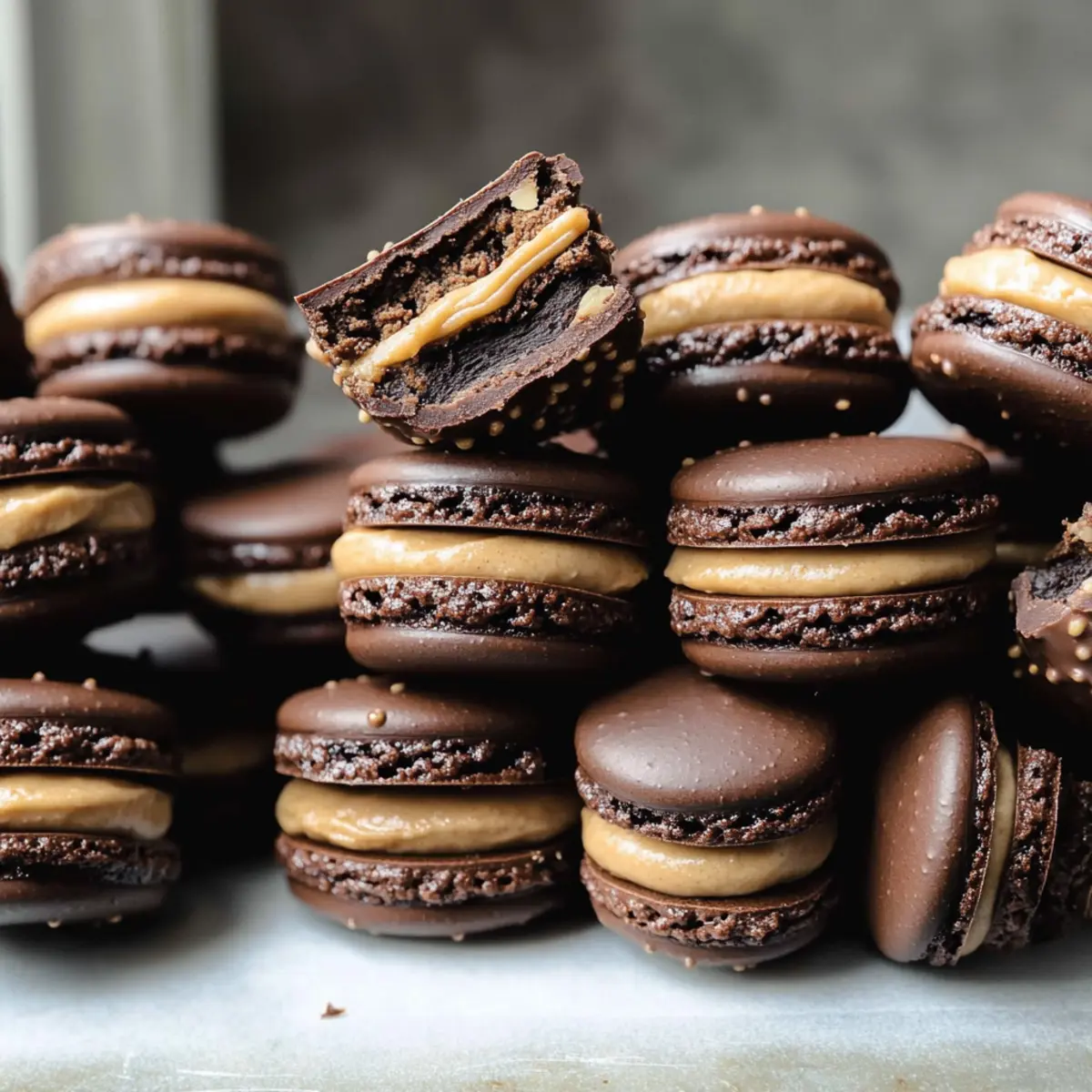 Jump to Recipe Print RecipeAs the warm aroma of fresh cookies fills the kitchen, I can’t help but feel a wave of nostalgia for those indulgent treats from my childhood. If you’re a fan of the iconic peanut butter and chocolate combo, you’ll be thrilled to dive into my recipe for Chocolate Peanut Butter Macarons. These delightful French desserts are not only gluten-free (just swap in almond flour), but they’re also impressively simple to make! You’ll love how the airy chocolate shells cradle a creamy, salty-sweet filling that transports you straight to dessert heaven. Perfect for gatherings or a cozy night in, these macarons will leave both family and friends raving. Ready to elevate your dessert game? Let’s get started! Why are Chocolate Peanut Butter Macarons irresistible? Decadent Flavor Duo: Chocolate and peanut butter come together for a harmony that’s utterly addicting, reminiscent of your favorite candy. Impressive Presentation: These macarons boast an elegant look that’s sure to WOW your guests, perfect for special occasions or upscale dessert platters. Gluten-Free Delight: Easily adapt the recipe to be gluten-free by using almond flour, making it a versatile treat for everyone. Quick and Fun: The preparation is straightforward—perfect for both novice and experienced bakers looking to have fun in the kitchen. Crowd-Pleasing Treat: Whether it’s a dinner party or a cozy night in, these macarons are bound to impress both family and friends alike. For more delightful ideas, don’t miss my Peanut Butter Cup dessert that also celebrates this fantastic flavor combination. Chocolate Peanut Butter Macaron Ingredients • Here’s everything you’ll need to create these delightful treats! For the Macaron Shells • Egg Whites – Essential for lift and lightness; use aquafaba for a vegan alternative. • Granulated Sugar – Stabilizes the meringue while adding sweetness; no substitutes for best texture. • Almond Flour – Creates the classic macaron texture; use finely ground gluten-free flour for allergen-friendly options. • Powdered Sugar – Sweetens and smoothens the shells; consider coconut sugar for a less refined flavor, but expect a texture change. • Unsweetened Cocoa Powder – Infuses rich chocolate flavor into the shells; Dutch-processed can add depth. For the Filling • Butter – Adds richness to the creamy filling; substitute with non-dairy butter or coconut oil for a dairy-free treat. • Peanut Butter – The heart of the filling; opt for creamy varieties for best results, or try almond/cashew butter for a twist. • Vanilla Extract – Enhances the filling flavors; optional but highly recommended. • Salt – Balances the sweetness; a pinch of Kosher or sea salt does wonders. Let the magic of chocolate and peanut butter elevate your dessert experience with these fantastic Chocolate Peanut Butter Macarons! Step‑by‑Step Instructions for Chocolate Peanut Butter Macarons Step 1: Prepare Pans Begin by preheating your oven to 300°F (150°C). While it warms up, line two baking sheets with parchment paper to prevent sticking. Ensure the parchment is flat, as this will help your chocolate peanut butter macarons bake evenly and maintain their beautiful shapes. Step 2: Make Swiss Meringue In a double boiler, gently combine 100g of egg whites with 200g of granulated sugar. Whisk the mixture over simmering water until it becomes frothy and the sugar is fully dissolved. Then, transfer the mixture to a stand mixer and beat on high until stiff peaks form, creating a glossy meringue that looks firm and shiny. Step 3: Combine Dry Ingredients Sift together 100g of almond flour, 30g of cocoa powder, and 150g of powdered sugar directly into your meringue bowl. Gently fold these dry ingredients into the meringue using a spatula until the batter flows like thick lava, smooth and shiny. This step is crucial as it prepares the structure of your chocolate peanut butter macarons. Step 4: Pipe Shells Transfer your macaron batter into a piping bag fitted with a round tip. Dot the parchment with a tiny amount of batter to help the corners stick to the baking sheets. Pipe small circles, about 1.5 inches apart, on the prepared sheets. After piping, firmly bang the sheets on the counter to release any trapped air bubbles, crucial for a perfect top. Step 5: Bake Place the baking sheets in the preheated oven and bake the macarons for approximately 13 minutes, turning the trays halfway through for even baking. You will know they are done when they puff up slightly and form a firm outer shell. Let them cool completely on the sheets to stabilize their delicate structure before handling. Step 6: Make Filling While the shells are cooling, prepare your filling. In a mixing bowl, beat together 100g of softened butter and 150g of creamy peanut butter until smooth and fluffy. Gradually mix in 100g of powdered sugar along with a splash of vanilla extract and a pinch of salt, ensuring a rich and tasty filling that perfectly complements your chocolate peanut butter macarons. Step 7: Assemble Macarons Once the macaron shells are cool, pair them up by size. Pipe a generous dollop of your peanut butter filling onto the flat side of half of the shells. Gently press the matching shells on top to create a delightful sandwich. For an extra indulgent touch, you can drizzle some melted chocolate on top before serving your chocolate peanut butter macarons. Chocolate Peanut Butter Macarons Variations Feel free to let your creativity soar by customizing these macarons to suit your taste buds and dietary needs! Nut Butter Twist: Swap in almond or cashew butter for a unique flavor that adds a delightful twist to the classic filling. Experiment with different nut butters to discover your favorite combination! Mocha Macarons: Whisk in a teaspoon of espresso powder into the chocolate batter for an invigorating mocha flavor. It’s a luxurious twist that will keep coffee lovers coming back for more. Sp