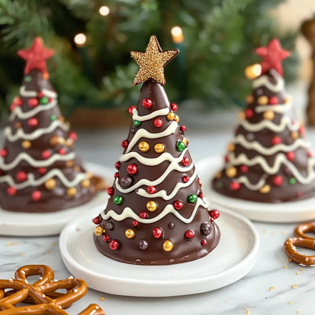 Jump to Recipe Print RecipeWhen the holidays roll around, my kitchen transforms into a festive wonderland, and nothing brings that spirit to life quite like these delightful Christmas Chocolate Trees. They embody the magic of the season with their rich chocolate bark, crunchy pretzel trunks, and a flurry of colorful sprinkles that let kids join in on the fun. What I love most about this recipe is that it’s not only a cinch to whip up—taking just about 30 minutes from start to finish—but it also doubles as a charming decoration and edible gift for friends and family. So whether you’re hosting a holiday gathering or looking for a sweet activity to entertain the little ones, these Christmas Chocolate Trees will add a sprinkle of joy to your celebrations. Curious to see how these cheerful treats come together? Let’s dive into the recipe! Why are Christmas Chocolate Trees so special? Kid-Friendly Fun: Involving little ones in this easy, no-bake recipe makes for delightful holiday memories. Visual Appeal: These charming trees look stunning on any dessert table, making them an eye-catching centerpiece. Customizable: Use different chocolate types and toppings for unique looks each time. Quick to Make: Whip up this tasty treat in just 30 minutes! If you’re also seeking other holiday delights, check out my Pink Hot Chocolate or the easy and delicious Chocolate Peanut Butter bites. These Christmas Chocolate Trees truly embody the festive spirit! Christmas Chocolate Trees Ingredients • For the Chocolate Dark Chocolate – This is the main component for the Christmas Chocolate Trees, providing a rich, decadent flavor. White Chocolate – Used for drizzling to create a snowy effect; optional but adds a lovely touch. • For the Decorations Mini Colorful Sprinkles – These add a festive, vibrant look; feel free to choose your favorite types for variation. Pretzel Sticks – These crunchy sticks serve as the trunks of the trees; gluten-free pretzels can be used for dietary needs. Step‑by‑Step Instructions for Christmas Chocolate Trees Step 1: Prepare the Baking Tray Start by lining a baking tray with parchment paper, ensuring it covers the surface completely to prevent sticking. This will provide a clean and smooth area for piping the Christmas Chocolate Trees. Keep it close while you prepare the chocolate, as you’ll use it immediately after melting. Step 2: Melt the Dark Chocolate In a microwave-safe bowl, heat the dark chocolate in 30-second intervals, stirring between each until it’s fully melted and smooth. Alternatively, you can use a double boiler for gentle melting. Aim for a glossy consistency that is fluid enough for easy piping. This rich chocolate will serve as the base for your festive trees. Step 3: Prepare the Piping Bag Once the dark chocolate is melted, transfer it to a piping bag or a zip-top bag with a small cut corner. This will allow you to create neat and defined shapes as you pipe the chocolate. Hold the bag at the bottom to keep the chocolate flowing freely. Step 4: Pipe the Tree Shapes Begin piping tree shapes onto the parchment paper, each about 3 inches tall and 2 inches wide. Make sure to create a broad base that overlaps with the pretzel stick, which will act as the trunk. Aim for a delightful, tree-like silhouette and be sure to work smoothly to maintain the shape. Step 5: Drizzle White Chocolate Next, melt the white chocolate in the same manner as the dark chocolate. Once ready, use a spoon or another piping bag to drizzle the white chocolate over the piped Christmas Chocolate Trees, creating a lovely “snow” effect that makes them pop with holiday spirit. Step 6: Add Decorative Sprinkles While the white chocolate drizzle is still wet, generously scatter your mini colorful sprinkles over each tree. This adds not only color but also fun texture to your Christmas Chocolate Trees. Be creative—mix and match sprinkles to make each tree uniquely festive! Step 7: Allow to Set Let the piped trees set at room temperature for about 10 minutes or refrigerate for 15-20 minutes until the chocolate is firm. The trees should feel solid to the touch and have a glossy exterior. This will ensure they hold their shape when you’re ready to serve. Step 8: Remove and Arrange Carefully lift each Christmas Chocolate Tree from the parchment paper, taking care not to break them. Arrange them on a serving platter or gift box, showcasing their festive beauty. These delightful treats will surely add a joyful touch to your holiday celebrations! Expert Tips for Christmas Chocolate Trees Stay Quick: Work promptly when piping your trees, as chocolate can set quickly. A speedy hand will help achieve the desired shape without hassle. Reheat as Needed: If you notice your melted chocolate is thickening, pop it back in the microwave for a few seconds to regain fluidity, making piping much easier. Pretzel Overlap: Ensure a good overlap of the chocolate base with the pretzel stick to create a sturdy structure for your Christmas Chocolate Trees—this prevents them from toppling over! Sprinkle Selection: Feel free to experiment with different types of sprinkles. They not only add vibrant color but also variety in texture, making your trees even more festive. Chilling Time: Don’t rush the setting process! Allow your trees to chill adequately in the fridge for firm results, ensuring they hold up beautifully when served. Christmas Chocolate Trees Variations Feel free to sprinkle your own creative touch on these Christmas Chocolate Trees—let your imagination run wild! Milk Chocolate: Use milk chocolate instead of dark for a sweeter, creamier flavor that kids will adore. White Chocolate Drizzle: Swap white chocolate drizzle for colored melting chocolate to create vibrant trees that pop. There’s just something so festive about a rainbow of colors! Nutty Crunch: Add crushed nuts—instead of sprinkles—as a topping for a delightful crunch that’s perfect for nut lovers. You can eleva