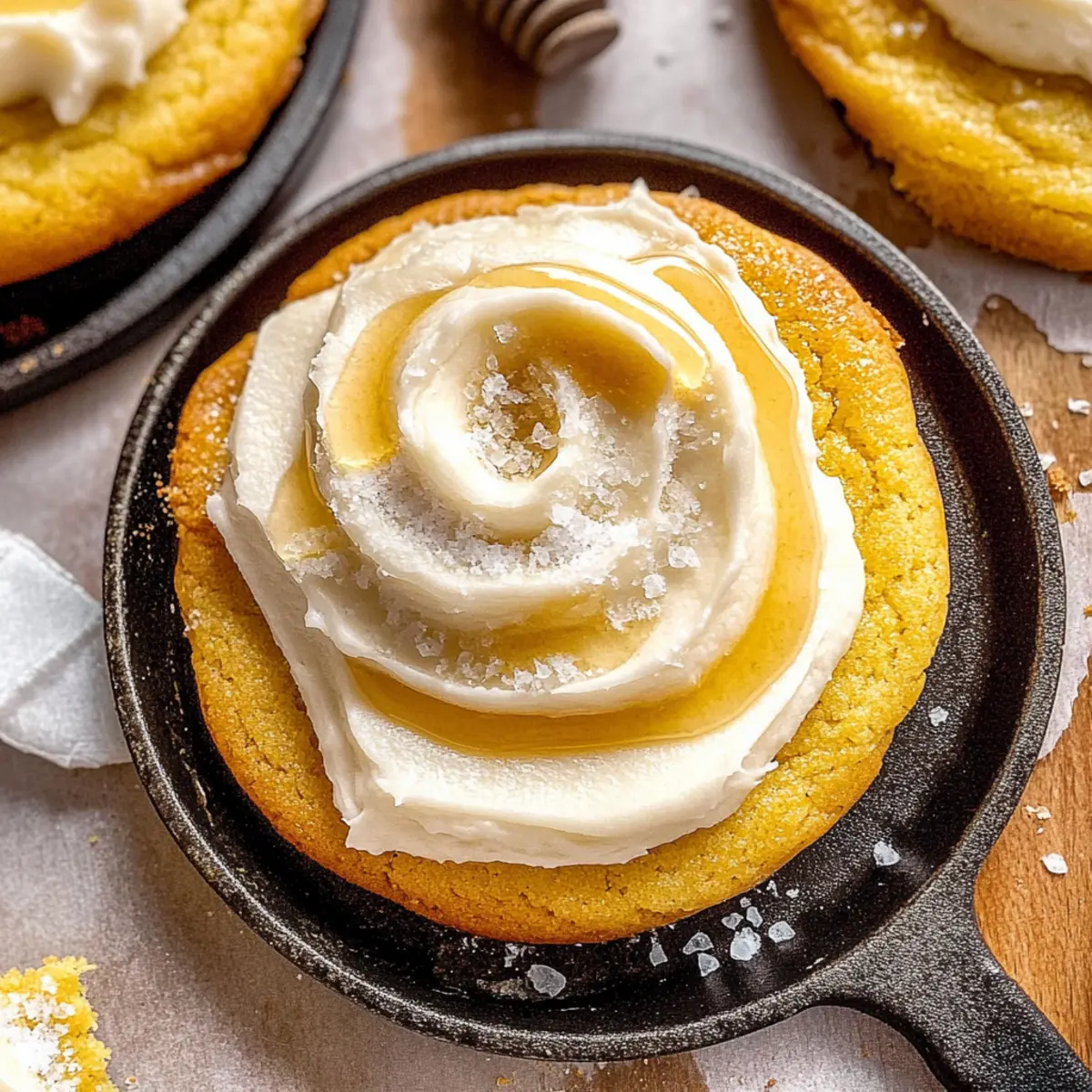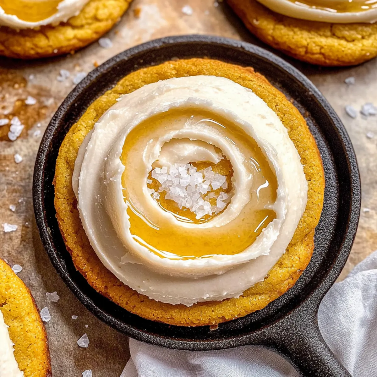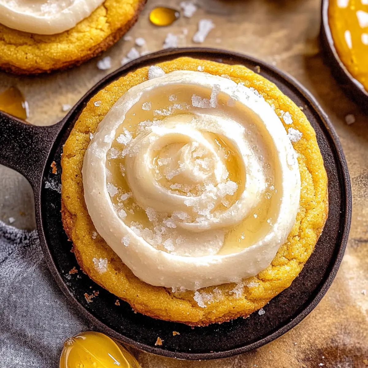 Jump to Recipe Print RecipeAs I poured the vibrant yellow cornmeal into the bowl, I couldn’t help but smile at the memories of family gatherings and wholesome meals shared. Today, I’m excited to share my recipe for Thick and Chewy Cornbread Cookies with Honey Butter Frosting, a delightful twist on the classic dessert that perfectly captures the essence of American cuisine. The beauty of these cookies lies not just in their thick, chewy texture reminiscent of cornbread, but in the luscious honey buttercream frosting that elevates them to something truly special. Not only are they a crowd-pleaser, but they also come together quickly, making them perfect for any occasion—especially those festive gatherings where you’re looking to impress. Curious about how to make these irresistible treats? Let’s dive in! Why Are These Cookies a Must-Try? Delightful Texture: Their thick and chewy nature echoes the beloved charm of cornbread. Irresistible Frosting: The honey buttercream adds a luscious sweetness that makes every bite unforgettable. Quick to Prepare: These cookies come together in no time, perfect for spontaneous gatherings—or just satisfying your sweet tooth! Unique Flavor Combination: The blend of sweet and savory notes is unlike any traditional dessert, making them a standout treat. Versatile Treat: Pair them with other festive delights, like Pumpkin Cheesecake Bars, for a memorable dessert table at your next celebration. Enduring Appeal: Whether for Thanksgiving or a casual get-together, they’re sure to impress both friends and family! Cornbread Cookies with Honey Butter Frosting Ingredients For the Cookies • Cornmeal – Provides the characteristic cornbread flavor and texture; use extra for rolling if desired. • All-purpose Flour – Forms the primary structure of cookies; substitute whole wheat flour for a nuttier taste. • Baking Powder – Creates lift and lightness in the cookie; ensure it’s fresh for the best results. • Cornstarch – Contributes to the softness and chewiness; can be replaced with arrowroot starch if necessary. • Kosher Salt – Balances sweetness and boosts flavor; regular salt can be used if kosher is not on hand. • Unsalted Butter – Adds richness and moisture; make sure it’s at room temperature for easy mixing. • Light Brown Sugar – Imparts moisture and a gentle caramel flavor; swap with dark brown sugar for a bolder taste. • Granulated Sugar – Provides sweetness and contributes to the cookie structure. • Honey – A sweetener that perfectly complements the cornbread flavor; maple syrup is an excellent substitute. • Eggs – Binds the ingredients and adds moisture to the mixture. • Vanilla Extract – Introduces depth of flavor; almond extract can make for an exciting twist. For the Honey Buttercream • Unsalted Butter – The base of the frosting that adds a creamy richness; softened for easy blending. • Powdered Sugar – Sweetens the frosting and gives it a smooth texture; adjust the amount for desired sweetness. • Honey – Ties in with the cookies’ flavors, enhancing the sweetness; feel free to alter the ratio based on preference. • Ground Cinnamon – Adds warmth and depth to the frosting, perfectly complementing the cookies’ flavors. • Vanilla Extract – Enhances the overall taste of the frosting with a touch of classic flavor. For Garnish • Flaky Sea Salt – A sprinkle that enhances the flavor of both the frosting and cookies, adding an irresistible contrast. These Cornbread Cookies with Honey Butter Frosting are a delightful marriage of flavors and textures, perfect for sweetening any occasion! Step‑by‑Step Instructions for Cornbread Cookies with Honey Butter Frosting Step 1: Prepare Ingredients Begin by preheating your oven to 350°F (175°C) and lining baking sheets with parchment paper. In a large mixing bowl, cream together the softened unsalted butter, honey, light brown sugar, and granulated sugar until the mixture is light and fluffy, which should take about 3-5 minutes using an electric mixer on medium speed. Step 2: Add Wet Ingredients Next, add the eggs and vanilla extract to the creamed mixture. Beat until everything is well combined and smooth, about 1-2 minutes. Ensure no streaks of egg remain, as this will help achieve a tender texture in your Cornbread Cookies with Honey Butter Frosting. Step 3: Combine Dry Ingredients In a separate bowl, whisk together the cornmeal, all-purpose flour, baking powder, cornstarch, and kosher salt. This step is crucial to ensure even distribution of the leavening agent and salt throughout your cookie dough. Set aside for the next stage, while enjoying the delightful aroma of the cornmeal. Step 4: Form Dough Gradually add the dry mixture into the wet ingredients, stirring on low speed until a thick and cohesive dough forms. This should take about 1-2 minutes. If you find the dough too crumbly, don’t hesitate to mix it by hand, making sure every bit of flour is incorporated as you work. Step 5: Shape Cookies Using a standard ¼ cup measuring scoop, portion out the dough and roll it into balls. Roll each ball in additional cornmeal for a delightful texture, then flatten them slightly with your palm. Arrange the shaped cookies on your lined baking sheets, making sure to leave about 2 inches of space between each cookie. Step 6: Bake Place the baking sheets in the oven and bake your Cornbread Cookies for 11-14 minutes, or until the edges are lightly golden and set. Keep a close watch; the centers will look slightly soft but will firm up as they cool. Avoid overbaking for a chewy texture. Step 7: Cool Cookies Remove the cookies from the oven and let them rest on the baking sheets for 5 minutes. Then, transfer them to a wire rack to cool completely. This step is vital as it prepares them for the luscious honey buttercream frosting. Step 8: Prepare Buttercream While your cookies cool, make the honey buttercream. In a mixing bowl, beat together the s