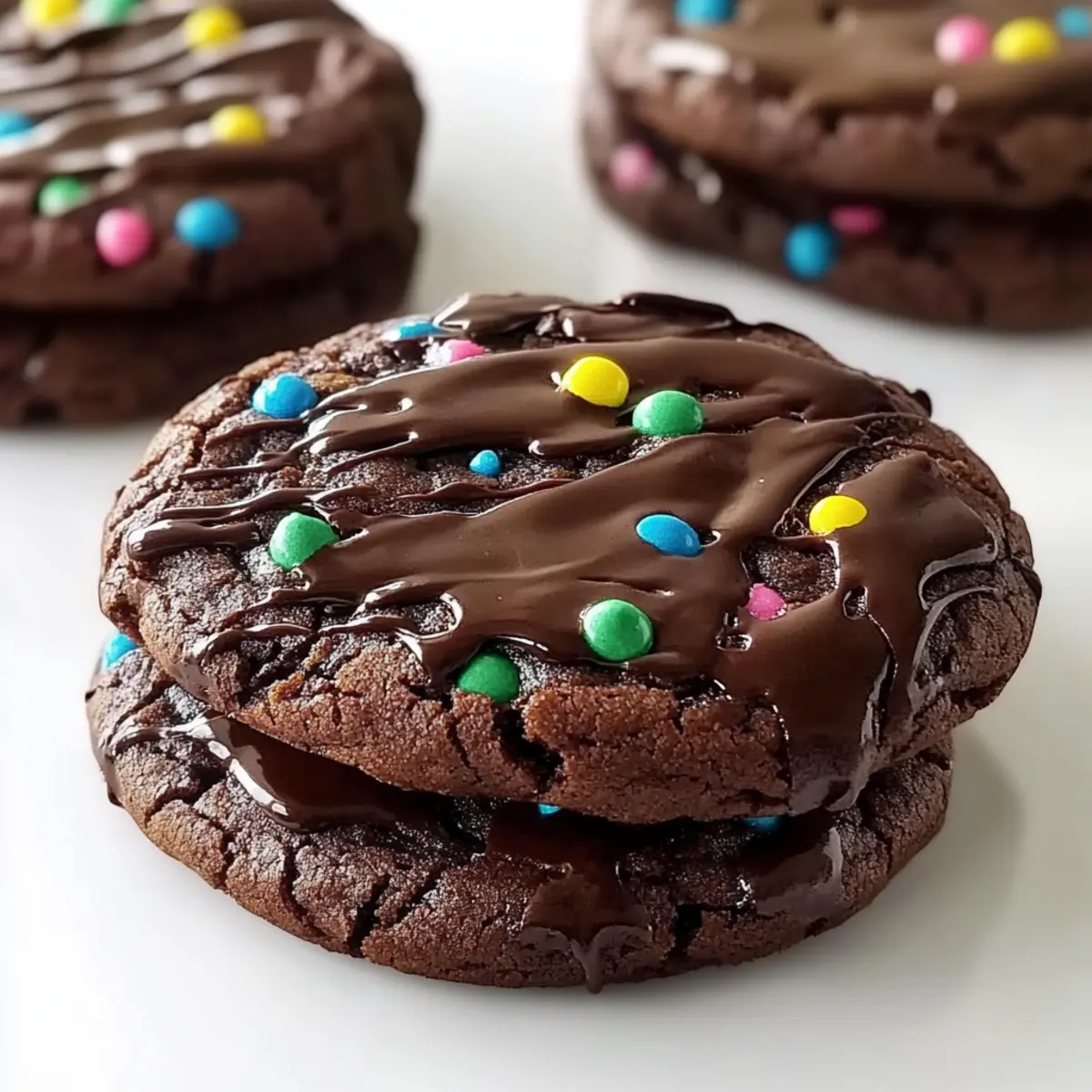Jump to Recipe Print RecipeThe door swung open, and a wave of rich, chocolatey aroma washed over me, instantly whisking me back to my childhood kitchen. I’m about to share a recipe that effortlessly combines nostalgia with modern indulgence: Fudgy Cosmic Brownie Cookies. These chewy chocolate cookies are not only a delightful treat for any occasion, but they also come topped with a luscious ganache and a sprinkle of colorful joy. One of the best perks? They’re incredibly easy to whip up, making them perfect for beginner bakers and seasoned pros alike. Plus, their fudgy texture guarantees you’ll savor each melt-in-your-mouth bite. Ready to unleash a bit of whimsical charm into your dessert routine? Let’s dive into the bliss of these cosmic creations! Why are Cosmic Brownie Cookies a must-try? Irresistible Chewiness: Each cookie is crafted for the perfect balance of fudgy texture and chew, ensuring every bite is a delightful experience. Decadent Ganache: The silky smooth chocolate ganache topping elevates these cookies to a whole new level of indulgence. Nostalgic Flavors: Reminiscent of childhood favorites, they bring a sense of joy to any gathering. Quick and Easy: With straightforward steps, even novice bakers can create these treats in no time, making them an ideal choice for last-minute desserts. Vibrant Toppings: Colorful sprinkles not only add fun but also make these cookies visually appealing for parties or special occasions. Looking for more fun dessert ideas? Check out my delicious Velvet Cheesecake Brownies for another sweet treat! Cosmic Brownie Cookie Ingredients • Let’s gather what we need for these delightful Cosmic Brownie Cookies! For the Cookie Dough Unsweetened Dutch-Processed Cocoa Powder – Provides deep chocolate flavor; substitute with regular unsweetened cocoa if needed. All-Purpose Flour – Gives structure to the cookies; a gluten-free flour blend can be used for a gluten-free option. Granulated Sugar – Adds sweetness and tenderness; adjust the quantity for a less sweet cookie. Brown Sugar – Richens flavor and moisture; can be swapped with extra granulated sugar in a pinch. Butter – Contributes flavor and texture; use unsalted for better control over salt content. You can substitute with an equal amount of vegetable oil for a different texture. Eggs – Binds ingredients and adds moisture; make sure they’re at room temperature for optimal mixing. Vanilla Extract – Enhances the overall flavor; opt for a high-quality extract for the best results. For the Ganache Topping Heavy Cream – Creates a rich ganache topping; whole milk can make a lighter version. For Decoration Sprinkles – Add a fun crunch and color; kids adore colorful sprinkles, but they can be omitted for a more sophisticated look. Now that we have our ingredients ready, let’s whisk up some magic! Step‑by‑Step Instructions for Cosmic Brownie Cookies Step 1: Prepare the Dough In a large mixing bowl, combine 1 cup of unsweetened Dutch-processed cocoa powder, 1 cup of all-purpose flour, 1 cup of granulated sugar, 1 cup of brown sugar, and a pinch of salt. Melt 1 cup of unsalted butter, then add it along with 2 large eggs and 2 teaspoons of vanilla extract. Mix until just combined; the dough will be thick and fudgy, perfect for your Cosmic Brownie Cookies. Step 2: Chill the Dough (Optional) If your cookie dough feels too sticky to handle, cover the bowl with plastic wrap and refrigerate it for about 15–30 minutes. Chilling helps firm up the dough, making it easier to scoop. This optional step ensures your cookies maintain their shape while baking, resulting in beautifully chewy cookies that stay true to the Cosmic Brownie spirit. Step 3: Bake the Cookies Preheat your oven to 350°F (175°C) while the dough chills. Line a baking sheet with parchment paper. Using a cookie scoop, drop rounded tablespoons of dough onto the prepared sheet, spacing them about 2 inches apart. Bake for 10–12 minutes, or until the edges are set but the centers still appear slightly soft. Let them cool slightly on the tray, then transfer to a wire rack. Step 4: Prepare the Ganache While your Cosmic Brownie Cookies cool down, grab a small saucepan and heat ½ cup of heavy cream over medium heat until it simmers gently. Pour the hot cream over 1 cup of chopped chocolate or chocolate chips in a bowl. Allow this mixture to sit for 2-3 minutes, then stir until it becomes silky and smooth for your decadent ganache topping. Step 5: Decorate with Ganache and Sprinkles Once your cookies are completely cool, it’s time to finish them off with the ganache. Use a spatula to spread a generous layer of ganache over the tops of each cookie. Immediately sprinkle colorful sprinkles on top for that fun, cosmic flair. Let the ganache set for a few minutes before serving your delightful Cosmic Brownie Cookies. How to Store and Freeze Cosmic Brownie Cookies Airtight Container: Store your Cosmic Brownie Cookies in an airtight container at room temperature for up to 1 week to maintain their chewy texture. Refrigeration: If you want to extend freshness, you can refrigerate the cookies. Just be sure to place them in an airtight container for up to 2 weeks. Freezing: For long-term storage, freeze cookies in a single layer on a baking sheet. Once solid, transfer them to a freezer-safe bag or container. They can be frozen for up to 3 months. Thawing: To enjoy frozen Cosmic Brownie Cookies, simply thaw them at room temperature for about 30 minutes or microwave for 10-15 seconds until soft and fudgy again. Expert Tips for Cosmic Brownie Cookies Avoid Overbaking: Keep a close eye on your cookies while baking; they should be set around the edges and still soft in the center for that perfect fudgy texture. Uniform Sizing: Use a cookie scoop to ensure your Cosmic Brownie Cookies are evenly sized, which helps them bake uniformly. Chill for Better Control: If your dough feels sticky, chilling it for 15–30 minutes will make it much e