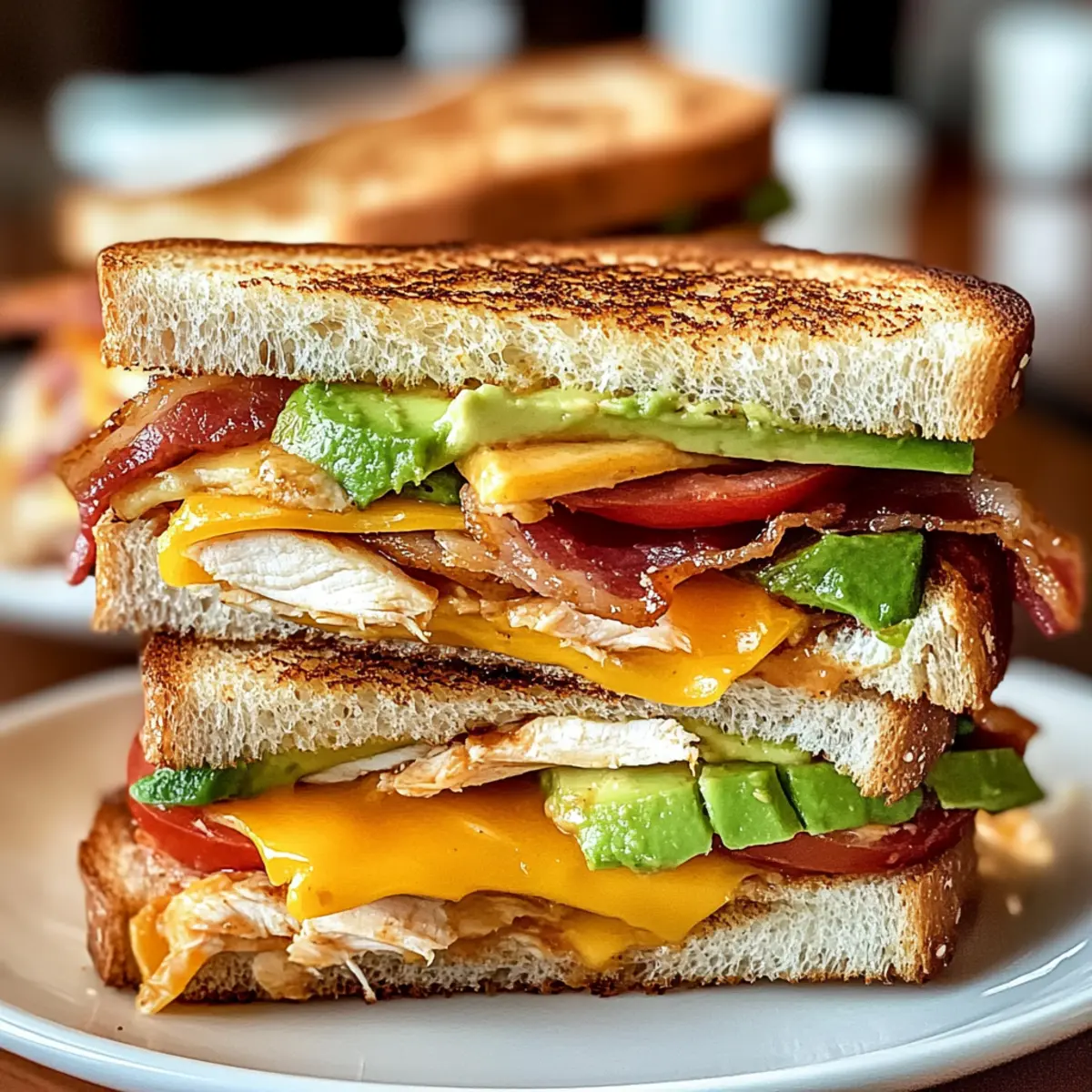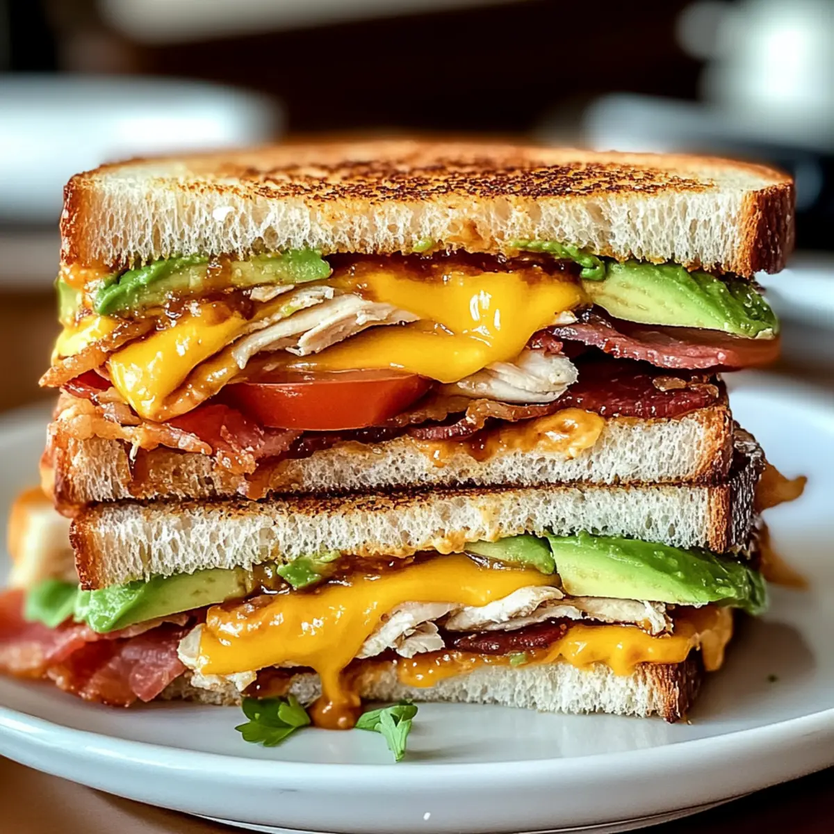 This Cowboy Club Sandwich combines crispy bacon, tender chicken, and creamy avocado, topped with a zesty BBQ-mayo for a delightful experience.