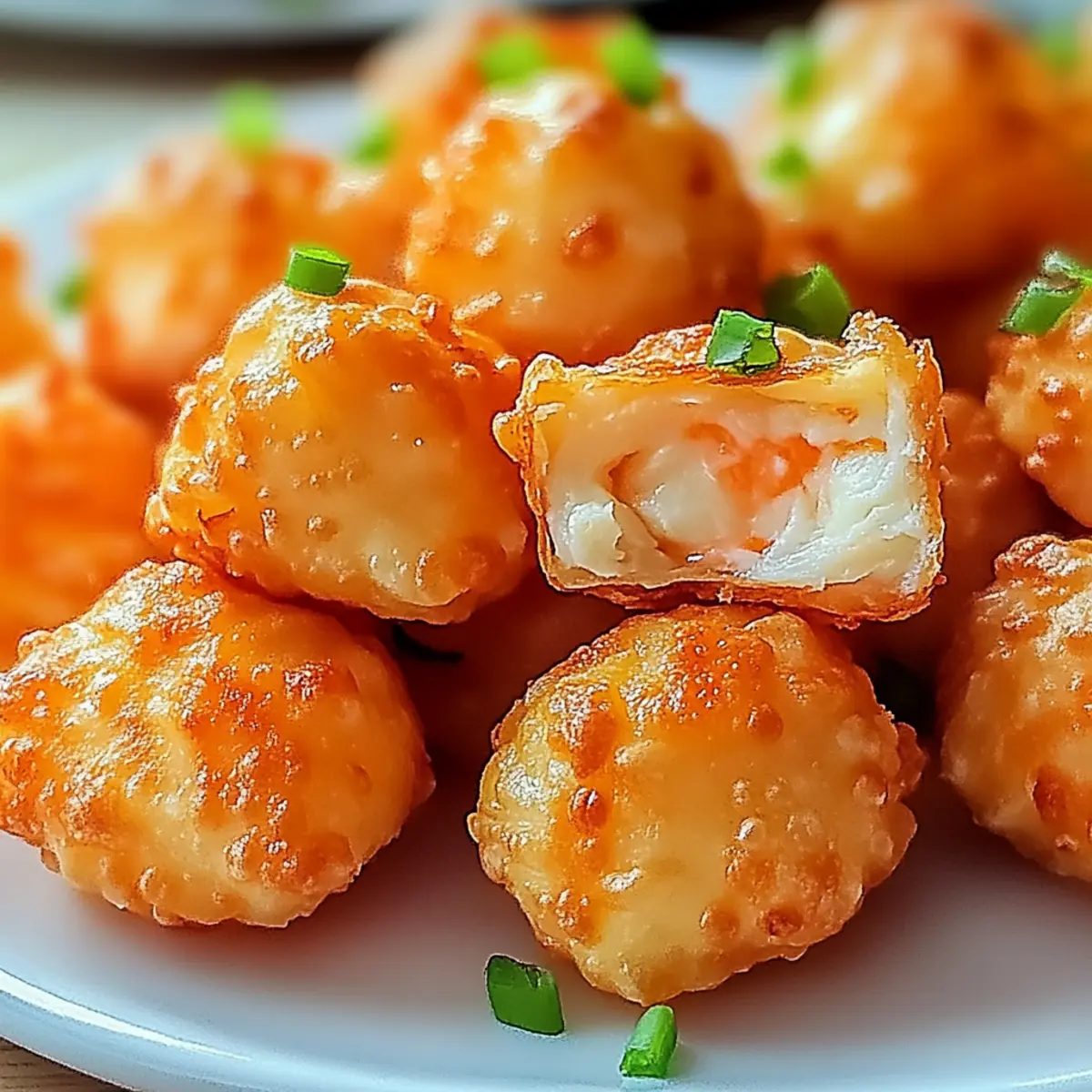 Jump to Recipe Print RecipeAs the sizzle of hot oil fills the kitchen, I can already tell that we’re in for a treat. There’s something so satisfying about crafting dishes that combine comfort and creativity, and these Crab Rangoon Bombs hit the nail on the head. With their crunchy exterior and a creamy filling of crab and cream cheese, they’re a simple yet impressive appetizer that turns any gathering into a special occasion. Whether you’re hosting friends or just indulging on a cozy night in, the quick prep time makes these bombs a go-to choice. Plus, they offer a delightful twist on the classic crab rangoons we all adore, ensuring a burst of flavor with every bite. Curious how to whip up this crispy delicacy? Let’s dive in! Why Are These Crab Rangoon Bombs Irresistible? Flavor Explosion: Each bite offers a savory symphony of crab and cream cheese, perfectly seasoned for your taste buds. Crowd-Pleasing Snack: These appetizers are sure to impress guests at any gathering, making your event memorable. Quick to Make: With a simple prep and cook time, you can enjoy these delicious delights in no time, perfect for busy evenings. Versatile Options: Feel free to substitute crab meat with shrimp for a seafood spin, or add spices for an extra kick! Enjoy these as a standalone treat or as part of a larger spread. For more unique appetizers, check out our guide on creative appetizer ideas. Crispy Texture: The golden, crunchy exterior provides a satisfying contrast to the creamy stuffing, making these bombs truly enjoyable. Crab Rangoon Bombs Ingredients Ready to make these delicious Crab Rangoon Bombs? Here’s what you’ll need to bring this crispy delight to life! For the Filling Cream Cheese – Softened for easier mixing and creating that creamy texture. Crab Meat – Use lump for the best flavor; fresh or canned works beautifully. Green Onions – Finely chopped to add a fresh, vibrant kick to your filling. Garlic Powder – Enhances the overall flavor without overpowering the other ingredients. Soy Sauce – A splash boosts umami richness; opt for low-sodium for better control. For the Wrapping Wonton Wrappers – Look for fresh sheets that achieve the perfect, crispy exterior. For Frying Vegetable Oil – Choose oil with a high smoke point, like canola or peanut, for frying success. Gather these ingredients, and you’ll be on your way to crafting your very own crispy Crab Rangoon Bombs! Enjoy the process as much as the delicious finished result! Step‑by‑Step Instructions for Crab Rangoon Bombs Step 1: Prepare the Filling In a mixing bowl, combine 8 ounces of softened cream cheese, 1 cup of lump crab meat, 2 finely chopped green onions, 1 teaspoon of garlic powder, and 1 tablespoon of soy sauce. Blend the ingredients together until well mixed and creamy, with no visible lumps of cream cheese. This savory filling will be the heart of your Crab Rangoon Bombs, so make sure it has a smooth texture. Step 2: Assemble the Bombs Lay out your wonton wrappers on a clean surface, keeping them covered with a damp cloth to prevent drying. Place about one tablespoon of the crab filling in the center of each wrapper. Moisten the edges with a little water, fold the wrapper diagonally into a triangle, and press to seal it tightly. Ensure all edges are fully enclosed to prevent leakage during frying. Step 3: Heat the Oil In a deep skillet or fryer, pour in vegetable oil to a depth of about 2 inches. Heat the oil over medium-high heat until it reaches a temperature of 350°F (175°C). To check if the oil is ready, drop in a small piece of wonton; it should sizzle and rise to the surface. Properly heated oil will ensure your Crab Rangoon Bombs achieve that golden-brown crunch. Step 4: Fry Until Golden Carefully place the assembled Crab Rangoon Bombs in the hot oil, ensuring you don’t overcrowd the pan. Fry them in batches for about 3-4 minutes per side, or until they turn golden brown and crispy. Use a slotted spoon to gently turn them as needed, ensuring an even fry. Once done, transfer the bombs to a paper towel-lined plate to drain excess oil. Step 5: Prepare Dipping Sauce (Optional) While the Crab Rangoon Bombs are frying, mix together soy sauce with a splash of rice vinegar or sriracha for a zesty dipping sauce. This optional addition elevates your appetizer and complements the creamy filling beautifully. Pour the mixture into a small serving bowl, ready to pair with your piping hot Crab Rangoon Bombs once they’re finished frying. Expert Tips for Crab Rangoon Bombs Oil Temperature: Make sure the oil is heated to exactly 350°F (175°C) for that ideal crispy texture. Too hot can burn, while too cool will leave them greasy. Sealing Technique: Press down the edges of the wonton wrappers firmly after moistening, preventing any leakage during frying. Loose seals can lead to a messy result! Batch Frying: Don’t overcrowd the pan while frying your Crab Rangoon Bombs. Frying in smaller batches ensures even cooking and a perfect crunch! Storage: If you have leftovers, store them in an airtight container in the fridge for up to three days. Reheat them in an air fryer for optimal crispness. Customize Fillings: Feel free to experiment! Swap crab for shrimp or add spices like sriracha for a flavorful kick. Enjoy your creativity in every bite! How to Store and Freeze Crab Rangoon Bombs Fridge: Store any leftover Crab Rangoon Bombs in an airtight container in the refrigerator for up to 3 days. This keeps them fresh and ready to enjoy anytime! Freezer: For longer storage, freeze the uncooked bombs on a baking sheet until solid, then transfer to a freezer bag. They can be frozen for up to 2 months. Reheating: Reheat leftover bombs in an air fryer or oven at 375°F (190°C) for about 10 minutes to regain their crispy texture. Avoid microwaving, as it can make them soggy. Make-Ahead Tip: Prepare the bombs ahead of time, freeze them before frying, then cook straight from the freezer for a convenient and de