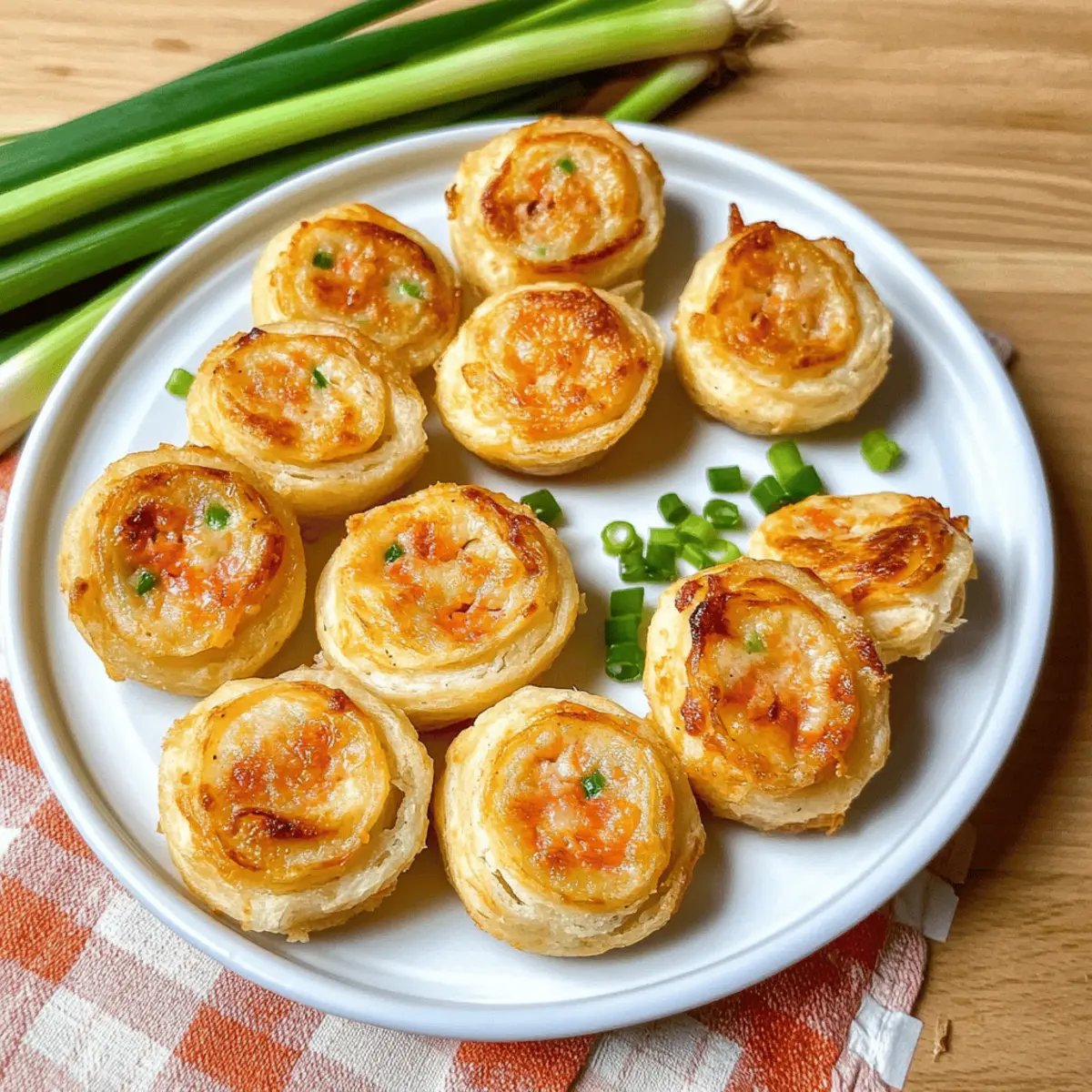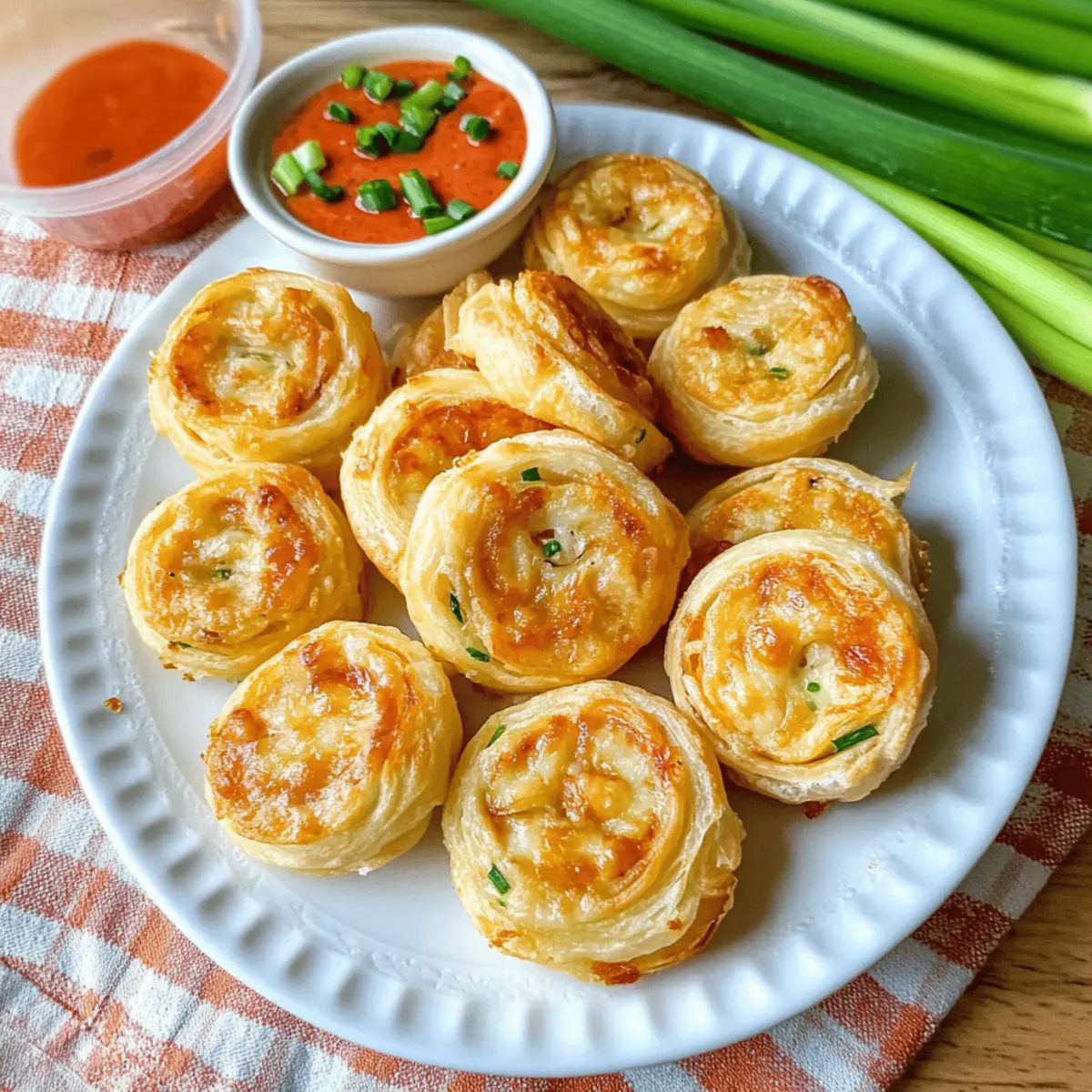 Jump to Recipe Print RecipeAt a recent gathering, I overheard friends rave about their favorite appetizers, and guess what topped the list? Crab Rangoon! Inspired by the classic, I couldn’t resist putting a delicious twist on it—enter my Crab Rangoon Pinwheels! These little delights combine savory crab and creamy cheese all wrapped in flaky puff pastry, offering a unique way to enjoy a beloved dish. The best part? They’re super quick to prepare, making them an effortless crowd-pleaser for game days, holiday parties, or any casual get-together. Plus, they bake to crispy perfection without the mess of frying, so you can focus on the fun. Ready to impress your guests with these scrumptious pinwheels? Let’s dive into the recipe! Why Are Crab Rangoon Pinwheels Amazing? Uniqueness: These pinwheels transform a classic dish into a fun and shareable appetizer, ensuring you stand out at any gathering. Easy Prep: With no frying involved, simply bake these delightful treats to achieve a crispy finish that saves time and reduces hassle. Flavor Explosion: The combination of creamy cheese, savory crab, and aromatic garlic fills each bite with a delicious burst of flavor. Versatile Serving: Perfect for holidays or game days, pair these pinwheels with your favorite dipping sauces like Thai Sweet Chili for an extra zing! Quick Cooking: Bake in just 15-20 minutes, making them an ideal option for last-minute gatherings without sacrificing taste. Crab Rangoon Pinwheels Ingredients • Here’s what you’ll need to create these scrumptious pinwheels. For the Pinwheels Puff Pastry – Provides a flaky, crispy texture; opt for pre-rolled, thawed pastry for convenience. Imitation Crab Meat – Main filling ingredient offering seafood flavor; can substitute with real crab or other seafood. Cream Cheese – Brings richness to the filling; ensure it’s at room temperature for easier mixing. Mozzarella Cheese – Adds that lovely meltiness; feel free to swap with any mild cheese like Monterey Jack. Garlic – Elevates the flavor profile; fresh garlic is recommended, but garlic powder can work in a pinch. Green Onions – Contributes a refreshing crunch; chives can replace them nicely for a similar taste. Soy Sauce – Infuses umami depth; use gluten-free soy sauce for a gluten-free option. Sugar – Balances the savory flavors; omit if you prefer a less sweet filling. For Assembly Egg – Serves as a glaze for that golden finish; substitute with milk for a lighter option. These Crab Rangoon Pinwheels will swiftly become your new go-to appetizer, perfect for impressing guests with a beloved classic reimagined! Step‑by‑Step Instructions for Crab Rangoon Pinwheels Step 1: Preheat the Oven Begin by preheating your oven to 375°F (190°C). While the oven warms up, line baking sheets with parchment paper to ensure the Crab Rangoon Pinwheels bake evenly and don’t stick. Setting up your workspace now will make the assembling process smoother and more efficient. Step 2: Prepare the Filling In a large mixing bowl, combine your imitation crab meat, softened cream cheese, shredded mozzarella, minced garlic, chopped green onions, soy sauce, and a touch of sugar. Use a spatula to thoroughly mix them together until the filling is creamy and well-blended. This rich filling will be the heart of your pinwheels, so ensure it’s evenly combined. Step 3: Roll Out the Puff Pastry On a floured surface, gently roll out the thawed puff pastry until it’s approximately ¼ inch thick. This step enhances its flaky texture. Make sure it’s even so that each Crab Rangoon Pinwheel bakes uniformly. Once rolled, spread the crab filling evenly across the pastry, leaving a ¼ inch border all around for easy sealing. Step 4: Create the Pinwheels Starting from one long edge, carefully roll the pastry tightly, ensuring that the filling stays secure inside. When you reach the end, pinch the edges to seal them well. For added ease in slicing, wrap the log in plastic wrap and chill in the refrigerator for about 15-30 minutes—this step is optional but can make a difference in texture during slicing. Step 5: Slice the Pinwheels After chilling, take the pastry log out of the refrigerator and slice it into ½ inch thick pinwheels. Arrange these delightful Crab Rangoon Pinwheels on the prepared baking sheets, leaving about 1 inch of space between them for even baking. The spacing will allow the edges to crisp up beautifully while they cook. Step 6: Brush with Egg Wash To achieve a lovely golden finish, whisk an egg in a small bowl and brush it lightly over the tops of each pinwheel. This step not only provides color but also adds a delightful sheen. The egg wash is crucial for that appetizing look that will impress your guests once they come out of the oven. Step 7: Bake to Perfection Place the baking sheets into your preheated oven and bake the Crab Rangoon Pinwheels for 15-20 minutes. Keep an eye on them and rotate the trays halfway through to ensure even browning. The pinwheels should emerge golden brown and flaky, beckoning for a taste as the inviting aroma fills your kitchen. Step 8: Serve and Enjoy Once baked, let the Crab Rangoon Pinwheels cool for a minute before serving. They’re best enjoyed warm or at room temperature. Pair them with your favorite dipping sauces like Thai Sweet Chili or spicy mayonnaise to elevate the flavors even further. These bite-sized treats are sure to be a hit at any gathering! Helpful Tricks for Crab Rangoon Pinwheels Keep Ingredients Room Temperature: Ensure your cream cheese is at room temperature before mixing to achieve a smooth filling that combines easily with other ingredients. Chilling is Key: After rolling the pastry, chill the log for 15-30 minutes before slicing. This helps maintain the pinwheel’s shape and makes cutting easier! Watch the Baking Time: Keep an eye on your Crab Rangoon Pinwheels while baking, as ovens can vary. Rotate trays halfway through to ensure even cooking and browning. 