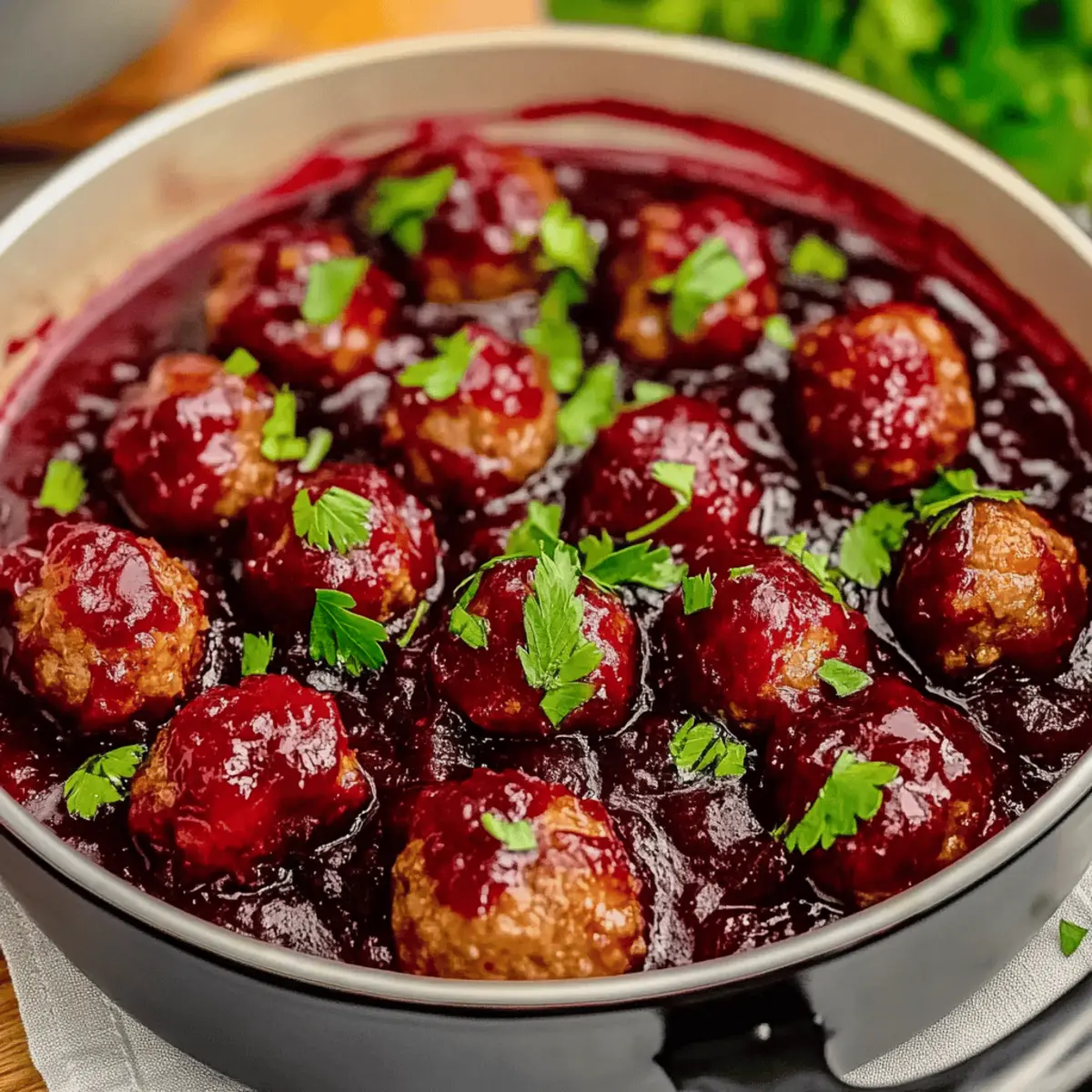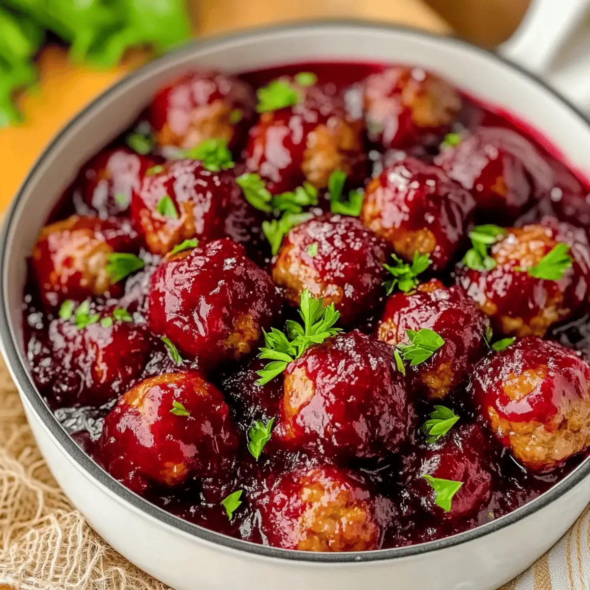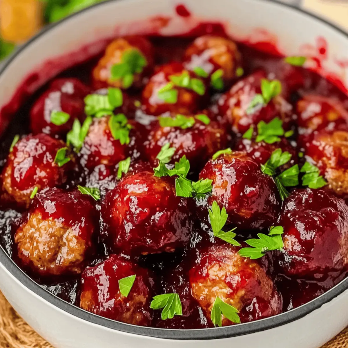 Jump to Recipe Print RecipeAs the holiday season approaches, I often find myself reminiscing about the vibrant gatherings filled with laughter and the aroma of mouthwatering dishes. It’s during these festive moments that I love presenting a hit that never fails to please—my Quick Cranberry Meatballs. This recipe combines the rich flavor of lean ground pork with a tangy cranberry sauce, creating a delightful balance between savory and sweet. With minimal prep time, these meatballs are perfect for making ahead and can easily be a crowd-pleaser at any gathering. Plus, they lend a festive touch to your table, effortlessly enhancing your holiday spread. Curious how to whip up these enchanting bites that your guests won’t be able to resist? Let’s dive into the world of flavorful holiday cooking! Why are Cranberry Meatballs a Must-Serve? Festive Flavor: These Quick Cranberry Meatballs deliver a sweet and savory punch, making them a standout appetizer for any holiday gathering. Minimal Prep: With only a handful of ingredients and quick prep time, you’ll have more time to spend with friends and family. Meal Prep-Friendly: Ideal for make-ahead meals, you can easily prepare these in bulk and freeze for later, ensuring you’re ready when guests arrive. Crowd-Pleaser: Their irresistible taste and appealing presentation mean they’ll be the life of the party, disappearing from the platter in moments! Endless Versatility: Whether served as appetizers or over a bed of rice, these meatballs can adapt to any occasion. For more ideas, check out my guide on flexible meal planning. Cranberry Meatballs Ingredients • To create these delightful Cranberry Meatballs, gather the following ingredients for a festive treat. For the Meatballs Lean Ground Pork – For optimal flavor and juiciness. Substitution: If unavailable, request pork loin from a butcher. Breadcrumbs – Provides structure and moisture. Use gluten-free breadcrumbs for a GF version. Egg – Binds the ingredients together. Substitution: For a vegan version, use flaxseed meal as a binder. Onion – Adds savory flavor and moisture. Shallots can be used as an alternative. Garlic Powder – Provides depth of flavor without the work of fresh garlic. Fresh garlic can be a substitute; use 1 clove for every 1/4 teaspoon of garlic powder. Salt & Pepper – Enhances overall taste. Adjust according to preference. For the Sauce Cranberry Sauce – Offers sweetness and tartness. Canned cranberry sauce can be used for convenience. Sugar – Balances the tanginess of the sauce. Adjust to taste for your desired sweetness. Vinegar – Adds brightness and tang. Rice vinegar can be used for a milder flavor. Soy Sauce – Introduces umami depth to the sauce. Use low-sodium soy sauce for a healthier option. For Garnishing Parsley – For garnishing and color. Substitution: Use chives or green onions for a different flavor. Step‑by‑Step Instructions for Quick Cranberry Meatballs Step 1: Preheat and Prepare Preheat your oven to 350℉ (175℃) and line a baking sheet with parchment paper. This will prevent sticking and ensure easy cleanup. As the oven heats, take a moment to gather all your ingredients for the Quick Cranberry Meatballs, ensuring a smooth cooking process. Step 2: Create the Meatball Mixture In a large mixing bowl, combine the lean ground pork, breadcrumbs, egg, diced onion, garlic powder, salt, and pepper. Use clean hands to mix the ingredients until well combined and smooth. This mixture should be a bit sticky, indicating you’ve perfectly blended the flavors for your meatballs. Step 3: Form the Meatballs With wet hands or a small ice cream scoop, form the meatball mixture into medium-sized balls, approximately 1 inch in diameter. Aim for about 32 meatballs for this recipe. Space them evenly on the prepared baking sheet, ensuring there’s room for each to cook evenly, resulting in juicy Quick Cranberry Meatballs. Step 4: Bake the Meatballs Place the baking sheet with meatballs in the preheated oven and bake for 20 to 25 minutes. Keep an eye on them; they should reach an internal temperature of 160℉ and have a slight golden brown color on the edges. The aroma of savory pork will fill your kitchen, setting the festive mood! Step 5: Prepare the Cranberry Sauce While the meatballs are baking, take a large skillet and add the sauce ingredients: cranberry sauce, sugar, vinegar, and soy sauce. Heat the mixture over medium heat, whisking constantly until it comes to a gentle boil, about 3–5 minutes. The sauce should become smooth and glossy, ready to envelop the meatballs. Step 6: Combine Meatballs and Sauce Once the meatballs have finished baking, carefully transfer them to the skillet with the sauce. Gently stir to coat each meatball in the tangy cranberry sauce, allowing them to simmer on low heat for about 5 minutes. This step lets the flavors meld beautifully, ensuring your Quick Cranberry Meatballs are irresistibly flavorful. Step 7: Garnish and Serve Remove from heat and, if desired, garnish the meatballs with freshly chopped parsley for a pop of color. The vibrant reds of the cranberry sauce paired with the green garnish will make for an appealing presentation. Serve warm as delightful appetizers, letting your guests indulge in every bite of these festive meatballs. Make Ahead Options These Quick Cranberry Meatballs are perfect for meal prep, allowing you to enjoy flavorful appetizers without the last-minute rush. You can prepare the meatballs up to 24 hours in advance by forming them and storing them in an airtight container in the refrigerator. For long-term prep, freeze the uncooked meatballs in a single layer on a baking sheet, then transfer to a freezer-safe container for up to 3 months. To maintain their quality, make sure they are well covered to prevent freezer burn. When you’re ready to serve, bake from frozen at 350℉ for about 30-35 minutes, and then toss them in your prepared cranberry sauce for a delicious, stress-f