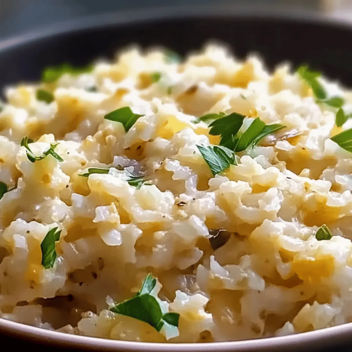 Jump to Recipe Print RecipeYou know that feeling when you’re craving something warm and satisfying but don’t want to undo your healthy eating efforts? Enter my Creamy Cheesy Cauliflower Rice—your new go-to comfort side that’s low-carb, keto, and oh-so-delicious! This dish transforms humble cauliflower into a creamy, cheesy delight that’s just as cozy as traditional rice, but without the carbs. With minimal prep time and simple ingredients like butter, garlic, and your favorite cheeses, it’s perfect for those weeknights when you’re short on time or energy. Plus, it pairs beautifully with everything from juicy grilled chicken to succulent steak. Are you ready to enjoy a comforting favorite without the guilt? Let’s dive into this recipe that’s about to elevate your dinner game! Why Is Cauliflower Rice So Irresistible? Creamy, Cheesy Goodness: The lush combination of cheddar and Parmesan transforms cauliflower into a rich, indulgent side that feels like a treat. Quick and Easy: Ready in under 15 minutes, this dish fits seamlessly into busy weeknight meals. Low-Carb Delight: Enjoy all the comfort of traditional rice without the carbs, making it perfect for keto and gluten-free diets. Versatile Pairing: Whether served with grilled chicken or as part of a low-carb bowl, it complements a variety of proteins beautifully. Don’t forget to try it alongside my Creamy Garlic Parmesan Chicken for a complete meal! Leftover Friendly: Store leftovers easily and reheat for a quick meal that doesn’t skimp on flavor. Texture Triumph: The creamy consistency provides the satisfaction of comfort food with a lighter touch—perfect for any occasion! Creamy Cheesy Cauliflower Rice Ingredients • Get ready to create a deliciously creamy side dish! For the Base Butter – Adds richness and helps sauté the cauliflower. Substitute with olive oil for a dairy-free option. Cauliflower (riced) – The main ingredient providing a low-carb alternative to traditional rice. You can use fresh or frozen pre-riced cauliflower for convenience. Garlic Powder – Enhances the flavor profile; fresh garlic can be used for a stronger taste. Salt and Black Pepper – Essential for seasoning; adjust to taste. For the Creamy Mixture Cheddar Cheese – Provides creaminess and a sharp flavor; mozzarella or dairy-free cheese can be used based on preference. Heavy Cream – Adds a smooth texture and richness; can be substituted with coconut cream for a dairy-free option. Parmesan Cheese – Contributes a salty, nutty flavor that complements the dish; nutritional yeast can be used as a vegan substitute. For Garnish Chopped Parsley (optional) – Adds freshness and color to the finished dish. This Creamy Cheesy Cauliflower Rice is sure to become a favorite in your kitchen, providing comfort without the carbs! Step‑by‑Step Instructions for Creamy Cheesy Cauliflower Rice Step 1: Rice the Cauliflower Begin by preparing your cauliflower; if you’re using fresh florets, pulse them in a food processor until they resemble rice grains. This should take about 10–15 seconds. If you opted for pre-riced cauliflower, simply measure out the desired amount and skip this step, setting it aside for later use. Step 2: Cook the Cauliflower In a large skillet, melt 2 tablespoons of butter over medium heat. Once the butter is bubbly, add the riced cauliflower, stirring occasionally. Sauté for 5–7 minutes until the cauliflower is tender and any moisture has reduced, taking care not to let it brown too much. You want it soft but not mushy for the perfect Creamy Cheesy Cauliflower Rice. Step 3: Season the Mix Once the cauliflower is tender, sprinkle in garlic powder, salt, and black pepper according to your taste. Stir well to evenly incorporate the seasonings. Cook for another minute, allowing the flavors to meld, which will elevate the taste of your creamy dish. Step 4: Make it Cheesy Reduce the skillet’s heat to low and add 1 cup of shredded cheddar cheese and ¼ cup of heavy cream. Stir continuously until the cheese is fully melted, and the mixture becomes creamy and luscious, about 2-3 minutes. The combination of cheddar and cream creates the comforting essence of Creamy Cheesy Cauliflower Rice. Step 5: Finish and Serve Remove the skillet from heat and stir in ¼ cup of grated Parmesan cheese until completely melted. Optional: Garnish with freshly chopped parsley for a pop of color and flavor. Serve your Creamy Cheesy Cauliflower Rice warm alongside your favorite protein or enjoy it as a keto-friendly dish all on its own. How to Store and Freeze Creamy Cheesy Cauliflower Rice Fridge: Store leftovers in an airtight container for up to 4 days, allowing you to enjoy this creamy delight throughout the week. Freezer: For longer storage, freeze the cauliflower rice in a freezer-safe container or zip-top bag for up to 3 months. Be sure to label it with the date! Reheating: Thaw frozen Creamy Cheesy Cauliflower Rice overnight in the fridge before reheating. Warm it in the microwave or on the stovetop with a splash of cream to regain its creamy texture. Tip: Enjoy this dish by adding fresh herbs or cheeses when reheating to bring back its rich flavors and elevate your meal. Expert Tips for Creamy Cheesy Cauliflower Rice Avoid Steaming: Keep the skillet’s capacity in check; overcrowding can trap steam and make the cauliflower mushy instead of achieving the desired texture. Frozen Cauliflower Tip: If using frozen riced cauliflower, give it sufficient time to cook off excess moisture; this ensures a creamy, not watery, outcome. Cheese Choices: Experiment with different cheeses based on your flavor preferences; swapping cheddar for mozzarella can provide a different yet delicious experience in your Creamy Cheesy Cauliflower Rice. Season Generously: Don’t be shy with the seasoning; the right amount of salt and pepper can really bring out the flavors in the dish. Always taste as you go! Add-In Ideas: Boost nutrition and flavor by incorp