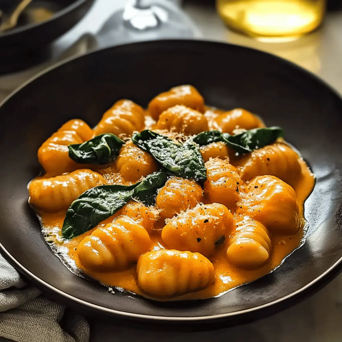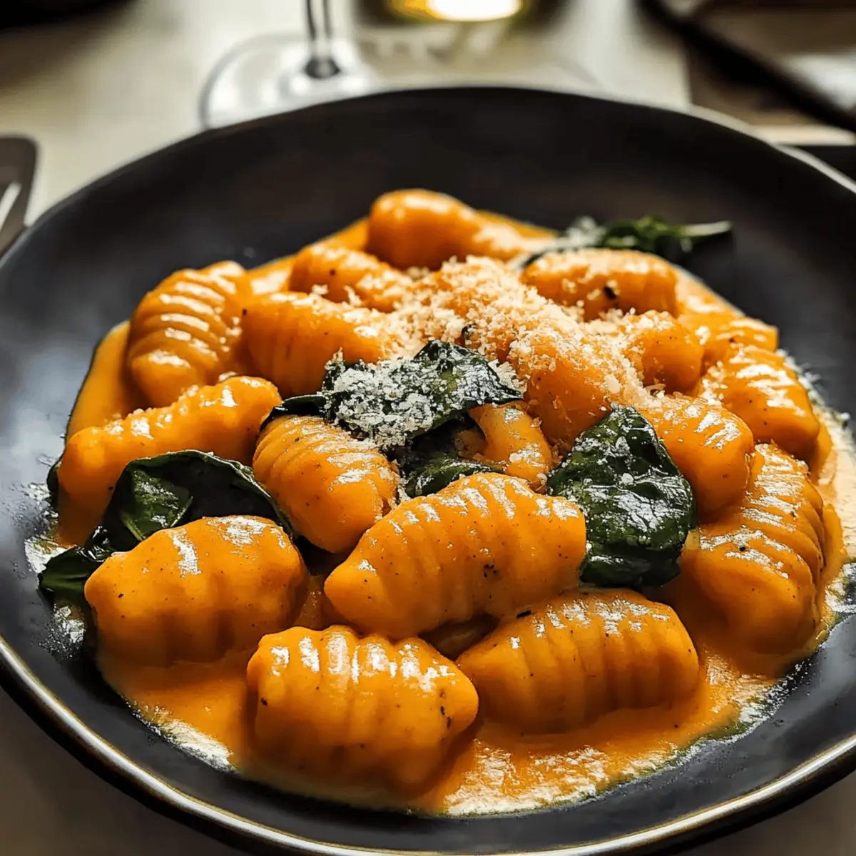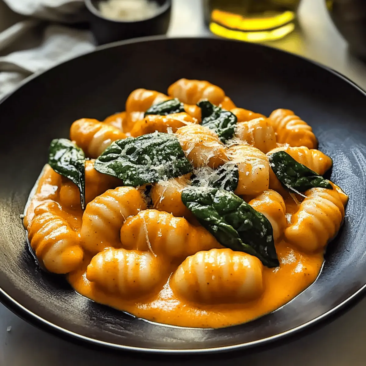 Jump to Recipe Print RecipeAmid autumn’s vibrant embrace, I often find myself drawn to dishes that evoke the season’s spirit. This Creamy Pumpkin Gnocchi with Spinach is a heartwarming ode to cozy evenings spent in the kitchen. The natural sweetness of the pumpkin pairs beautifully with pillowy gnocchi and fresh spinach, all enveloped in a silky, creamy sauce. One of the best parts? This comforting meal comes together in a flash—perfect for those weeknight dinners when time is short but flavor is essential! Not only does it satisfy your cravings, but it also packs in nutrients, making it a wonderful addition to your autumn repertoire. So, are you ready to bring the essence of fall to your dinner table? Why is Pumpkin Gnocchi the Perfect Fall Dish? Comforting Flavors: Embrace the rich, warm tastes of autumn with every bite of this creamy pumpkin gnocchi. Nutritious Ingredients: Packed with vitamins from fresh spinach and pure pumpkin, this dish is as nourishing as it is delicious. Quick and Easy: In just a snap, you’ll have a gourmet meal ready for family gatherings or cozy nights in. Versatile Options: Easily customize to fit dietary preferences, whether vegan or gluten-free. Crowd-Pleasing Delight: Serve it at your next dinner party and watch everyone come back for seconds—trust me, they’ll be raving about it! If you love comforting meals, don’t miss out on our Garlic Parmesan Chicken or Beef Stuffed Shells. Creamy Pumpkin Gnocchi Ingredients For the Gnocchi Base Gnocchi – 1 pound store-bought gnocchi, which provides a tender foundation for this cozy dish. Pumpkin Puree – 1 cup canned pumpkin puree (not pie filling); essential for creating that sweet, creamy flavor profile that defines creamy pumpkin gnocchi. For the Creamy Sauce Heavy Cream – 1 cup for a luscious texture; dairy-free alternative could be coconut cream for a vegan version. Garlic – 3 cloves, minced to impart aromatic depth; watch closely to avoid burning. Onion – 1 medium onion, diced, adding sweetness and flavor; shallots or leeks are good substitutes. Parmesan Cheese – 1 cup freshly grated, plus extra for serving, enhancing the dish with savory notes; nutritional yeast works for a vegan option. Nutmeg – 1/4 teaspoon freshly grated to amplify warmth and richness. For the Greens Spinach – 3 cups fresh spinach, roughly chopped; provides vibrant color and nutrition, and can be swapped with kale or Swiss chard. For Cooking Olive Oil – 2 tablespoons for sautéing the aromatics; a key step in building flavor. Salt and Pepper – to taste; essential for achieving balanced seasoning. Red Pepper Flakes – optional for a touch of heat; omit if you prefer a milder flavor. With these ingredients in hand, you’ll be well on your way to creating a creamy pumpkin gnocchi that’s not only comforting but also a delightful tribute to the flavors of fall! Step‑by‑Step Instructions for Creamy Pumpkin Gnocchi Step 1: Prepare the Ingredients Begin by gathering all your ingredients to streamline the cooking process. Chop the spinach roughly, dice the onion into small pieces, and mince the garlic cloves. This preparation will make cooking the Creamy Pumpkin Gnocchi a breeze, allowing you to focus on each step without interruptions. Step 2: Cook the Gnocchi Fill a large pot with salted water and bring it to a boil over high heat. Once the water is boiling, add your store-bought gnocchi and cook them for 2-3 minutes, or until they float to the surface, signaling they’re done. Drain the gnocchi, reserving about ½ cup of the starchy pasta water for later use in the creamy sauce. Step 3: Sauté the Aromatics In a large skillet, heat 2 tablespoons of olive oil over medium heat. Add the diced onion and sauté for 5-7 minutes, stirring frequently, until it turns translucent and fragrant. Next, introduce the minced garlic to the skillet, cooking for an additional minute until it becomes aromatic but beware of burning it, as this can impart a bitter taste. Step 4: Make the Creamy Sauce Stir in 1 cup of pumpkin puree and 1 cup of heavy cream into the sautéed onions and garlic. Allow the mixture to simmer on low heat for about 5 minutes, stirring occasionally. Add 1 cup of freshly grated Parmesan cheese, along with ¼ teaspoon of freshly grated nutmeg, and season generously with salt and pepper to taste. The sauce should thicken slightly as it cooks. Step 5: Add Spinach Once the sauce is creamy and well-combined, fold in the roughly chopped spinach. Cook for about 2-3 minutes or until the spinach wilts and incorporates into the sauce beautifully. This adds a pop of color and nutrition to your Creamy Pumpkin Gnocchi, enhancing the dish’s overall appeal. Step 6: Combine Gnocchi and Sauce Gently fold the cooked gnocchi into the creamy sauce, ensuring each piece is coated in that luscious mixture. If the sauce appears too thick, gradually add reserved pasta water until you reach your desired consistency. Combining the gnocchi and sauce should create a harmonious blend of flavors and textures. Step 7: Serve Once everything is well combined, portion the Creamy Pumpkin Gnocchi into serving bowls. Finish with a sprinkle of extra Parmesan cheese and a dash of red pepper flakes for a touch of heat, if desired. Serve immediately while hot, allowing the comforting flavors to warm everyone’s hearts! Creamy Pumpkin Gnocchi Variations Feel free to explore new tastes and textures with these delightful variations that will allow you to make this dish truly your own. Vegan: Swap heavy cream with coconut cream and omit Parmesan for a plant-based dish. The creamy coconut will complement the pumpkin beautifully. Gluten-Free: Use gluten-free gnocchi to make this dish suitable for those avoiding gluten. It’s a simple swap that keeps the flavor intact! Nutty Flavor: Add toasted pine nuts or slivered almonds for a delightful crunch. This twist adds an extra layer of texture and flavor that crunches with each bite. Herb Boost: Incor