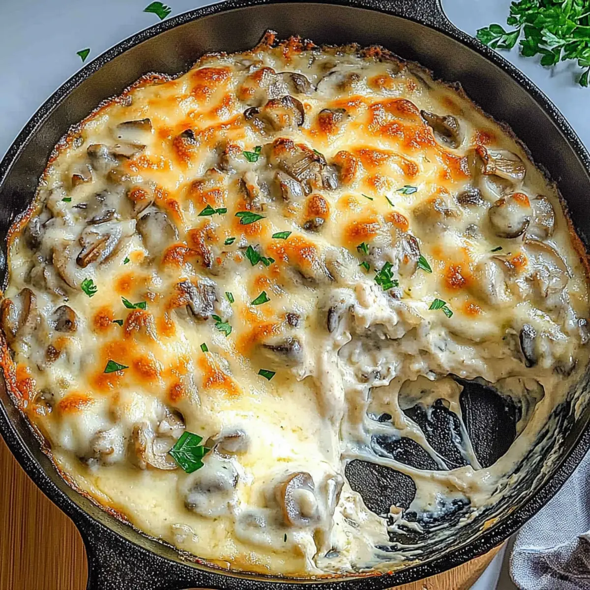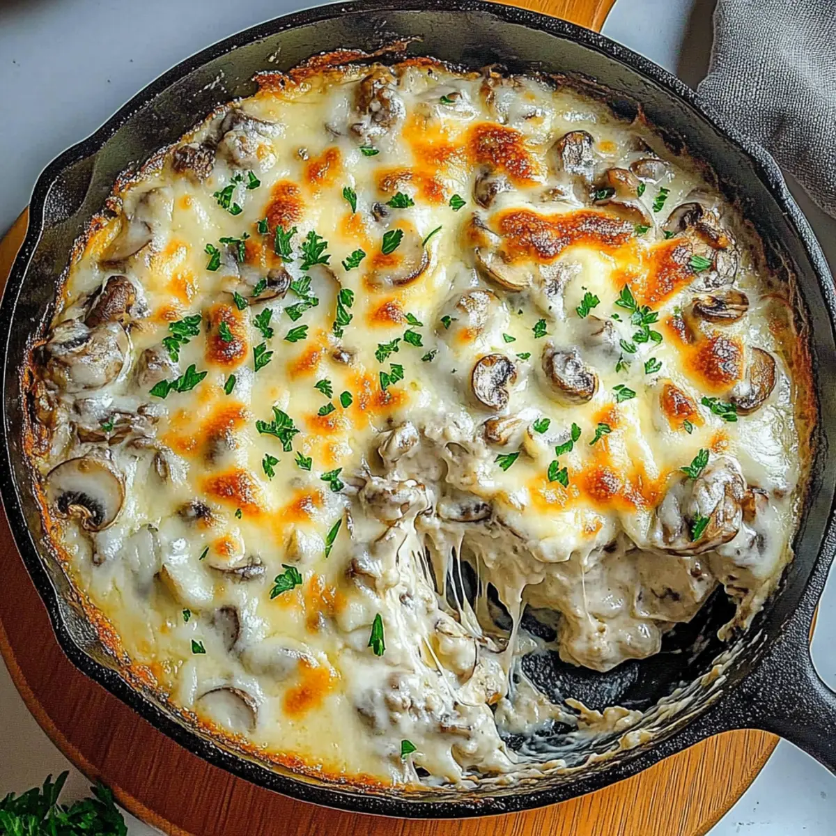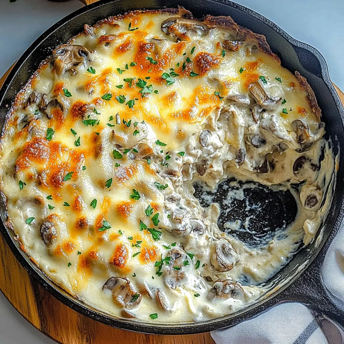 Jump to Recipe Print RecipeAs I stirred the aromatic sauté of garlic and mushrooms, a familiar warmth enveloped my kitchen, instantly transporting me back to cozy gatherings filled with laughter and delightful snacks. This Creamy Stuffed Mushroom Dip is my go-to for any occasion, seamlessly blending the rich, earthy flavors of mushrooms with the creamy tang of Greek yogurt. Not only is it vegetarian-friendly and gluten-free, but it’s also a crowd-pleaser that’s incredibly easy to whip up, making it perfect for those who often find themselves scrambling for an appetizer at the last minute. Plus, it can be prepped ahead of time, so you can spend more time enjoying the company and less time worrying about the food. Ready to dive into this delightful dip and wow your guests? Let’s get started! Why is this dip a must-try? Creamy, Indulgent Flavor: With a perfect balance of earthy mushrooms and tangy Greek yogurt, this dip is rich yet surprisingly light. Quick to Prepare: From start to finish, you can whip up this creamy delight in about 30 minutes—ideal for those last-minute gatherings! Versatile Serving Options: Pair it with toasted baguette slices, crackers, or fresh veggies like bell pepper strips for a charming spread. Diet-Friendly: This recipe is not only vegetarian but also gluten-free and can easily be adjusted for vegan diets without sacrificing taste. Make-Ahead Convenience: Prep the dip entirely in advance and pop it in the oven when guests arrive, as you do with Ricotta Beef Stuffed or Buffalo Chicken Stuffed dishes, allowing you to mingle and enjoy. Creamy Stuffed Mushroom Dip Ingredients Here’s everything you need to make this delicious dip! For the Dip Baby Bella Mushrooms – These provide a rich, earthy flavor that is key to the Creamy Stuffed Mushroom Dip; white button mushrooms can also work well. Avocado Oil – Used for cooking the mushrooms and garlic; you can swap it out for olive oil or butter if desired. Garlic (minced) – Adds aromatic depth and a burst of flavor; fresh garlic is ideal, though powdered can be used in a pinch. Fresh Thyme – Enhances flavor with its herbal notes; dried thyme or an Italian herb blend are great substitutes. Salt – Balances and enhances the flavors; adjust according to your taste preferences, especially if using salted cheese. Cream Cheese – This ingredient adds a creamy texture to the dip; for a vegan version, opt for plant-based cream cheese. Greek Yogurt – Contributes a tangy flavor and lighter texture; non-dairy yogurt works for vegan adaptations. Parmesan Cheese – Adds a sharp flavor; for a vegan alternative, consider nutritional yeast or a vegan melting cheese. Optional Mix-ins Crumpled Crispy Bacon – For a smoky, savory twist; a delightful addition for non-vegetarians! Caramelized Onions – Introduces a touch of sweetness and depth to elevate the flavor profile. With these simple ingredients, your Creamy Stuffed Mushroom Dip will be the talk of the gathering! Enjoy cooking! Step‑by‑Step Instructions for Creamy Stuffed Mushroom Dip Step 1: Preheat Oven Begin by preheating your oven to 350°F (175°C). While the oven warms up, let your cream cheese soften at room temperature for about 15-20 minutes. This will make mixing easier and help achieve the creamy texture we desire in the Creamy Stuffed Mushroom Dip. Step 2: Sauté Aromatics In a cast iron skillet, heat 2 tablespoons of avocado oil over medium-low heat. Once the oil is shimmering, add the minced garlic and fresh thyme, sautéing for about 3 minutes until fragrant but not browned. This aromatic base will enrich the flavor of your stuffed mushroom dip, so stir occasionally to prevent burning. Step 3: Cook Mushrooms Next, add 12 ounces of sliced baby bella mushrooms to the skillet. Increase the heat to medium and sauté for about 7 minutes, stirring often, until the mushrooms are tender and any liquid has evaporated. Season the mixture with a pinch of salt, then remove the skillet from heat and let it cool slightly. Step 4: Mix Cheeses In a large mixing bowl, combine the softened cream cheese, 1 cup of Greek yogurt, and half of the grated parmesan cheese. Use a hand mixer or a spatula to blend these ingredients together until smooth and creamy. This mixture forms the heart of your creamy stuffed mushroom dip, so ensure there are no lumps for the best texture. Step 5: Combine Gently fold the sautéed mushroom mixture into the creamy cheese blend. Stir until everything is evenly combined and looks gorgeous, with the earthy mushrooms well dispersed throughout the dip. Transfer this mix back into the skillet for baking, and sprinkle the remaining parmesan on top for a golden finish. Step 6: Bake Dip Slide your skillet into the preheated oven and bake the creamy stuffed mushroom dip for 15 minutes. After that time, switch your oven to broil and continue baking for an additional 5 minutes, keeping a close eye until the top is golden and bubbling. You’ll know it’s ready when it’s irresistibly aromatic! Step 7: Serve Once baked, remove the skillet from the oven and allow the dip to cool slightly before serving. Present your Creamy Stuffed Mushroom Dip warm, alongside an assortment of toasted baguette slices, crunchy veggies, or crispy crackers for dipping. It’s time to share this culinary delight with your eager guests! Storage Tips for Creamy Stuffed Mushroom Dip Fridge: Store any leftover Creamy Stuffed Mushroom Dip in an airtight container for up to 3 days to maintain its freshness and flavor. Freezer: If you want to keep it longer, you can freeze the dip in a freezer-safe container for up to 2 months. Thaw overnight in the fridge before reheating. Reheating: Reheat the dip in an oven-safe dish at 325°F for 10-15 minutes until warmed through, ensuring it retains its creamy texture. Avoid microwaving to prevent it from becoming watery. Make-Ahead Tip: Assemble the dip completely and refrigerate it for up to 24 hours before baking. This way, you ca