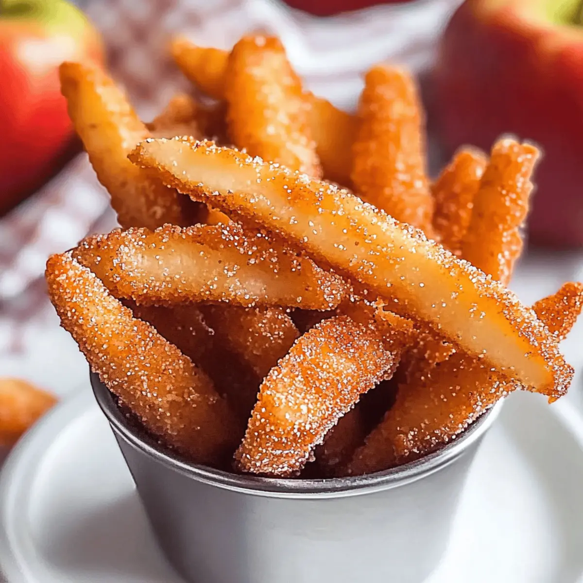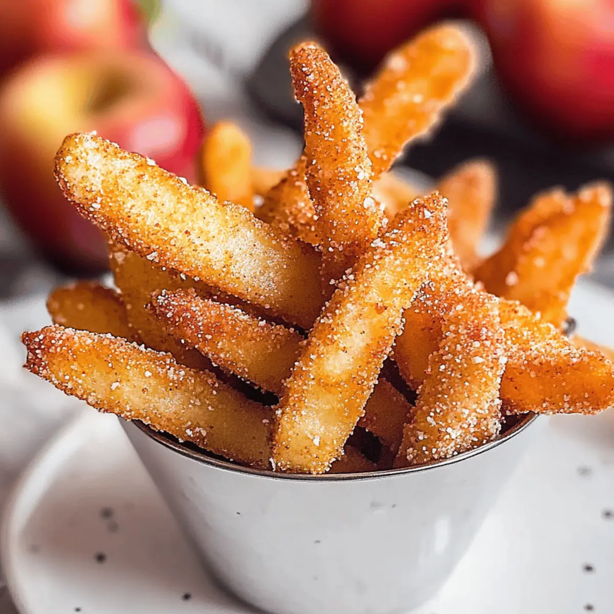 Jump to Recipe Print RecipeWhile rummaging through my pantry one sunny afternoon, I stumbled upon a bounty of apples begging to be transformed into something delightful. Enter the Crispy Air Fryer Apple Fries—a quick and delicious snack that brings a fresh twist to traditional desserts. With just a few ingredients, this recipe makes it easy to enjoy a healthier alternative to heavy sweets, all while delivering that satisfying crunch that we crave. Whether you’re looking for a simple evening treat or a fun activity to enjoy with the kids, these apple fries come together in no time and are utterly scrumptious. Plus, they are gluten-free if you opt for a gluten-free flour, making them accessible to even more home chefs! Are you ready to take your snacking game to the next level? Why Will You Love Crispy Apple Fries? Simplicity at Its Best: This recipe requires minimal effort and just a handful of ingredients, making it perfect for any level of home cook. Irresistible Crunch: The golden-brown breadcrumb coating pairs beautifully with the tender apple inside, offering a satisfying snap with every bite. Versatile Treat: Not only delicious alone, but these apple fries can also be indulgently paired with warm caramel sauce or a scoop of vanilla ice cream. Quick and Easy: In under 15 minutes, you can whip up this delightful snack, making it a go-to for busy days or spontaneous cravings. Gluten-Free Option: Simply swap regular flour for gluten-free flour and enjoy a delightful treat that everyone can savor! Give these crispy delights a try, and for more air-fried goodness, check out our Air Fryer Zucchini or Air Fryer Cauliflower recipes to keep the flavors coming! Crispy Air Fryer Apple Fries Ingredients For the Apple Coating • Apples – 2 large apples, peeled and sliced into wedges; Granny Smith, Fuji, or Honeycrisps are perfect for a sweet and tart flavor. • All-Purpose Flour – 1/2 cup; helps the breadcrumbs stick and creates a lovely texture. For a gluten-free option, substitute with gluten-free flour. • Breadcrumbs – 1/2 cup; essential for achieving that irresistible crispy exterior. Skip this, and you’ll end up with soggy apple fries! • Ground Cinnamon – 1 teaspoon; adds a warm, comforting flavor. Feel free to adjust based on your taste or try adding nutmeg for a twist. • Salt – 1/4 teaspoon; enhances the overall taste of the apple fries. • Eggs – 2 large eggs, beaten; serves as the binding agent for the coating. • Sugar – 1 tablespoon; brings a touch of sweetness to complement the apples. You can use honey as a natural sweetener if desired. Try out these Crispy Air Fryer Apple Fries, and you’ll be amazed at how simple and rewarding homemade snacks can be! Step-by-Step Instructions for Crispy Air Fryer Apple Fries Step 1: Preheat the Air Fryer Begin by preheating your air fryer to 380°F (193°C). This temperature is crucial for achieving that golden-brown crispiness in your apple fries. While it heats up, gather your ingredients and prepare a clean work surface for a smooth cooking process. Step 2: Prepare the Coating Mixture In a mixing bowl, combine 1/2 cup of all-purpose flour, 1/2 cup of breadcrumbs, 1 teaspoon of ground cinnamon, and 1/4 teaspoon of salt. Whisk these ingredients together until well blended, ensuring an even distribution of flavors. This delightful mixture will create the perfect crunchy coating for your Crispy Air Fryer Apple Fries. Step 3: Dip the Apple Wedges Next, take your 2 large peeled and sliced apple wedges and dip each piece into the beaten mixture of 2 eggs. This step helps the breadcrumb coating adhere to the apples perfectly. Make sure each wedge is completely submerged, allowing a thin layer of egg to coat the surface for maximum crunchiness. Step 4: Coat the Apple Wedges After dipping in the egg mixture, transfer the apple wedges into the bowl with your breadcrumb mixture. Gently toss them until evenly coated, ensuring that each wedge is well-covered. This will create the crispy exterior you desire in your Crispy Air Fryer Apple Fries. Step 5: Arrange in the Air Fryer Basket Carefully place the coated apple wedges in a single layer in the air fryer basket. Avoid overcrowding to allow proper air circulation, ensuring each fry gets that delightful crunch. Give the basket a slight shake to settle the apple fries before beginning the cooking process. Step 6: Air Fry the Apple Fries Set the air fryer to cook for 8-10 minutes, checking halfway through for even browning. The apple fries should emerge golden brown and crispy, with a heavenly aroma filling your kitchen. Adjust the time as necessary to reach your desired doneness—look for a crispy exterior that hints at the sweet tender apple inside. Step 7: Final Touches Once done, carefully remove the crispy apple fries from the basket and sprinkle them generously with 1 tablespoon of sugar while they’re still warm. This simple step elevates their sweetness and adds a lovely finishing touch, making your Crispy Air Fryer Apple Fries irresistible and ready to serve! Expert Tips for Crispy Air Fryer Apple Fries • Coating Patience: Allow coated apple wedges to sit for a few minutes before air frying. This step helps the crispy coating adhere better and prevents peeling off during cooking. • Control Cinnamon: Be cautious with the amount of ground cinnamon; too much can overpower the apple’s natural sweetness. Start with less and adjust to your preference. • Explore Fruit Options: While apples are the star here, pears can also be used. They may become softer and mushier, so keep a close eye on their cooking time. • Avoid Overcrowding: Ensure that the apple fries are arranged in a single layer in the air fryer basket. Overcrowding can lead to uneven cooking and less crispy results. • Storage Wisdom: Store any leftovers in an airtight container in the refrigerator. These bites are best enjoyed fresh but can last up to three days. Enjoy creating your Crispy Air Fryer Appl