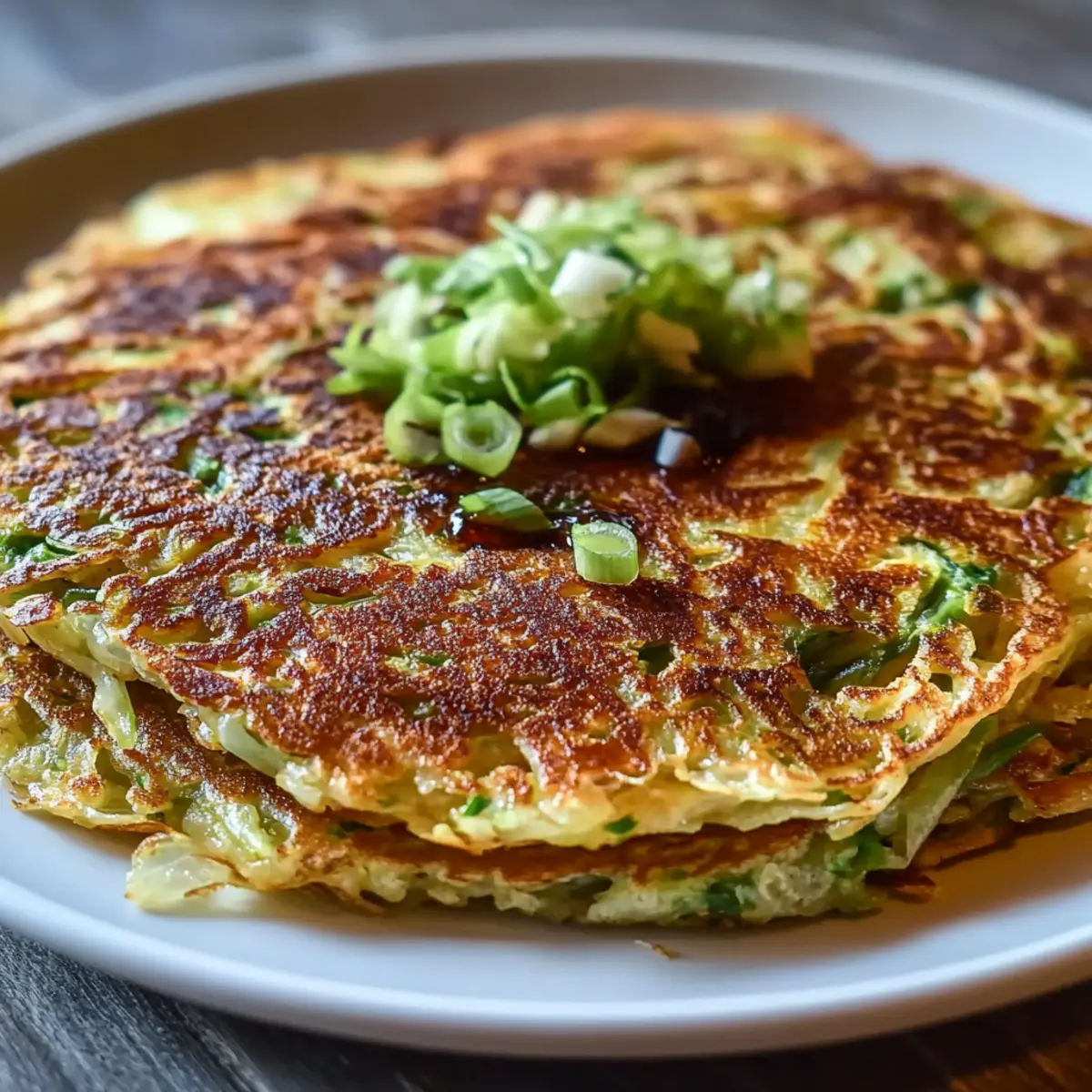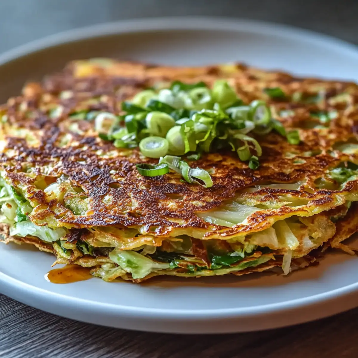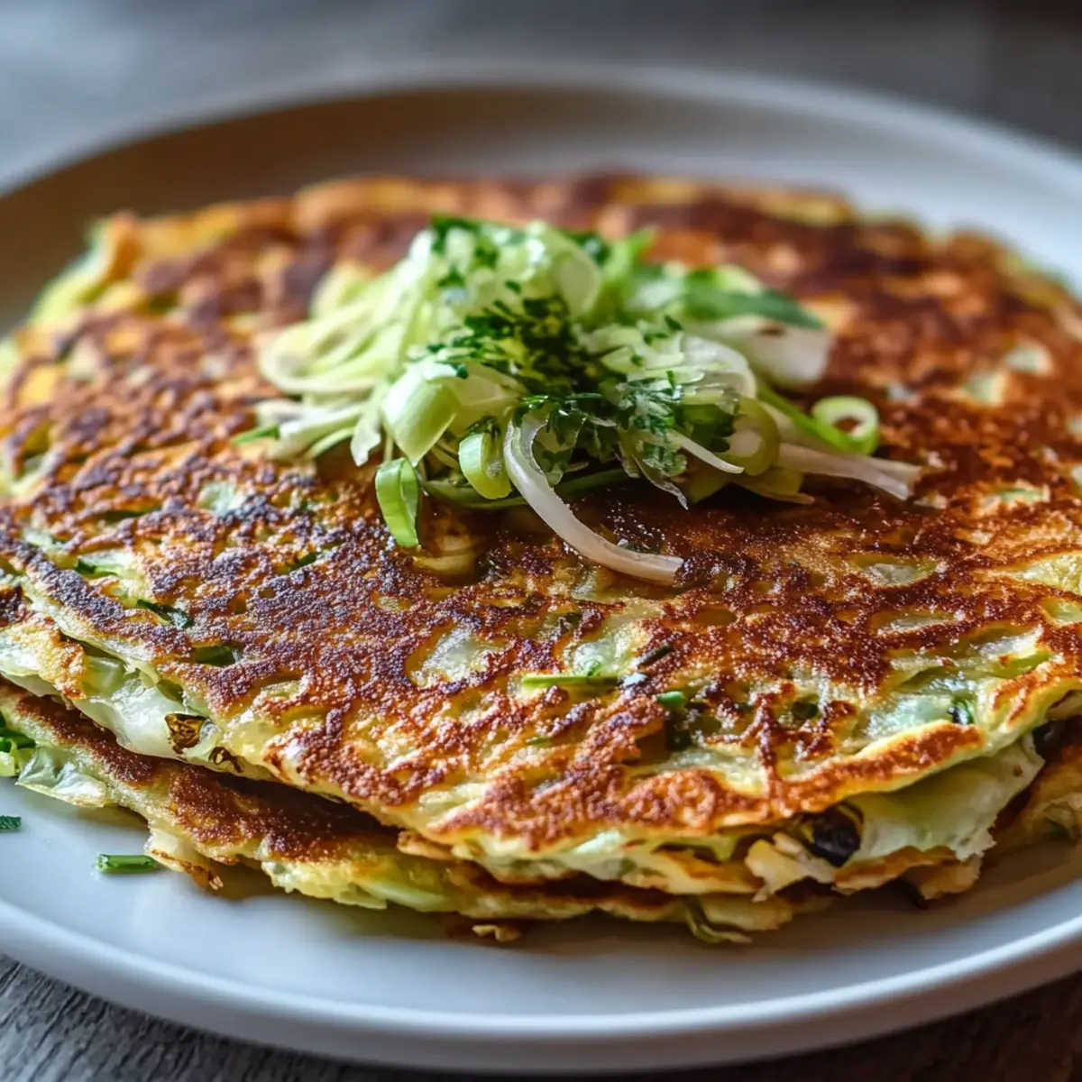 Jump to Recipe Print RecipeThe sizzle of a hot skillet and the sight of a golden pancake flipping perfectly is pure magic in my kitchen. Today, I’m thrilled to share my take on the Crispy Cabbage Pancake, a dish that effortlessly turns a humble vegetable into a satisfying and healthy meal. This recipe not only highlights the crunchy goodness of cabbage but also offers a quick meal solution that’s both vegetarian and budget-friendly. Whether you need a simple lunch or a light dinner, these pancakes are incredibly customizable, allowing you to add your favorite toppings or swap in vegetables you have on hand. With just a few pantry staples, you’ll create a delightfully crispy outer layer encasing tender, veggie-filled goodness. Are you ready to dive into the deliciousness? Let’s get cooking! Why Will You Love This Crispy Cabbage Pancake? Quick Meal Solution: This recipe comes together in under 30 minutes, making it the perfect option for busy weeknights. Vegetarian Delight: Packed with nutritious cabbage and customizable to suit your preferences, it’s a guilt-free indulgence everyone can enjoy. Budget-Friendly: Utilizing pantry staples, this dish is easy on the wallet without sacrificing flavor or satisfaction. Versatile Dish: Top it with your favorite sauces or vegetables; the possibilities are endless! Consider pairing it with Baked Potatoes New for a complete meal. Crowd-Pleaser: Crispy, golden, and delicious, these pancakes are sure to impress family and friends during your next gathering. Serve with a side of dipping sauce for an even better experience! Crispy Cabbage Pancake Ingredients For the Base • Shredded Cabbage – A vital ingredient that adds crispness and nutrition; you can swap it with shredded carrots or zucchini for a different flavor. • Grated Carrot – Adds a touch of sweetness and lovely color; feel free to leave it out if you prefer. • Scallions – These lend a subtle onion flavor; chives are a great alternative if scallions are not on hand. For the Batter • Eggs – Essential for binding the mixture and adding richness; for a vegan option, replace with flaxseed meal mixed with water. • All-Purpose Flour – Provides the structure necessary for stability; gluten-free flour works as a suitable substitute if needed. • Water – Adjusts the consistency of the batter; consider using milk for an extra hint of flavor. • Salt and Pepper – Important for enhancing the overall taste of the pancake. • Garlic Powder – Infuses the pancakes with aromatic flavor; you can also use fresh minced garlic if you prefer. Enjoy the ease of making these Crispy Cabbage Pancakes, where each ingredient harmonizes into a delightful quick meal! Step‑by‑Step Instructions for Crispy Cabbage Pancake Step 1: Prepare the Veggies In a large mixing bowl, combine 2 cups of shredded cabbage, 1/2 cup of grated carrot, and 2 chopped scallions. Mix them thoroughly, ensuring an even distribution of colors and flavors. This veggie base will bring brightness and texture to your Crispy Cabbage Pancake, setting the stage for a delightful dish. Step 2: Whisk the Batter In a separate bowl, whisk together 2 eggs, 1 cup of all-purpose flour, 1/2 cup of water, 1 teaspoon of salt, 1/2 teaspoon of pepper, and 1 teaspoon of garlic powder until smooth. Make sure there are no lumps in your batter, as a smooth consistency will help bind the ingredients well. This mixture will serve as the foundation for achieving that perfect balance of crispiness and tenderness. Step 3: Combine Everything Pour the batter over the cabbage mixture in the large bowl. Gently stir until all the veggies are coated and distributed evenly throughout the batter. This will give your Crispy Cabbage Pancake its satisfying texture and help it cook evenly when heated. Take your time to ensure all ingredients are well combined. Step 4: Heat the Skillet Heat 1 tablespoon of oil in a nonstick skillet over medium heat. Allow the oil to shimmer but not smoke, indicating it’s ready for cooking. This step is essential for achieving that golden, crispy exterior on your pancake. If you have a cast-iron skillet, that can work beautifully as well! Step 5: Shape the Pancake Add half of the cabbage mixture to the skillet, using a spatula to flatten and shape it into a pancake approximately 1 inch thick. Make sure to create an even layer for consistent cooking. The visual of it sizzling away should get your taste buds excited for the Crispy Cabbage Pancake to come! Step 6: Cook Until Golden Cook the pancake for about 4-5 minutes until the bottom turns golden brown and crispy. You can peek under the pancake with a spatula; it should release easily from the skillet when it’s ready to flip. The delightful aroma filling your kitchen will signal that it’s close to being done. Step 7: Flip and Finish Cooking Carefully flip the pancake using the spatula and cook for another 4-5 minutes on the other side, making sure it’s equally golden and crisp. Adjust the heat as necessary to prevent burning but ensure it cooks through. This step is critical to achieving the signature crunch of your Crispy Cabbage Pancake. Step 8: Repeat with Remaining Batter Once both sides of the pancake are perfectly crispy, transfer it to a plate. Wipe the skillet if necessary, heat another tablespoon of oil, and repeat with the remaining cabbage mixture to make another pancake. You may need to adjust the oil as you go to ensure each pancake is cooked beautifully. Step 9: Serve and Enjoy Transfer your crispy pancakes to a serving plate, allowing them to cool slightly. Feel free to top with your favorite sauces or herbs, slice them into wedges, and serve warm. Watch as your family and friends delight in this satisfying Crispy Cabbage Pancake that’s not only delicious but also full of vibrant flavors! Crispy Cabbage Pancake Variations & Substitutions Feel free to embrace your creativity and personalize this Crispy Cabbage Pancake recipe to suit your taste bu