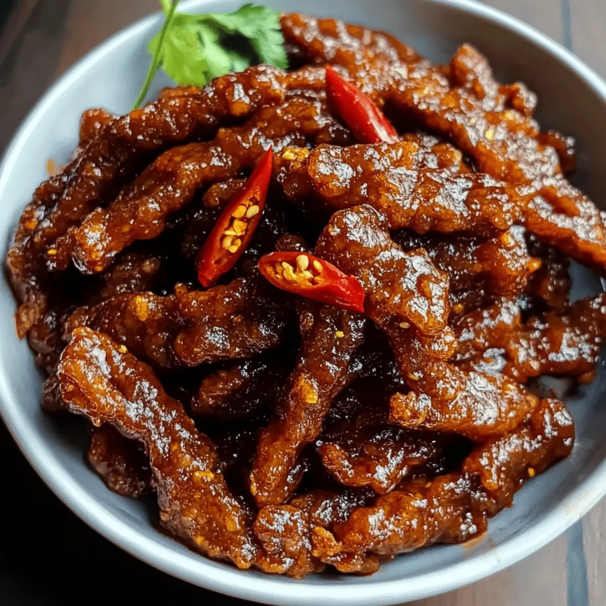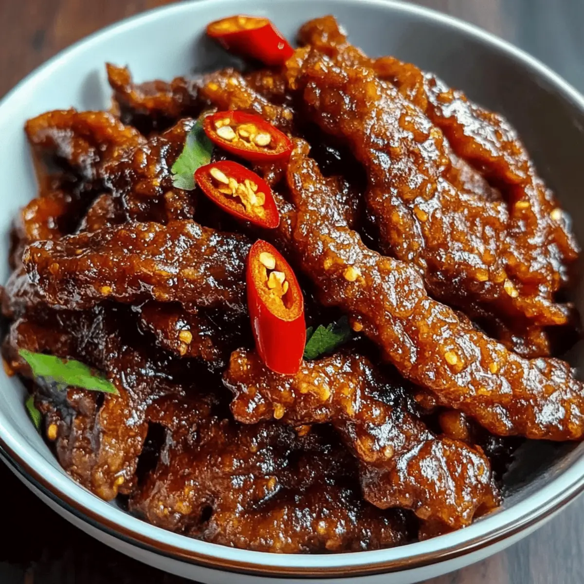 Jump to Recipe Print RecipeThe sizzling sound of beef hitting a hot wok can instantly transport me to my favorite Chinese takeout spot, yet here I am, about to create that magic in my own kitchen with this Crispy Chilli Beef recipe. Perfectly crispy beef strips tossed in a punchy, flavorful sauce? Yes, please! This healthier take on a beloved takeout classic not only brings the restaurant experience home but also skips the guilt associated with deep-frying. Quick to prepare and loaded with layers of flavor, it’s an ideal choice for a busy weeknight dinner that still feels special. Ready to dive into a dish that combines excitement and comfort in every bite? Let’s get cooking! Why is this Crispy Chilli Beef special? Satisfying Crunch: Each bite features crispy beef strips that maintain their juiciness while being enveloped in a robust sauce. Simple Prep: You’ll whip this up quickly, perfect for weeknight dinners without sacrificing taste. Flavor Fusion: The balance of sweet and spicy transforms everyday beef into something unforgettable. Healthy Twist: Made without deep-frying, enjoy indulgence guilt-free! Versatile Serving: Pair it with steamed rice or noodles for a complete meal, or even add more veggies for a nutritious boost. Crowd-Pleaser: It’s bound to be a hit with family and friends, rivaling your favorite takeout! If you’re in the mood for something different, check out my Epic Beef Nachos or give the Zucchini Ground Beef a try for a delightful twist! Crispy Chilli Beef Ingredients For the Beef Coating Beef (360g thin-cut sirloin steak) – This is the star ingredient, providing tenderness and a rich flavor; you can also use ribeye for a juicier bite. Egg (1 small) – Binds the cornflour, ensuring an even crispy coating; for a vegan option, consider a flax egg. Cornflour (4 tbsp) – Crucial for achieving that desired crispy texture; arrowroot or potato starch are great gluten-free alternatives. Salt (¼ tsp) – Enhances the overall flavor; feel free to use sea salt or kosher salt interchangeably. Black Pepper (¼ tsp) – Adds depth and a hint of heat; freshly ground black pepper is preferred for the best taste. White Pepper (⅛ tsp) – Offers a subtle earthiness; if you don’t have it on hand, you can omit it without a problem. For Stir-Frying Sunflower Oil (4 ½ tbsp, divided) – Used for frying the beef to golden perfection; vegetable or canola oils work well too. Onion (1 medium) – Brings sweetness and a satisfying crunch; shallots can be substituted for a milder flavor. Red Chili (1) – Provides the characteristic heat; adjust the quantity to suit your spice preference, or swap with jalapeño for less heat. Ginger (1 tsp minced) – Infuses the dish with aromatic warmth; fresh ginger is best, but powdered is a decent alternative if needed. Garlic (3 cloves, minced) – Offers a robust flavor; fresh minced garlic is ideal, though pickled garlic can be a handy substitute. For the Chinese Garlic Sauce Rice Vinegar (2 tbsp) – Provides acidity and brightness to the sauce; you can use apple cider vinegar in a pinch. Dark Soy Sauce (3 tbsp) – Adds depth and color; regular soy sauce can be substituted, but the flavor will be slightly less rich. Tomato Puree (2 tbsp) – Contributes body and flavor to the sauce; you could also use passata or tomato paste if needed. Caster Sugar (6 tbsp) – Balances the dish with sweetness; brown sugar can elevate the flavor even further. Tomato Ketchup (2 tbsp) – Adds sweetness and tang, but you can replace it with extra tomato puree and more sugar if desired. Sweet Chili Sauce (2 tbsp) – Introduces a delightful sweet-spicy element; feel free to use homemade sweet chili sauce to add a personal touch. Now you have everything you need to create your delicious Crispy Chilli Beef! Let’s whip up this flavor-packed dish that brings the best of takeout right to your kitchen. Step‑by‑Step Instructions for Crispy Chilli Beef Step 1: Prep Beef In a mixing bowl, combine the thinly cut sirloin steak with the beaten small egg, ensuring each strip is coated evenly. Gradually add the cornflour, salt, black pepper, and white pepper, mixing until the beef is well-covered. This step creates the essential crispy coating for the Crispy Chilli Beef, giving it a delicious crunch. Step 2: Cook Beef Heat 3 tablespoons of sunflower oil in a wok over high heat until shimmering, indicating it’s hot enough. Fry the coated beef strips in small batches for about 5-6 minutes or until they are dark brown and crispy. Make sure to turn them occasionally for even cooking. Once done, drain the beef on kitchen paper to remove excess oil. Step 3: Sauté Aromatics In the same wok, add the remaining 1.5 tablespoons of sunflower oil and heat over medium heat. Sauté the sliced onion for 2 minutes, allowing it to soften and become slightly translucent. Then, add the red chili, minced ginger, and minced garlic; sauté for an additional 30 seconds until fragrant, which enhances the flavors in your Crispy Chilli Beef. Step 4: Prepare Sauce Stir in the rice vinegar, dark soy sauce, tomato puree, caster sugar, ketchup, and sweet chili sauce into the wok. Cook this mixture for 2-3 minutes, allowing it to bubble and slightly reduce, which helps meld the flavors together and creates a silky sauce to coat the beef. Step 5: Combine and Serve Return the previously cooked crispy beef to the wok, tossing it gently in the sauce for about 1-2 minutes until heated through. Make sure every strip is well-coated with the luscious sauce. Serve immediately, paired with steaming jasmine rice or stir-fried noodles, for a fulfilling meal that rivals your favorite Chinese takeout. Make Ahead Options Crispy Chilli Beef is perfect for meal prep enthusiasts! You can coat and cook the beef strips up to 24 hours in advance, letting them cool completely before storing in an airtight container in the refrigerator. The sauce can be prepared 2-3 days ahead; just keep it sealed tightly in 