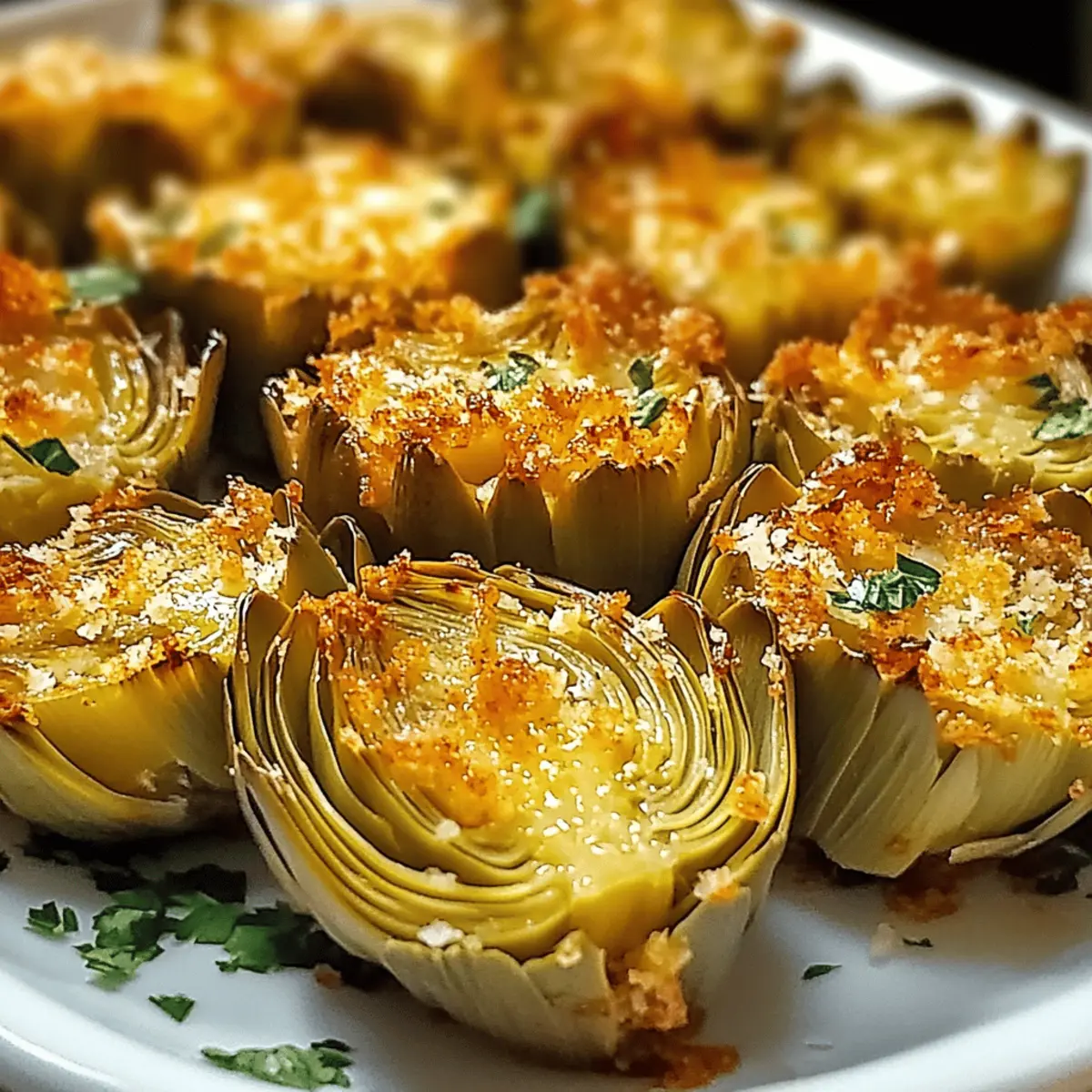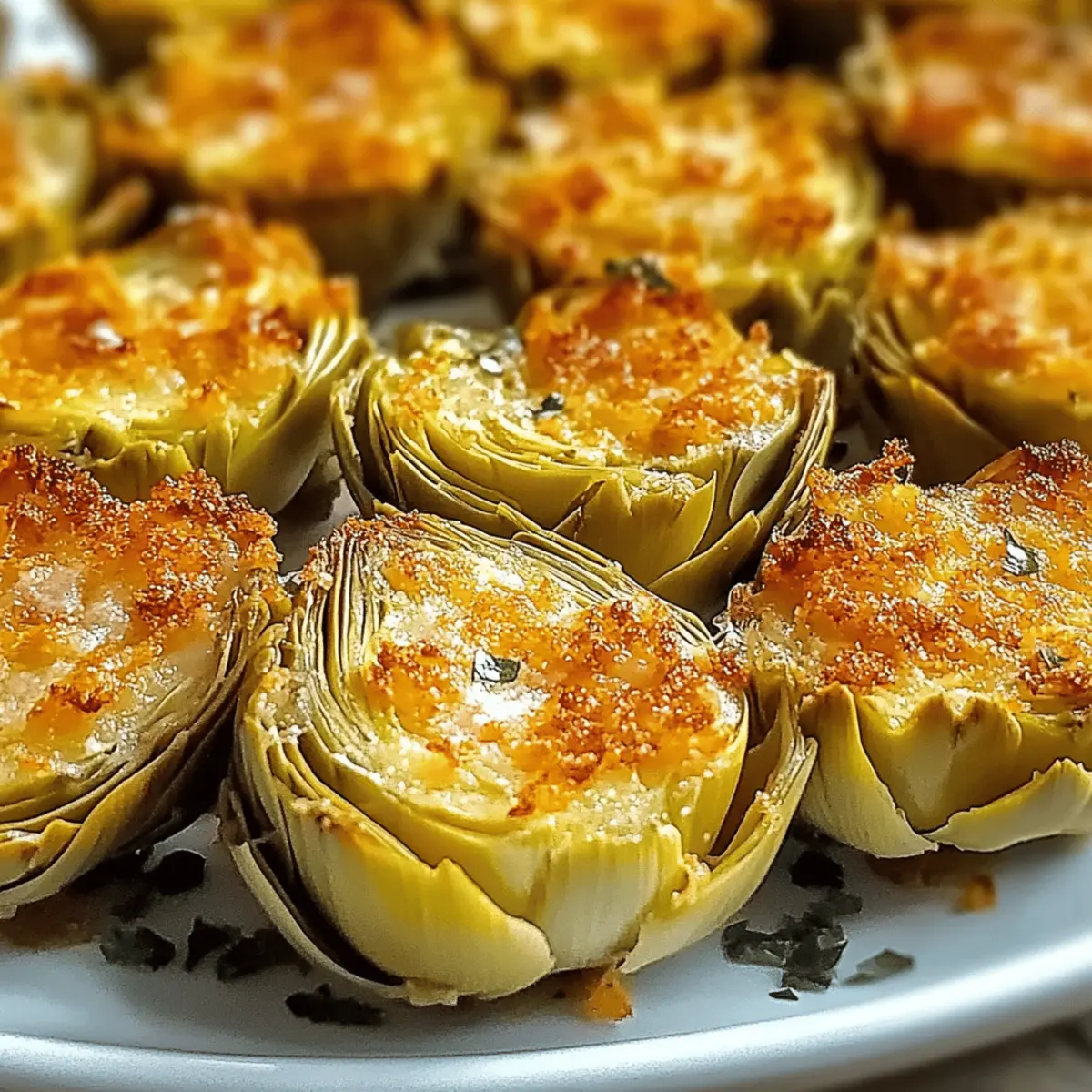 Jump to Recipe Print RecipeAs I pulled the tray from the oven, the delightful crunch of my Crispy Parmesan Artichoke Hearts filled the air, inviting everyone in the house to gather around. This no-fuss appetizer wraps tender artichoke hearts in a golden, cheesy crust that is simply irresistible. Not only is this recipe easy to whip up for your next gathering, but it’s also vegetarian-friendly, letting you cater to various dietary preferences without sacrificing flavor. Picture this: a plate of these crispy bites as guests mingle, each crispy morsel sparking joy with every satisfying crunch. Curious to know how I transformed this simple ingredient into such a crowd-pleaser? Let’s dive into the recipe! Why Are These Artichoke Hearts Irresistible? Crispy Texture: Each bite offers a satisfying crunch, making it the perfect finger-food for any occasion. Flavor Explosion: The rich, savory taste of Parmesan cheese combined with aromatic oregano elevates this simple dish into a gourmet treat. Easy Preparation: With just a few basic ingredients and uncomplicated steps, you can whip these up in under an hour! Versatile Delight: Pair them with marinara sauce, aioli, or enjoy them straight from the oven for a versatile appetizer that satisfies all palates. Consider exploring other great recipes like Garlic Parmesan Potato Wedges to complement your spread! Crowd-Pleasing Appeal: Whether it’s a family dinner or a party, these Crispy Parmesan Artichoke Hearts are sure to be the star of the show, leaving your guests asking for more. Crispy Parmesan Artichoke Hearts Ingredients For the Breading • Parmesan Cheese – freshly grated is best for a rich, cheesy flavor and a perfect golden crust. • Breadcrumbs – panko breadcrumbs provide a lighter, crispier finish for that ultimate crunch. • Garlic Powder – adds a subtle yet delightful depth to the flavor; opt for high-quality garlic powder. • Dried Oregano – this classic Italian herb is essential for an authentic flavor; don’t skip it! • Salt and Pepper – season generously to enhance all flavors; adjust to taste for balance. For the Artichokes • Artichoke Hearts – canned or frozen artichokes packed in water are ideal; ensure they’re well-drained for optimal crunch. • Olive Oil – crucial for achieving that golden-brown finish; extra virgin oil is recommended for richer flavor. Enjoy creating delicious Crispy Parmesan Artichoke Hearts that will dazzle your tastebuds! Step‑by‑Step Instructions for Crispy Parmesan Artichoke Hearts Step 1: Preheat Oven Begin by preheating your oven to 400°F (200°C). This ensures it’s hot enough to create that perfect crispy texture for your Crispy Parmesan Artichoke Hearts. While the oven warms up, take a moment to gather your ingredients, so everything is ready for your cooking adventure. Step 2: Prepare Artichokes Drain and rinse your artichoke hearts thoroughly under cold water to eliminate any brine or liquid that could affect crispiness. Pat them dry gently with paper towels, ensuring they are moisture-free, as this will help the coating adhere better and achieve optimal crunch in the oven. Step 3: Make Coating Mixture In a mixing bowl, combine freshly grated Parmesan cheese, panko breadcrumbs, garlic powder, dried oregano, salt, and pepper. Stir well until all ingredients are evenly blended. This mixture is key to creating the deliciously golden crust that will envelop the artichoke hearts and delight your guests. Step 4: Coat Artichokes Using tongs, dip each artichoke heart into a bowl of olive oil, making sure they are nicely coated. Then, roll them gently in the breadcrumb mixture until every inch is covered. This step is crucial for ensuring your Crispy Parmesan Artichoke Hearts have that satisfying crunch that everyone loves. Step 5: Arrange on Baking Sheet Line a baking sheet with parchment paper for easy clean-up and to prevent sticking. Arrange the coated artichokes on the sheet, ensuring they have space between each piece. This allows hot air to circulate and helps each heart crisp up beautifully, resulting in a delightful appetizer. Step 6: Bake Slide the baking sheet into your preheated oven and bake for 25-30 minutes. Keep an eye on them as they bake, looking for a luscious golden-brown color and a crispy exterior. The aroma wafting through your kitchen will be utterly irresistible, signaling that your Crispy Parmesan Artichoke Hearts are almost ready. Step 7: Serve Once golden and crispy, remove the artichokes from the oven and let them cool slightly on the baking sheet. This prevents burns while still keeping them warm. Serve them alongside marinara sauce for dipping or enjoy them as they are, and watch how they disappear quickly! Storage Tips for Crispy Parmesan Artichoke Hearts Fridge: Store leftovers in an airtight container in the fridge for up to 3 days. This helps maintain flavor and texture, ensuring everyday enjoyment. Freezer: For longer storage, freeze unbaked, coated artichoke hearts in a single layer on a baking sheet, then transfer to a freezer bag for up to 2 months. Bake directly from frozen, adding a few extra minutes to the cooking time. Reheating: To restore the delightful crunch, reheat in the oven at 350°F (175°C) for about 10 minutes. This method brings back the crispiness, making it feel freshly made! No Microwave: Avoid using the microwave, as it can make the artichoke hearts soggy and diminish that crispy texture you love in these Crispy Parmesan Artichoke Hearts. What to Serve with Crispy Parmesan Artichoke Hearts Imagine a cozy gathering where the delightful crunch of artichoke hearts perfectly contrasts with vibrant, flavorful sides that elevate your dining experience. Garlic Aioli: This creamy dip enhances the crunchy artichokes with a rich, garlicky flavor that’s simply irresistible. Zesty Marinara Sauce: A classic pairing that adds a tangy freshness, making each bite of crispy goodness even more delectable. Fresh Caesar Salad: The cr