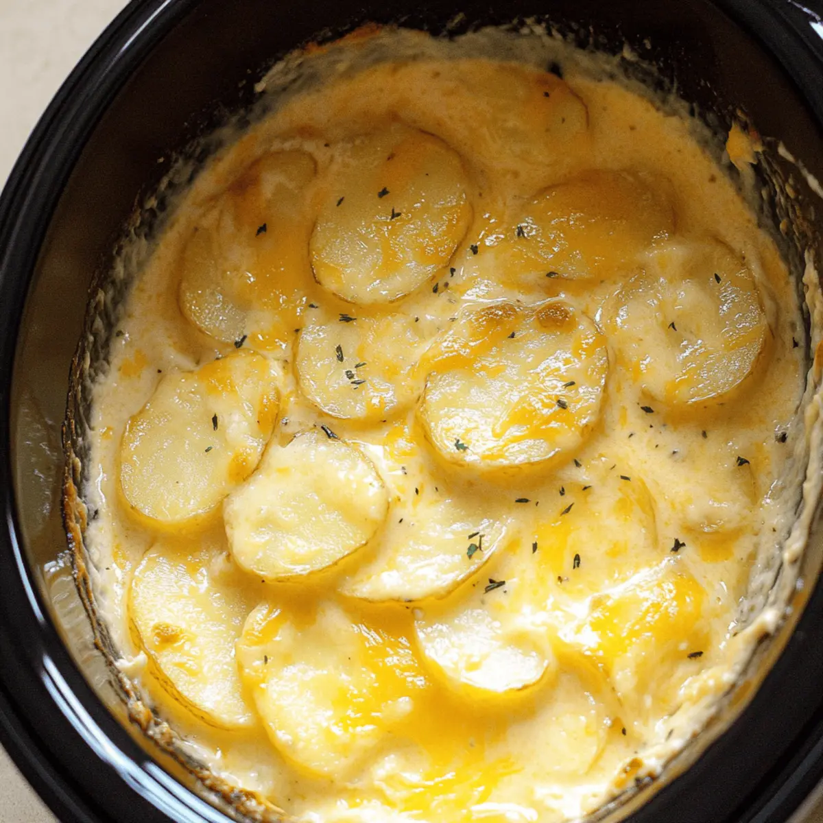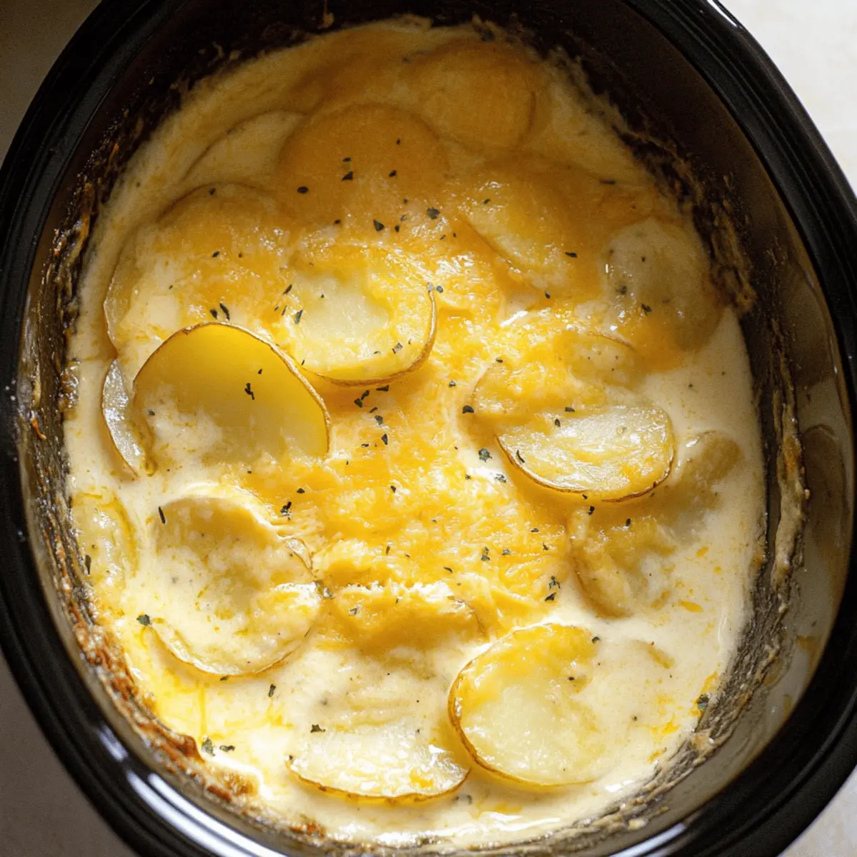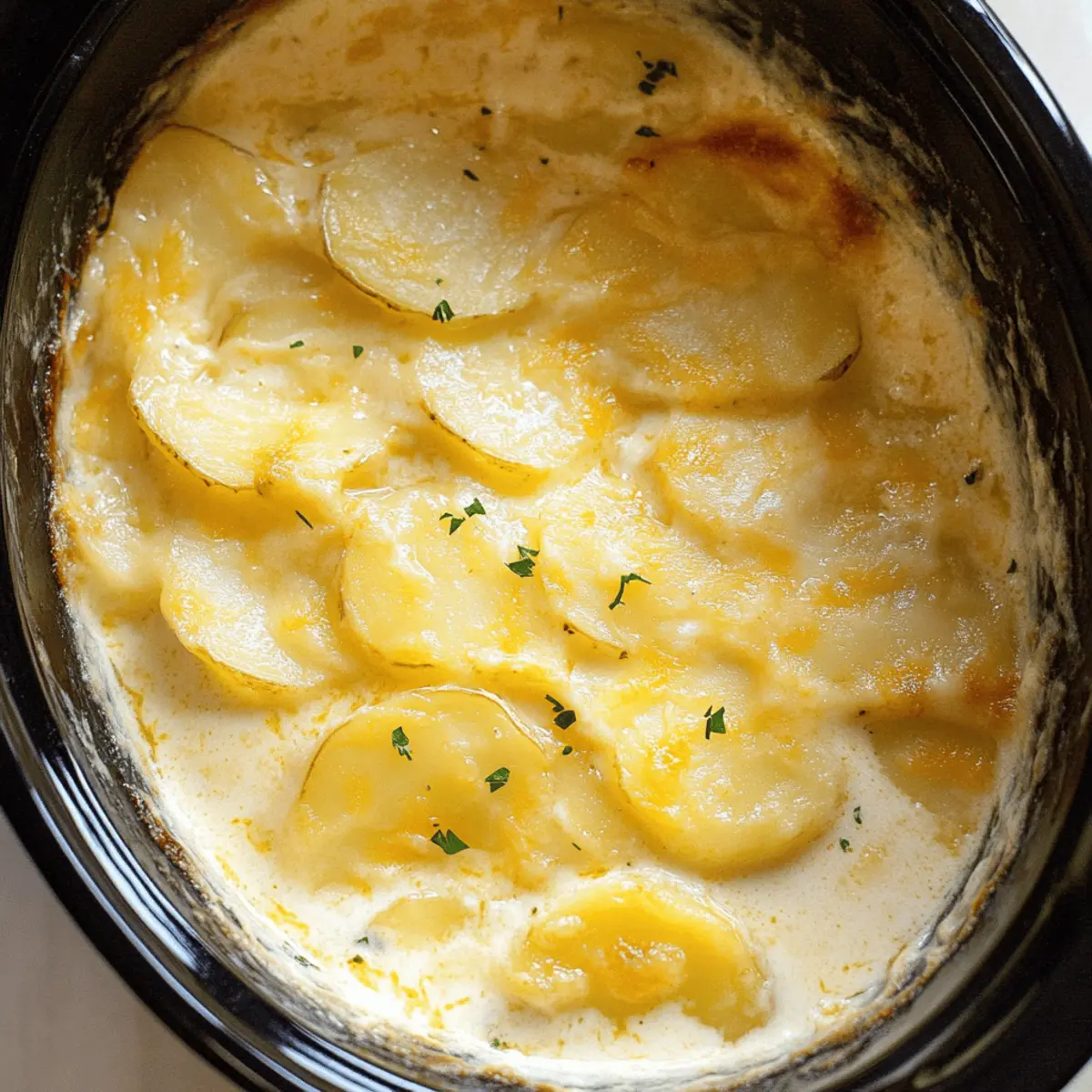 Jump to Recipe Print RecipeThere’s something magical about the aromas that waft through the kitchen when you’ve got a slow cooker in action. This Creamy Slow Cooker Scalloped Potatoes recipe captures that magic perfectly, transforming humble ingredients into a velvety, cheesy side dish that’s irresistibly comforting. With no canned soup here, you can savor the rich, homemade flavor without any fuss. The best part? This recipe requires just a few minutes of prep time, making it a fantastic option for busy weeknights or festive gatherings alike. Whether you’re pairing it with grilled meats or serving it at a holiday feast, these scalloped potatoes are sure to steal the spotlight. Ready to discover how easy it is to create this creamy delight? Keep scrolling! Why are slow cooker potatoes so appealing? Effortless Cooking: With minimal prep time, simply layer your ingredients and let the slow cooker do the work. Homemade Richness: Enjoy a creamy, flavorful dish without relying on canned soup, bringing a wholesome touch to your table. Versatile Side Dish: These scalloped potatoes pair perfectly with grilled meats or roasted turkey, making them a hit at any meal. Oh-So-Creamy: The texture is undeniably comforting, with soft potatoes enveloped in a luscious cheese sauce. Crowd-Pleasing Flavor: Whether it’s a potluck or family dinner, everyone will rave about this delicious comfort food! Check out my recipe for Cheesy Taco Potatoes for another winning side. Crockpot Scalloped Potatoes Ingredients For the Potatoes Yukon Gold Potatoes – These provide a naturally creamy texture; if unavailable, use waxy red potatoes. Onion – Adds a touch of sweetness; make sure to slice it thin for even cooking. For the Creamy Sauce Whole Milk – This is the base for a luscious sauce; feel free to substitute with a lighter alternative like almond milk. Cornstarch – This thickens the sauce beautifully; if you prefer a thicker consistency, simply increase the amount. Yellow Mustard – A secret ingredient that gives depth; it’s key for that unique tangy flavor. Salt and Black Pepper – Essential for seasoning; adjust to your liking for a well-balanced taste. For the Cheese White Cheddar Cheese – Delivers creaminess and a sharp kick; alternatively, you can use Monterey Jack for a milder flavor. Enjoy cooking these Crockpot Scalloped Potatoes as a cozy side that will warm hearts and taste buds alike! Step‑by‑Step Instructions for Creamy Slow Cooker Scalloped Potatoes Step 1: Prepare the Slow Cooker Start by greasing the inside of your slow cooker with oil or cooking spray. This prevents the creamy sauce from sticking, ensuring easy cleanup later. A well-prepared slow cooker sets the stage for your luxurious Crock Pot Scalloped Potatoes, helping them cook evenly and perfectly. Step 2: Layer the Ingredients Begin layering your scalloped potatoes by placing 1/3 of the thinly sliced onions at the bottom of the slow cooker. Next, add a layer of Yukon Gold potato slices, followed by a generous sprinkling of white cheddar cheese. Repeat this layering process two more times, ensuring to finish with a delightful top layer of potatoes and cheese for a beautiful presentation. Step 3: Prepare the Creamy Sauce In a large measuring cup, whisk together whole milk, cornstarch, yellow mustard, salt, and black pepper until smooth. The cornstarch will help to thicken the sauce as it cooks. This creamy mixture is essential to achieving the velvety texture that makes these Crock Pot Scalloped Potatoes so comforting. Step 4: Pour the Sauce Carefully pour the prepared creamy sauce evenly over the layered ingredients in the slow cooker. Make sure to coat all the layers so that each slice of potato is infused with flavor. As the sauce seeps through, it’ll create a luscious, bubbling mixture that will soon envelop your scalloped potatoes with warmth and richness. Step 5: Cook to Perfection Cover the slow cooker and set it to cook on high for about 3 to 4 hours. You’ll know it’s done when the potatoes are tender and the sauce is bubbling and golden on the edges. The slow cooking process develops the flavors beautifully, letting all the ingredients meld into one creamy can’t-resist dish. Step 6: Rest Before Serving Once the cooking time is up, allow your Crock Pot Scalloped Potatoes to rest for about 20 minutes before serving. This resting period helps the layers settle and the sauce thicken slightly for a perfect consistency. It also allows the flavors to meld together, making each bite even more delicious! Crock Pot Scalloped Potatoes Variations Feel free to get creative with these suggestions to make your scalloped potatoes truly yours! Add Bacon: Mix in crispy, cooked bacon bits for a savory, smoky kick that elevates the flavor. Trust me, it adds a wonderful depth! Herb Infusion: Sprinkle fresh thyme or rosemary between layers for an aromatic and herbal twist that brightens each bite. Vegetable Layer: Incorporate thinly sliced zucchini or spinach for added nutrition and a pop of color. It’s a tasty way to sneak in some greens! Cream Cheese Boost: Stir in a dollop of cream cheese into the sauce for an extra creamy finish that takes comfort food to a new level. Spicy Version: Add a pinch of cayenne pepper or red pepper flakes to the sauce for a gentle heat that complements the creaminess beautifully. Cheesy Variations: Try blue cheese or gouda instead of the cheddar for a unique flavor profile that’s wonderfully rich and creamy. Mustard Swap: Switch the yellow mustard for Dijon for a sharper tang that adds complexity and sophistication to your dish. Shortcut Version: Use pre-packaged shredded potatoes for a quick shortcut, saving you time while still satisfying that craving for creamy goodness! These delicious variations can take your Crockpot Scalloped Potatoes from comforting to extraordinary. And while you’re at it, why not check out some of my other comforting recipes like Cheesy Ranch Potatoes or Garl