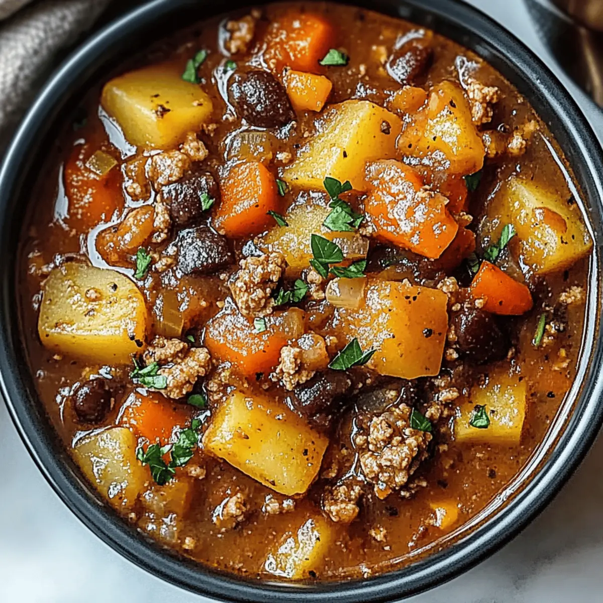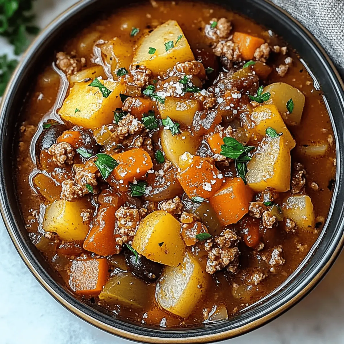 Jump to Recipe Print RecipeThe aroma of a simmering pot often evokes the warmest memories of home. As I stood there, my slow cooker bubbling away with my favorite Crock Pot Shipwreck Stew, I couldn’t help but feel a sense of comfort wash over me. This hearty concoction is not just about bringing together tender potatoes, sweet carrots, and savory ground beef; it’s a celebration of simple, wholesome ingredients all simmered to perfection. Best of all, this budget-friendly, slow cooker stew requires minimal effort, making it a perfect choice for busy nights or cozy weekends. Whether you’re entertaining family, comforting a friend, or simply indulging in a well-deserved meal, this stew is sure to warm your heart and your table. Ready to dive into a bowl of goodness that feels like a hug in every spoonful? Let’s get started! Why is this stew a must-try? Comforting Ease: You only need a few ingredients to create this Crock Pot Shipwreck Stew, making meal prep a breeze. Just toss everything into the slow cooker and let it do the magic! Hearty and Filling: This stew is packed with protein and fiber, ensuring a satisfying meal that keeps everyone full and happy. Flavorful Fusion: The blend of spices and wholesome veggies ensures every bite is bursting with flavor, promising a delightful experience that rivals your favorite restaurant dishes. Versatile Delight: Swap in favorite ingredients or use leftovers to customize your stew, just like you would with recipes like Sweet Potato Rounds or Hawaiian Crockpot Chicken. Perfect Make-Ahead Meal: Prepare this dish in advance and enjoy it for up to four days, proving it’s ideal for busy schedules. Treat yourself to a cozy night in with this comforting meal that brings everyone together around the table! Crock Pot Shipwreck Stew Ingredients For the Stew Ground Beef – Provides protein and hearty flavor; try ground turkey or chicken as a lighter option. Russet Potatoes – Break down to thicken the stew while remaining tender; Yukon gold or red potatoes can also be used. Carrots & Celery – Essential aromatics adding sweetness; if celery is unavailable, add more onions or some celery seed. Yellow Onion & Garlic – Build savory depth; use sweet onion or shallots if needed, and garlic powder can substitute for fresh garlic. Diced Tomatoes & Tomato Sauce – Form the flavorful broth base; crushed tomatoes or tomato soup work well if you’re in a pinch. Kidney Beans – Boost protein and fiber with an earthy flavor; consider pinto or black beans as alternatives. Beef Broth – Adds robust flavor; use chicken or vegetable broth in a pinch, adjusting seasoning as necessary. Worcestershire Sauce & Spices – Enhance umami flavor; soy sauce can be used if Worcestershire is unavailable; paprika, bay leaf, and thyme complete the seasoning mix. Optional Toppings Chopped Parsley – Provides freshness and color; a great finishing touch for presentation. Sour Cream – Adds a creamy, tangy element when dolloped on top; Greek yogurt works as a lighter substitute. Shredded Cheddar – Melts beautifully and enhances richness; feel free to use your favorite cheese variety! Embrace the cozy warmth of Crock Pot Shipwreck Stew and enjoy the flexibility it offers to tailor each bowl just the way you like! Step‑by‑Step Instructions for Crock Pot Shipwreck Stew Step 1: Prepare the Beef In a large skillet over medium heat, add 1 pound of ground beef and cook for about 4-5 minutes until it’s mostly browned. Stir in a diced yellow onion and sauté until translucent, which takes approximately 3 minutes. Then, add minced garlic and let it cook for another 30 seconds until fragrant before draining any excess fat. Step 2: Combine Ingredients In your slow cooker, layer 4-5 chopped russet potatoes, 2 chopped carrots, and 2 stalks of chopped celery. Next, add 1 can of drained kidney beans, 1 can of diced tomatoes, and 1 can of tomato sauce to the pot. Pour in 4 cups of beef broth, followed by 2 tablespoons of Worcestershire sauce, and sprinkle in your spices (paprika, bay leaf, and thyme). Finally, layer the browned beef mixture on top without stirring too much. Step 3: Cook the Stew Cover the slow cooker with its lid and set it to cook on LOW for 7-8 hours or on HIGH for 3-4 hours. Avoid lifting the lid during cooking to keep the temperature consistent, allowing flavors to meld together beautifully. The stew is done when the vegetables are fork-tender, and the broth has thickened to a cozy consistency. Step 4: Finish and Serve Once the cooking is complete, carefully remove the bay leaf from the stew and taste to adjust seasoning as needed. Ladle the hearty Crock Pot Shipwreck Stew into bowls and consider topping each serving with chopped parsley, a dollop of sour cream, or a sprinkle of shredded cheddar for added flavor and presentation. What to Serve with Crock Pot Shipwreck Stew? Indulge in the ultimate cozy dinner experience by pairing your hearty stew with some delightful accompaniments that elevate the meal. Warm Cornbread: This sweet and buttery bread complements the savory stew, soaking up the rich broth for an irresistible bite. Crusty Bread Rolls: Perfect for dipping! Their chewy texture highlights the tenderness of the stew while keeping the dining experience casual and fun. Green Salad with Vinaigrette: A light and refreshing option that contrasts beautifully with the hearty stew, adding a pop of color and freshness. Steamed Green Beans: Crisp-tender green beans add a vibrant touch and a delightful crunch, balancing the stew’s soft textures. Mashed Potatoes: Creamy and buttery, mashed potatoes bring an extra layer of comfort. They can even serve as a base for the stew! Fruit Crisp for Dessert: A warm apple or berry crisp, with its sweet, tart flavors and crunchy topping, makes for a comforting finish after the savory meal. These options make your Crock Pot Shipwreck Stew experience not just a dinner, but a heartwarming feast that brings everyone together