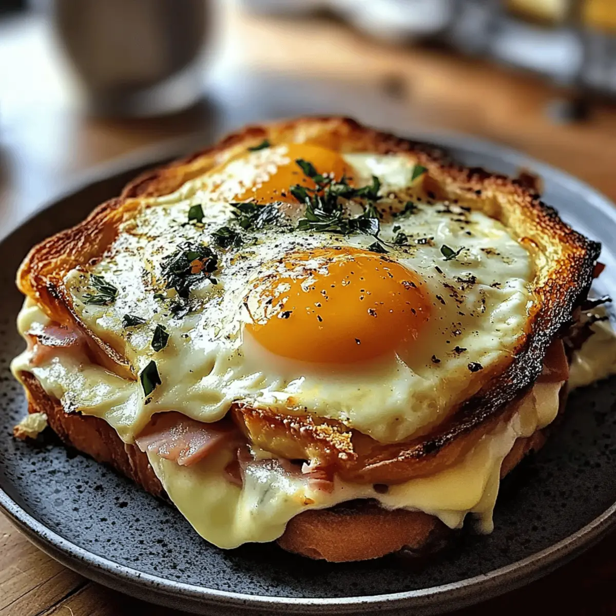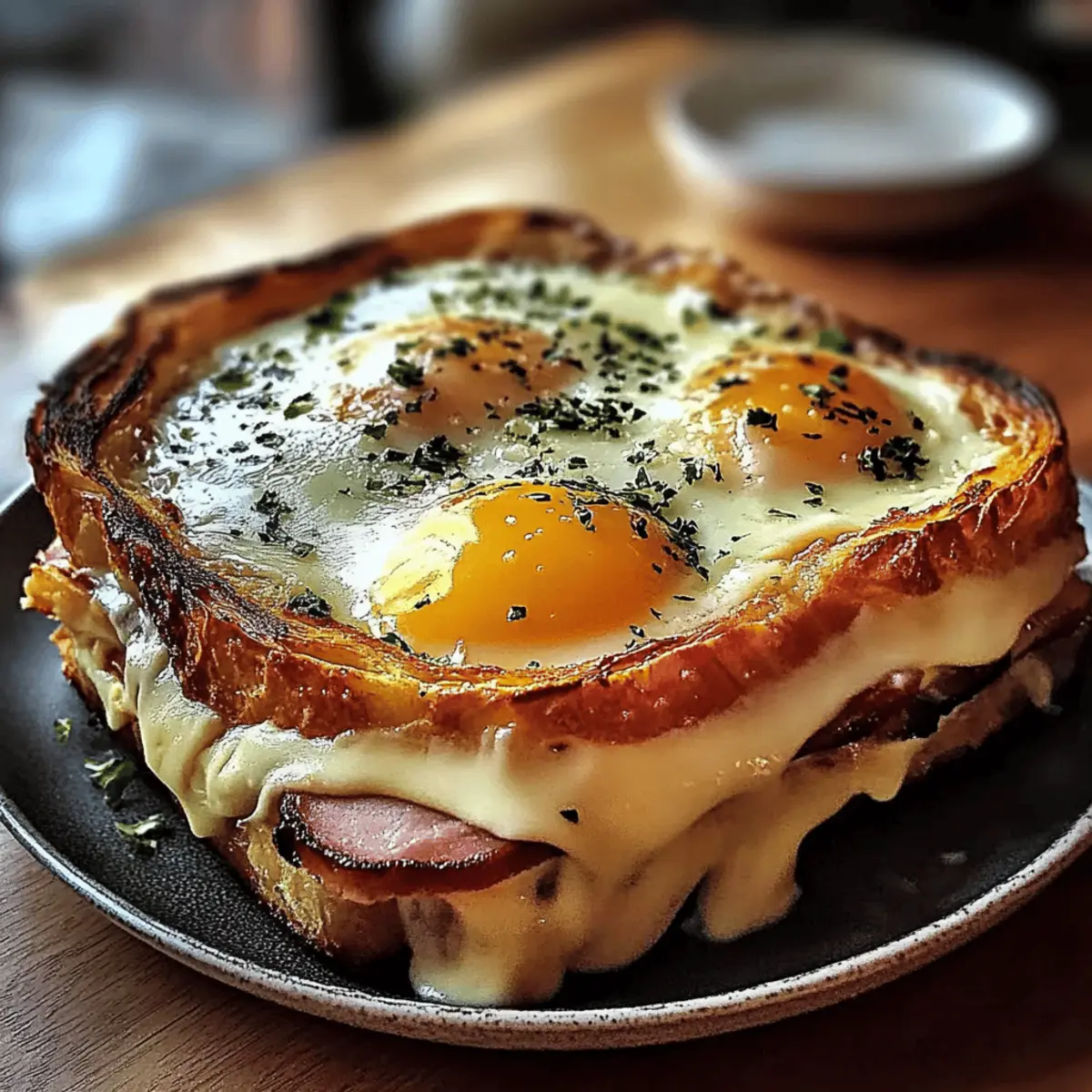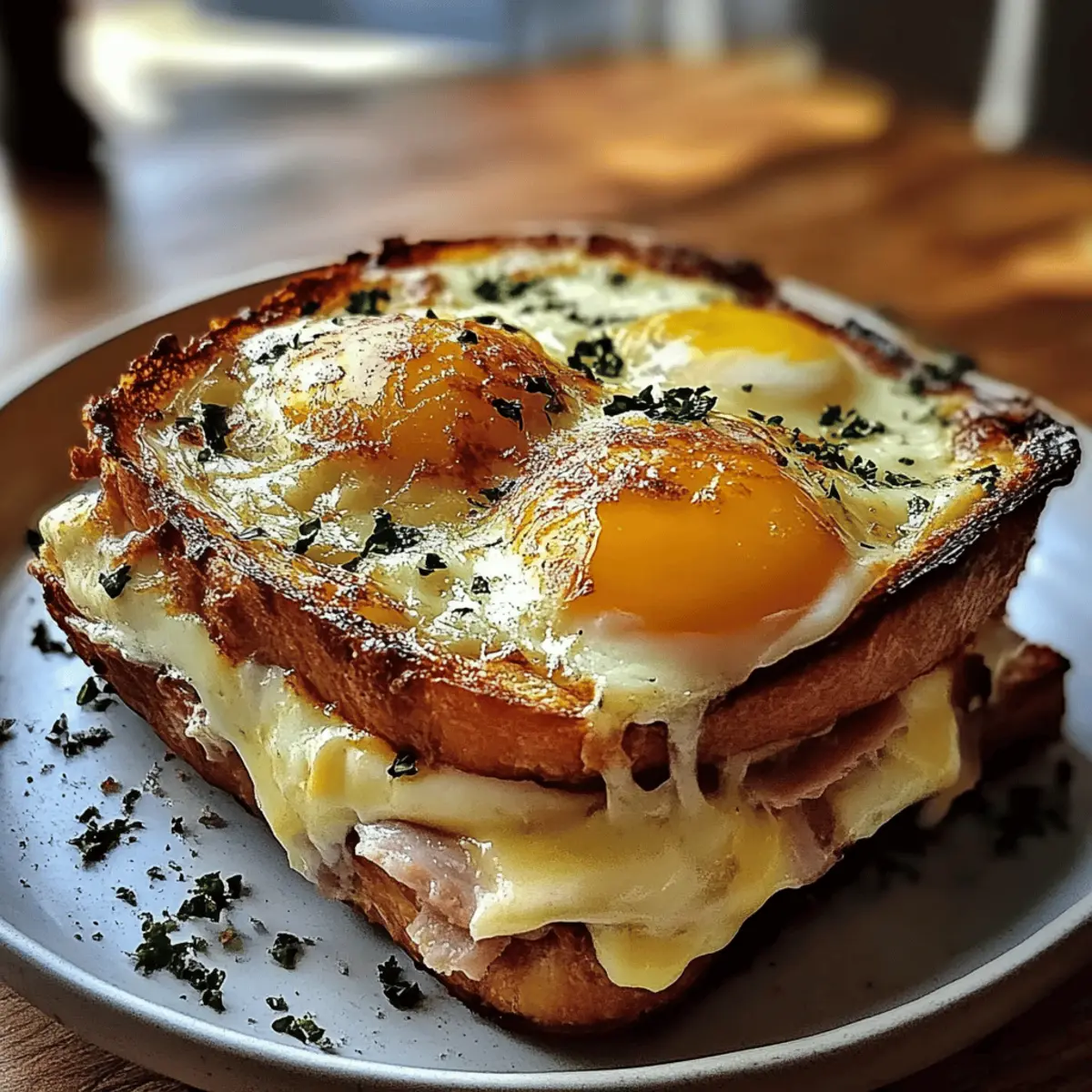 Jump to Recipe Print RecipeIt was a chilly Saturday morning when my cravings for a cozy breakfast took an unexpected turn. Instead of the usual spread, I decided to whip up a comforting Croque Madame Casserole. This delightful dish transforms the classic French sandwich into a rich, creamy casserole that’s perfect for brunch or even breakfast-for-dinner. With layers of buttery brioche, melty Gruyère cheese, and smoky turkey ham, all enveloped in a velvety béchamel sauce, it’s an experience that warms both the heart and the belly. You’ll love how quickly this casserole comes together, making it an effortless way to impress guests or simply indulge on a lazy day. Plus, with flexible variations to lighten it up or swap in gluten-free ingredients, this recipe has something for everyone. So, are you ready to dive into a world of creamy, cheesy goodness? Let’s get cooking! Why is Croque Madame So Irresistible? Comforting Layers: This casserole brings together layers of buttery brioche and smoky turkey ham, making every bite a cozy delight. Creamy Béchamel: The velvety béchamel sauce, enriched with Dijon mustard and nutmeg, elevates the flavors to new heights, creating a rich experience. Quick and Easy: It’s a simple dish to prepare, perfect for a stress-free brunch or an impressive breakfast-for-dinner that your guests will rave about. Versatile Options: Explore variations like a lighter version with Greek yogurt or a gluten-free option—there’s something here for everyone. Crowd-Pleasing Delight: The warm, melty goodness of this Croque Madame Casserole is sure to be a hit at any gathering. Whether it’s a cozy weekend morning or a special occasion, you’ll savor every moment! Croque Madame Casserole Ingredients For the Base Brioche – Provides a buttery, slightly sweet base that absorbs the béchamel. Substitution: Use challah, French bread, thick-cut white bread, or whole wheat for a healthier option. Turkey Ham – Adds smoky flavor and protein. Substitution: Use thinly sliced smoked turkey breast, sautéed mushrooms, spinach, or roasted bell peppers for a vegetarian option. For the Cheese Layer Gruyère Cheese – Nutty and creamy, offers an excellent melt. Substitution: Emmental, Swiss cheese, or sharp white cheddar work well. For the Béchamel Milk – Used in béchamel for creaminess. Substitution: Combine low-fat milk with Greek yogurt for fewer calories. Butter – Essential for a rich béchamel sauce. Flour – Helps thicken the béchamel sauce for a creamy texture. Dijon Mustard – Adds a layer of flavor to the béchamel. Nutmeg – A pinch enriches the béchamel with warm, fragrant notes. For the Egg Topping Eggs – Provide richness and a runny yolk, essential for an authentic Croque Madame. Tip: Add eggs in the last 10 minutes of baking for ideal yolk consistency. Feel free to mix and match ingredients to suit your taste or dietary needs—after all, a good Croque Madame is all about creativity and comfort! Step‑by‑Step Instructions for Croque Madame Casserole Step 1: Prepare Béchamel In a saucepan over medium heat, melt 4 tablespoons of butter. Once melted, whisk in ¼ cup of flour, cooking for about 1-2 minutes until golden. Gradually add 2 cups of milk while continuously stirring to avoid lumps. Cook until thickened, about 5 minutes. Stir in 1 tablespoon of Dijon mustard, a pinch of nutmeg, salt, and pepper to taste, ensuring a rich, creamy béchamel. Step 2: Layer Ingredients Grease a 9×13-inch casserole dish with butter. Begin layering by placing 6 cups of cubed brioche at the bottom, ensuring even coverage. Add 1 cup of smoky turkey ham on top, followed by 1½ cups of grated Gruyère cheese. Pour the warm béchamel sauce evenly over these layers, making sure every piece is coated for that irresistible Croque Madame flavor. Step 3: Add Eggs Using the back of a spoon, create small wells in the casserole for each egg—typically, you’ll want to create 4 wells. Crack an egg into each well, taking care not to break the yolks. This unique touch is what truly makes it a Croque Madame casserole, and it will enhance the dish’s beauty and flavor as the eggs bake to perfection. Step 4: Bake the Casserole Cover the casserole dish with aluminum foil and bake in a preheated oven at 350°F (175°C) for 25 minutes. Remove the foil and continue baking for an additional 10-15 minutes. Look for a golden-brown top and a slightly puffed texture, assuring that your Croque Madame Casserole is bubbling with deliciousness and ready to serve. Step 5: Serve and Enjoy Once baked, remove the casserole from the oven and let it cool for about 5-10 minutes. This brief resting period allows the layers to set, making it easier to serve. Dish out generous portions and pair with a light salad or seasonal fruit for a delightful brunch experience. Each slice reveals creamy layers and beautiful runny egg yolks, embodying the essence of a truly comforting Croque Madame! How to Store and Freeze Croque Madame Casserole Fridge: Keep leftover Croque Madame Casserole covered in an airtight container for up to 3 days. Reheat in the oven or microwave until heated through, ensuring the creamy layers maintain their delightful texture. Freezer: For longer storage, assemble the casserole without baking, cover tightly with plastic wrap, and then foil. Freeze for up to 2 months. Bake straight from the freezer, adding a few extra minutes to the cooking time. Reheating: When reheating thawed casserole, heat in a 350°F (175°C) oven until hot and bubbly, about 25-30 minutes. This ensures the enchanting flavors of the Croque Madame are preserved. Make-Ahead: Feel free to prepare it a day in advance and store it in the fridge before baking, making it an ideal dish for brunch prep! Expert Tips for Croque Madame Casserole • Use Day-Old Bread: Opt for slightly stale brioche, which absorbs the béchamel without becoming mushy. Fresh bread can lead to a soggy texture. • Layer Wisely: Ensure even dist