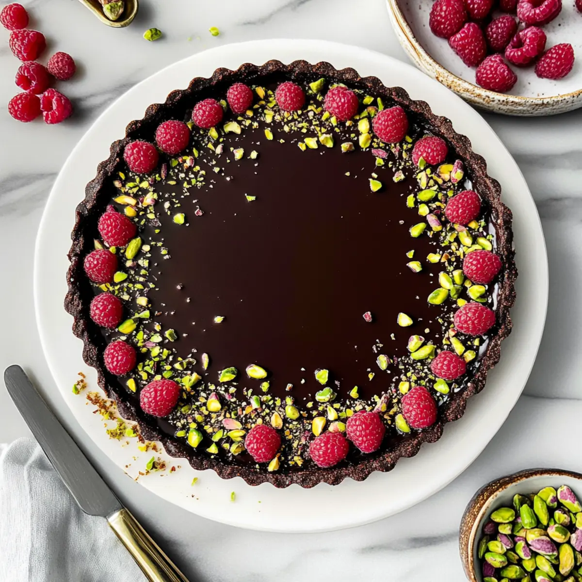 Jump to Recipe Print RecipeAs I sliced into the rich, dark chocolate ganache tart, a wave of anticipation washed over me—the kind only a deeply indulgent dessert can bring. With a sprinkle of crunchy pistachios and vibrant raspberries, this dark chocolate ganache tart is not just eye candy but also a delightful treat lurking in my fridge, waiting for the perfect moment. This recipe offers an easy yet impressive addition to any gathering, and it comes together in just 35 minutes, plus some chilling time. Imagine how thrilled your family and friends will be when they take their first bite! It’s a crowd-pleaser that allows for sweetness adjustments to suit your cravings, making it a low-sugar option for those who enjoy a rich dessert without the guilt. Are you ready to create a dessert that’s as stunning as it is delicious? Let’s dive in! Why is this tart truly irresistible? Decadent, this Dark Chocolate Ganache Tart will have chocolate lovers swooning with delight. Quick to prepare, you can whip it up in just 35 minutes, making it perfect for last-minute gatherings or casual celebrations. Versatile in flavor, you can easily adjust the sweetness to suit your palate, or even try different toppings like berries or nuts. Stunning presentation ensures it will be the star of any dessert table, while the combination of silky ganache and crunchy crust provides a textural feast. For more delightful chocolate desserts, check out our Chocolate Chip Cookie and Chocolate Peanut Butter recipes! Dark Chocolate Ganache Tart Ingredients For the Crust • Oreo Cookies (220g) – Perfect for a rich chocolate base; feel free to substitute with any similar chocolate cookie. • Unsalted Butter (50g, melted) – Binds the cookie crumbs together, ensuring a solid and delicious crust. • Salt (1/2 tsp) – Enhances flavors and balances the tart’s sweetness. For the Ganache • Dark Chocolate (600g, 70% cacao) – The star ingredient that brings depth and richness to the ganache; adjust sugar based on your taste. • Whipping Cream (500g) – Adds luscious creaminess and smooth texture. • Sugar (200g) – Optional for sweetness; only needed if your chocolate is under 70% cacao. For the Toppings • Shelled and Chopped Pistachios (50g) – Provides a delightful crunch and nutty complement to the chocolate. • Fresh Raspberries (100g) – Adds a tart contrast to the luxurious ganache, brightening each bite. • Coarse Sea Salt – A pinch as a garnish enhances the chocolate’s flavor profile beautifully. Step‑by‑Step Instructions for Dark Chocolate Ganache Tart Step 1: Prepare the Crust Begin by processing the Oreo cookies in a food processor until they form fine crumbs. In a mixing bowl, combine the cookie crumbs with melted unsalted butter and salt until everything is well combined and resembles wet sand. Press this mixture firmly into the base and sides of a tart tin, ensuring an even layer. Place the crust in the freezer for about 15 minutes while you prepare the ganache. Step 2: Make Ganache In a heatproof bowl, melt the dark chocolate over a bain marie or microwave in 30-second increments, stirring after each interval until smooth. Meanwhile, in a saucepan, heat the whipping cream and sugar over medium heat until the sugar has dissolved and the mixture is just steaming, avoiding boiling. Remove the saucepan from heat and prepare to combine these elements into the ganache. Step 3: Combine Carefully pour the hot cream mixture over the melted dark chocolate, allowing it to sit for 1-2 minutes. Then, gently stir with a spatula in small circular motions, working from the center outwards until the ganache is silky and completely smooth. This luscious ganache will be the indulgent filling for your Dark Chocolate Ganache Tart, so take your time to ensure the texture is perfect. Step 4: Assemble Tart Remove the crust from the freezer and pour the smooth ganache into the prepared tart shell. Use a spatula to spread it evenly, ensuring a beautiful, glossy surface. Tap the tart tin gently on the counter to eliminate any air bubbles, which will help achieve a perfectly smooth finish. Step 5: Chill Place the assembled tart in the refrigerator and chill it for at least 6 hours, or ideally overnight. This chill time allows the ganache to set properly, ensuring a beautifully textured tart that’s easy to slice. Patience is key here; the longer it sits, the better the flavors meld together. Step 6: Finish Once the tart has chilled and set, remove it from the refrigerator. Garnish the top with chopped pistachios, fresh raspberries, and a sprinkle of coarse sea salt to enhance the flavors beautifully. Slice the Dark Chocolate Ganache Tart into wedges, and it’s ready to be served to family and friends for a delightful treat! Make Ahead Options Preparing this luscious Dark Chocolate Ganache Tart ahead of time is a game changer for busy home cooks! You can make the crust up to 24 hours in advance and store it in the refrigerator, ensuring it stays crisp. The ganache can also be prepared a day ahead; just let it cool before pouring it into the crust. Cover the assembled tart with plastic wrap and refrigerate it for up to 3 days without compromising its rich, silky texture. When ready to serve, simply garnish with chopped pistachios, fresh raspberries, and a sprinkle of coarse sea salt. This way, you can enjoy a stunning dessert without the last-minute rush! Expert Tips for Dark Chocolate Ganache Tart Melt Chocolate Properly: Ensure the dark chocolate is fully melted before mixing with cream; this prevents a clumpy ganache and ensures a silky texture. Chill for Best Results: For optimal flavor and texture, refrigerate the tart overnight. This allows the ganache to set perfectly for a better slicing experience. Watch the Cream Temperature: Heat the whipping cream gently; avoid boiling it to maintain the right consistency for your dark chocolate ganache tart. Adjust Sweetness Smartly: If using chocolate with a lowe